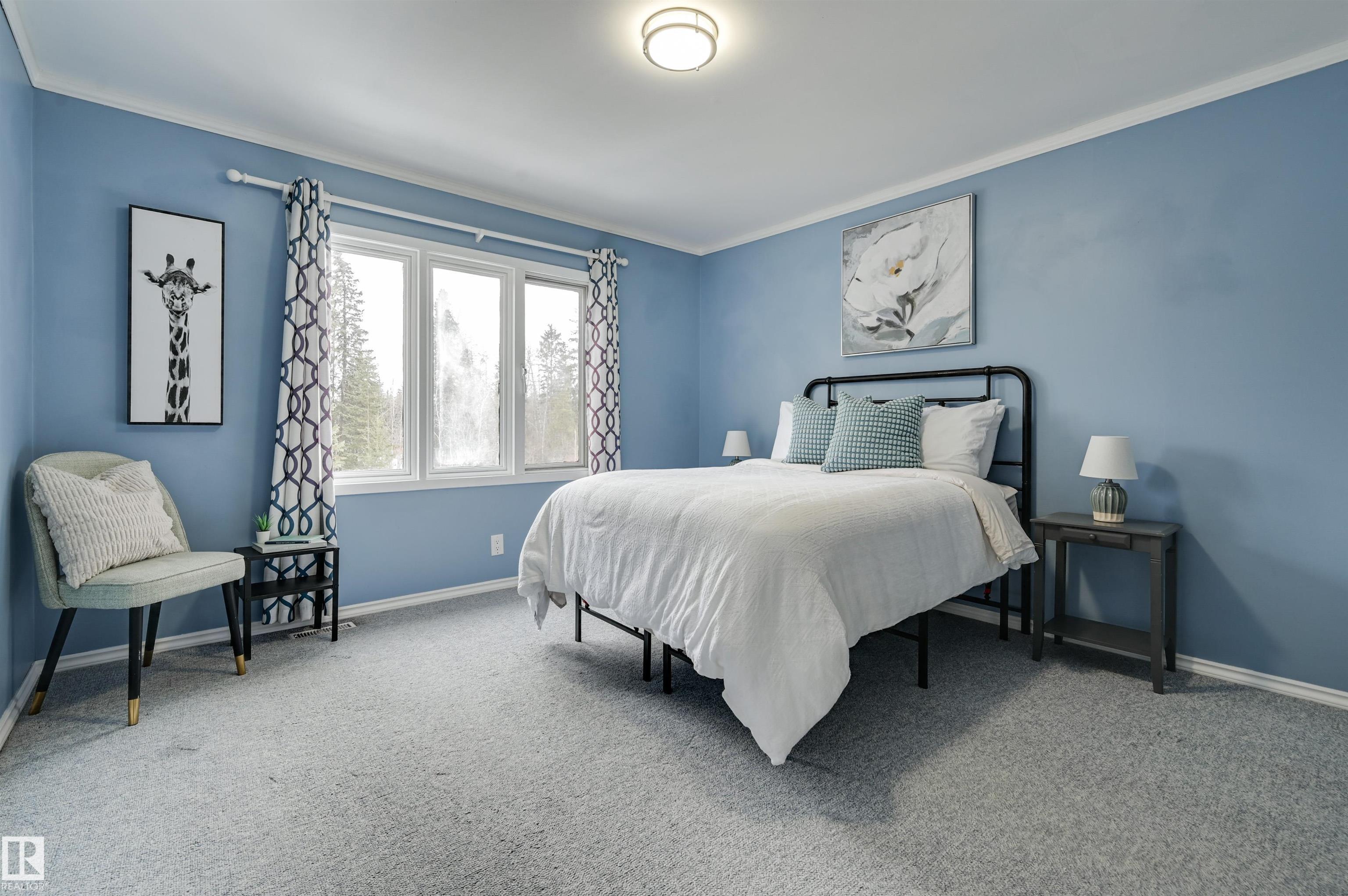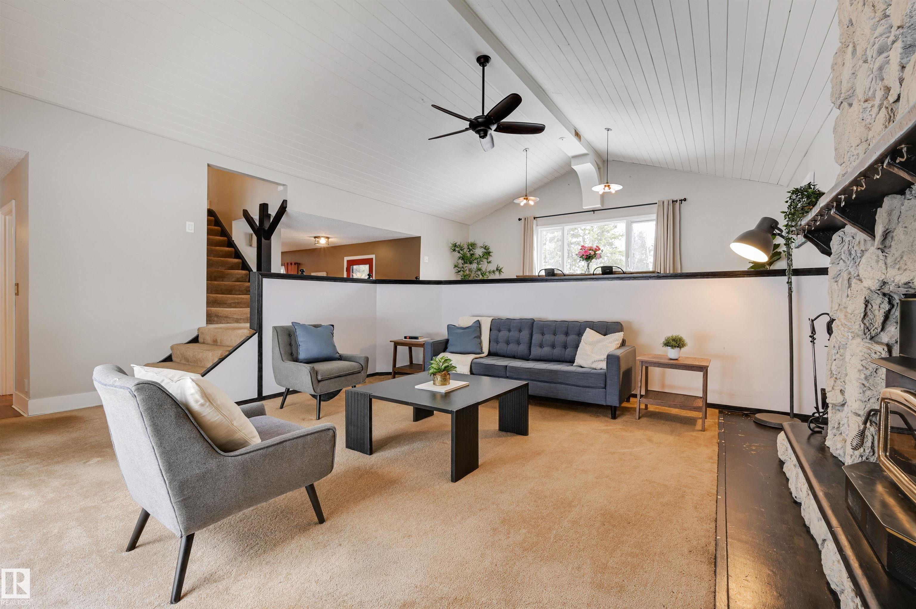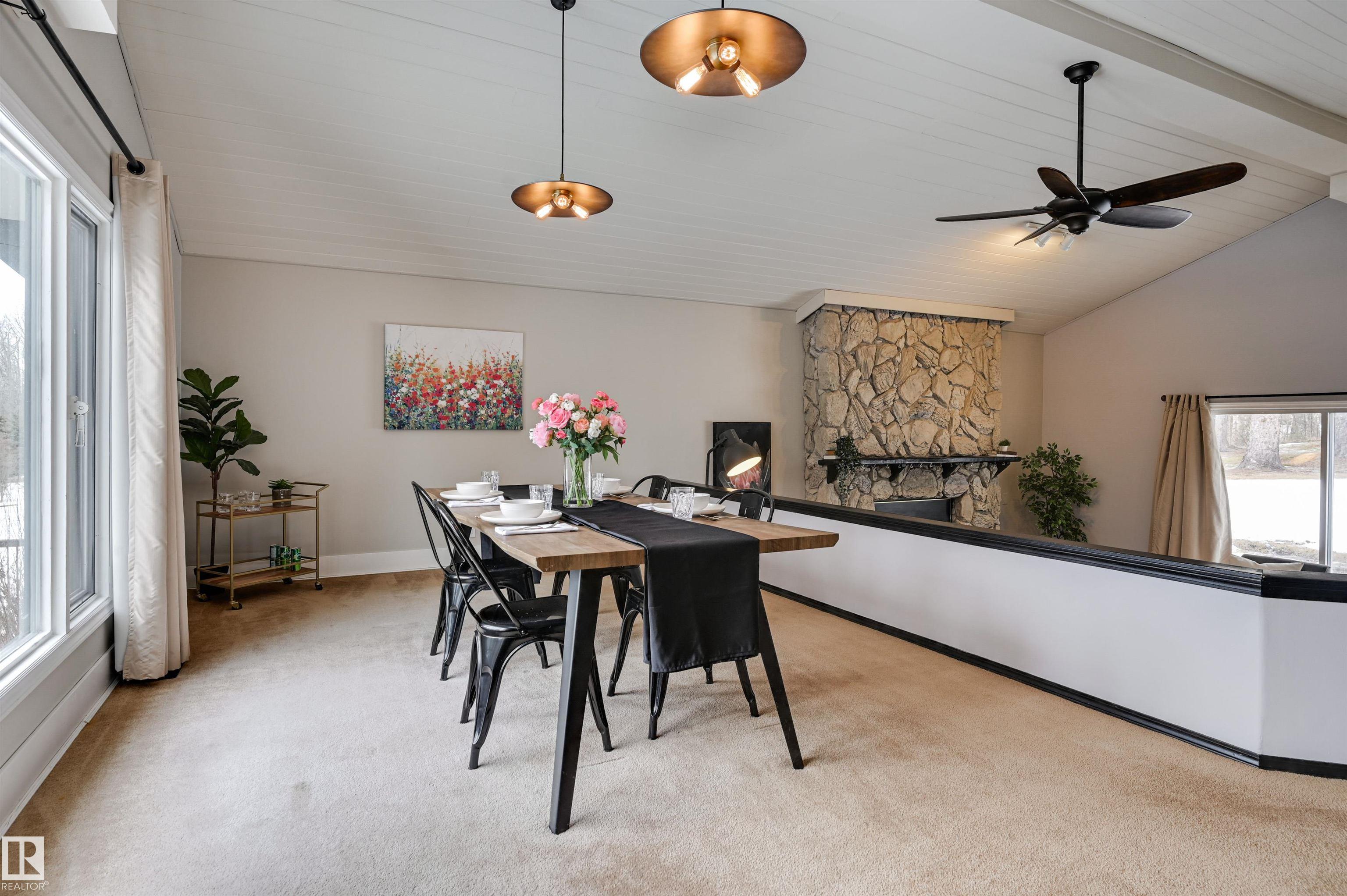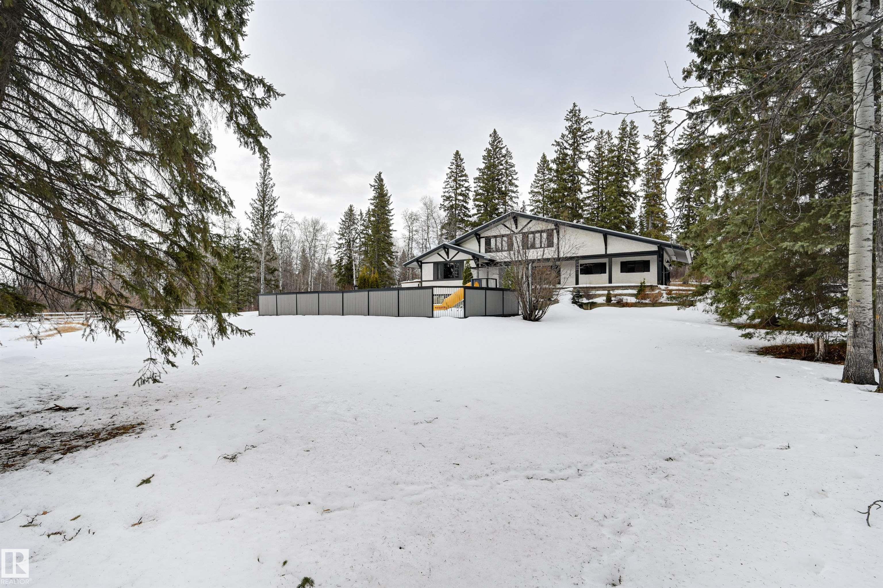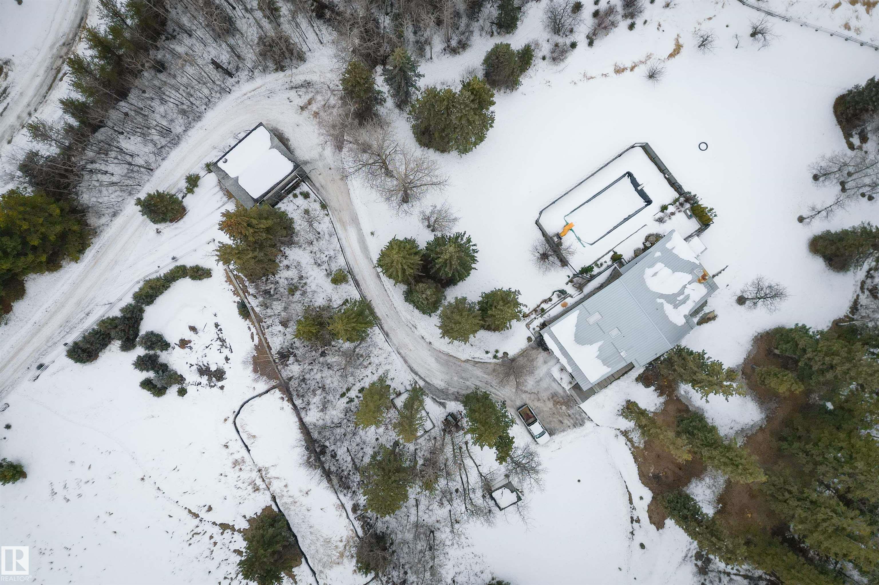 Welcome to Hennig Acres! This 3 bed + 3 bath home awaits. Situated on 9.25 acres, this beautiful home offers everything. Walk through your farmhouse-style front door + across the vinyl floor to your kitchen + dining area. Your open-concept kitchen offers plenty of cabinet, cupboard, + counter space for all your culinary needs. Enjoy breakfast with natural light pouring into your dining area. Cozy carpet takes you to your living room with a stunning stone mantle fireplace! Enjoy a flex space just above, where you can create a formal dining area that overlooks your property. Upstairs, you will find your primary bedroom, featuring French doors that open to your private ensuite. 2 additional bedrooms, a bathroom + gorgeous vaulted ceilings complete this level. Head downstairs to your theatre room, the perfect place for movie nights, or to your rec room! Your double detached garage keeps toys + vehicles secure. Rest assured with a tank + field septic system + drilled well. Country living meets modern comforts!