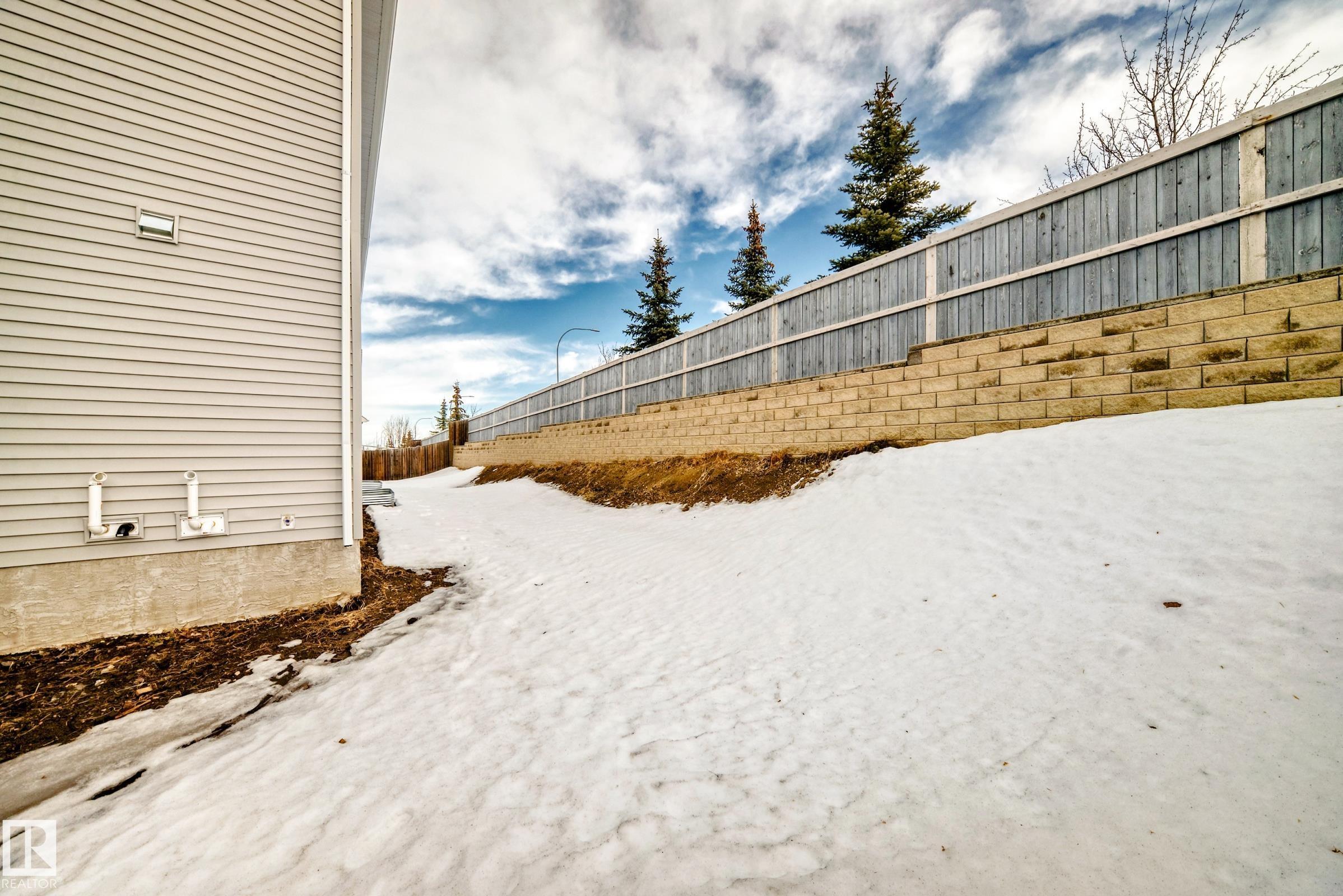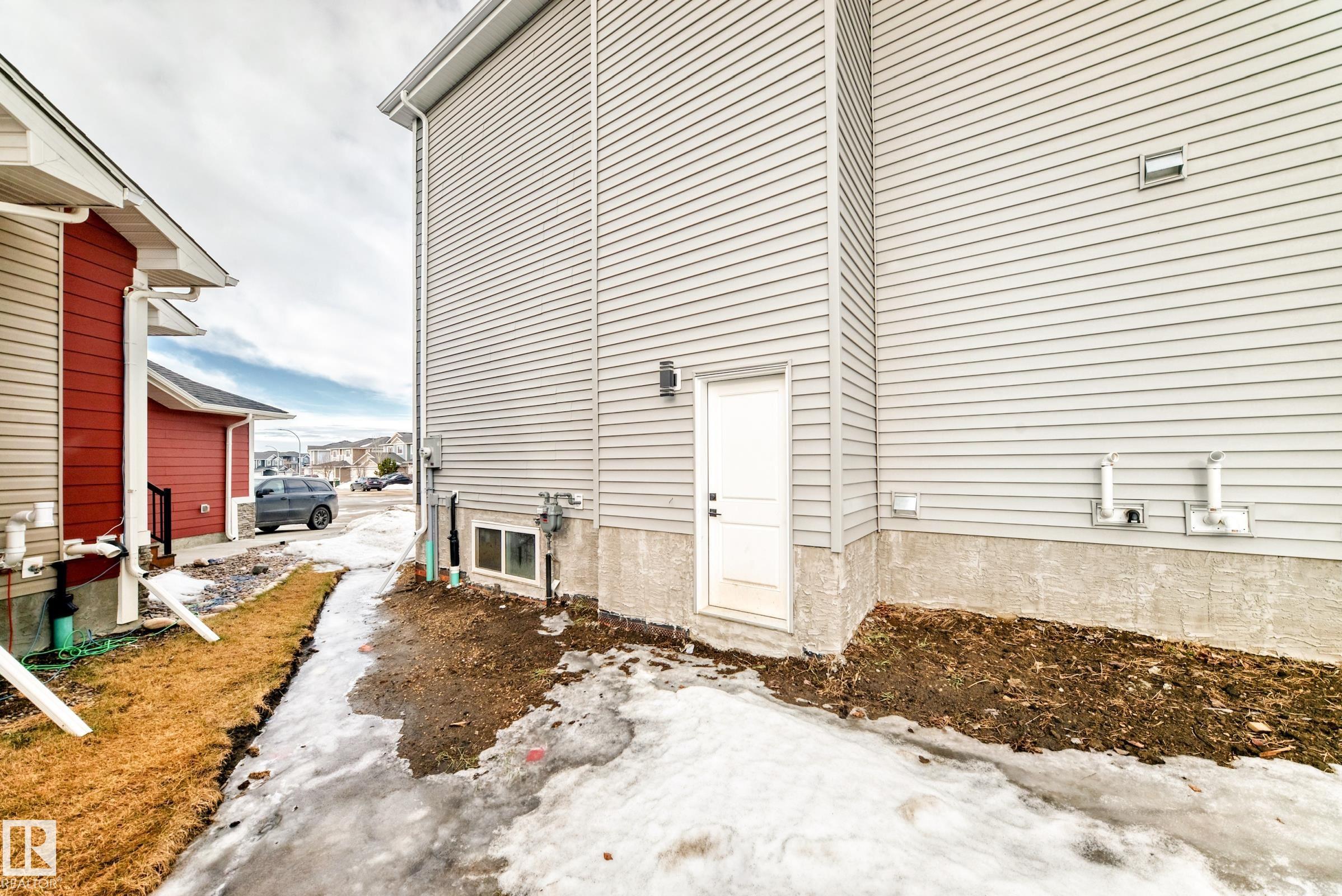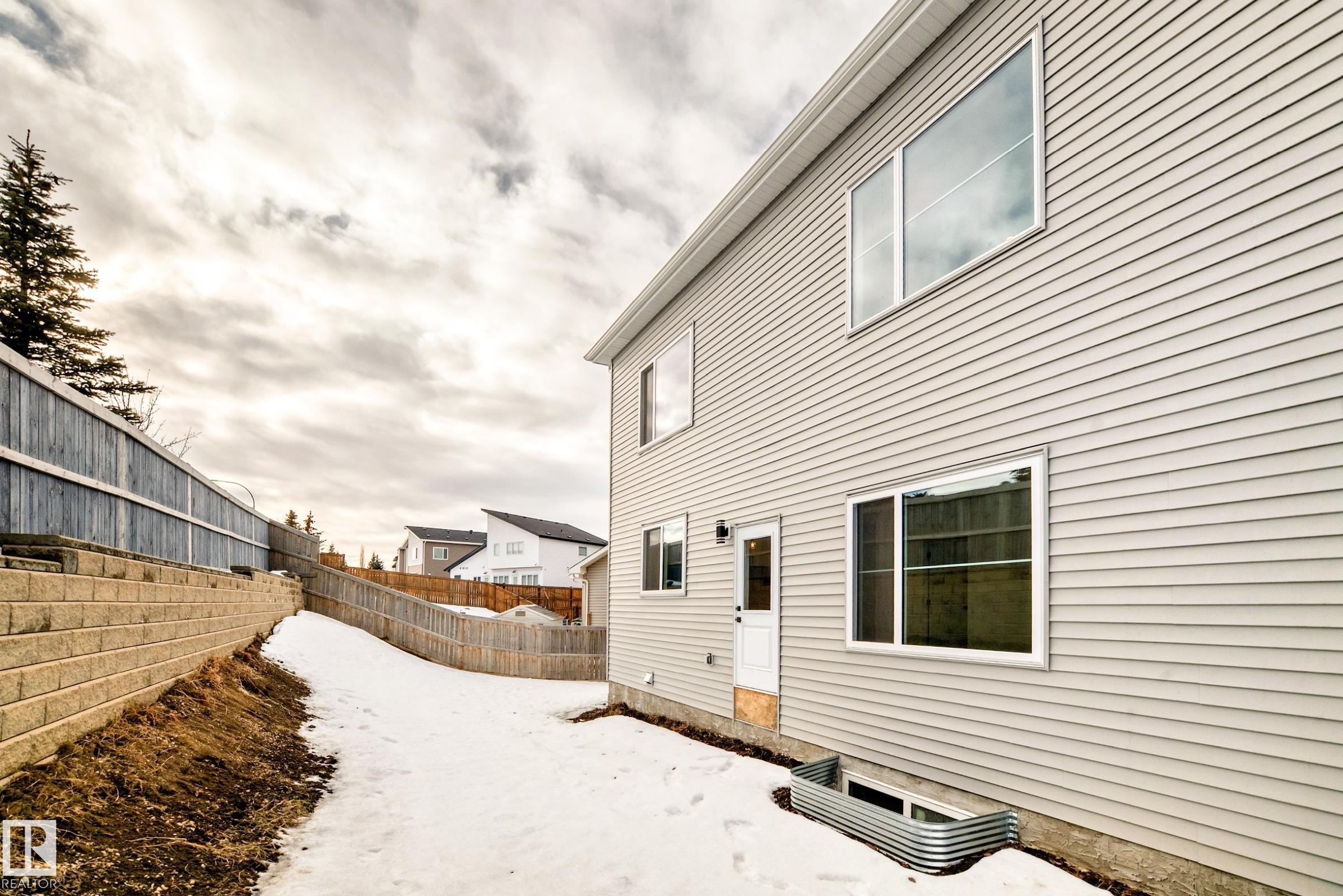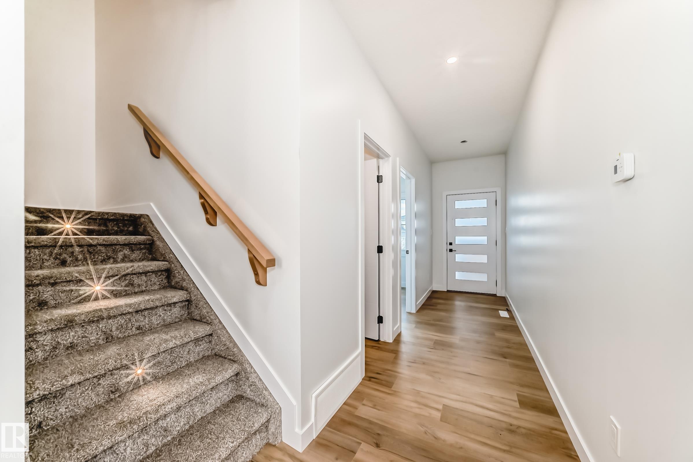 Welcome to this beautifully upgraded half duplex located on a rare large pie-shaped lot in the heart of Hilldowns. Offering over 1,730 sq. ft. of modern, functional living space, this home features an impressive open-to-below living room, creating a bright and airy first impression. The main floor showcases a stylish kitchen with center island, spacious dining area, and a convenient mudroom with direct access to the double attached garage. A main-floor bedroom/den and full bathroom make this layout ideal for guests, a home office, or multi-generational living. Upstairs, you'll find three generously sized bedrooms, including a spacious primary suite with walk-in closet and private ensuite, along with a bonus room and upper-floor laundry for added convenience. The home also offers a separate side entrance and two large basement windows, providing excellent potential for a future basement suite. Ideally located close to schools, parks, walking trails, shopping, and the transit centre, with quick access to