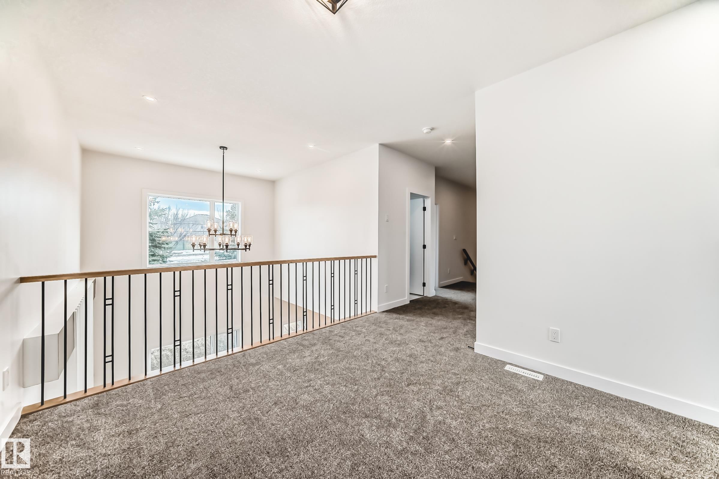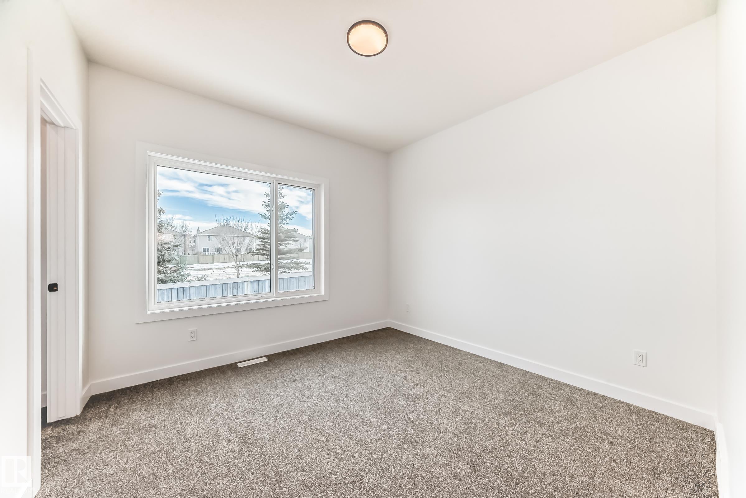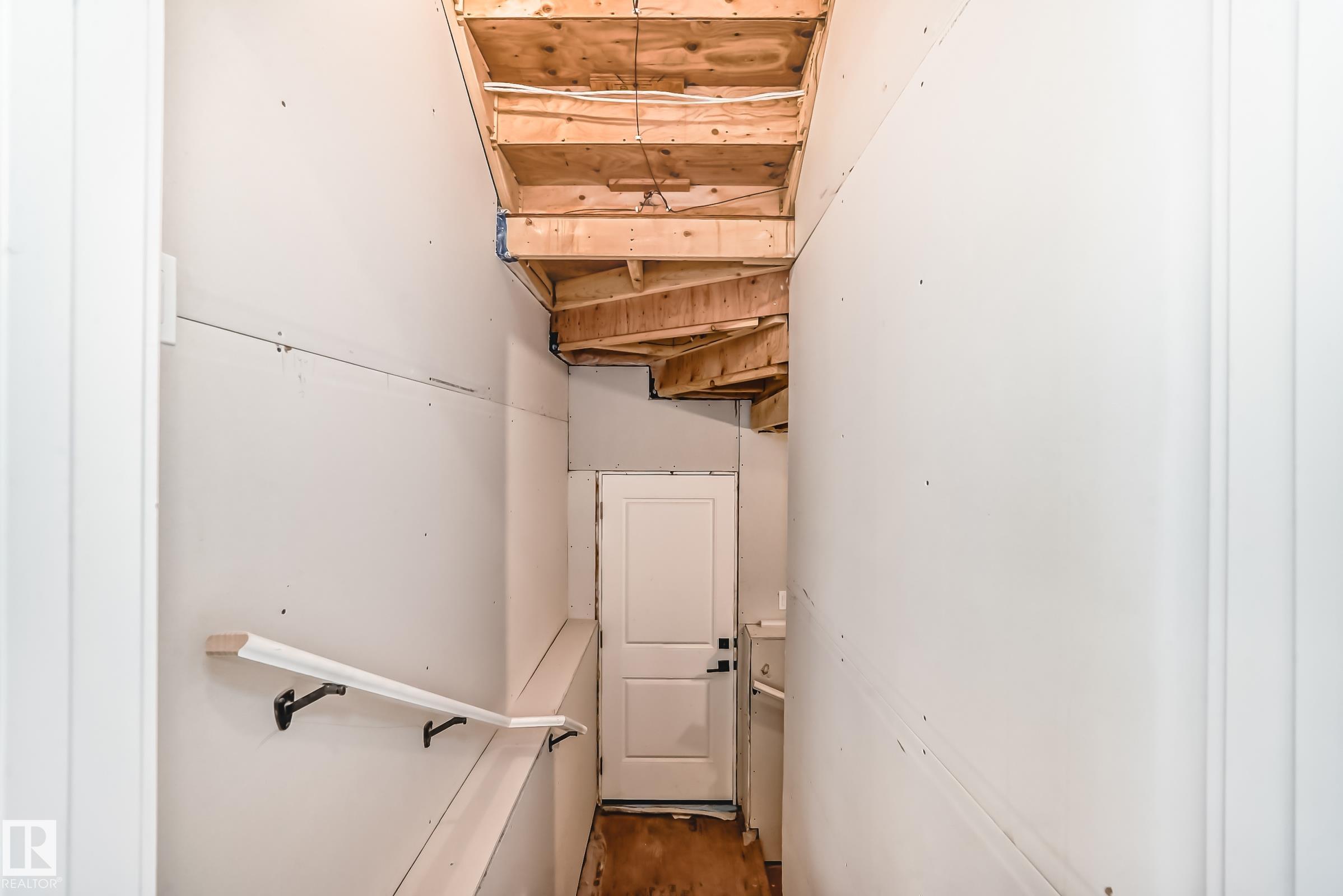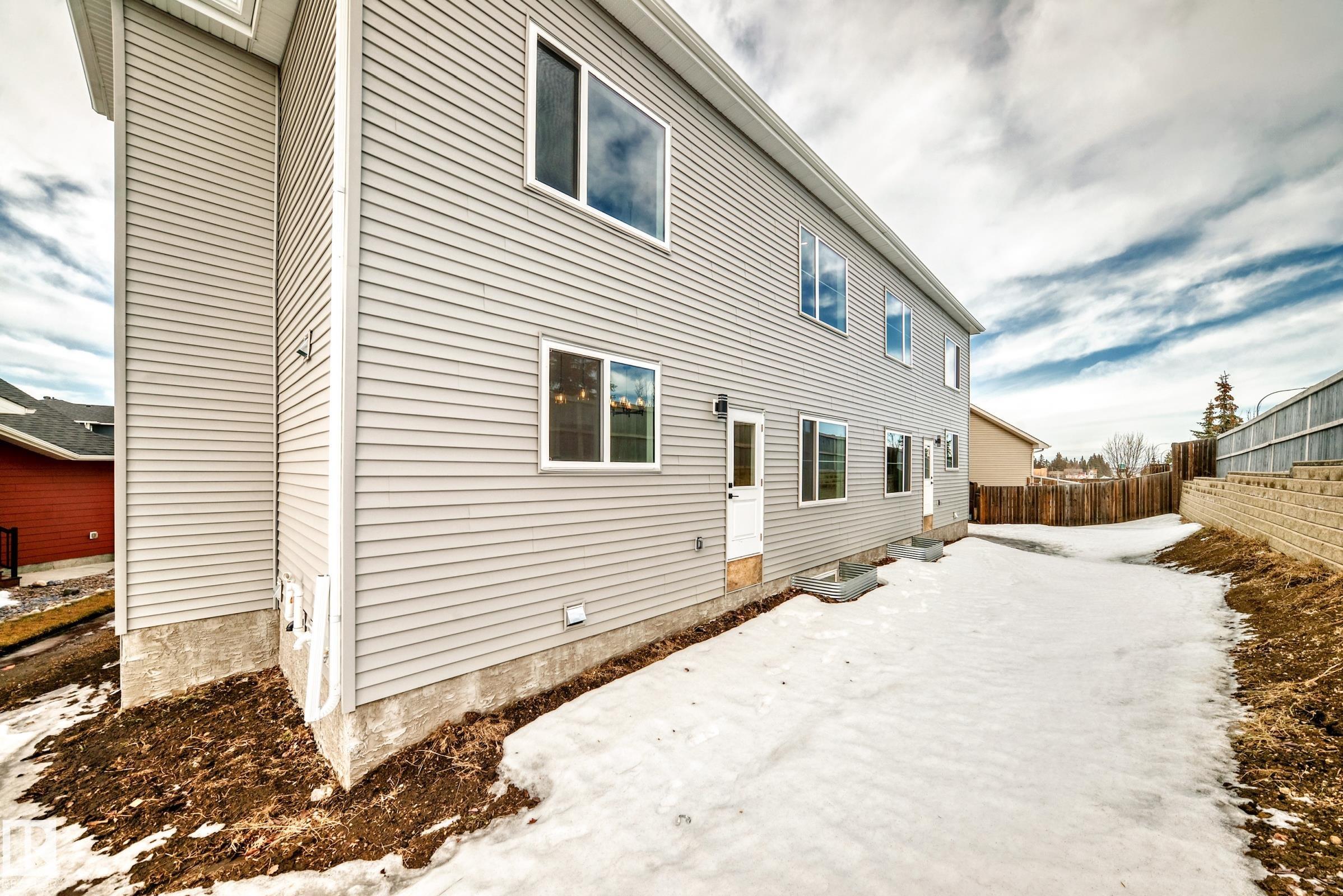 Welcome to this beautifully upgraded half duplex located on a rare large pie-shaped lot in the heart of Hilldowns. Offering over 1,730 sq. ft. of modern, functional living space, this home features an impressive open-to-below living room, creating a bright and airy first impression. The main floor showcases a stylish kitchen with center island, spacious dining area, and a convenient mudroom with direct access to the double attached garage. A main-floor bedroom/den and full bathroom make this layout ideal for guests, a home office, or multi-generational living. Upstairs, you'll find three generously sized bedrooms, including a spacious primary suite with walk-in closet and private ensuite, along with a bonus room and upper-floor laundry for added convenience. The home also offers a separate side entrance and two large basement windows, providing excellent potential for a future basement suite. Ideally located close to schools, parks, walking trails, shopping, and the transit centre, with quick access to