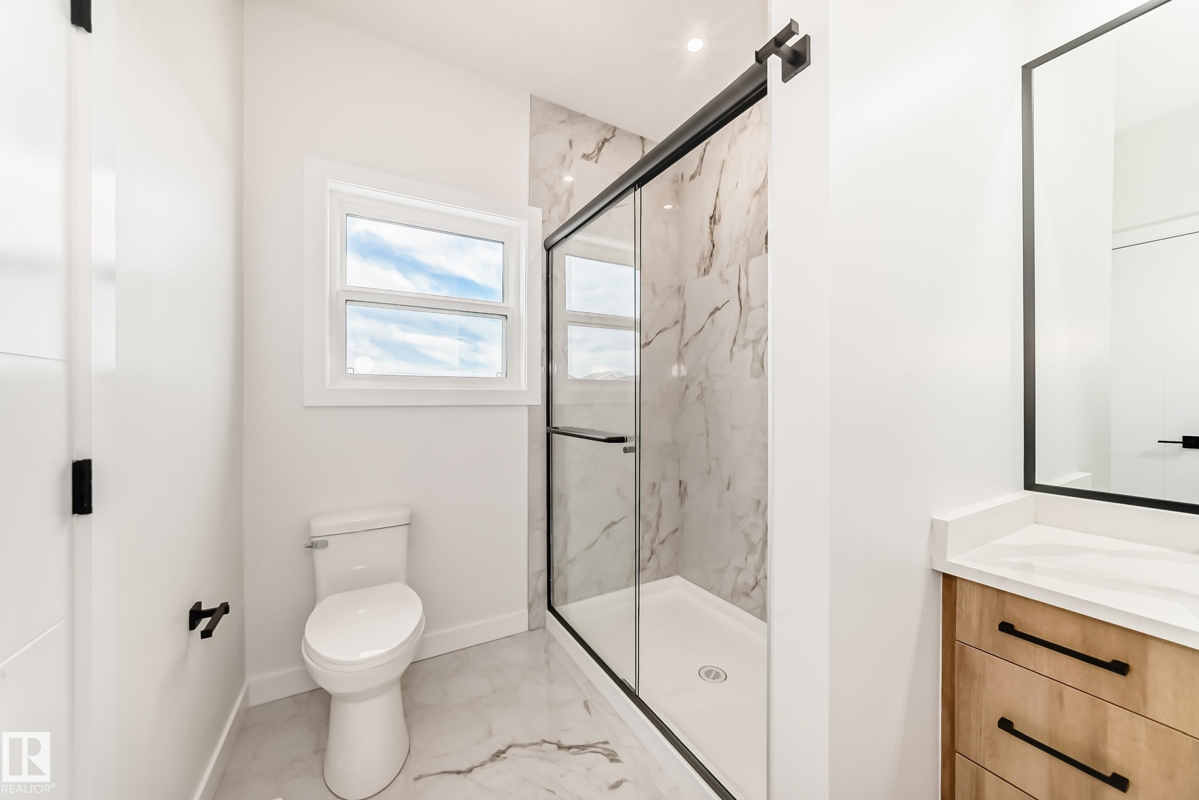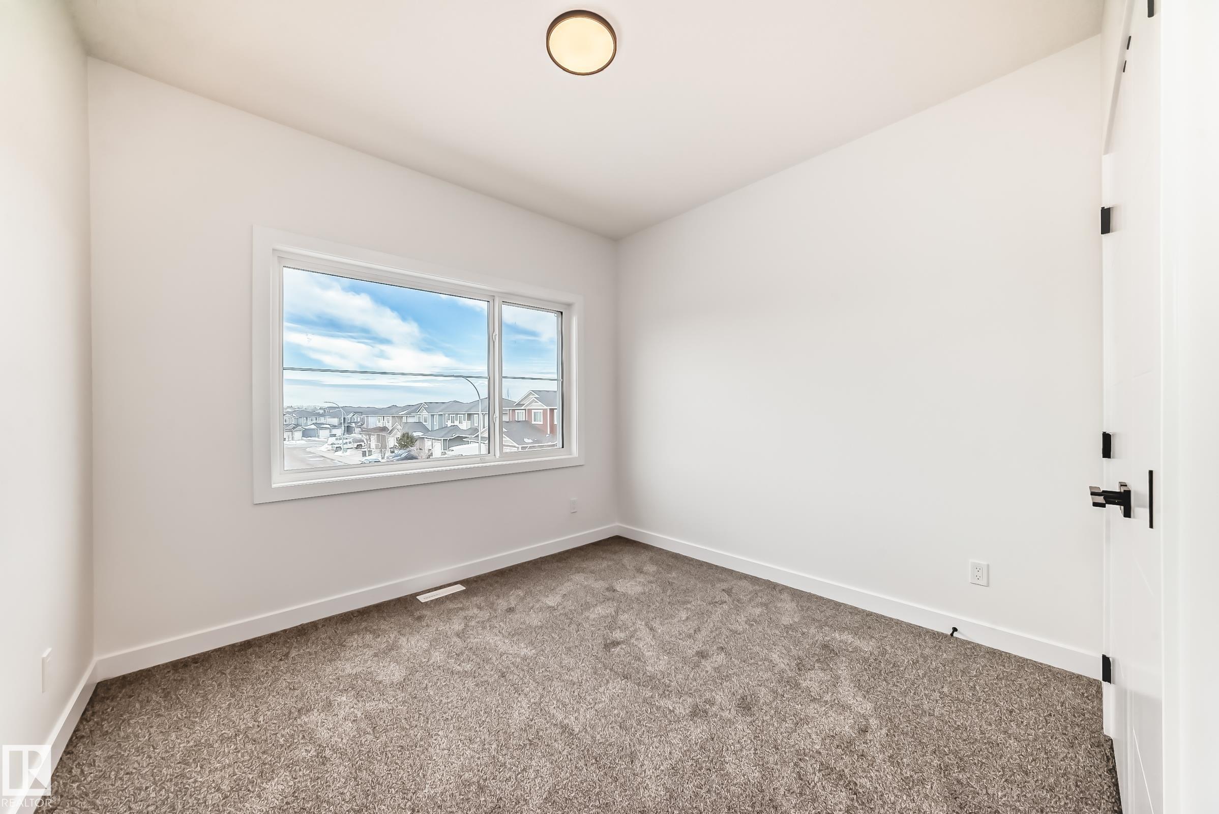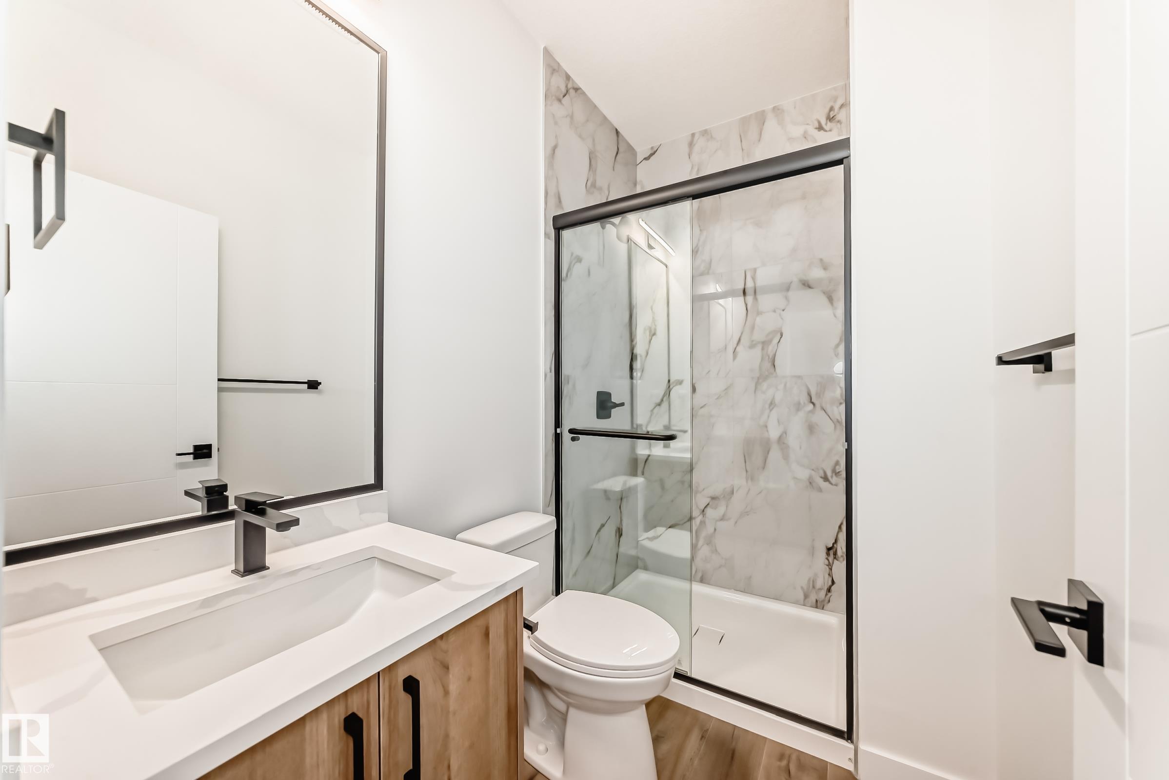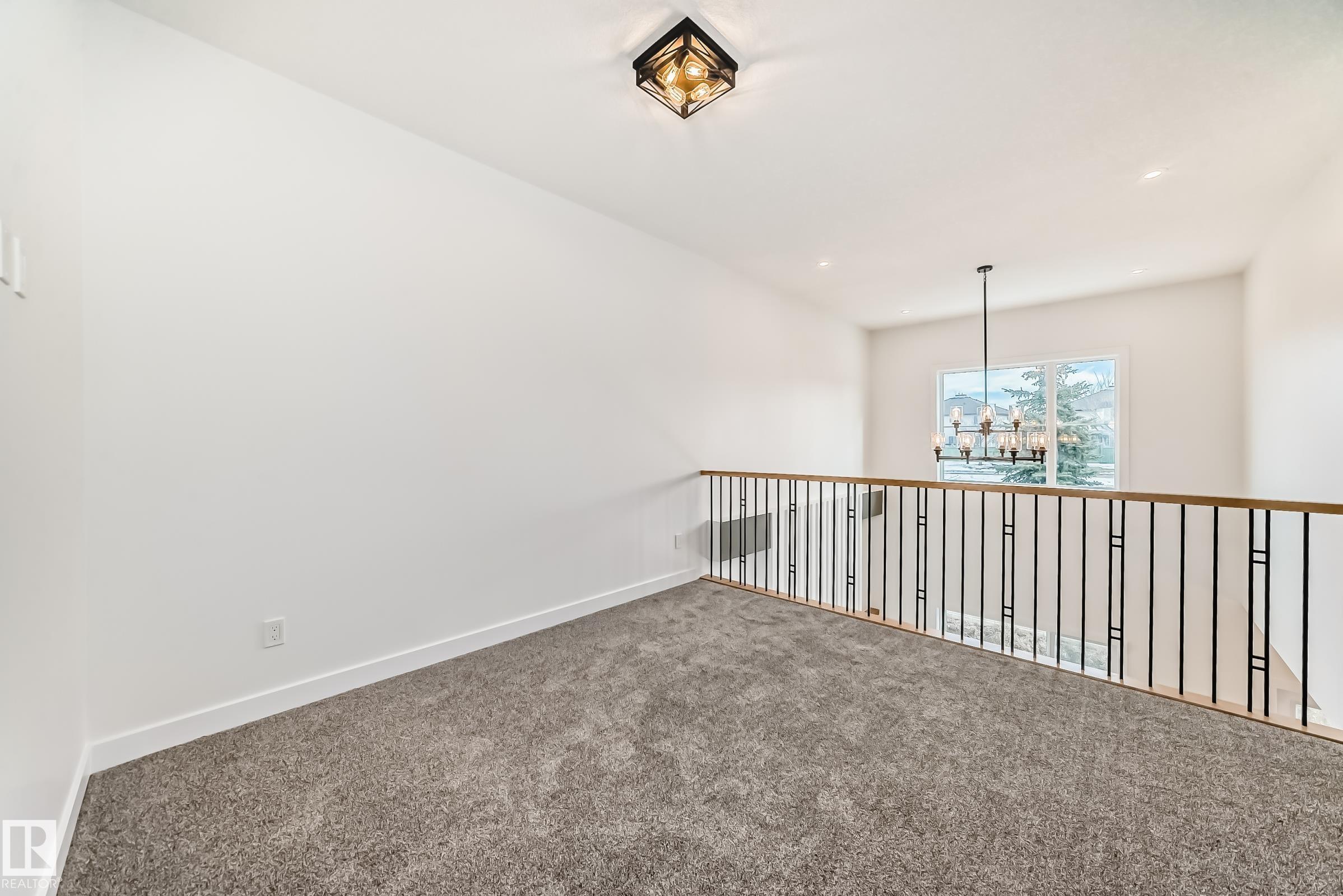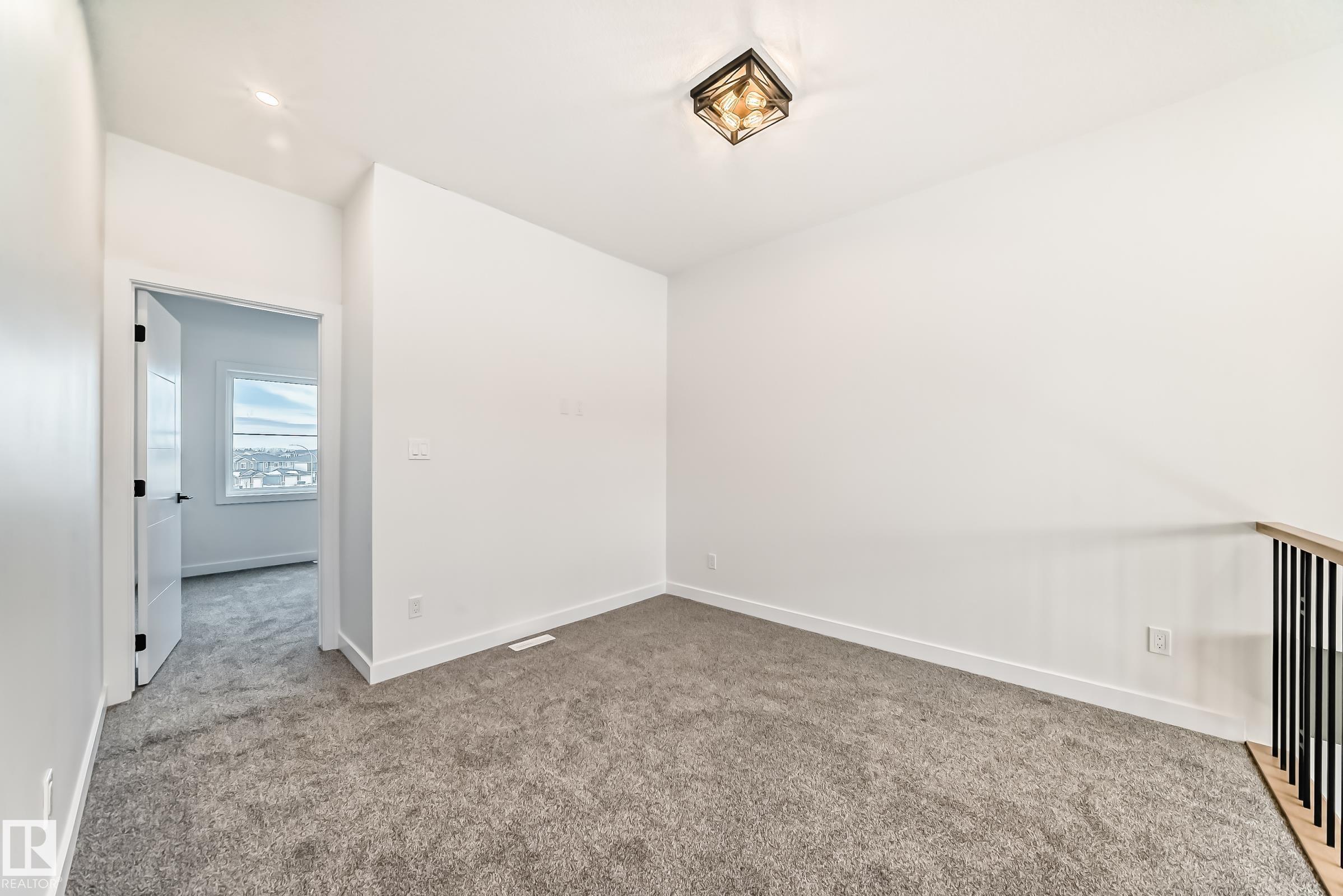Welcome to this beautifully upgraded half duplex located on a rare large pie-shaped lot in the heart of Hilldowns. Offering over 1,730 sq. ft. of modern, functional living space, this home features an impressive open-to-below living room, creating a bright and airy first impression. The main floor showcases a stylish kitchen with center island, spacious dining area, and a convenient mudroom with direct access to the double attached garage. A main-floor bedroom/den and full bathroom make this layout ideal for guests, a home office, or multi-generational living. Upstairs, you'll find three generously sized bedrooms, including a spacious primary suite with walk-in closet and private ensuite, along with a bonus room and upper-floor laundry for added convenience. The home also offers a separate side entrance and two large basement windows, providing excellent potential for a future basement suite. Ideally located close to schools, parks, walking trails, shopping, and the transit centre, with quick access to
