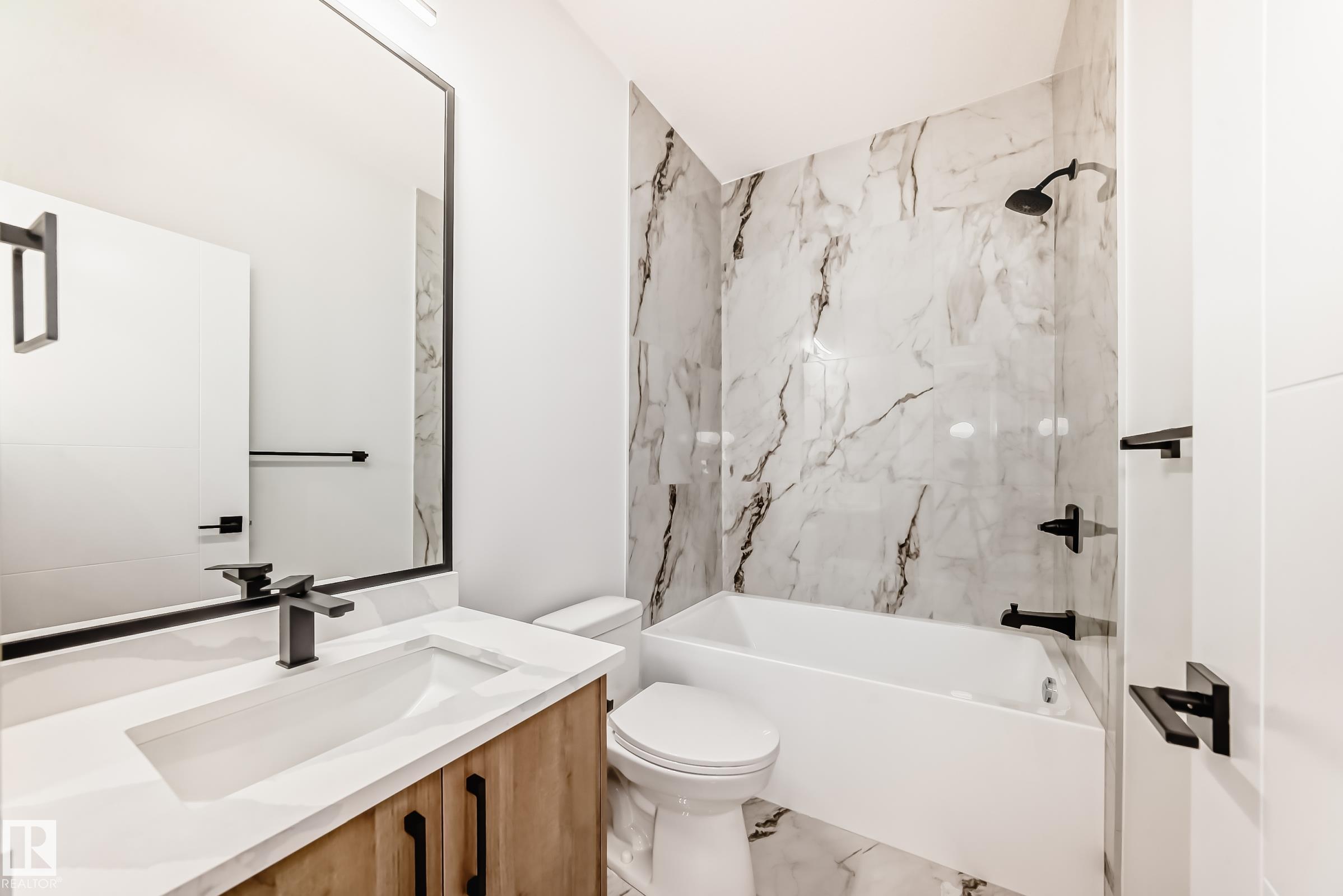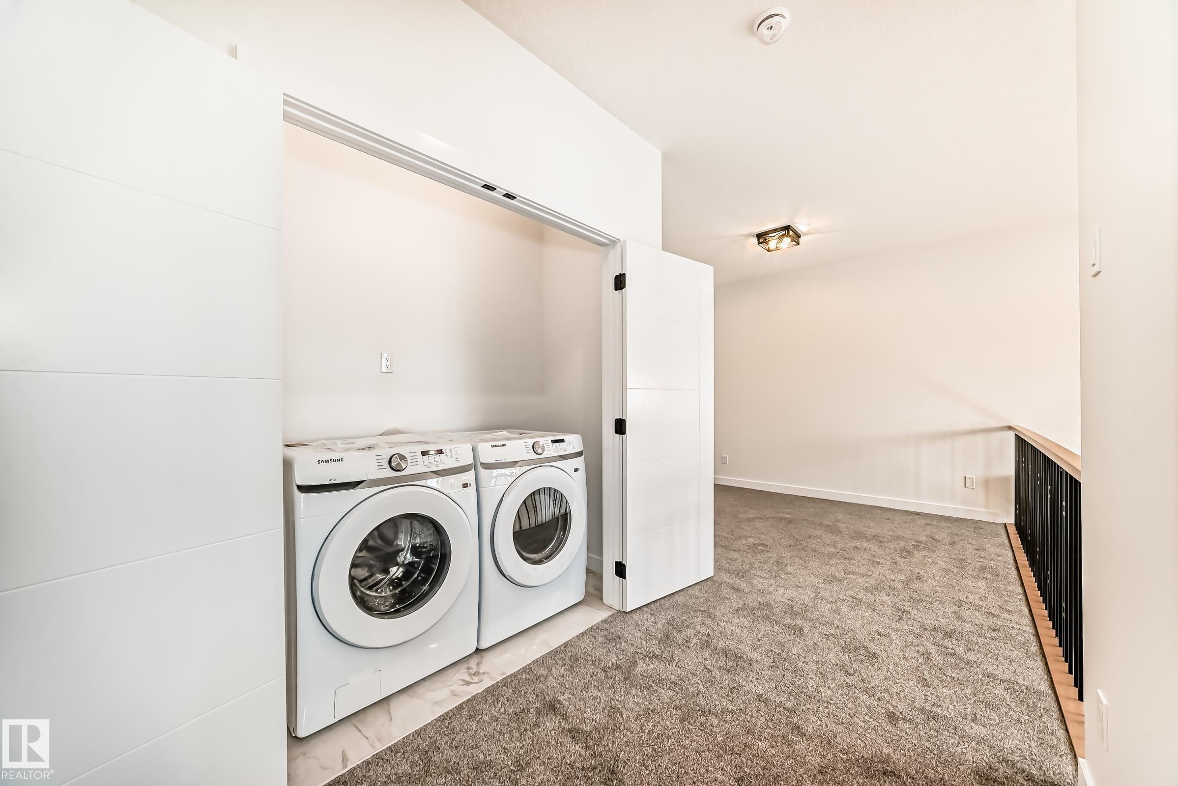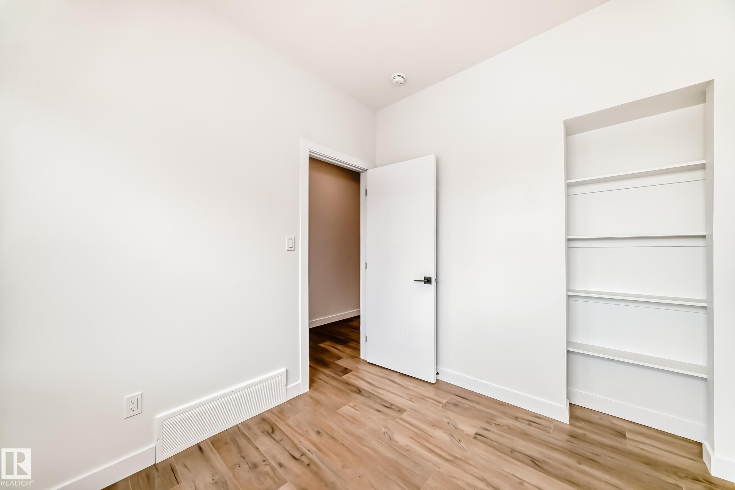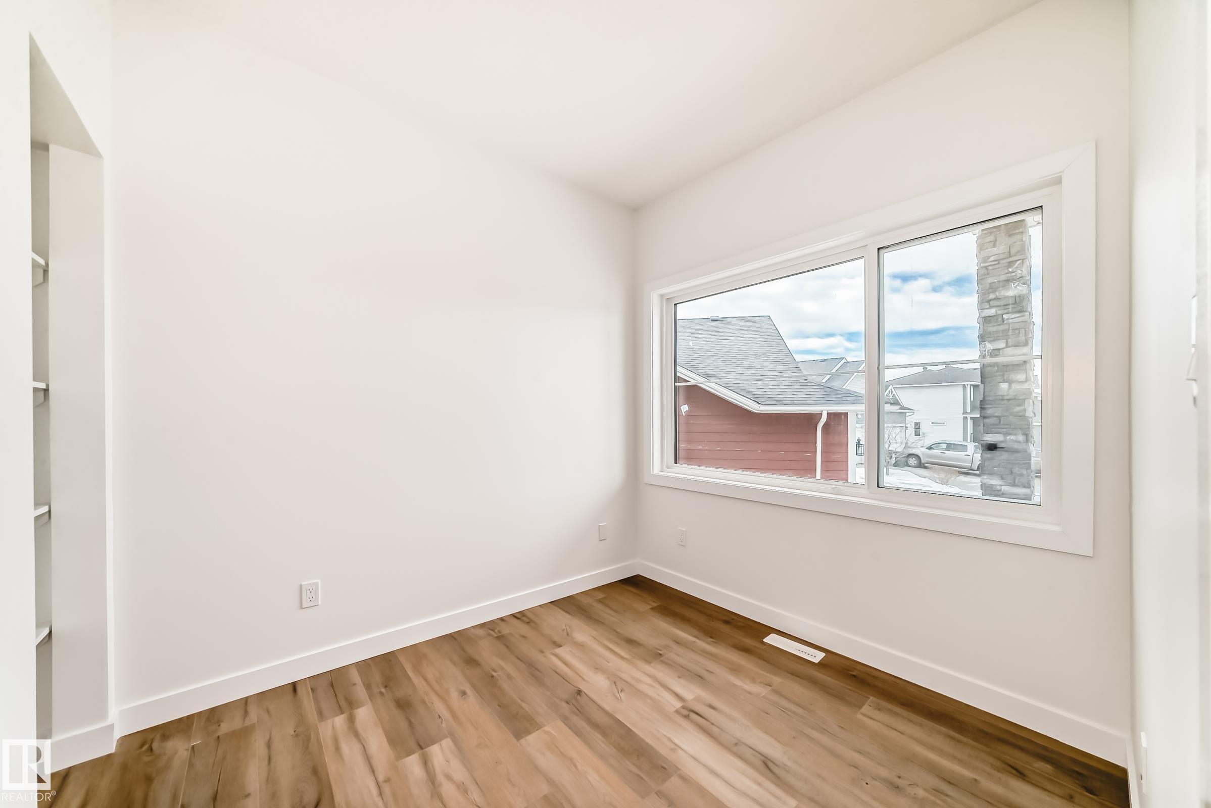 Welcome to this beautifully upgraded half duplex located on a rare large pie-shaped lot in the heart of Hilldowns. Offering over 1,730 sq. ft. of modern, functional living space, this home features an impressive open-to-below living room, creating a bright and airy first impression. The main floor showcases a stylish kitchen with center island, spacious dining area, and a convenient mudroom with direct access to the double attached garage. A main-floor bedroom/den and full bathroom make this layout ideal for guests, a home office, or multi-generational living. Upstairs, you'll find three generously sized bedrooms, including a spacious primary suite with walk-in closet and private ensuite, along with a bonus room and upper-floor laundry for added convenience. The home also offers a separate side entrance and two large basement windows, providing excellent potential for a future basement suite. Ideally located close to schools, parks, walking trails, shopping, and the transit centre, with quick access to