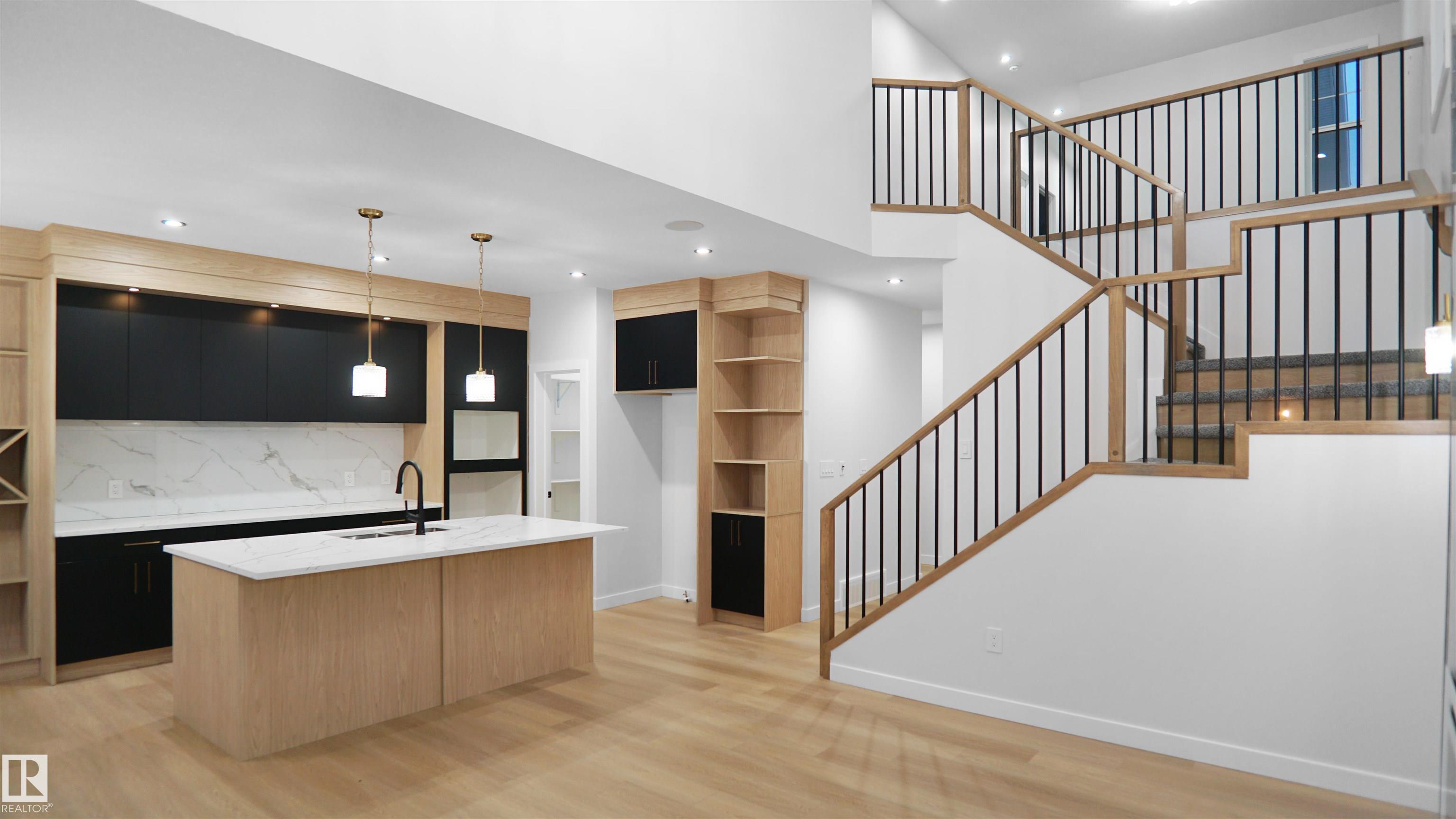 UPGRADED HOME IN THE COMMUNITY OF MCLAUGHLIN! This home boasts 4 bedrooms, 2.5 full baths, bonus room & 9ft ceilings on all three levels. Main floor offers vinyl plank flooring, bedroom/den, family room with 9ft ceiling, fireplace. Kitchen, with modern high cabinetry, quartz countertops, island, wet bar, stainless steel appliances & walk-through pantry, is made for cooking family meals and entertaining. Spacious dinning area with ample sunlight is perfect for get togethers. The half bath finishes the main level. Walk up stairs to master bedroom with 5 piece ensuite/spacious walk in closet, 2 bedrooms, full bath, laundry and bonus room. Unfinished basement with separate entrance and roughed in bathroom is waiting for creative ideas. Public transit to Edmonton, & more than 40 km of trails, your dream home home awaits. DECK/TRIPLE PANE WINDOWS/ GAS HOOKUP ON DECK/ GAS HOOK UP IN GARAGE.