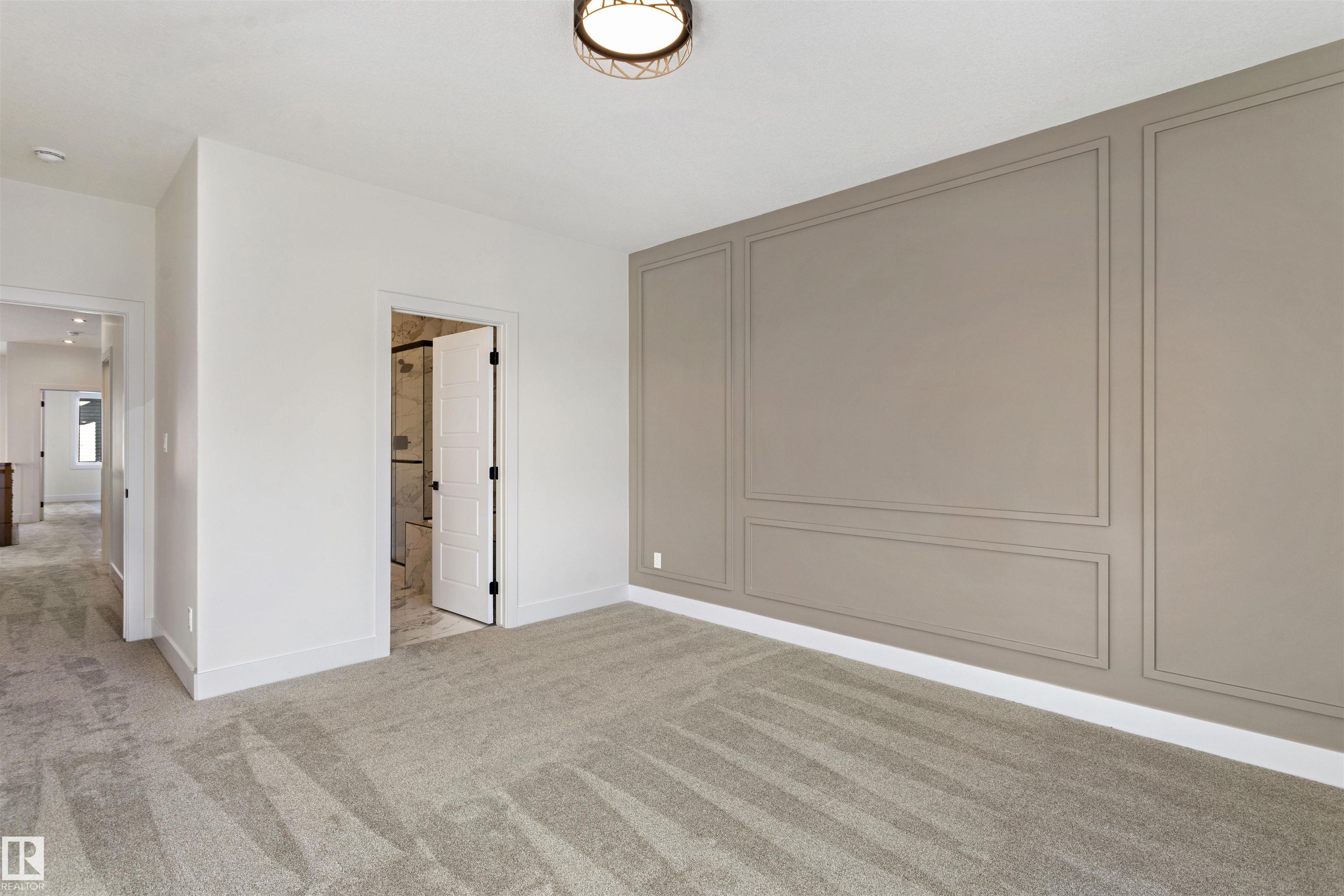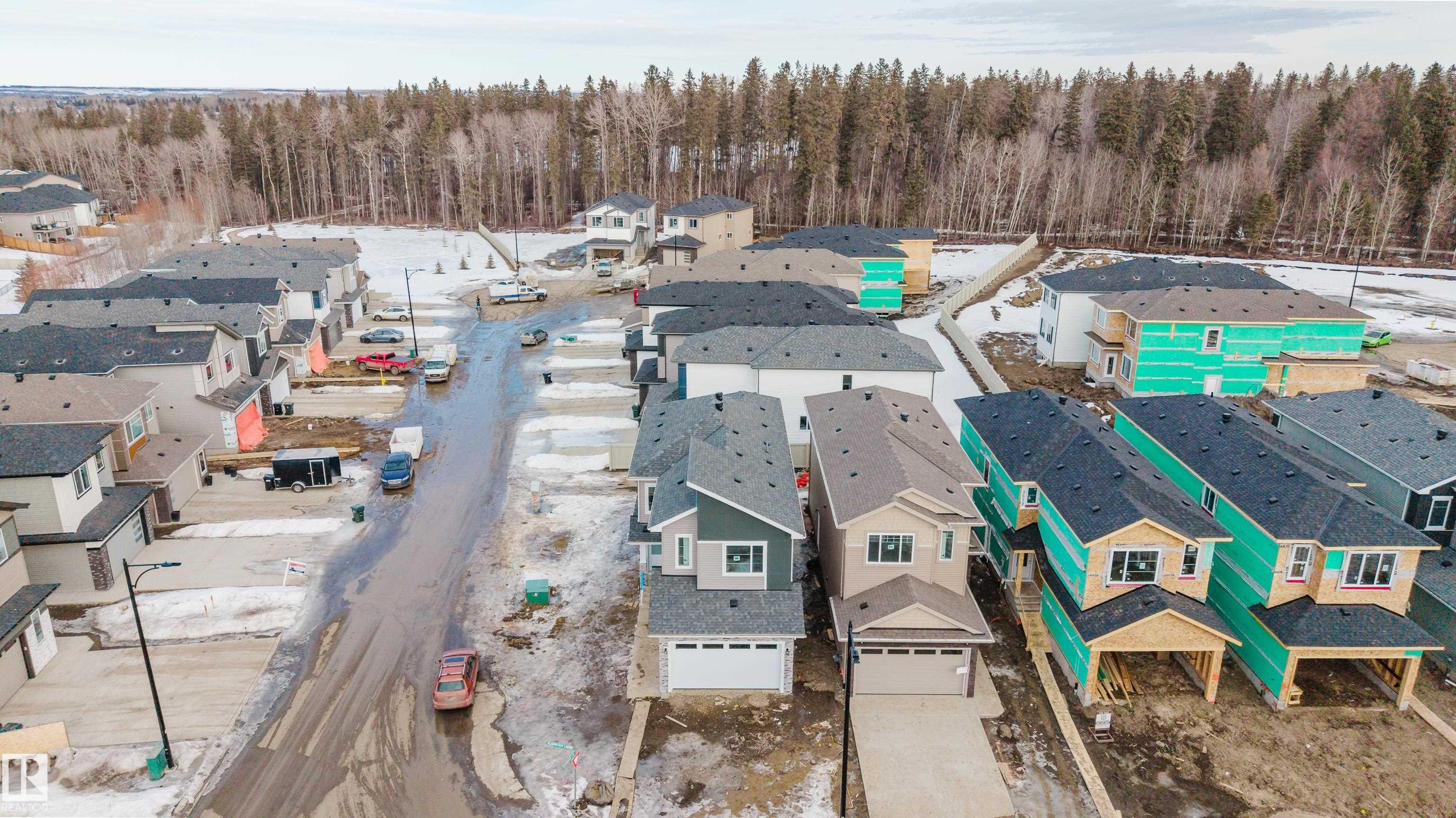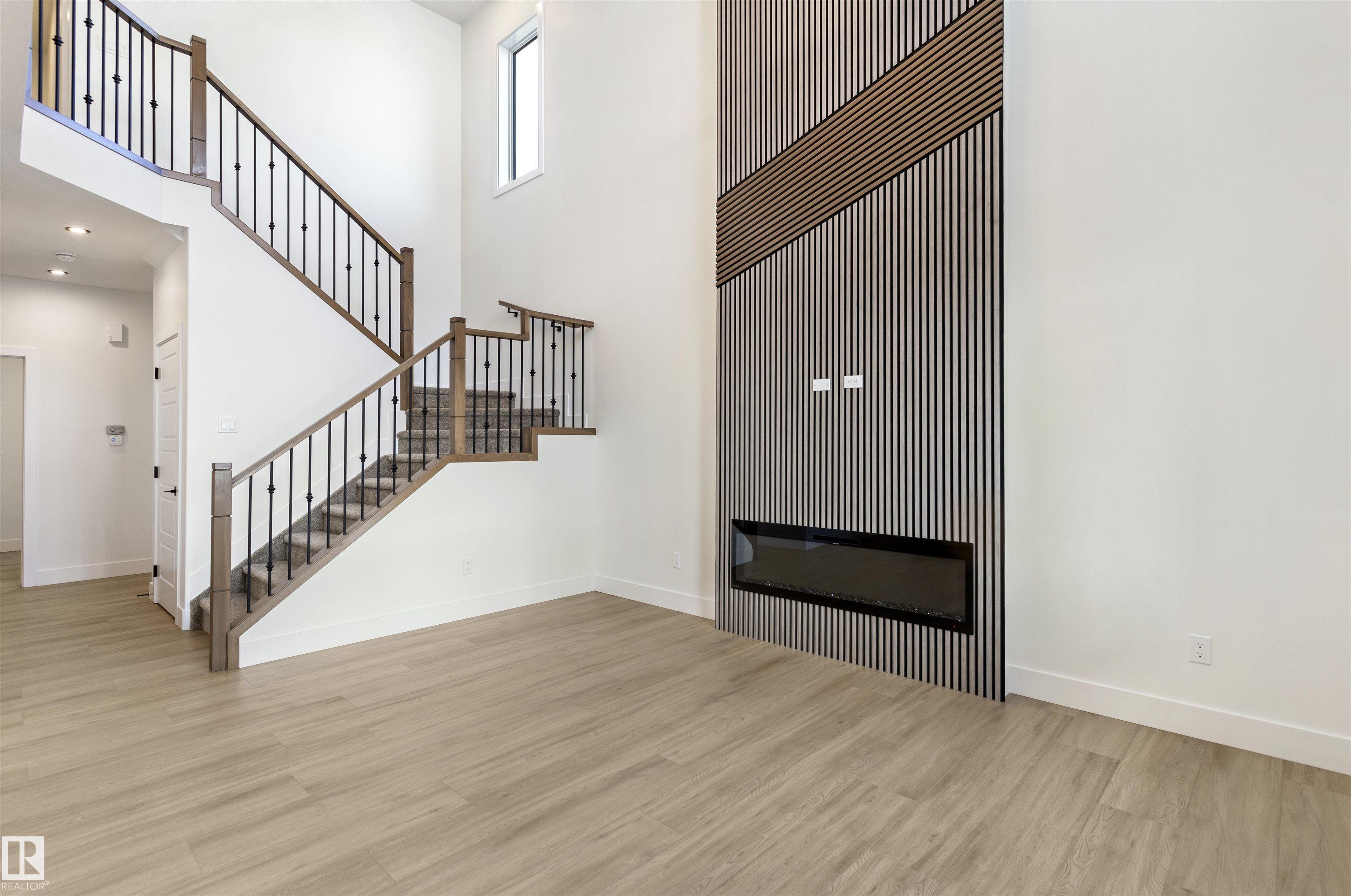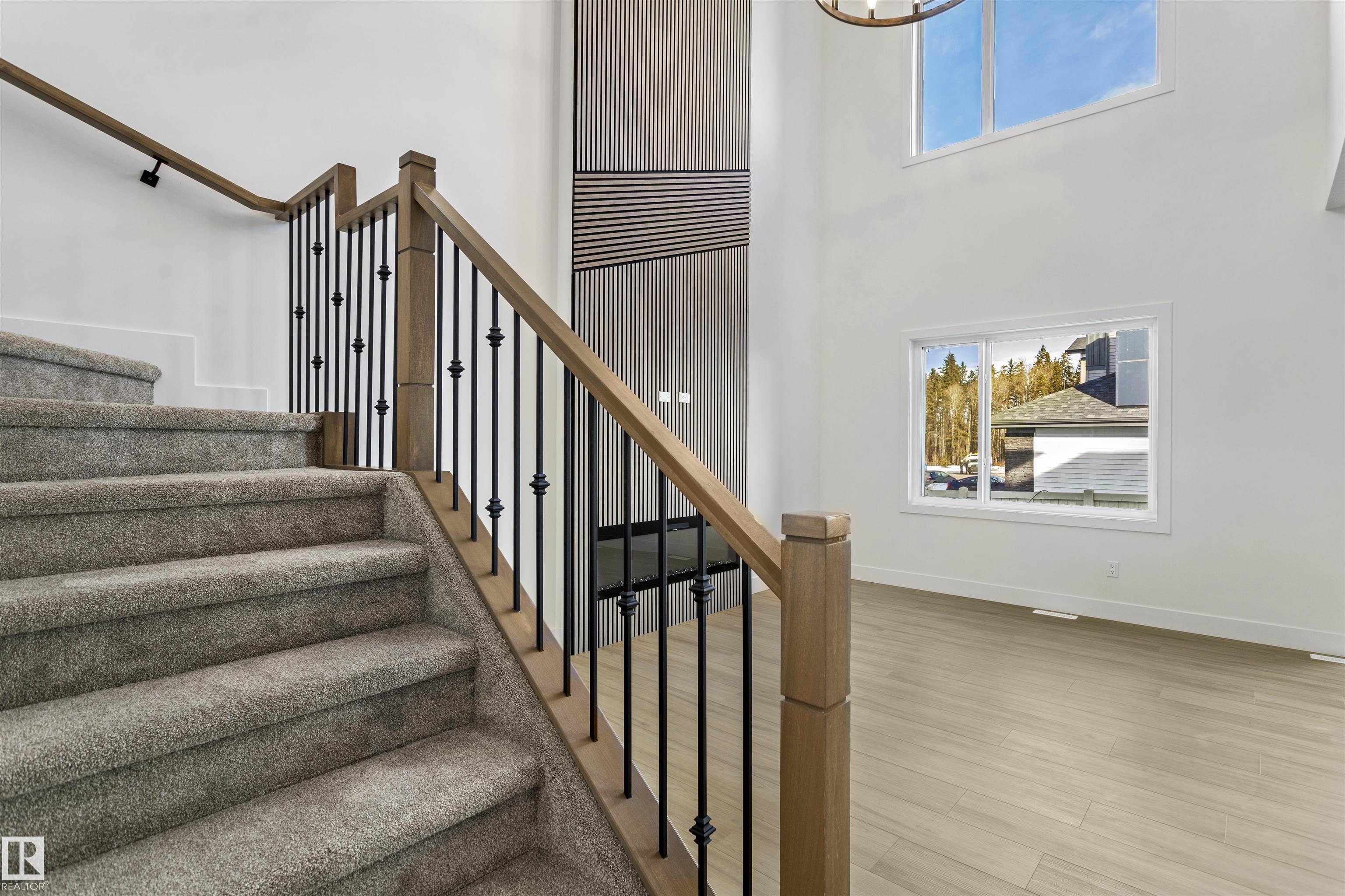 Welcome to this brand new home in the desirable McLaughlin community of Spruce Grove, perfectly situated on a prime corner lot near scenic walking trails and beautiful green spaces. Thoughtfully designed for modern family living, this home offers 4 bedrooms and 3 full bathrooms, including a convenient main-floor bedroom with a full bath featuring a standing shower--ideal for guests or multi-generational living. The open-to-below living room with a fireplace creates a bright and impressive focal point, while the upper level features three spacious bedrooms, a versatile bonus room, and the convenience of upstairs laundry. The extended kitchen with a walk-in pantry provides ample space for cooking and entertaining, and the double attached garage plus side entrance to the basement offer excellent functionality and future development potential. This stunning property combines style, space, and an unbeatable location.