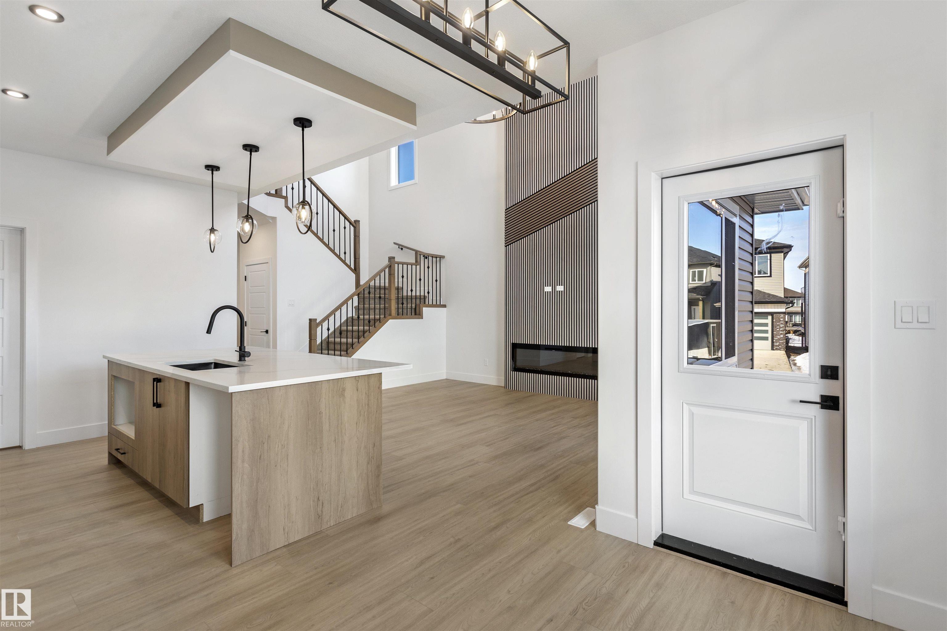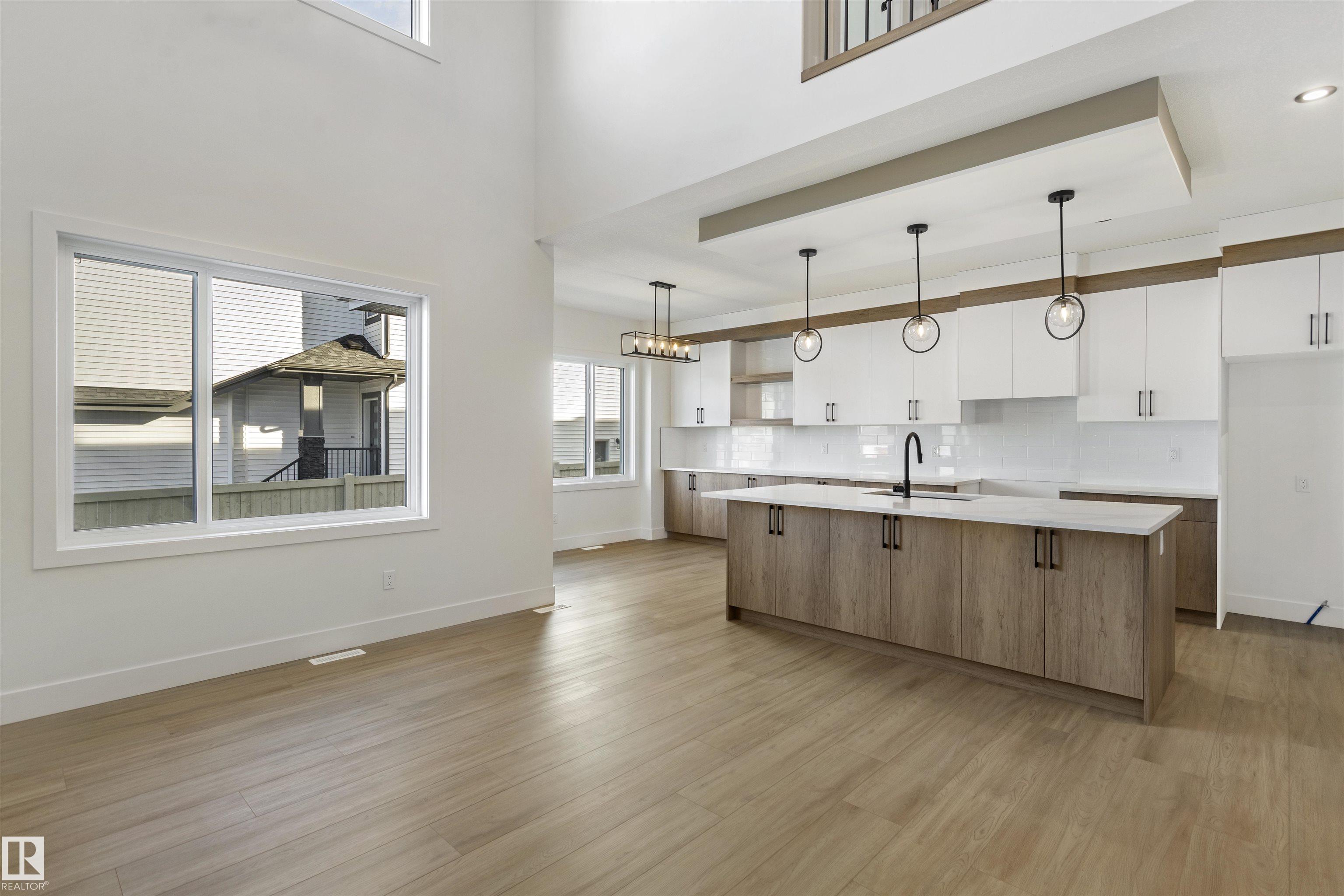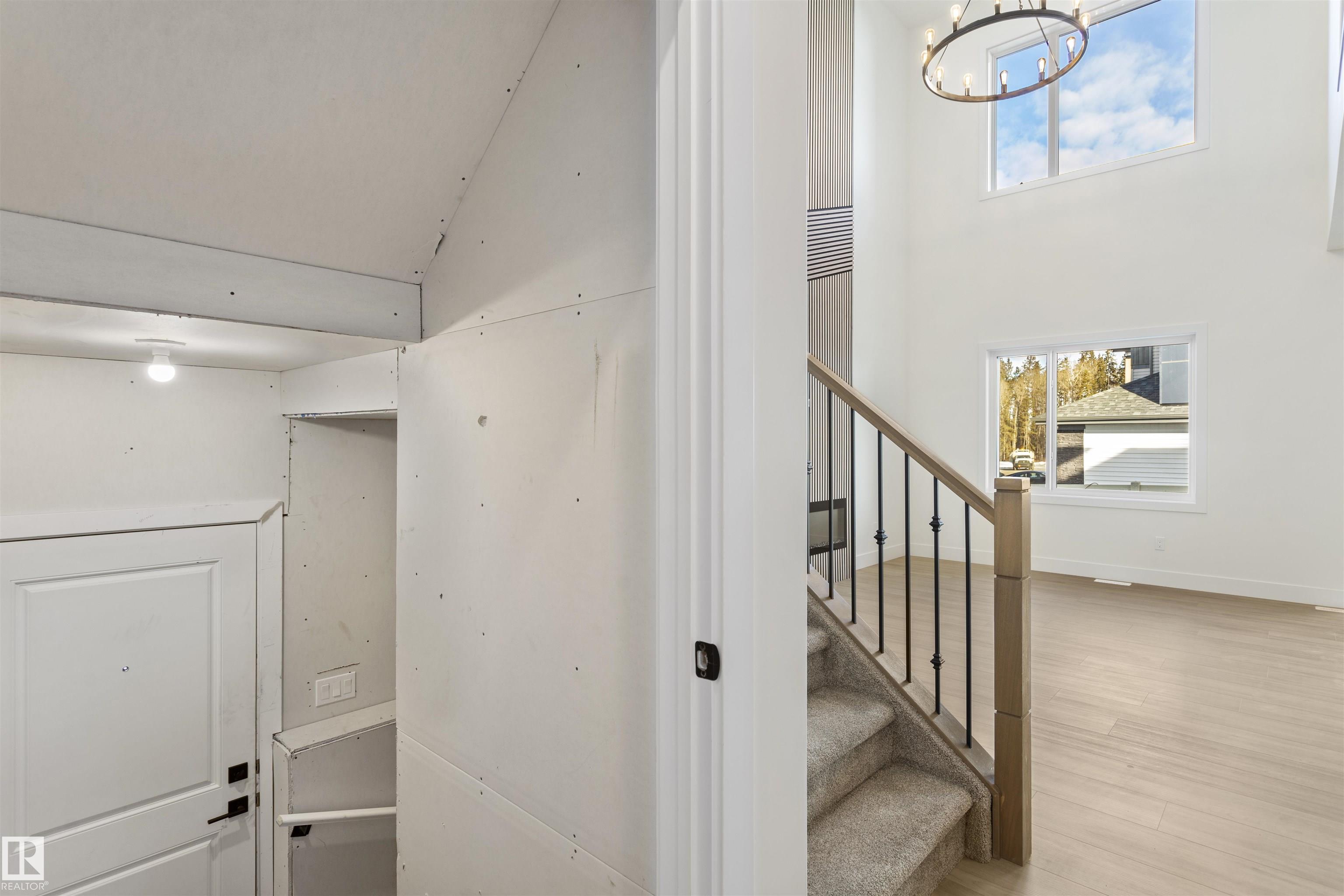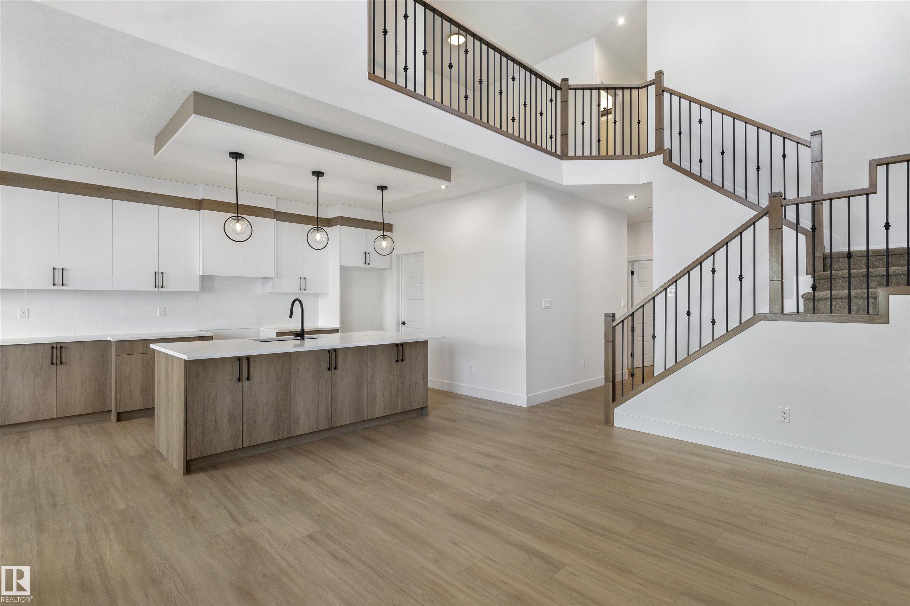 Welcome to this brand new home in the desirable McLaughlin community of Spruce Grove, perfectly situated on a prime corner lot near scenic walking trails and beautiful green spaces. Thoughtfully designed for modern family living, this home offers 4 bedrooms and 3 full bathrooms, including a convenient main-floor bedroom with a full bath featuring a standing shower--ideal for guests or multi-generational living. The open-to-below living room with a fireplace creates a bright and impressive focal point, while the upper level features three spacious bedrooms, a versatile bonus room, and the convenience of upstairs laundry. The extended kitchen with a walk-in pantry provides ample space for cooking and entertaining, and the double attached garage plus side entrance to the basement offer excellent functionality and future development potential. This stunning property combines style, space, and an unbeatable location.
