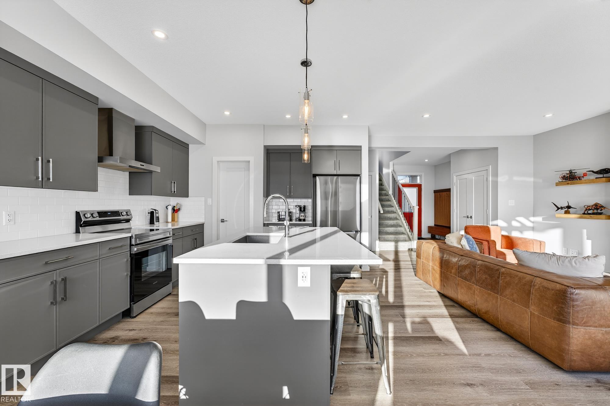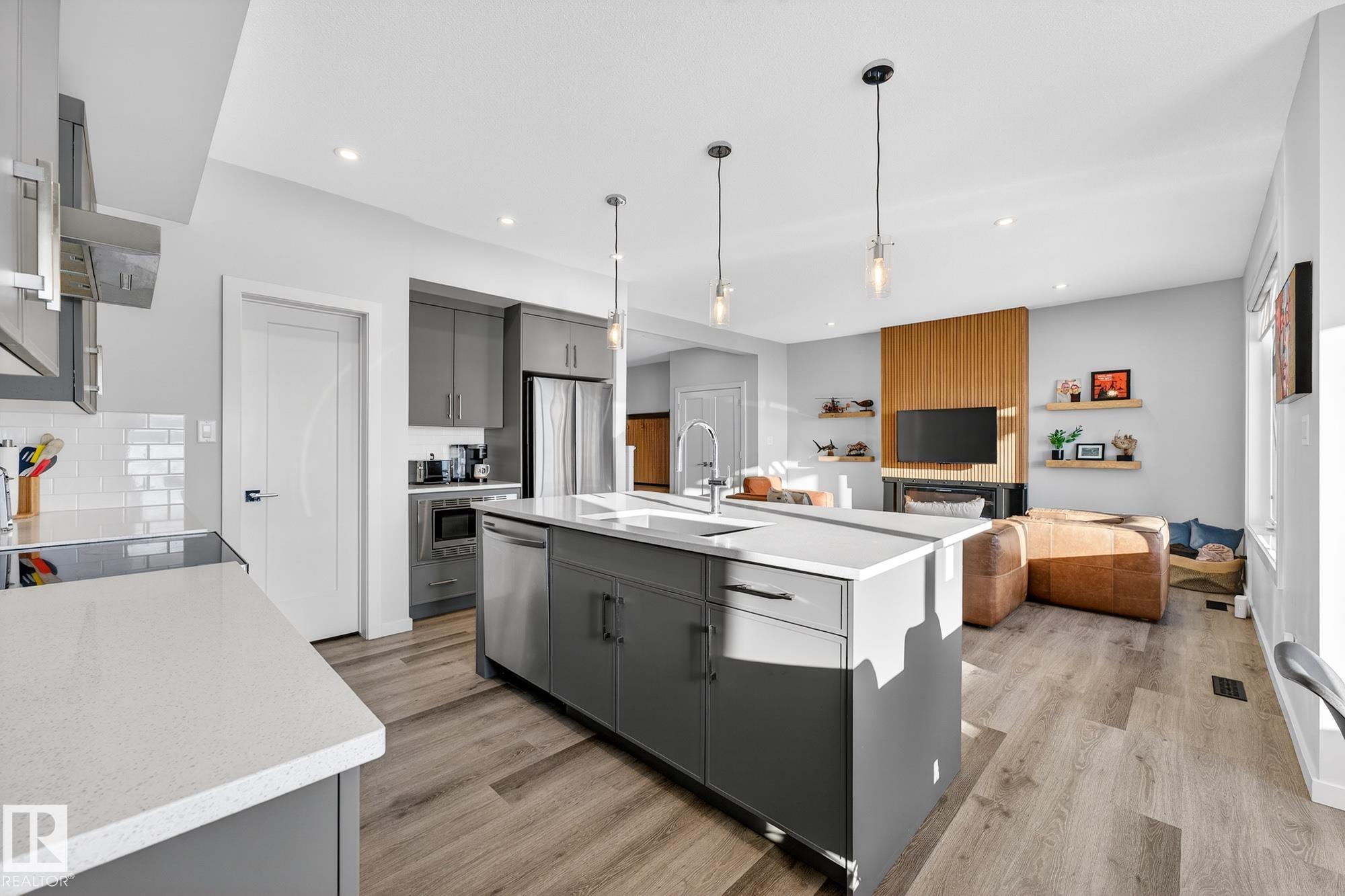 Welcome Home! This Stunning 2-Storey Walk-Out backs onto Beautiful Green Space and Creek! You can hear the relaxing sounds of the creek and enjoy the view while sitting under the perfect Gazebo on your spacious upper deck! This home is PRISTINE and the main floor boasts a beautiful open concept living area with Luxury Vinyl Plank Flooring, Quartz Countertops, Fireplace Feature Wall, Stainless Steel Applicances, Soaring Windows, Walk-Thru Pantry with perfect Laundry Area! The Second Floor has a private Bonus Room, Huge Primary Bedroom with Beautiful En-Suite and Walk-In closet, 2 more Spacious Bedrooms and 4 piece Bath! The walk-out basement is unfinished but spacious and ready for your future development! The double attached garage has 8' doors to accomodate large vehicles! Upgrades include decorative feature walls, Blinds, Air Conditioner, Landscaped and Fenced Perfectly! Close to Prescott K-9 School, Shopping and quick access to Main Arterial Routes!! A Must See!!!