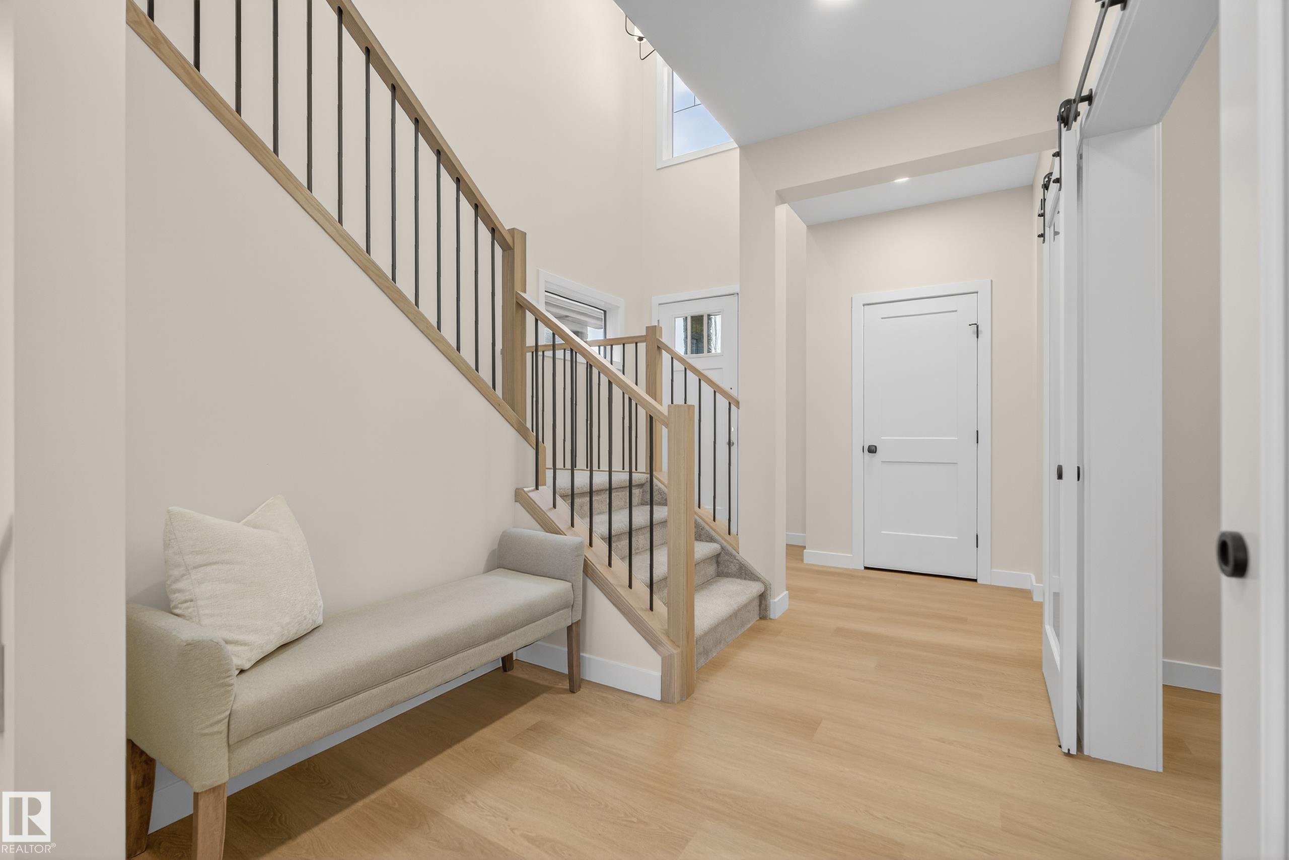 Beautiful brand new home by Legacy Signature Homes on a 34' pocket lot, loaded with upgrades and designed for modern living. Features an attached TRIPLE garage with floor drain, open concept main floor with a den, bright living room with electric fireplace, walkthrough pantry, and a custom mudroom with built-in storage. The kitchen and dining area flow seamlessly for both everyday living and entertaining. Upstairs offers a spacious bonus room, convenient laundry, and two bedrooms with a full 4-piece bath. The impressive primary suite includes a 5-piece ensuite with freestanding tub, walk-in shower, private water closet, and generous walk-in closet. Backing onto a field, this home offers peaceful views with walking access to the local school. Ideally located close to everyday amenities and still a short drive to all that Edmonton has to offer, this home perfectly blends comfort, style, and function.