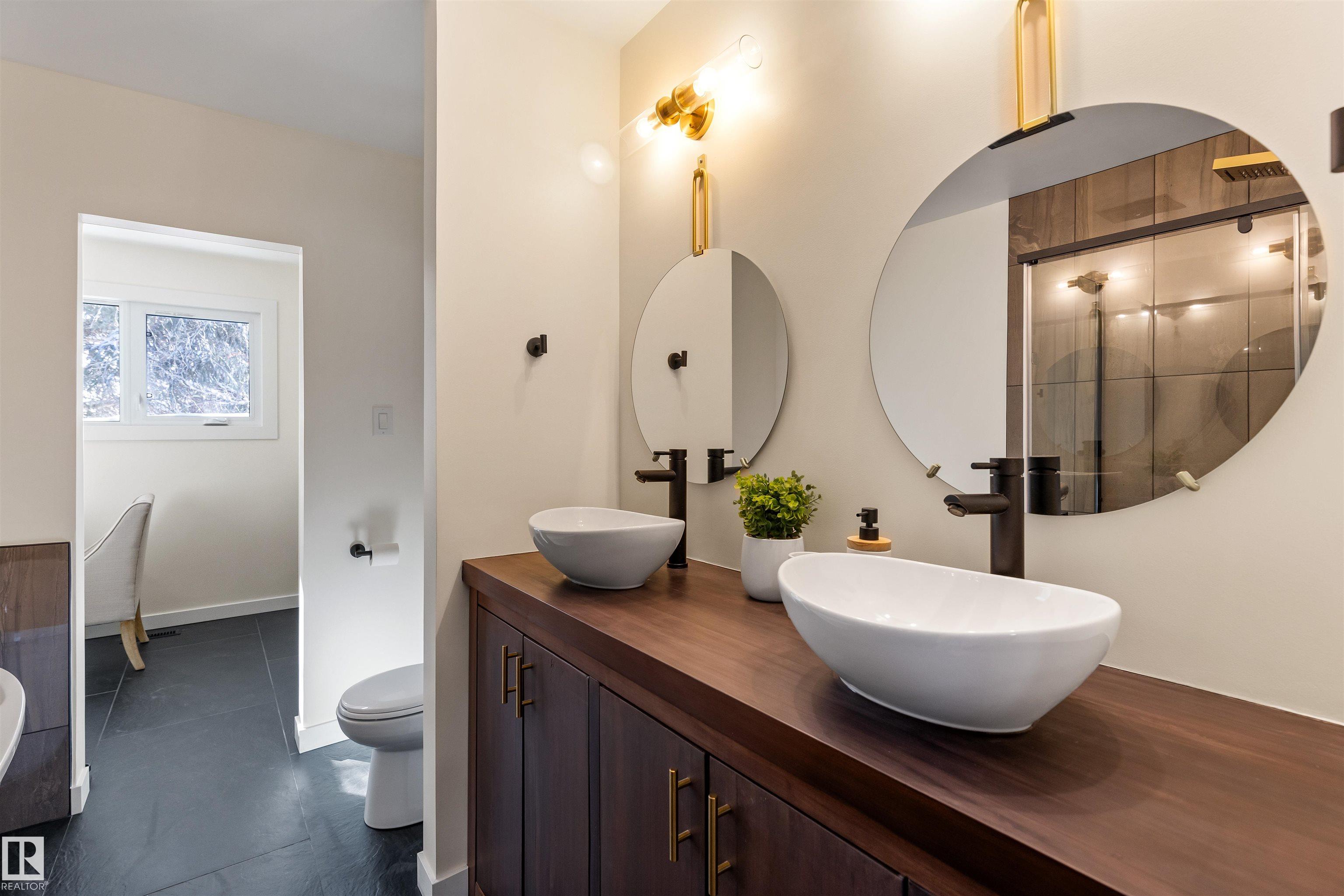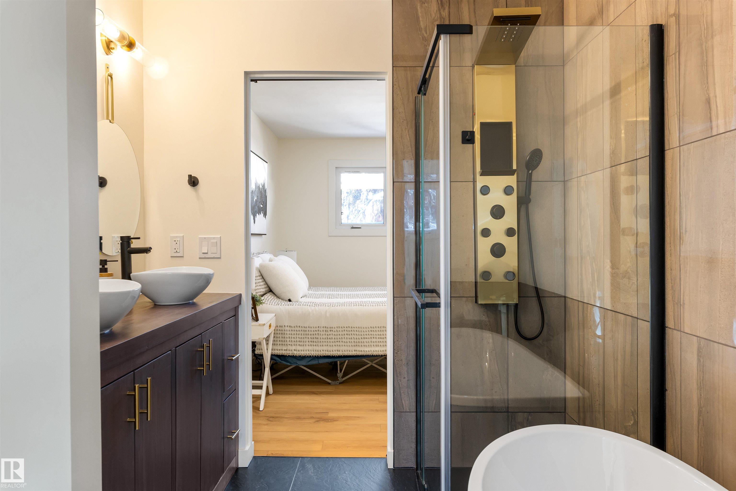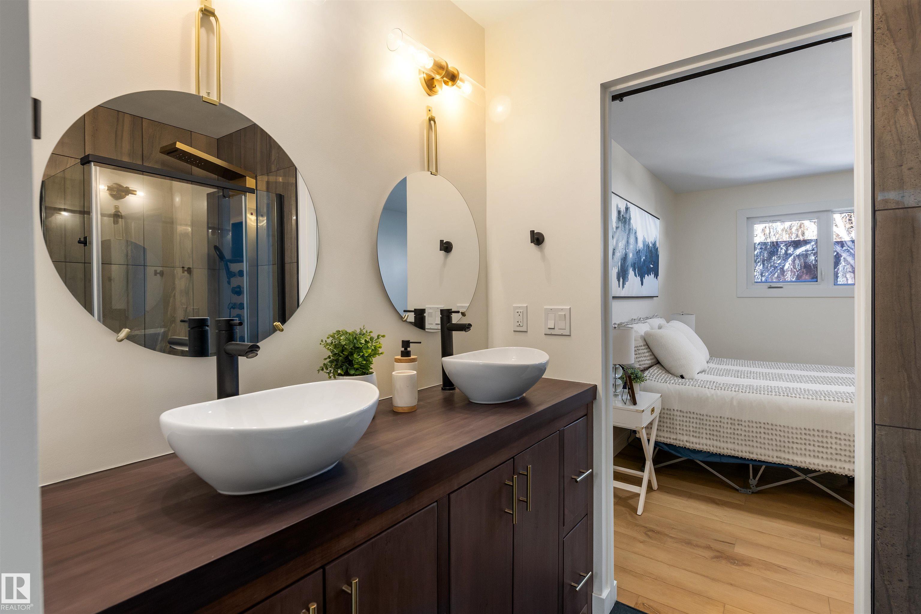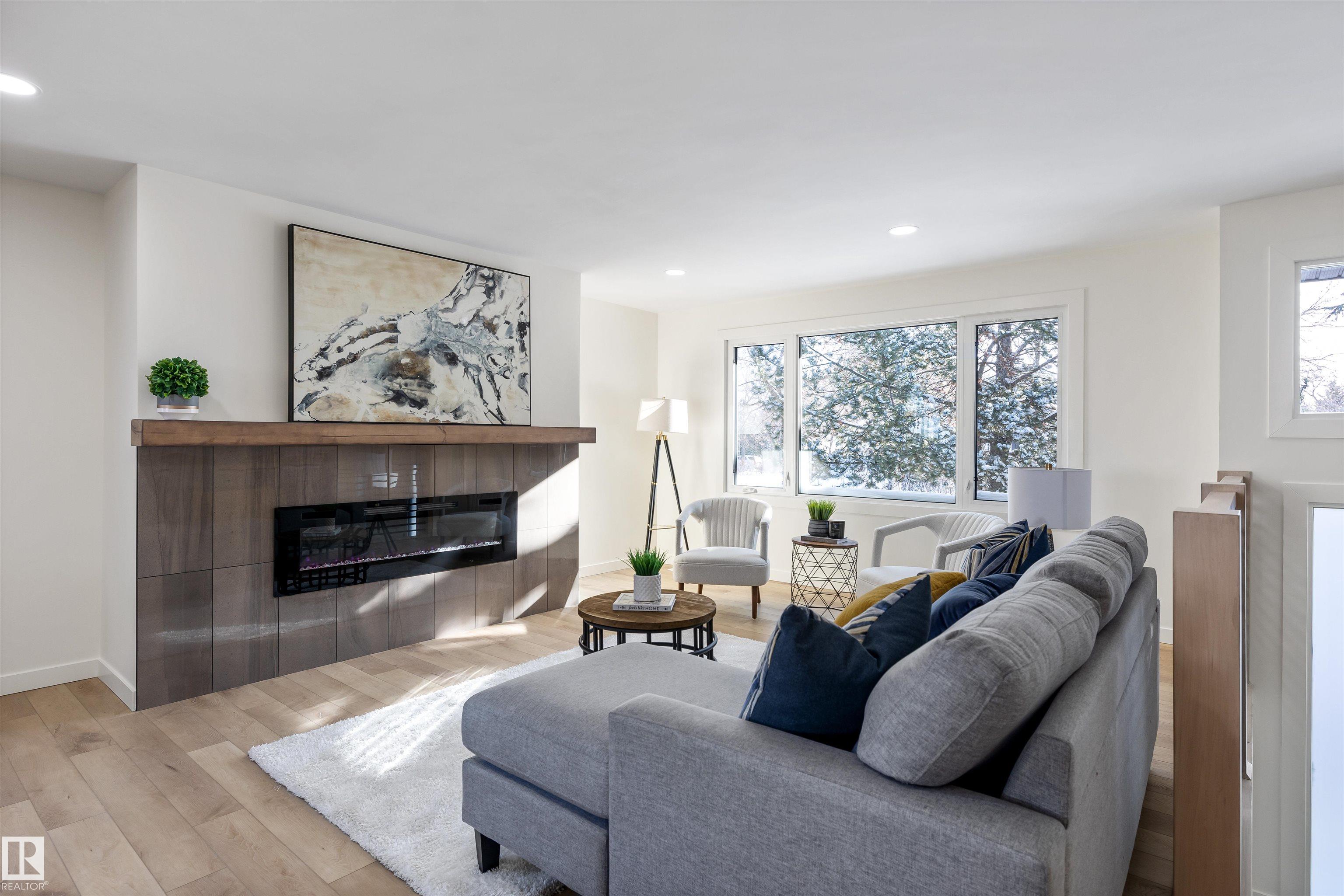 Completely RENOVATED from top to bottom, this beautifully updated bilevel offers over 1400 sqft of thoughtfully designed living space plus a FULLY FINISHED basement. The heart of the home is the custom kitchen featuring quartz countertops, a walk-in pantry, built-in coffee station and an extra large island with a hand carved wooden countertop, all flowing seamlessly into the open concept dining and living area with a gorgeous fireplace and an abundance of natural light through oversized windows. The main floor includes two bedrooms and two full baths, highlighted by a luxurious primary suite with a spa-inspired ensuite and walk-in closet. Downstairs you'll find a spacious rec room with bar area, two additional bedrooms, full bath and laundry. New vinyl plank flooring, upgraded electrical, new deck and an oversized double detached garage complete this move-in ready home--just unpack and enjoy.