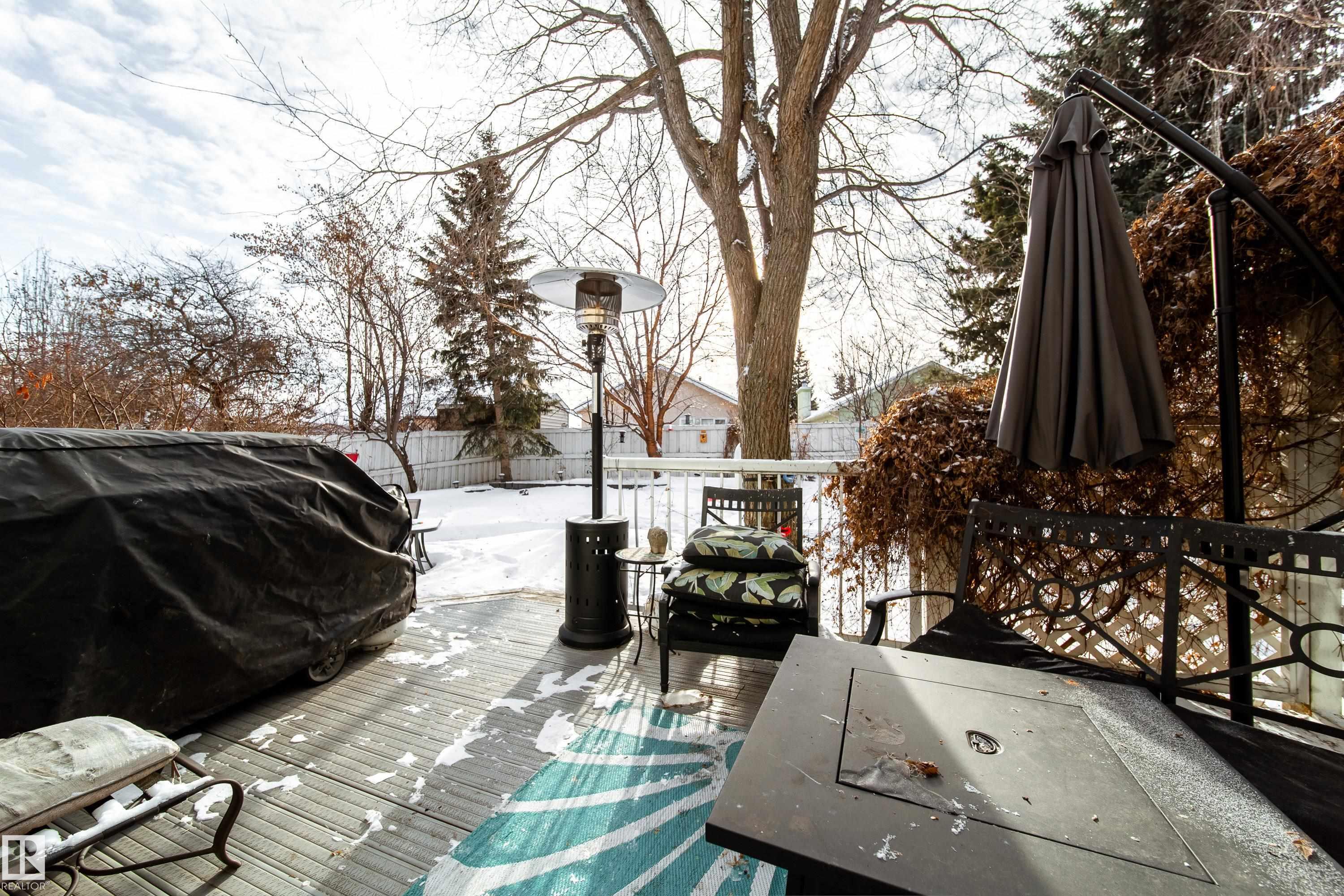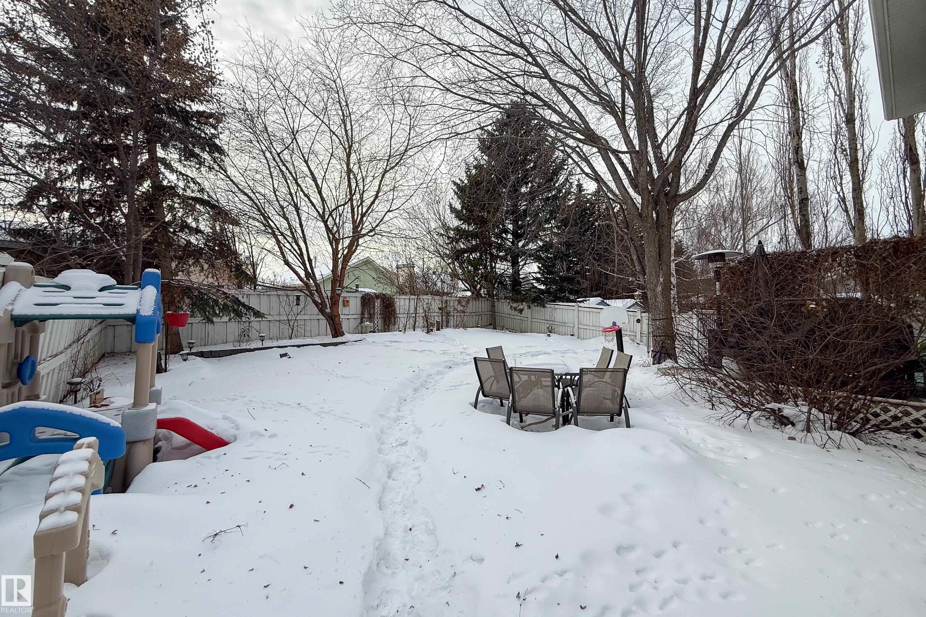 Located in the heart of Erin Ridge, this stylish 2-storey home sits on a quiet cul-de-sac and offers over 2,900 sq ft of finished living space with central A/C. The bright main level features vaulted ceilings, elegant arches, formal living and dining rooms, plus a cozy family room with gas fireplace overlooking the backyard. The sunny kitchen includes a central island, granite counters, walk-in pantry, and a patio door to the south-facing yard. A main-floor office, 2-piece bath, and laundry complete the level. Upstairs are three generous bedrooms, including a spacious primary suite with two closets, a full walk-in closet, and a spa-inspired ensuite with Jacuzzi tub. The fully developed basement adds a fourth bedroom, full bath, and a large L-shaped rec room with a second gas fireplace. The beautifully landscaped yard features a deck with gas line, cobblestone patio, concrete curbing, and a water fountain. An extra-wide driveway provides room for RV parking.