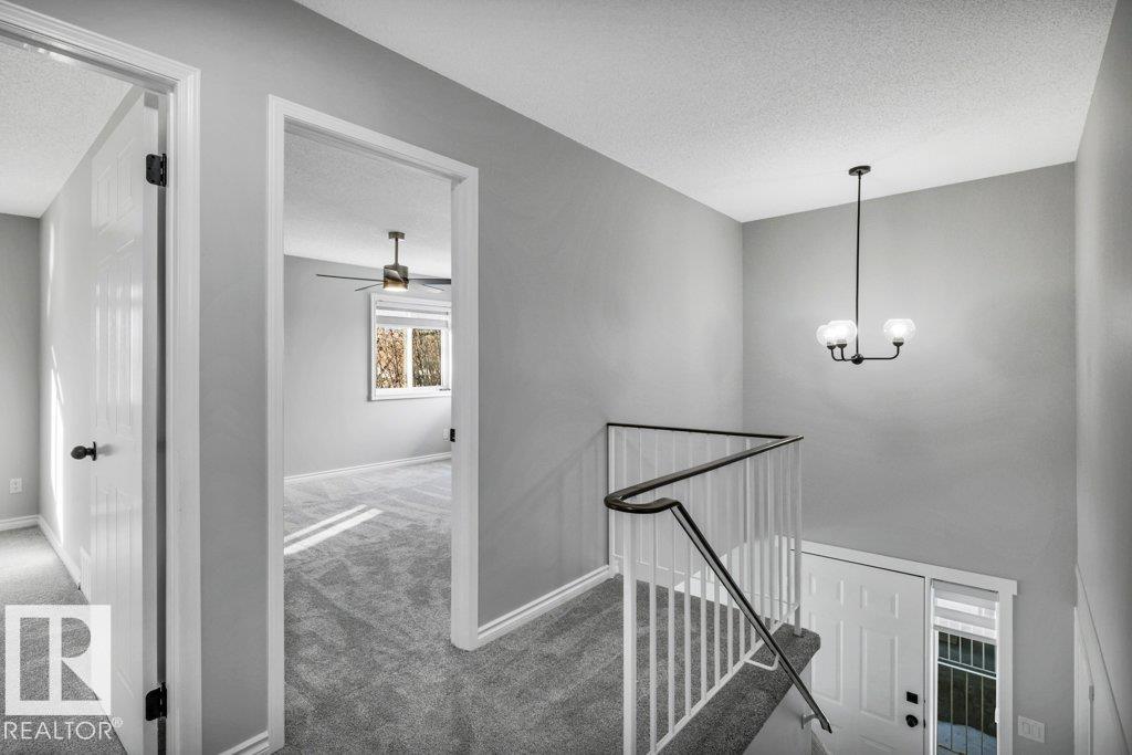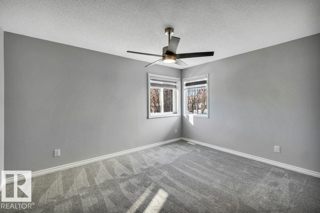 Welcome to your freshly updated nearly 1800 sq. ft. 2-storey townhouse in the beautiful community of The Gardens! This bright and inviting home offers a perfect blend of comfort and style, featuring 3 spacious bedrooms upstairs, including a lovely primary suite with a 3-piece ensuite. On the main floor, you'll find an additional bedroom or ideal home office, convenient main floor laundry, and a welcoming living area centered around a classic wood-burning fireplace. The modern kitchen showcases stainless steel appliances and quartz counter tops, ample storage, and plenty of counter space for cooking and entertaining. Large windows fill the home with natural light, enhancing its warm and open feel. Enjoy the convenience of a double attached garage and maintenance-free living--no shoveling or lawn care required! Perfectly located near parks, schools, and amenities, this home combines easy living with timeless charm in one of the most desirable areas of The Gardens.