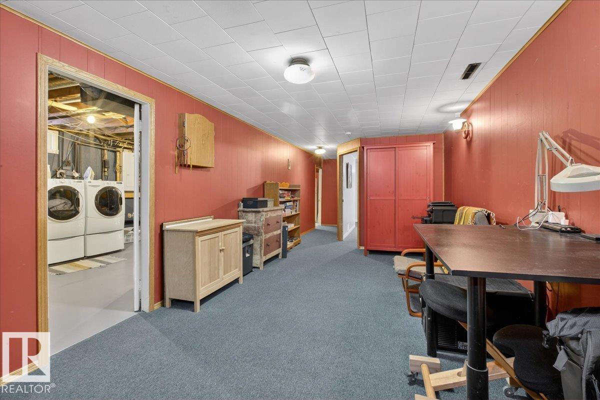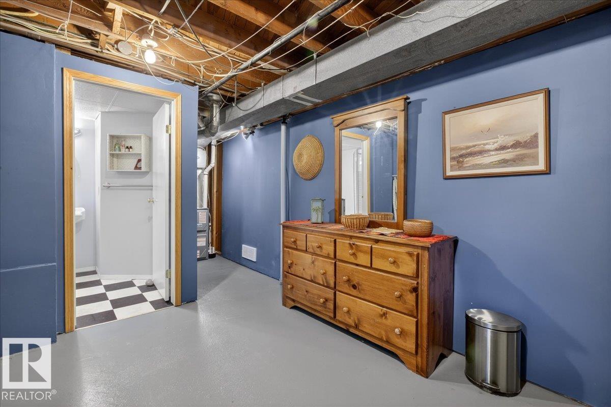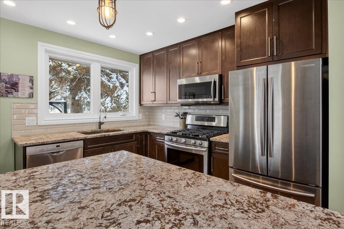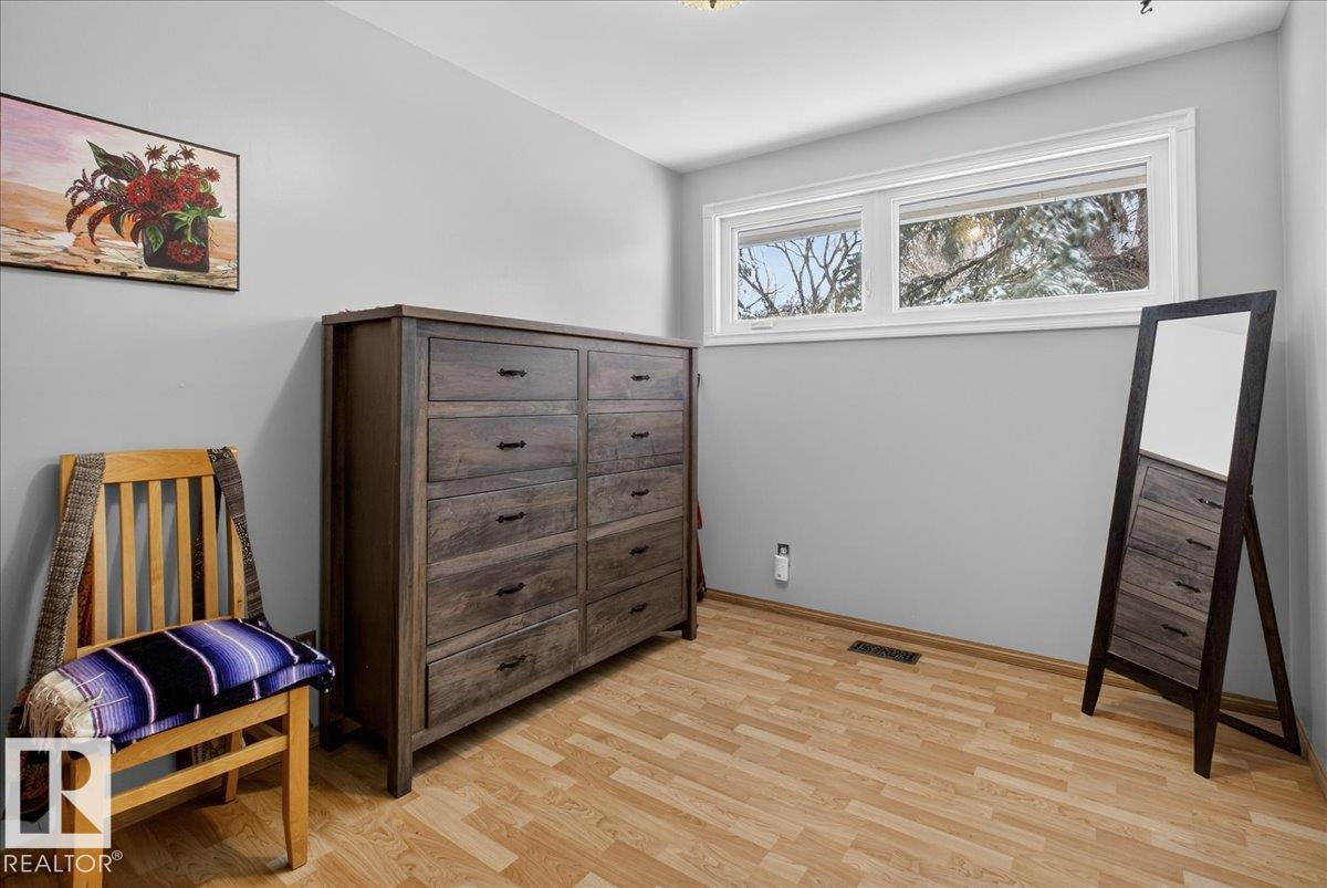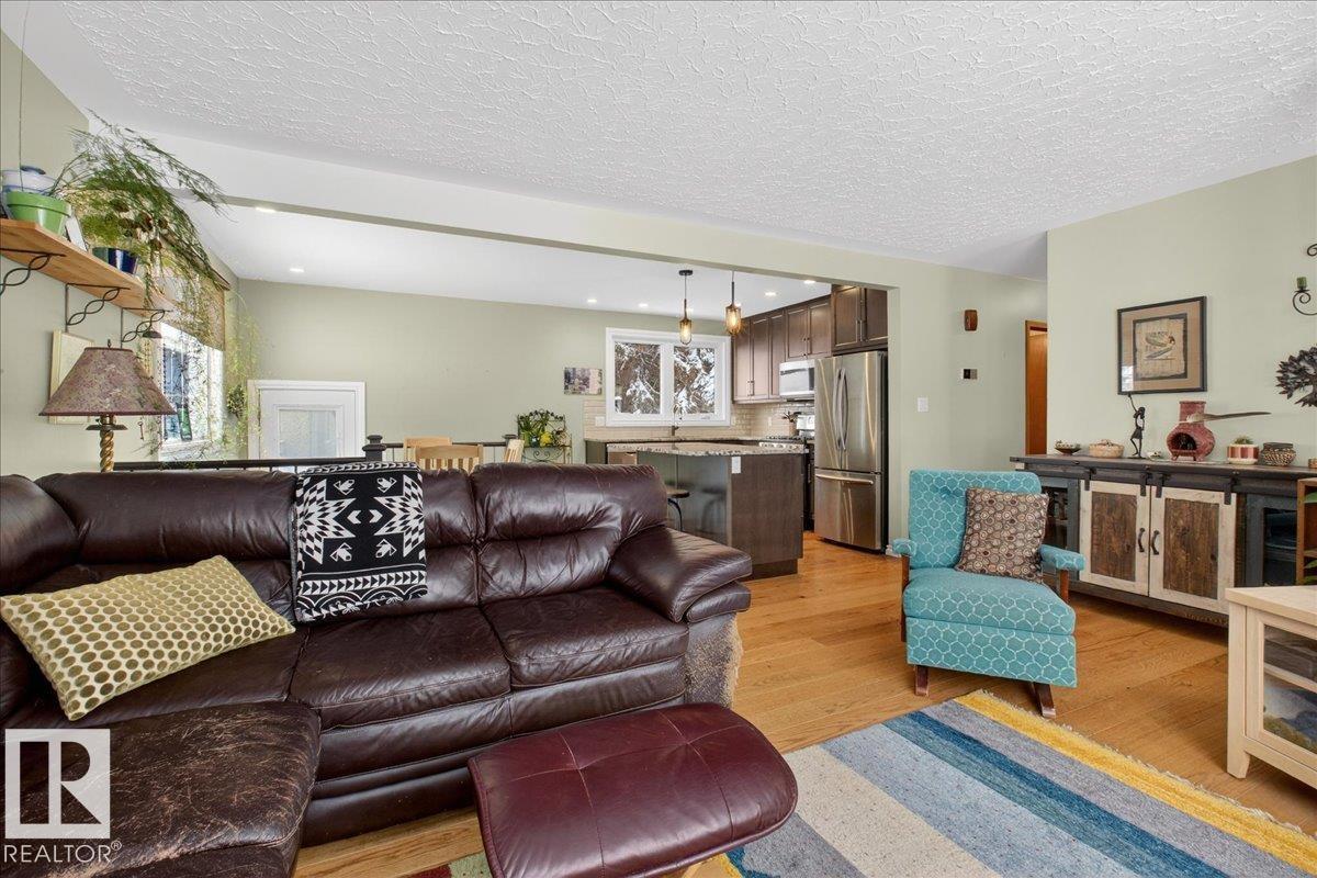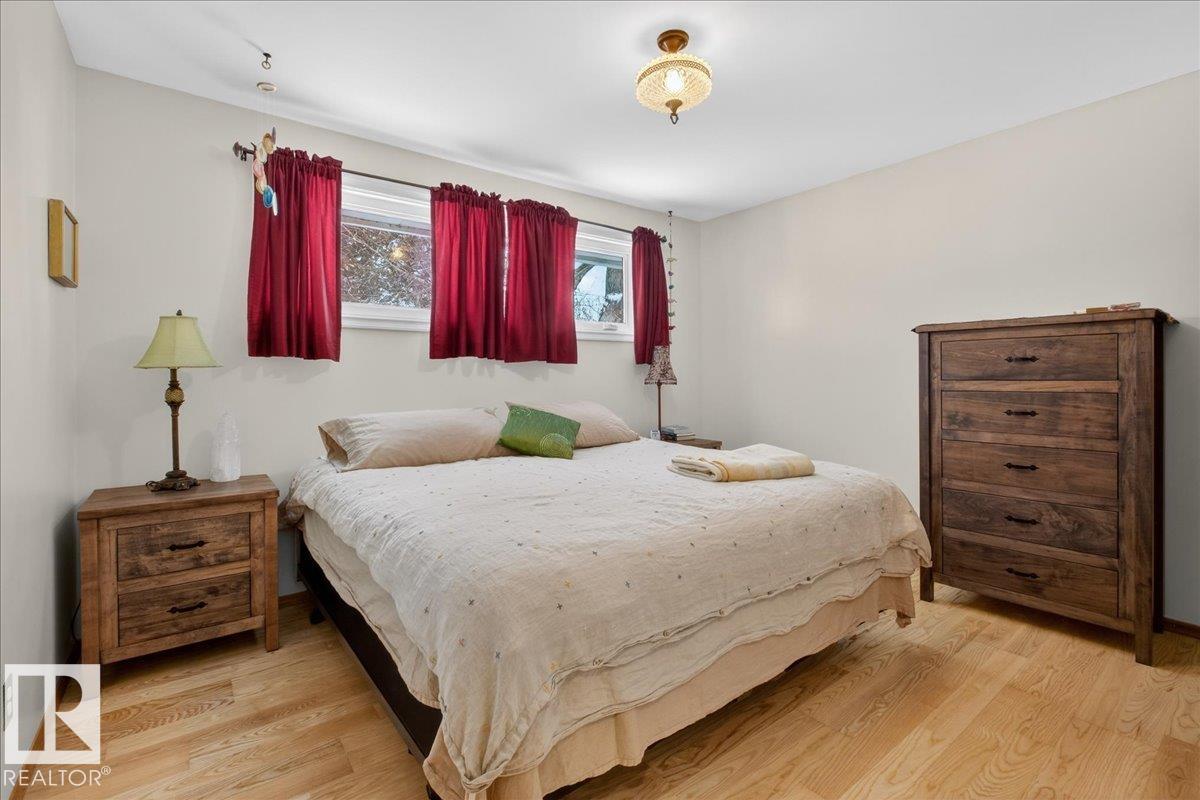 You are invited to discover this St Albert hidden treasure nestled amongst mature trees. You will love the serene park-like setting for this remodelled 3+1 bedroom bungalow on a quiet crescent in Grandin. The first impression upon entry is of warm and well-cared for home. The Kitchen was opened up to the living room and creates a sunny Great Room v ibe where family & friends will enjoy gathering for your special occasions. Kitchen reno is perfect with generous granite island, gas stove, subway tile backsplash, stainless steel appliances & engineered hardwood flooring. Plants seem to thrive both indoors and outdoors here and maybe your family will too! Basement development includes a 2nd bathroom, bedroom & large family room. Many upgrades including windows, electrical, furnace, entry doors, bathrooms & kitchen. Single car garage with extra storage shed attached. Enjoy a BBQ or sit around the firepit in your treed yard. See it...love it...move!