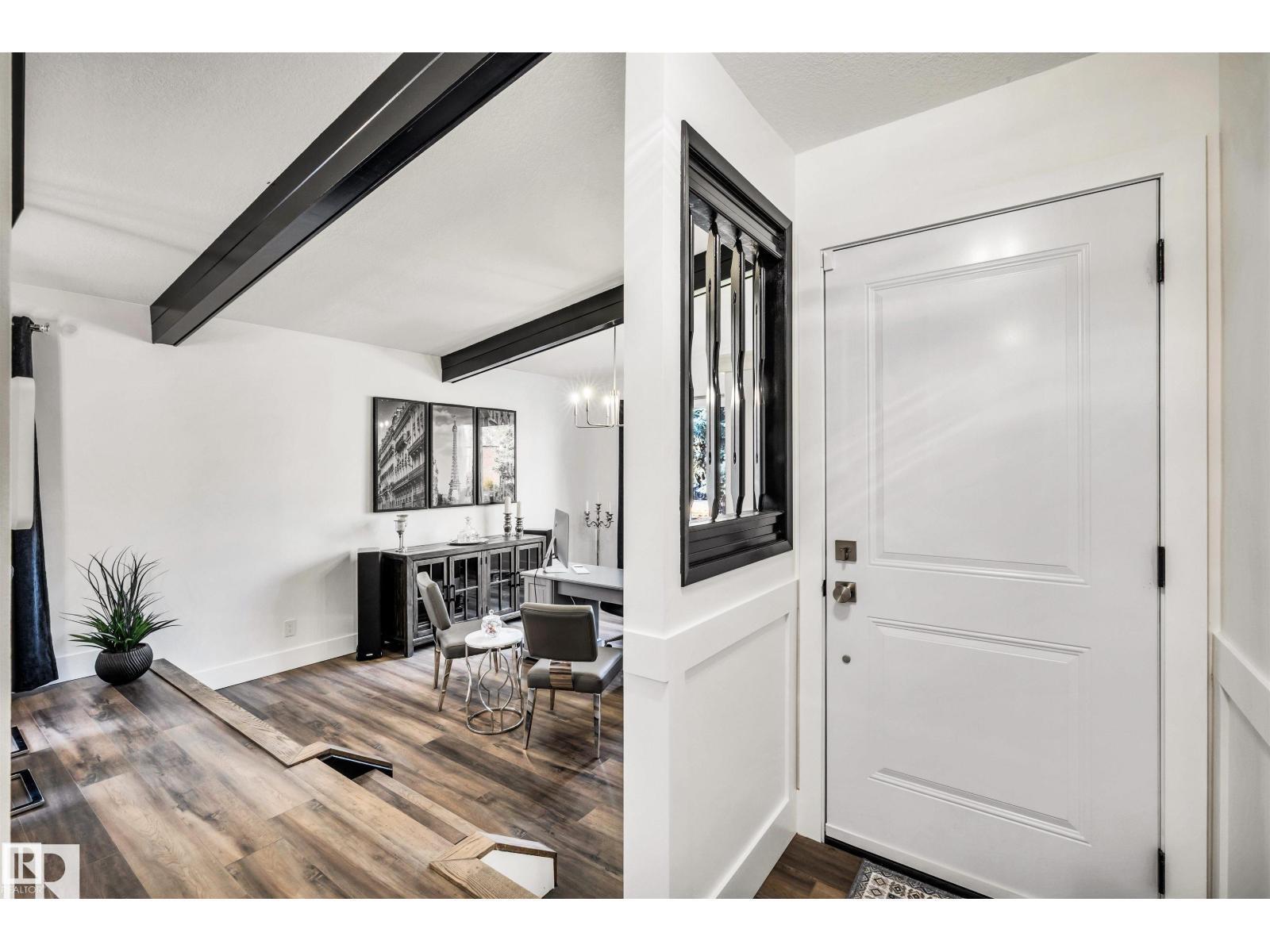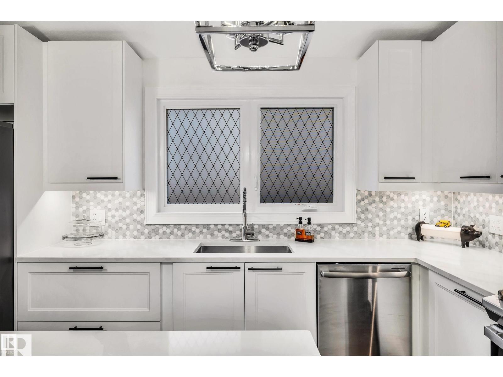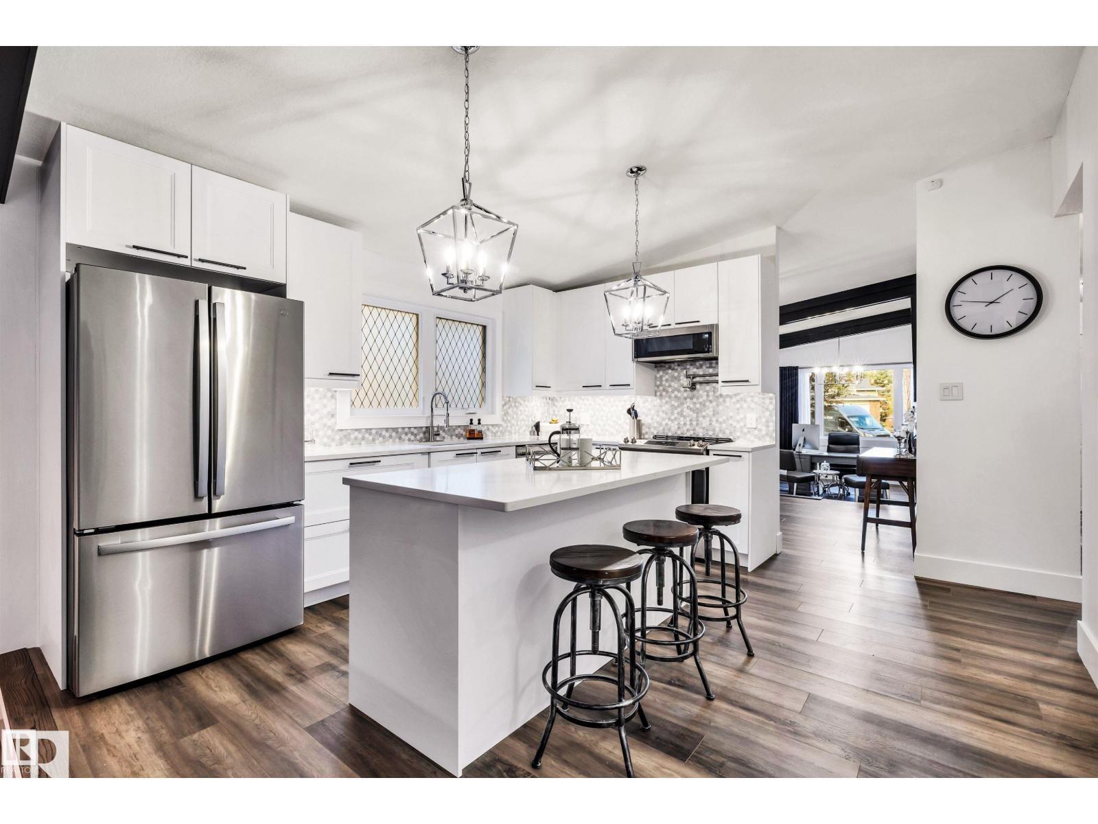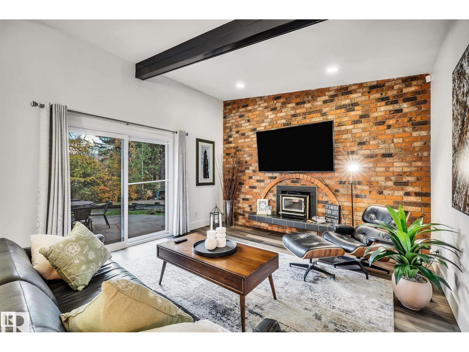 Welcome to this stunning, fully renovated 1,500+ sq. ft. bungalow, tucked away in a quiet cul-de-sac location. Exterior upgrades include a new driveway, walkways, doors, windows, paint, roof, & soffits. Step inside to a bright, spacious main floor with upgrades galore! The front living area & dining space lead to a beautiful new kitchen complete with a large island, porcelain tile backsplash, pot filler, high-end cabinetry, modern fixtures & appliances. The kitchen opens to a cozy family room with a warm brick-surround fireplace. The main level also offers generously sized bedrooms, including a spacious primary retreat with a walk-through closet & a brand-new 4-piece ensuite. The additional bathroom has been fully renovated to match the home's modern, high-end style. Major interior upgrades include a new furnace, hot water tank, all new plumbing, updated electrical, central A/C, & more. You're within walking distance of schools, an outdoor rink outdoor pool, shopping, and the St. Albert Farmers' Market.