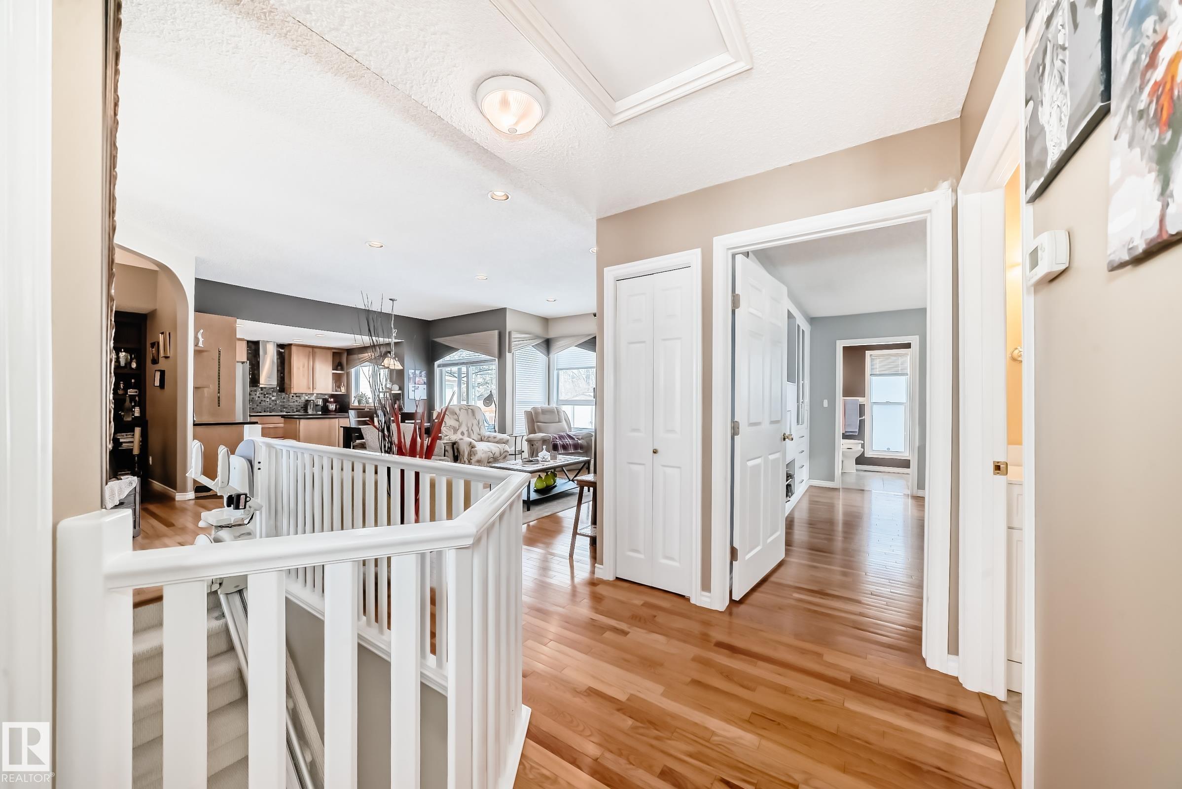 Welcome to this expansive bungalow in Heritage Lakes,offering just over 2,500 sq ft of beautifully designed living space. This 5-bedroom, 3 full-bath home features two living areas and a spacious rec room perfect for families & entertaining alike. Enjoy the sunny, south-facing backyard and deck, just steps from year-round walking trails. The front entry opens to a generous living room and formal dining area, creating an inviting first impression. The bright, airy kitchen features wood cabinetry, stainless steel appliances, a central island, and a cozy dinette. The family room showcases a large sitting area and craft space, ideal for everyday living and gatherings. The primary suite is a true retreat with built-in wardrobe cabinetry, a walk-in closet, large vanity, walk-in shower. 2 additional spacious bedrooms, full bath, & convenient main-floor laundry complete the level. Downstairs, discover the ultimate family space with a huge rec room & two large bedrooms--perfect for guests, teens, or a home office