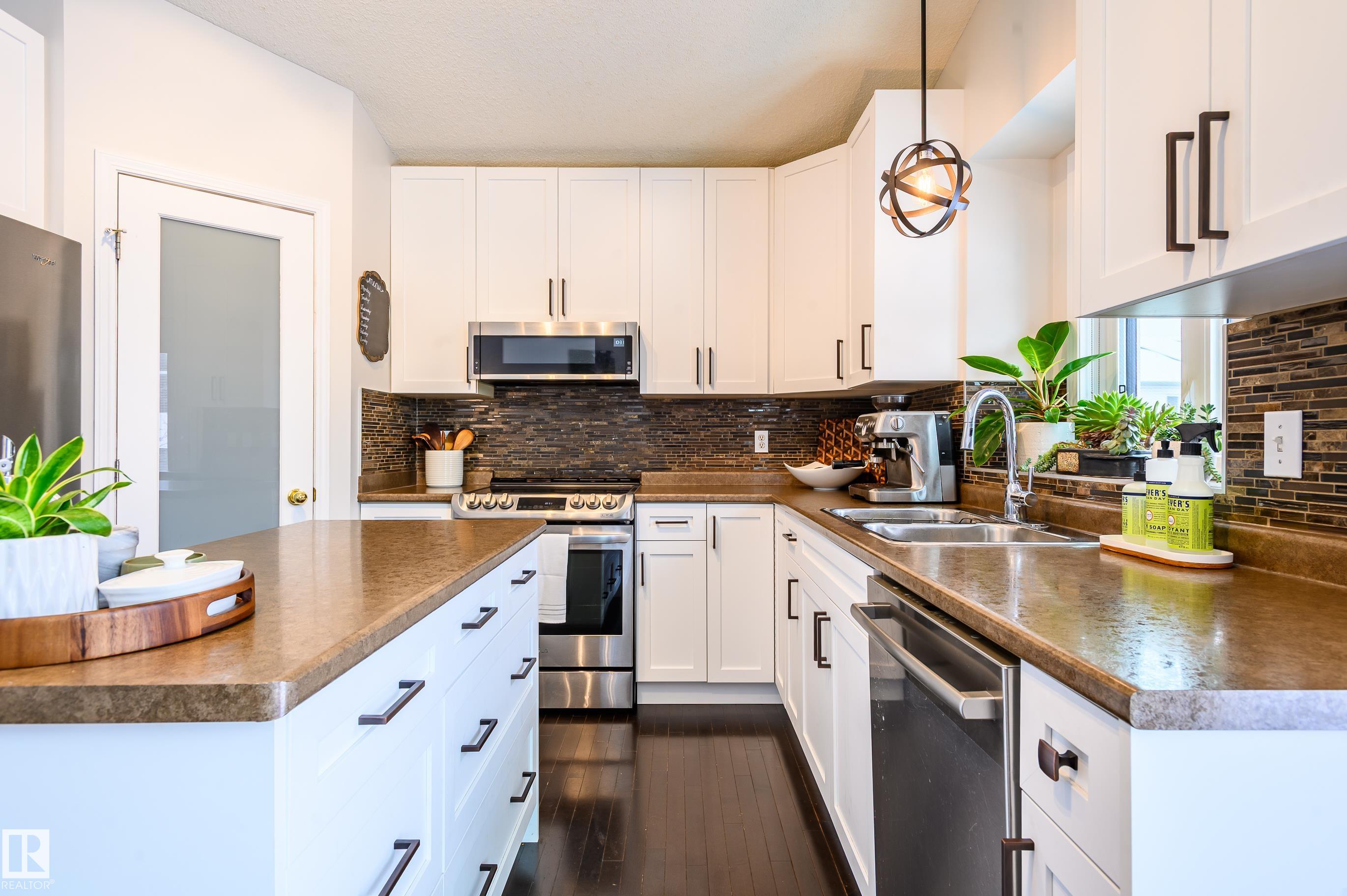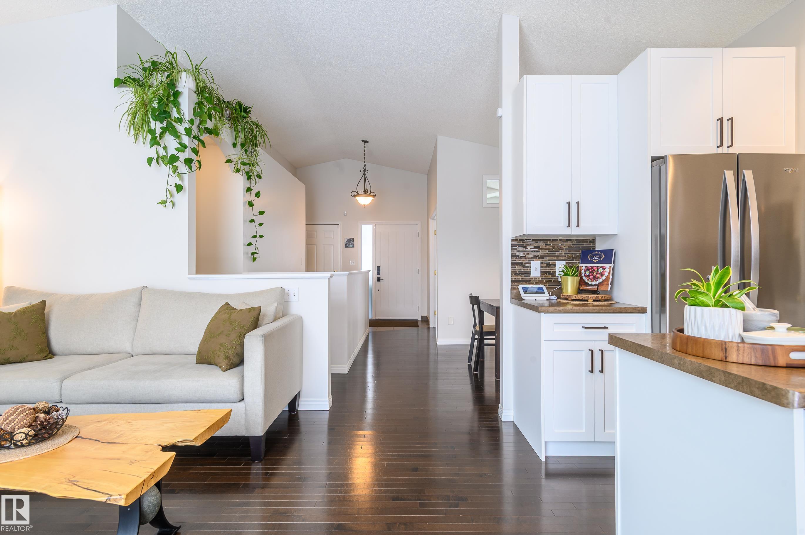 Experience the best of St. Albert in this beautifully maintained, single-owner bungalow in the highly desirable neighborhood of Heritage Lakes! Turnkey and move-in ready, this cherished family home radiates pride of ownership. Inside, enjoy a bright, welcoming main floor featuring a vaulted living room ceiling and modern conveniences like a sleek induction stove and Central A/C. Downstairs, the basement boasts incredible 9 -foot ceilings, offering massive, airy potential for your dream living space. Outside, your private oasis awaits: a sun-bathed, south-facing backyard that is beautifully landscaped and dotted with mature fruit trees. It's the perfect sunny retreat! You get the ideal balance of tranquility and convenience here, tucked away from the hustle, yet perfectly situated near schools, lush parks, great shopping, and quick access to main transit routes (without the noise!). Don't miss this rare opportunity to own a deeply loved, meticulously cared for home in Heritage Lakes!