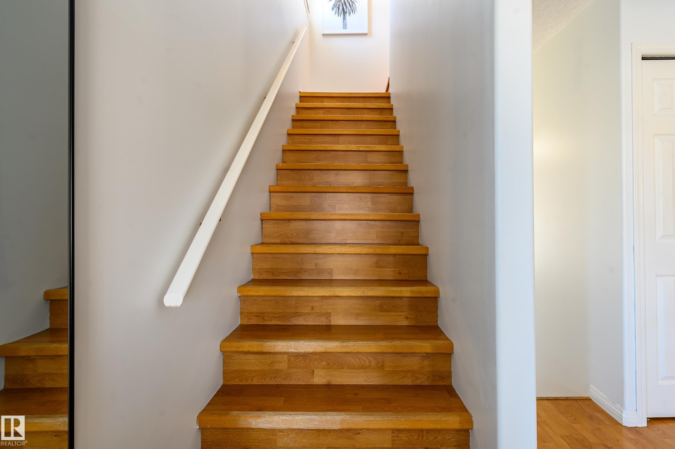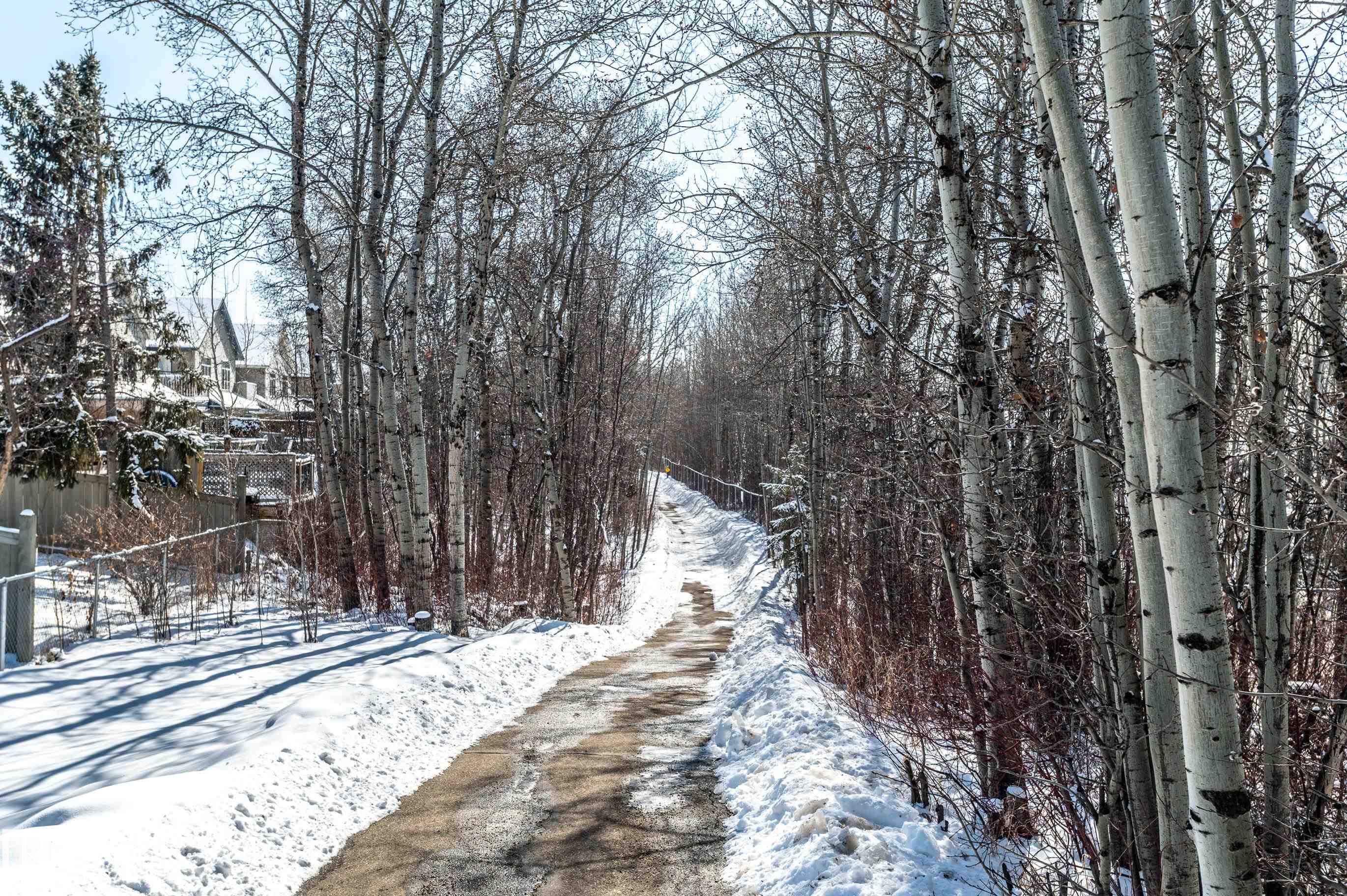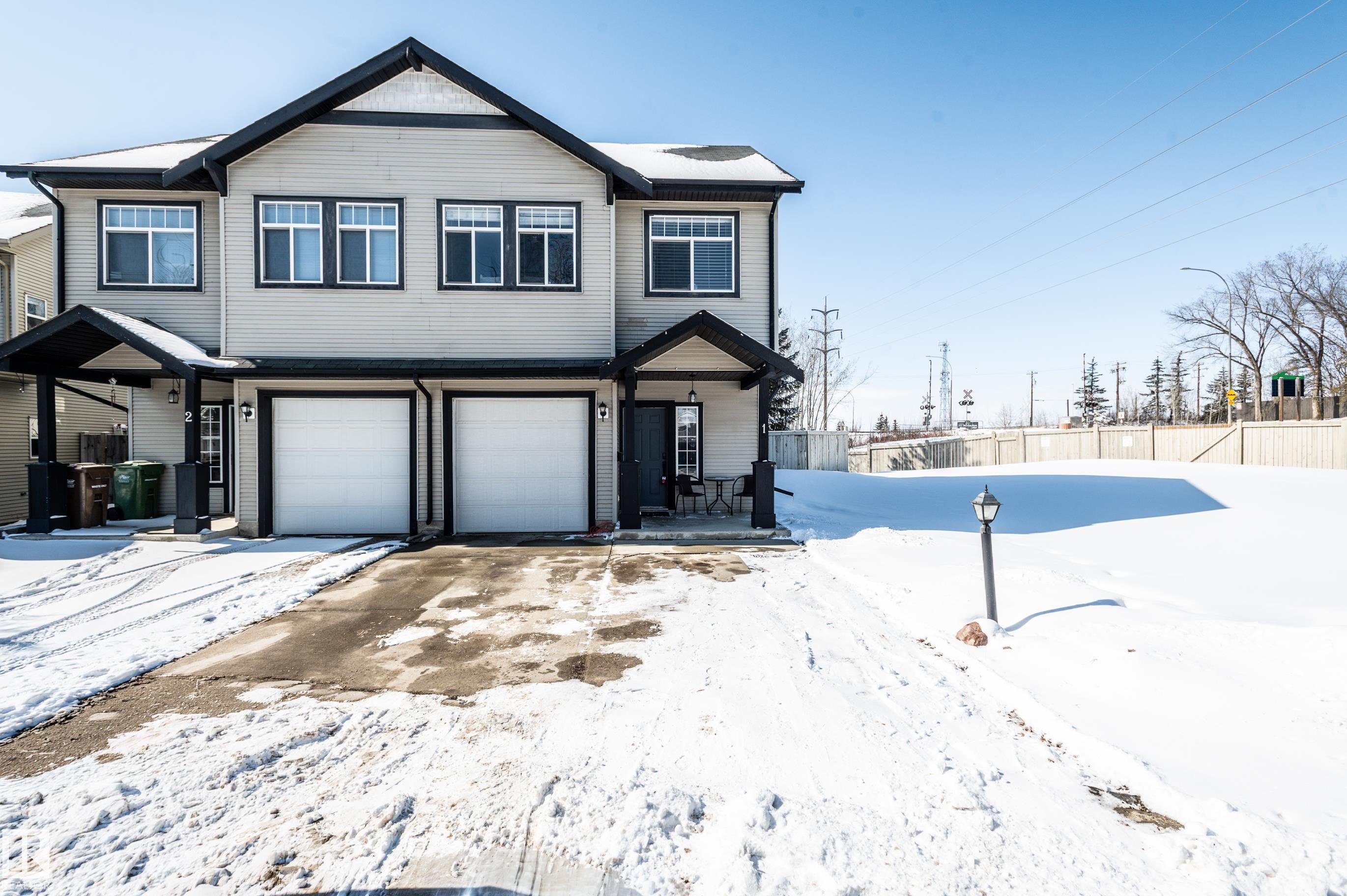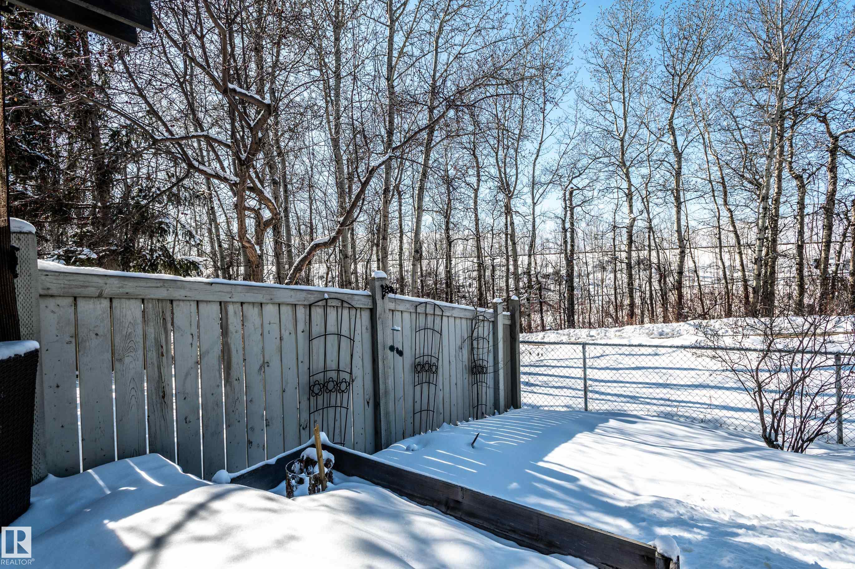 End unit in Heritage Lane! Private backyard and side yard onto greenbelt and the Red Willow Park trail system. Extra wide driveway ideal for second vehicle. Bareland condo with low fees of $93 per month. Inviting half-duplex with one the largest yards in the complex! This spacious 1334 square foot 3 bedroom + 2.5 bathrooms. The main floor features a u-shaped kitchen with ample cupboard space and a breakfast bar, a dining room with patio door to a deck and west facing backyard. The bright living room features a gas fireplace. There is a 2-piece bathroom off the entrance plus direct access into the attached garage. Upstairs you'll find 3 bedrooms and 2 full bathrooms, including a spacious primary with beautiful views, a RARE 3-piece ensuite and a spacious walk-in closet. The finished basement has a family room as well as storage space and a laundry room. Heritage Lakes is St. Albert's southernmost community with easy access to all commuter routes.