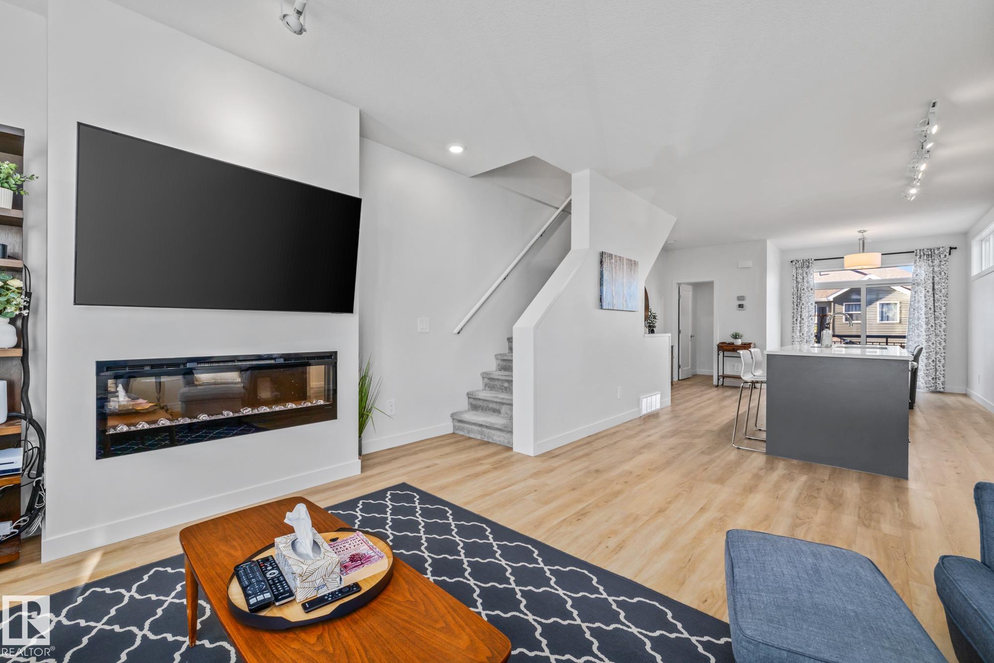 Welcome to CoBalt Beach in Jensen Lakes, St. Albert's only lake community with private beach access. This 1,479 sq. ft. 3-bedroom, 2.5-bath END UNIT townhouse offers a bright, open layout with 9-ft ceilings on the main floor and a wider floor plan than most similar units. The kitchen features quartz counters, a large island, and upgraded vinyl plank flooring upstairs. Enjoy the added comfort of air conditioning and an electric fireplace. The attached tandem garage provides plenty of space for parking and storage, plus exclusive access to the private beach and lake amenities, along with nearby schools, shopping, and restaurants.