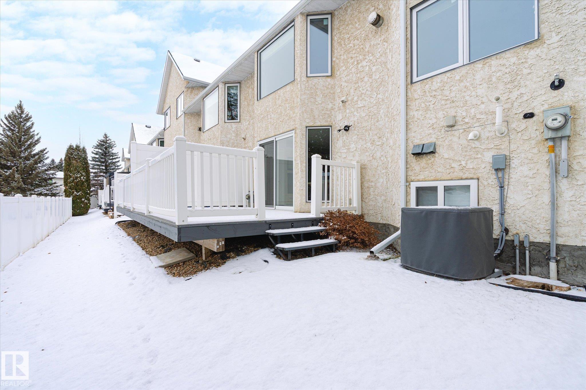 Welcome to this beautiful 5-level split townhouse in Lacombe Park, offering just under 1,550 sq. ft. of bright, functional living space. Step into a spacious living and formal dining area, then head down to the sunny south-facing kitchen with an island, breakfast seating, and access to the large low-maintenance deck. One level up, a large family room with a vaulted ceilings create the perfect place to unwind. The same level features a generous primary bedroom with a 4-piece ensuite, with jacuzzi tub, while the separate top floor offers two additional bedrooms and a full 4-piece bathroom. Recent upgrades include brand new top-of-the-line custom triple pane windows from GreenFox, central air conditioning, and HWT. The full basement provides excellent storage, and the double attached garage adds everyday convenience. Located close to parks, schools, transit, and shopping, this home delivers a rare blend of space, comfort, and value in a well-run complex.
