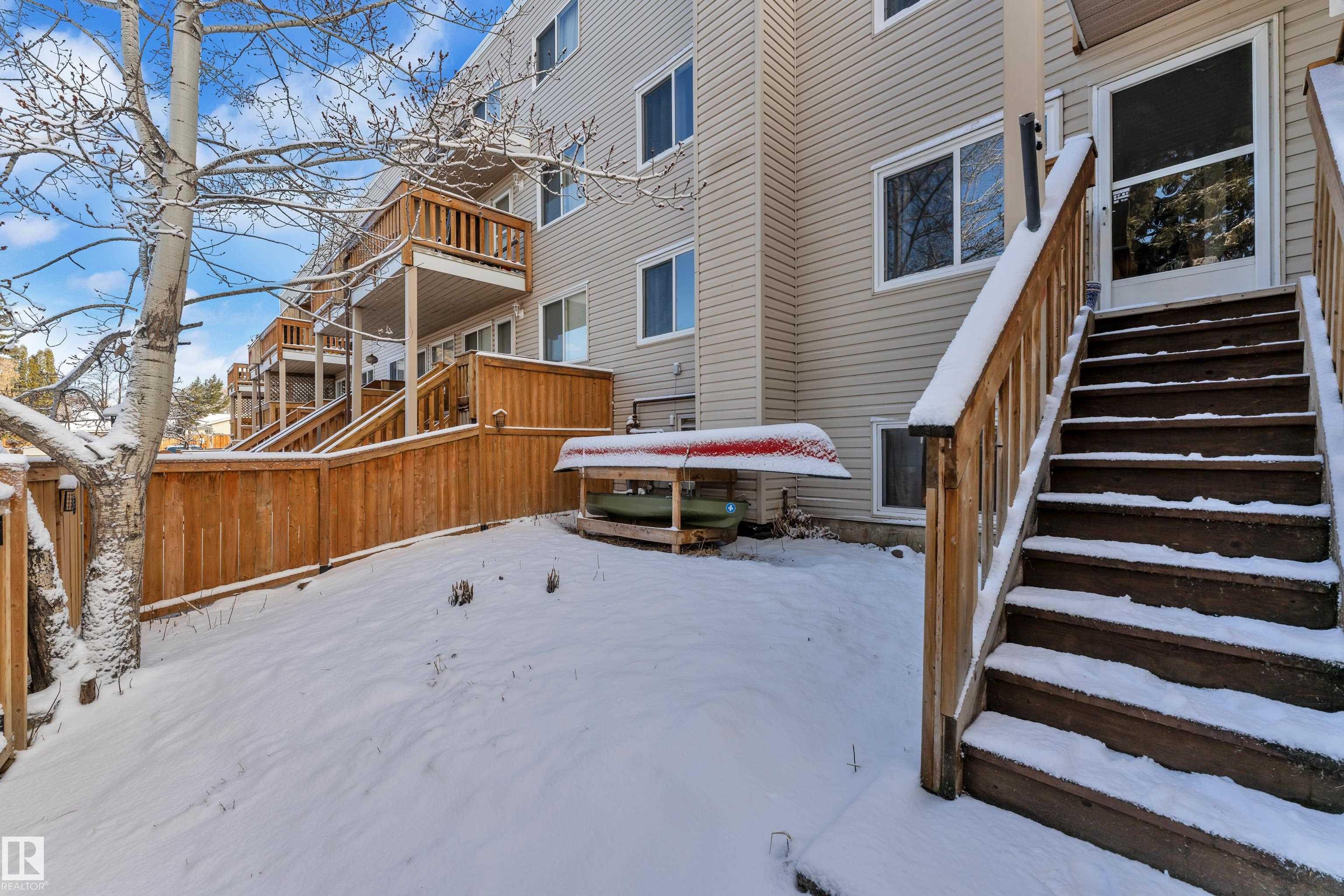 Welcome to Lacombe Estates in St. Albert! This well-maintained multi-level condo, fully rebuilt in 2006, offers a functional and inviting layout perfect for comfortable living. The main floor features a bright living room, dining area, oak kitchen with ample cabinetry, a versatile den, and a convenient 2-piece bath. Step outside to your private deck with stairs leading to a rare personal backyard with direct street access. The lower level includes two spacious bedrooms, a full 4-piece bath, a cozy flex area, and in-suite laundry. Complete with a full set of appliances and a large storage room, this home is move-in ready. Located in a quiet, well-managed complex close to parks, schools, shopping, transit, and easy access to Anthony Henday. Perfect for first-time buyers, investors, or downsizers. A great opportunity in a desirable community--don't miss out !