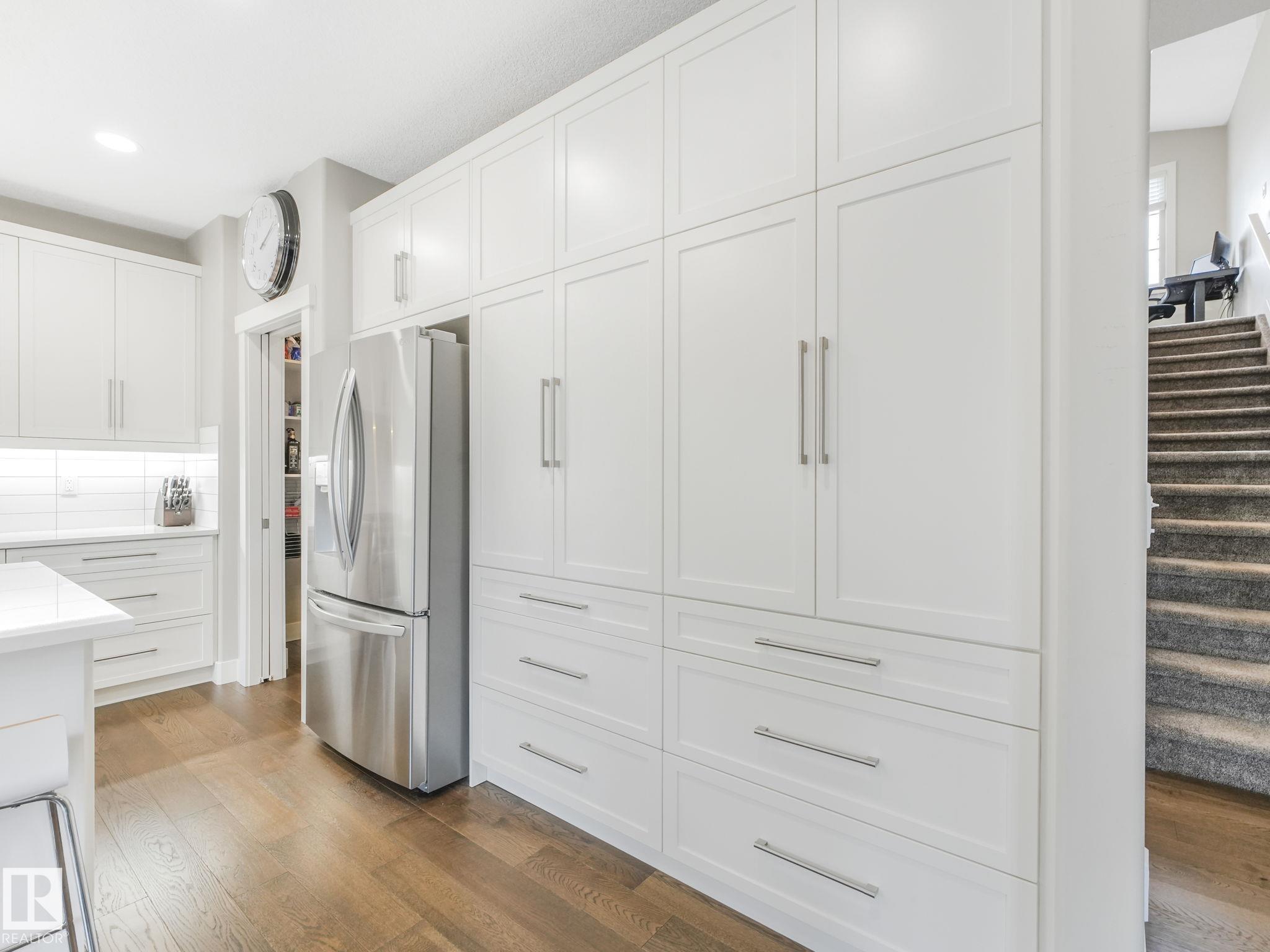 BRIGHT & SPACIOUS CUSTOM!! 2700 Sq.Ft. 5-bdrm, 3.5-bath 2 storey located in family friendly North Ridge. Spacious foyer welcomes you into this airy open modern home. Boasting main floor den, 9' ceilings, large open concept great room with cosy gas fireplace.The chef's kitchen features quartz counters, stainless appliances, custom cabinetry, and a large island overlooking the great room and dining area.Patio door to south facing deck.Large mudroom with stylish storage cabinets, bench and 2 pc bath. Upstairs offers a spacious bonus room, flex area, dreamy primary retreat with spa-like ensuite and walk-in closet, 2 large bedrooms both with W/I closets, 5 pc main bath and laundry on upper floor.The fully developed lower level offers a large rec area, 2 bedrooms 3pc bath and heated flooring.Triple attached garage with lots of storage, bench and 2 drains.Fully fenced low maintenance south facing yard.Upgrades Hunter Douglas blinds upstairs 2023,Fireplace 2022 and R18 garage doors 2023.