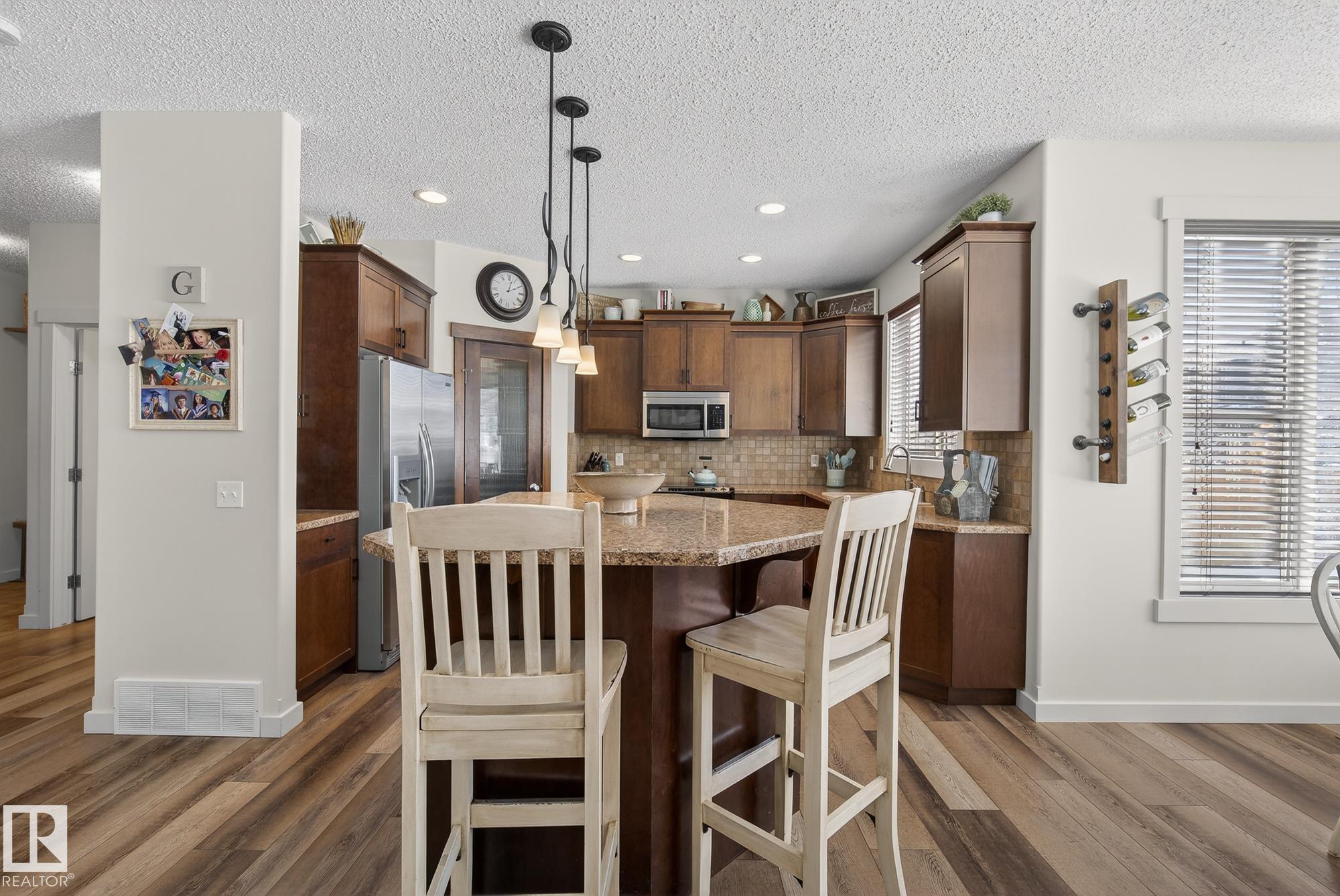 Step into this welcoming, well-maintained home - perfect for families or anyone looking for extra space to grow. The bright & inviting main floor features a versatile den off the entry, ideal for a home office, study space, or kids playroom. The kitchen showcases real wood cabinetry, a stylish butcher block accent, modern appliances w/ an induction cooktop, and a lovely view of the professionally landscaped backyard. Newer vinyl plank flooring throughout adds both warmth and durability. Upstairs offers convenient laundry with added storage, a full main bath, and three comfortable bedrooms designed for rest and relaxation. The vaulted bonus room creates the perfect setting for cozy movie nights or quiet evenings in. The finished basement expands your living space with a fourth bedroom and a spacious family room with fireplace - ideal for hobbies, guests, or a home gym. Just steps away from to walking trails, peaceful ponds, and parks, this home offers comfort, flexibility, and a lifestyle you'll love.