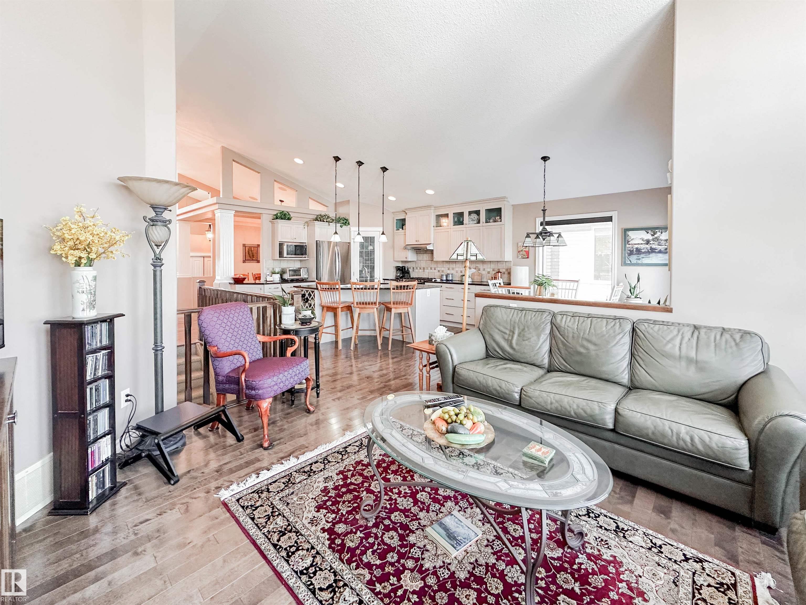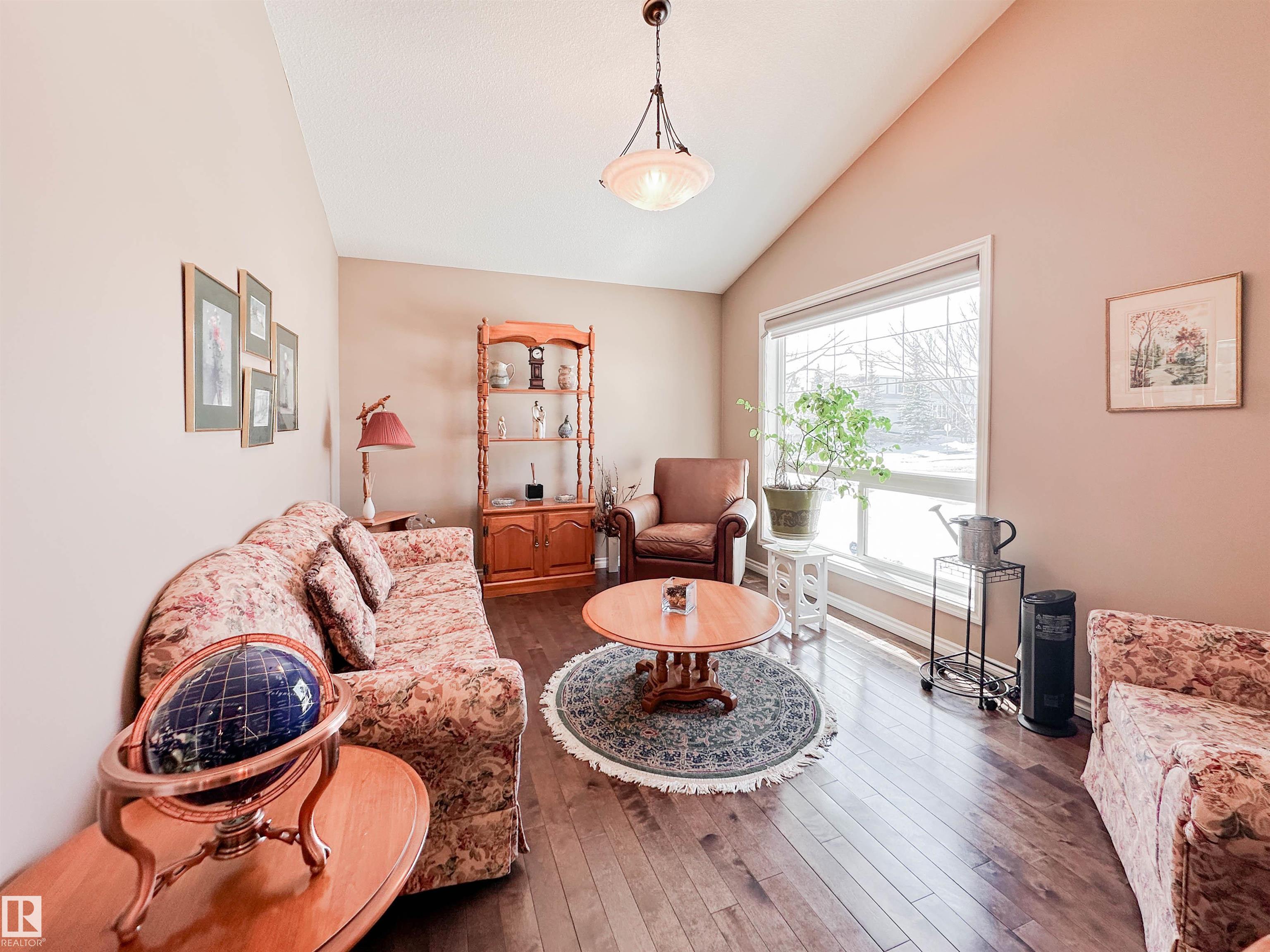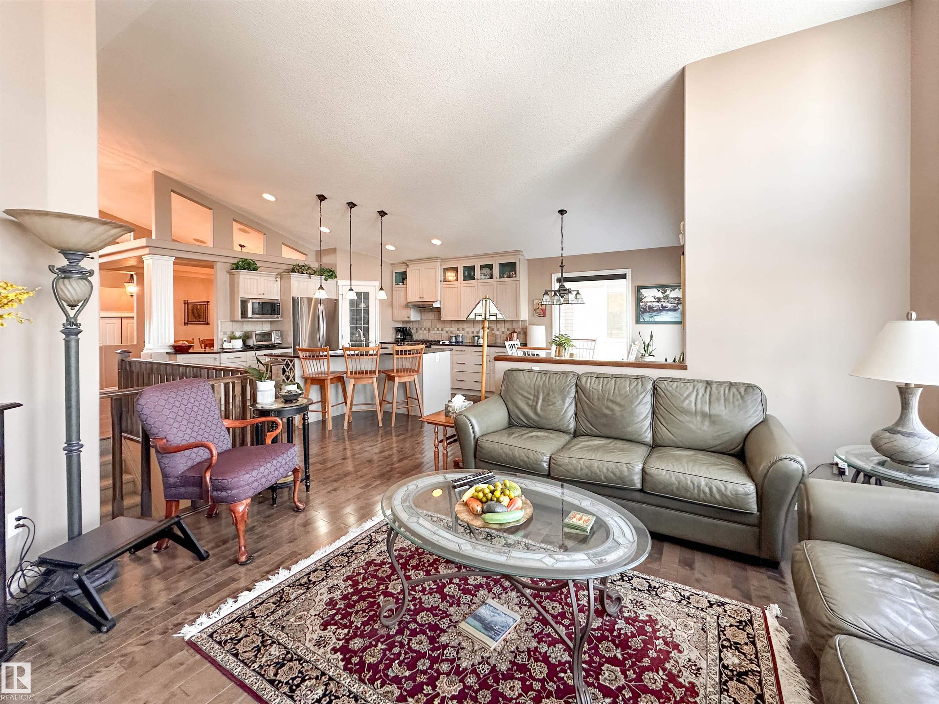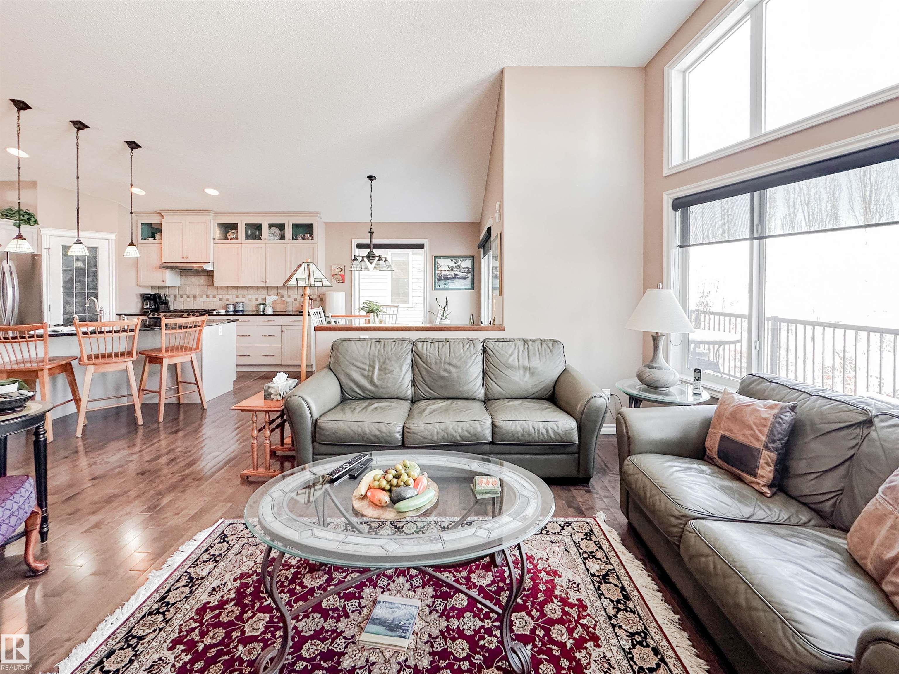 Welcome to this beautiful walk-out bungalow in Oakmont with incredible river valley views and over 2,700 sq ft of living space! From the moment you walk in, you'll love the natural light, warm hardwood floors, and open layout that makes this home feel both spacious and inviting. The kitchen is perfect for hosting with rich cabinetry, granite countertops, and stainless steel appliances, flowing effortlessly into the nook area and spacious living room w/ soaring windows, vaulted ceiling & gas fireplace. Step out onto the upper balcony and take in the peaceful views. The primary suite offers a relaxing retreat with a 5-piece ensuite and walk-in closet. A den, formal dining, powder room, & main floor laundry add convenience. Downstairs, the FF walk-out basement features a large living room/rec room, wet bar, 2 bedrooms, and a full bath. Enjoy the private, low-maintenance yard surrounded by mature trees!