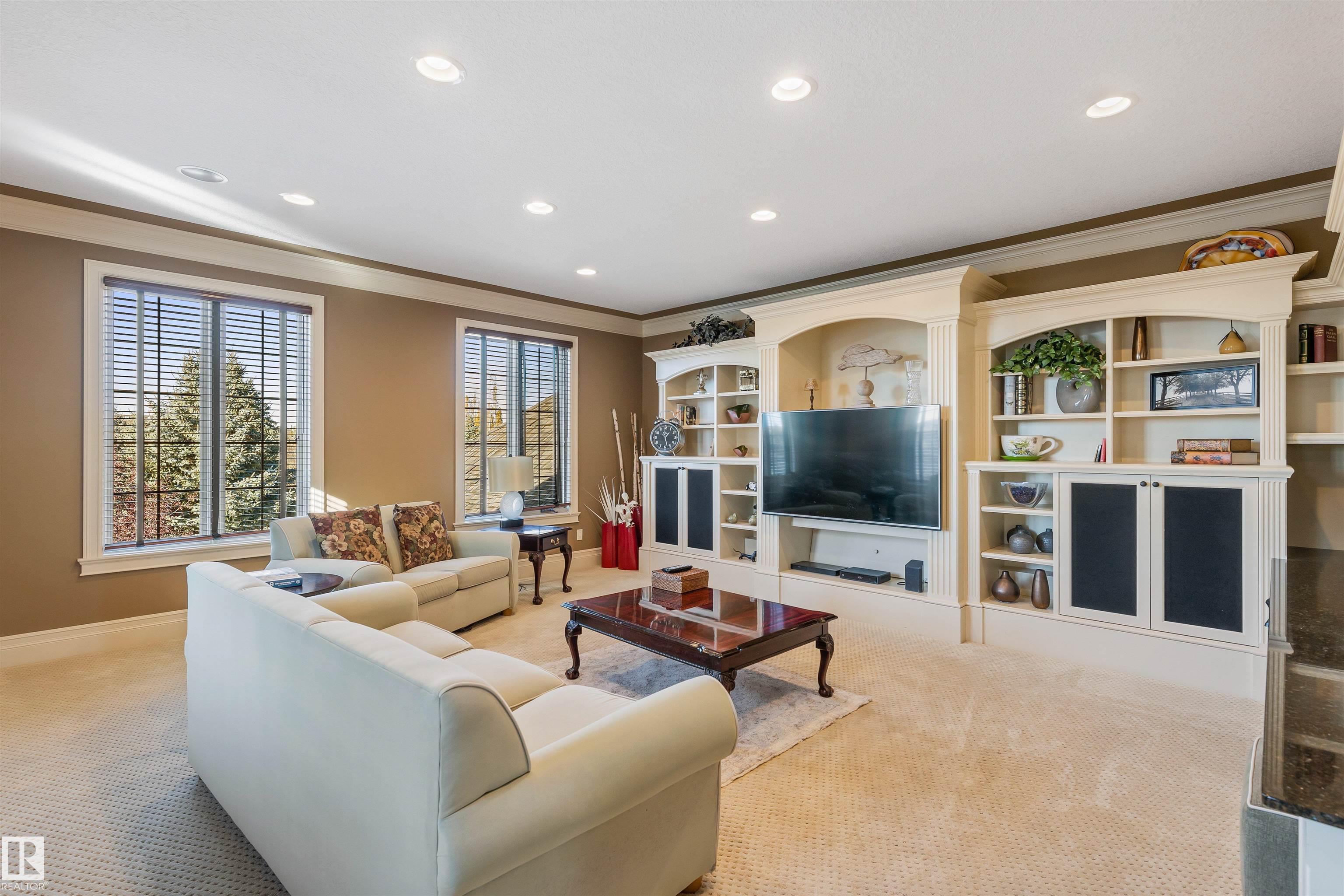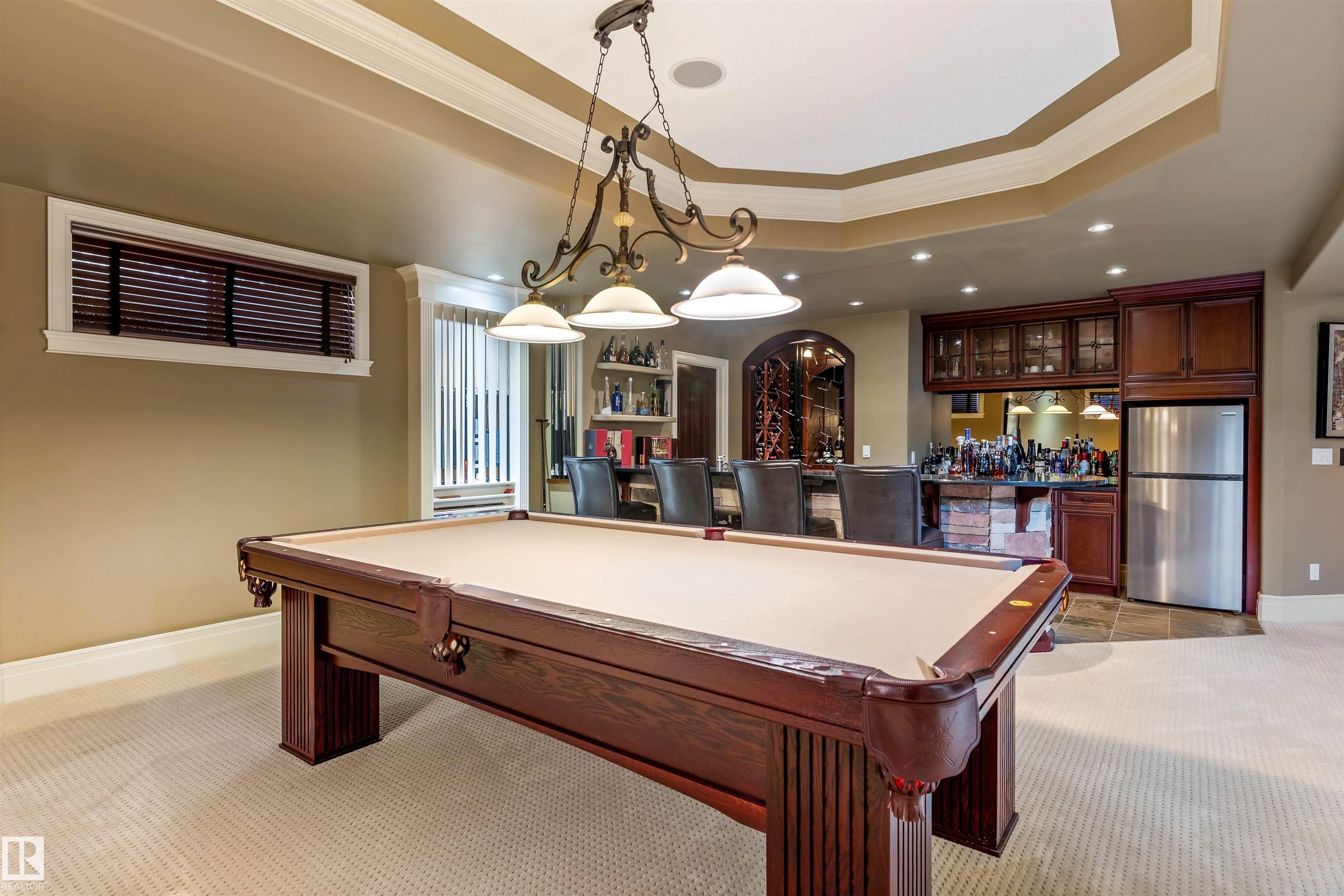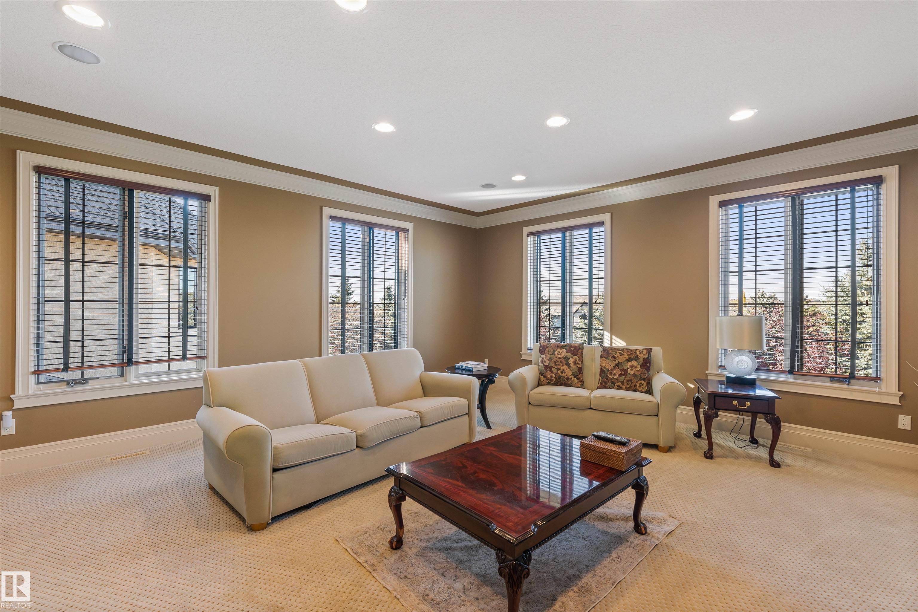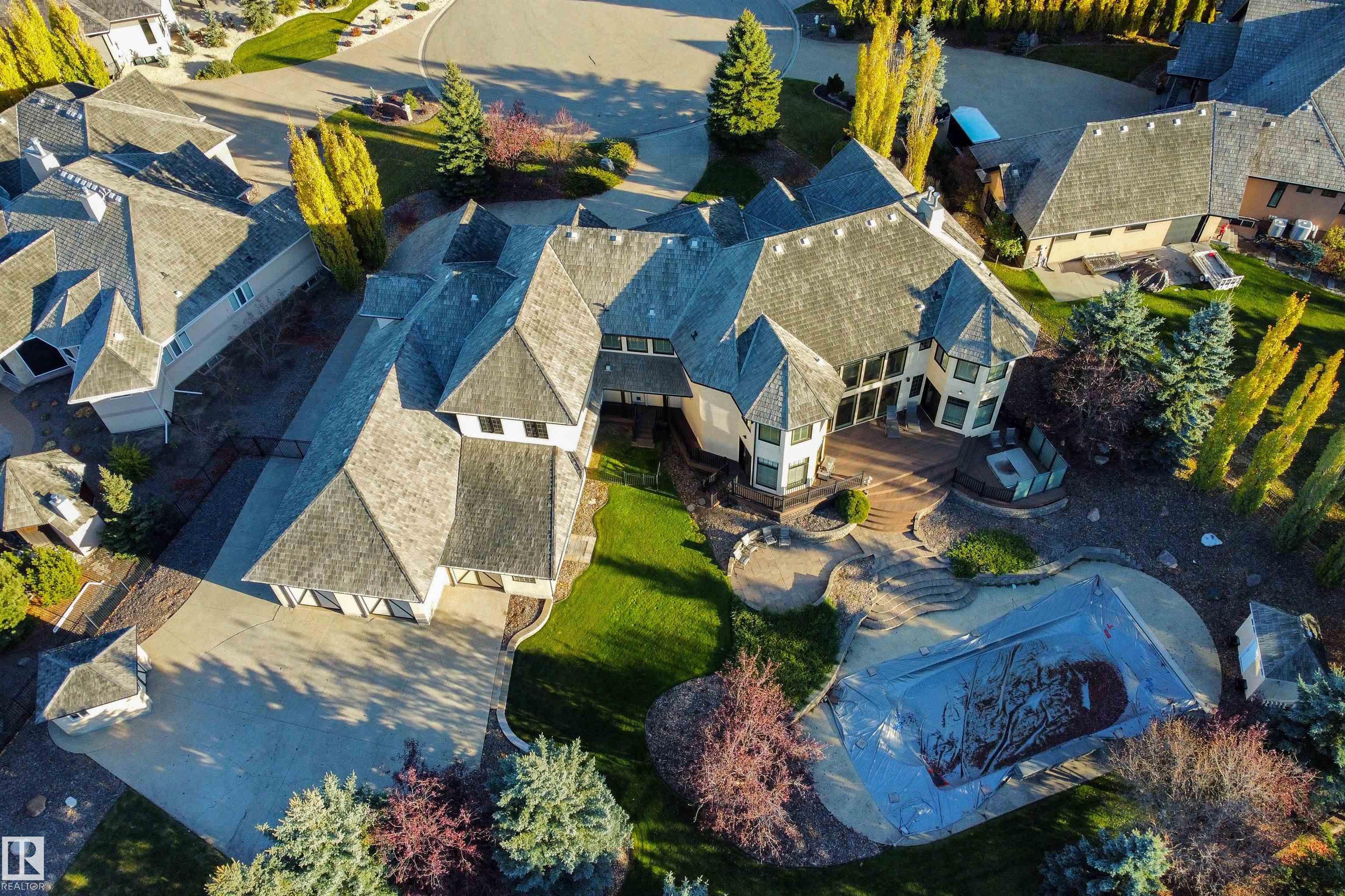 Luxury in prestigious Riverstone Pointe! This 6173 sqft 2 storey awaits a new owner. The living room is stunning w/ a 2 storey stone gas f/p, coffered ceiling, HARDWOOD flooring & windows overlooking the yard. The kitchen has cabinetry w/ crown molding, under cabinet lighting, granite counters, tile backsplash & an eating bar island. The dining room is spacious- perfect for hosting. The office has large windows & a 2 sided f/p leading into the LIBRARY. Completing the main floor is a sun room, 2pce bath & 3pce bath. The 2nd floor has a family room w/ built in shelving, 4 bedrooms (2 w/ their own ensuite), a 6pce jack & jill bathroom & a laundry room. The basement feat. a spacious rec room w/ gas f/p & built ins on either side, wet bar w/ eating bar island & WINE ROOM. The theatre room is just off the wet bar. A gym, 5th bedroom & 3pce bath complete the basement. Enjoy summer in the beautiful yard w/ a deck, hot tub, stone patio, SWIMMING POOL & firepit. A HEATED attached 10 CAR GARAGE completes this home!