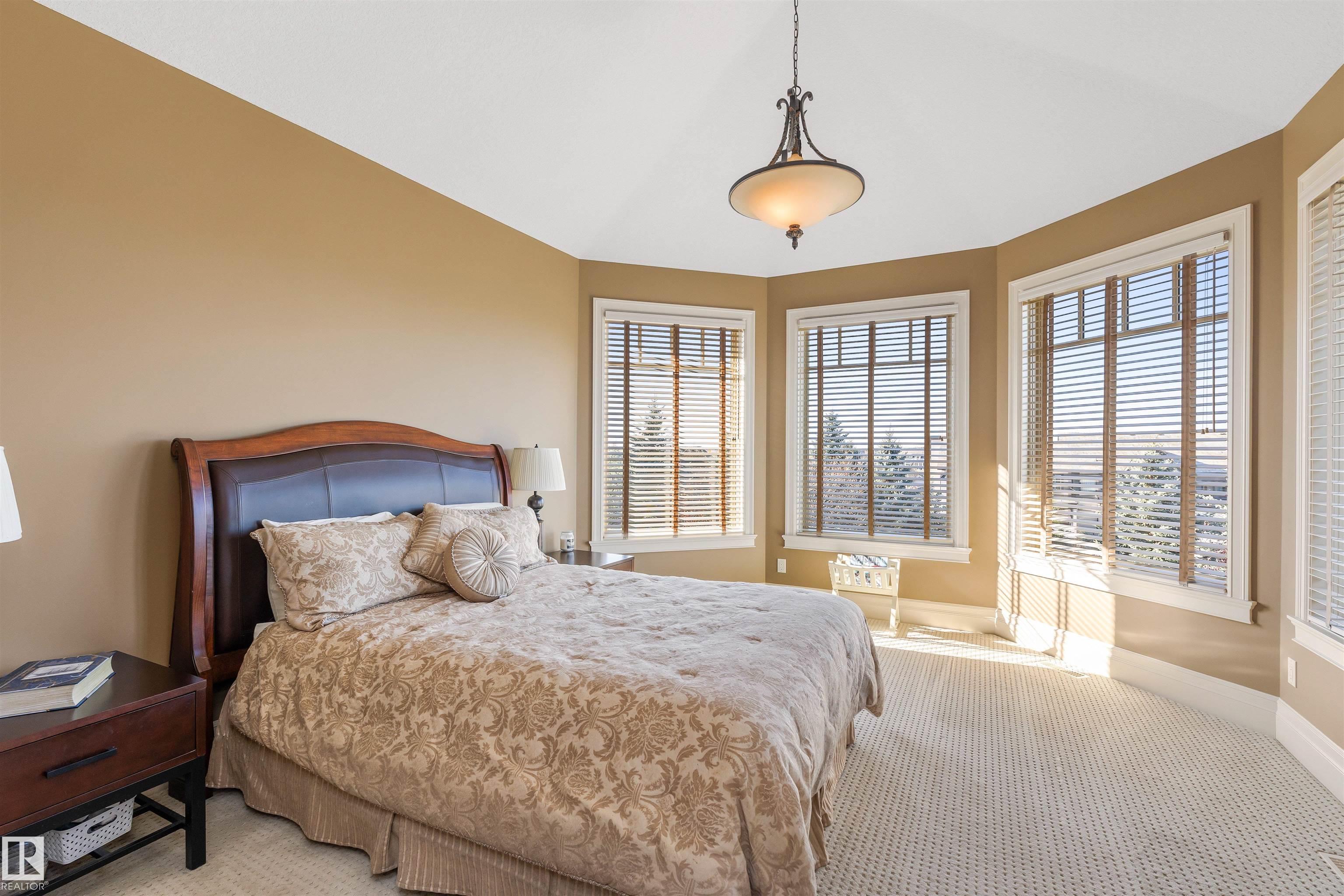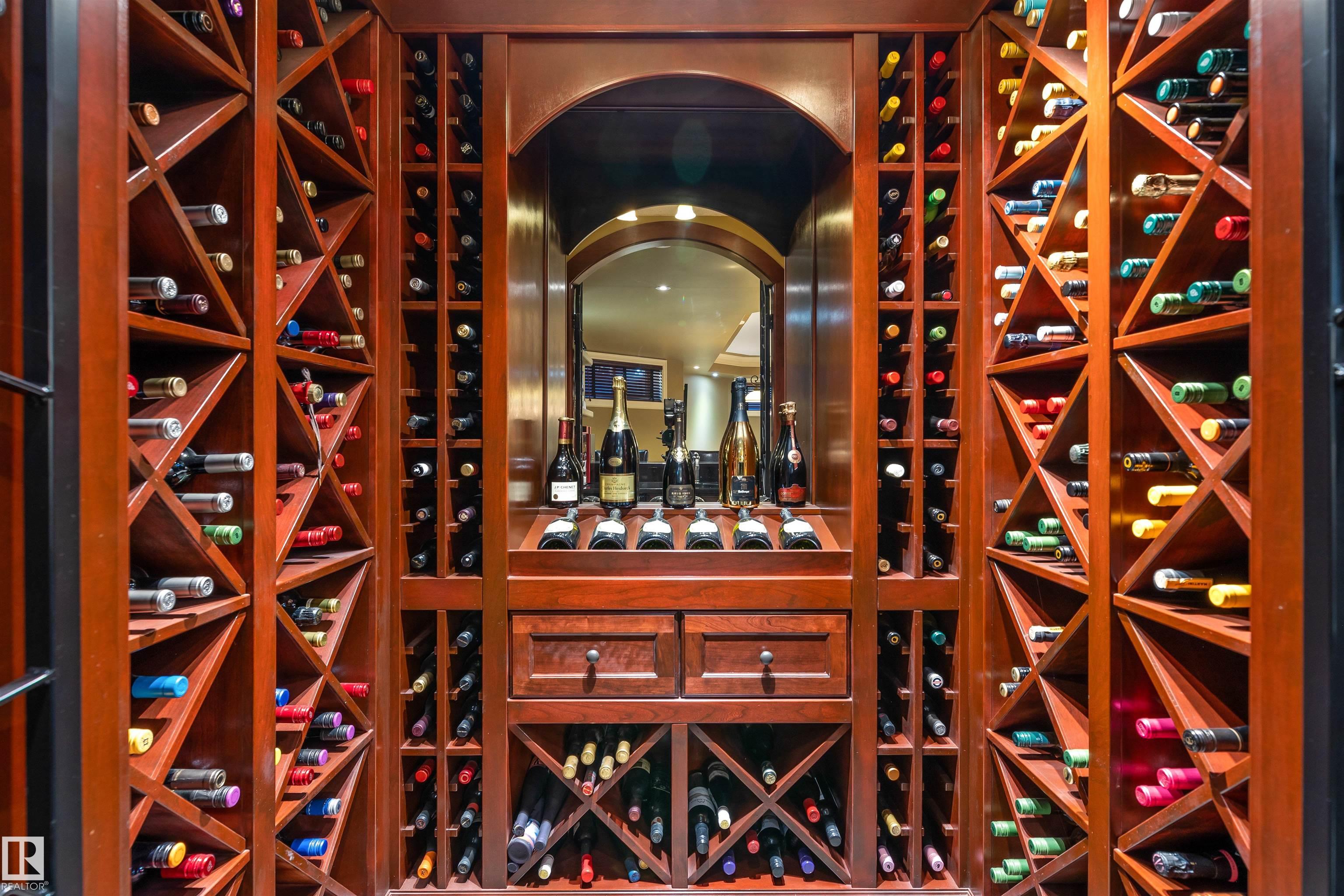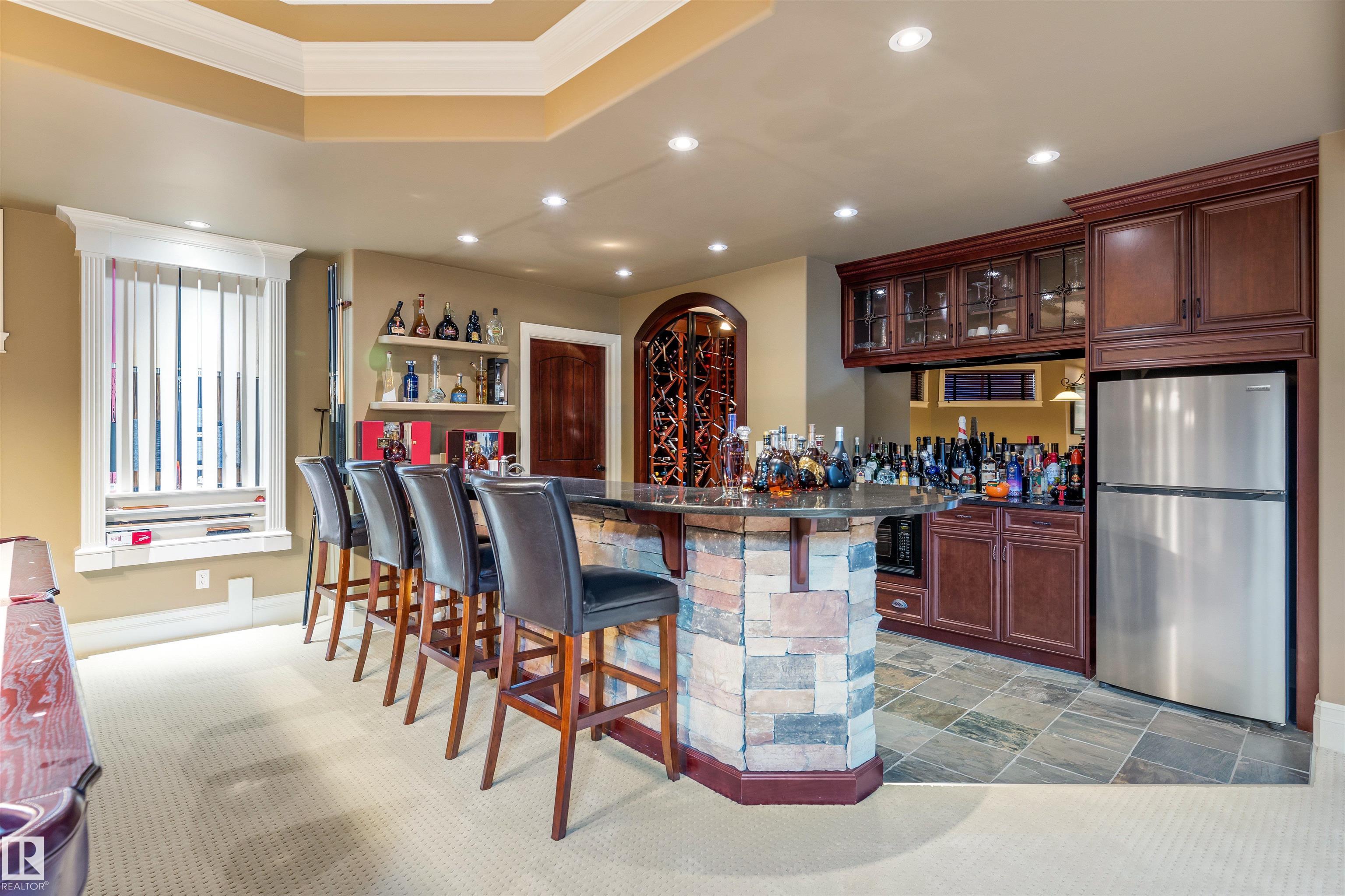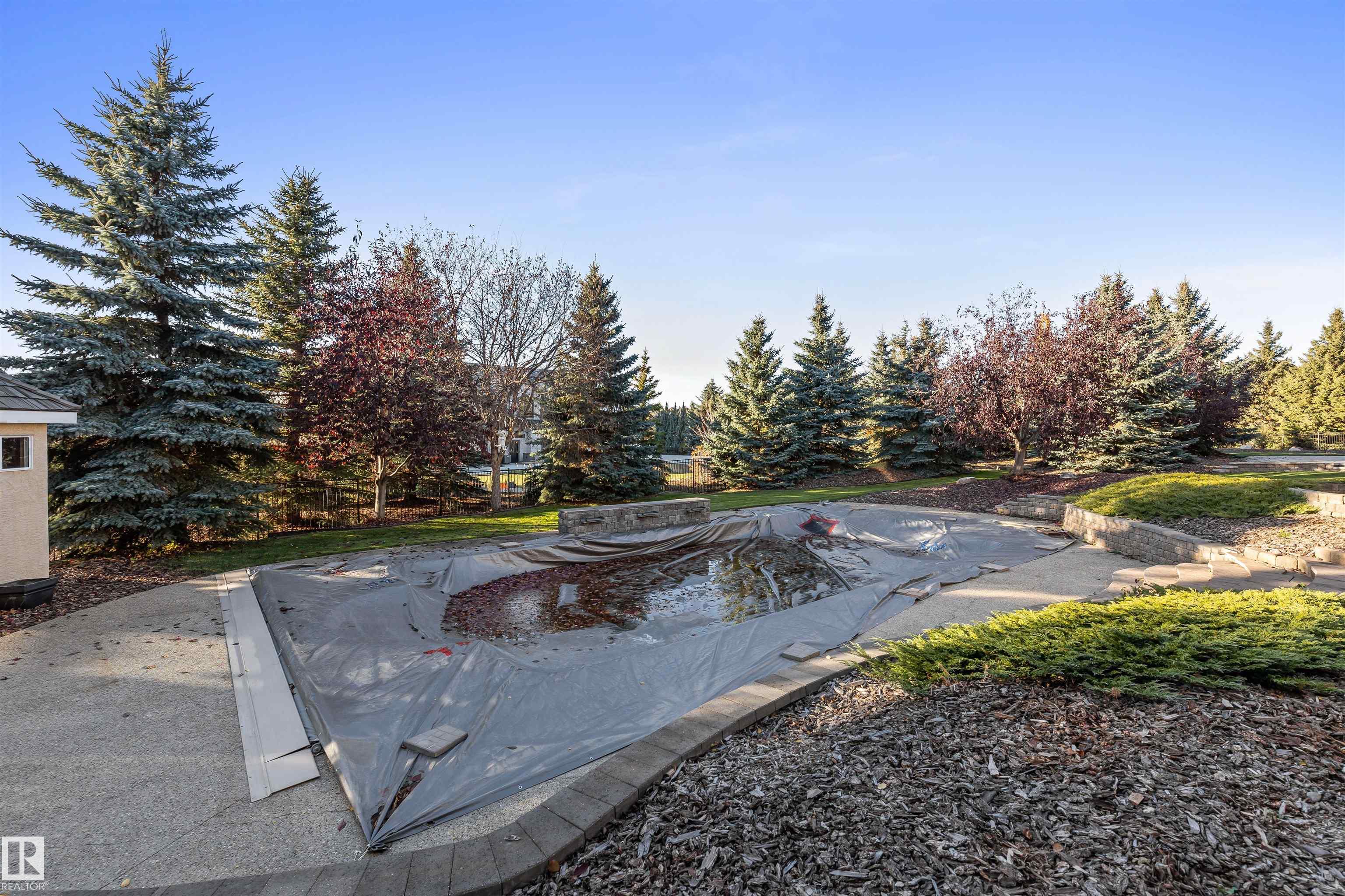 Luxury in prestigious Riverstone Pointe! This 6173 sqft 2 storey awaits a new owner. The living room is stunning w/ a 2 storey stone gas f/p, coffered ceiling, HARDWOOD flooring & windows overlooking the yard. The kitchen has cabinetry w/ crown molding, under cabinet lighting, granite counters, tile backsplash & an eating bar island. The dining room is spacious- perfect for hosting. The office has large windows & a 2 sided f/p leading into the LIBRARY. Completing the main floor is a sun room, 2pce bath & 3pce bath. The 2nd floor has a family room w/ built in shelving, 4 bedrooms (2 w/ their own ensuite), a 6pce jack & jill bathroom & a laundry room. The basement feat. a spacious rec room w/ gas f/p & built ins on either side, wet bar w/ eating bar island & WINE ROOM. The theatre room is just off the wet bar. A gym, 5th bedroom & 3pce bath complete the basement. Enjoy summer in the beautiful yard w/ a deck, hot tub, stone patio, SWIMMING POOL & firepit. A HEATED attached 10 CAR GARAGE completes this home!