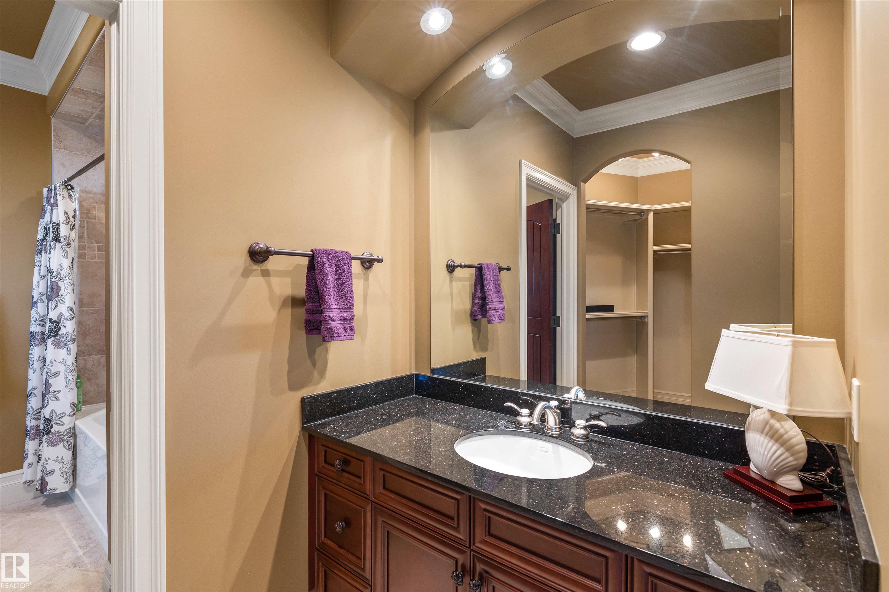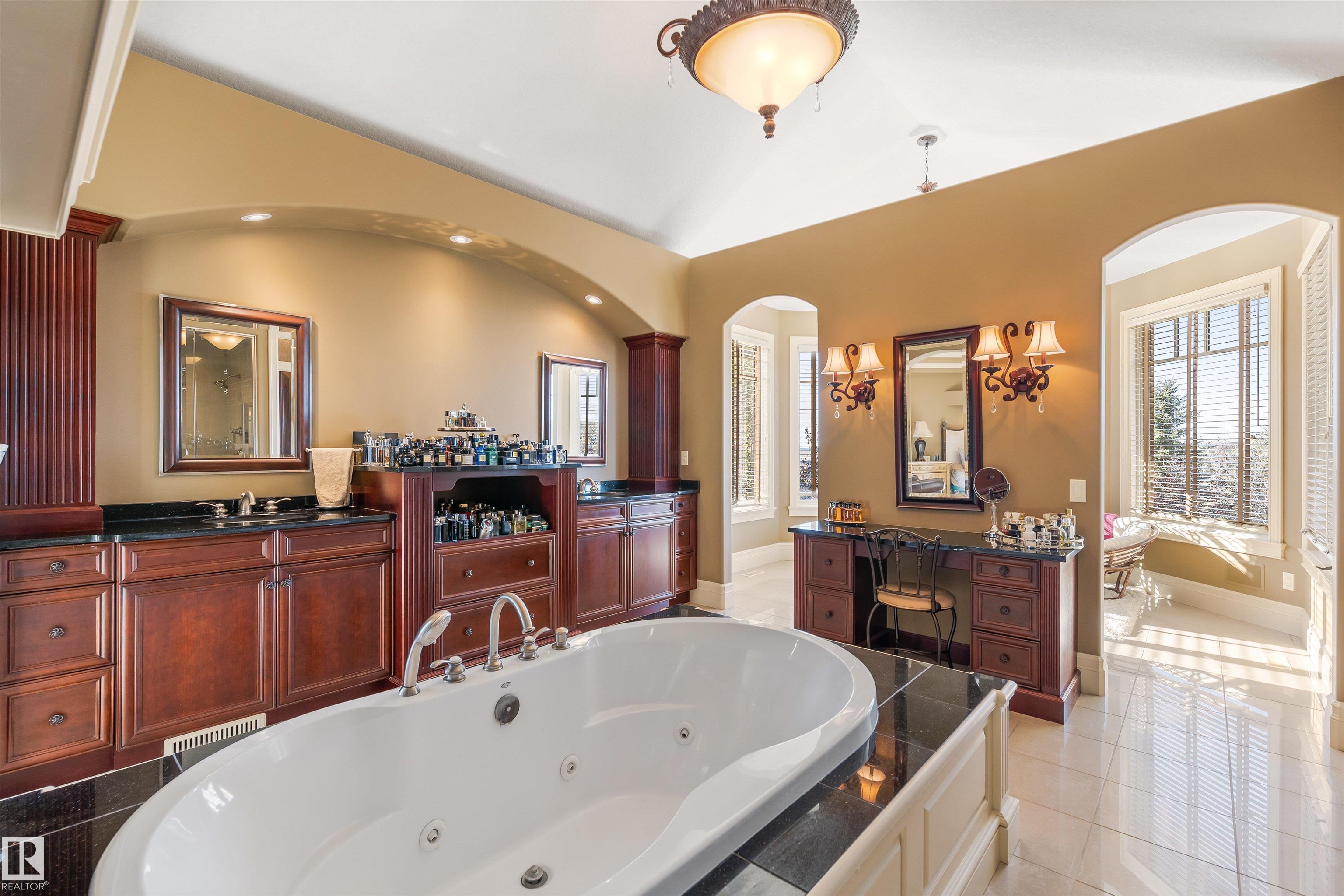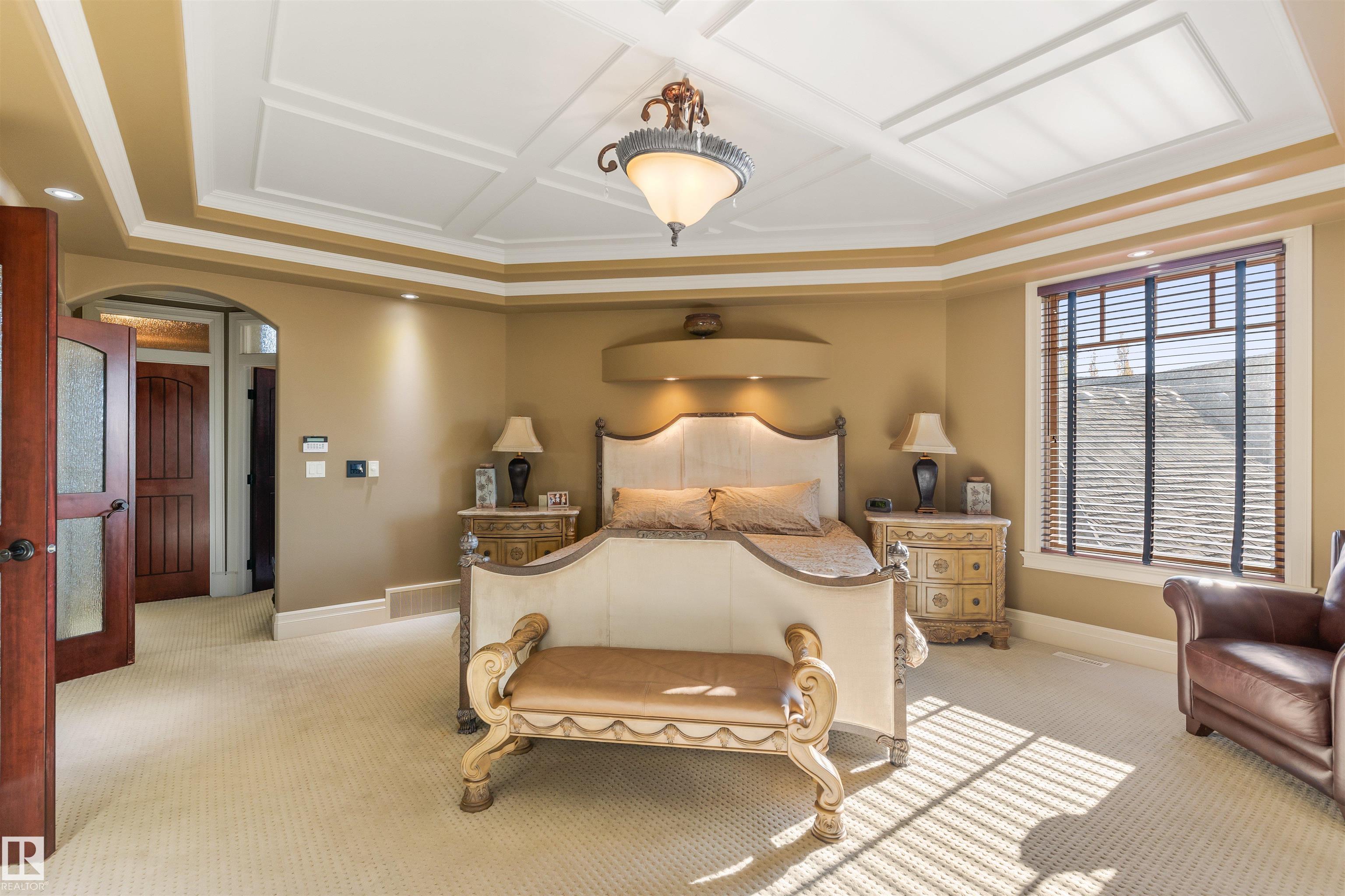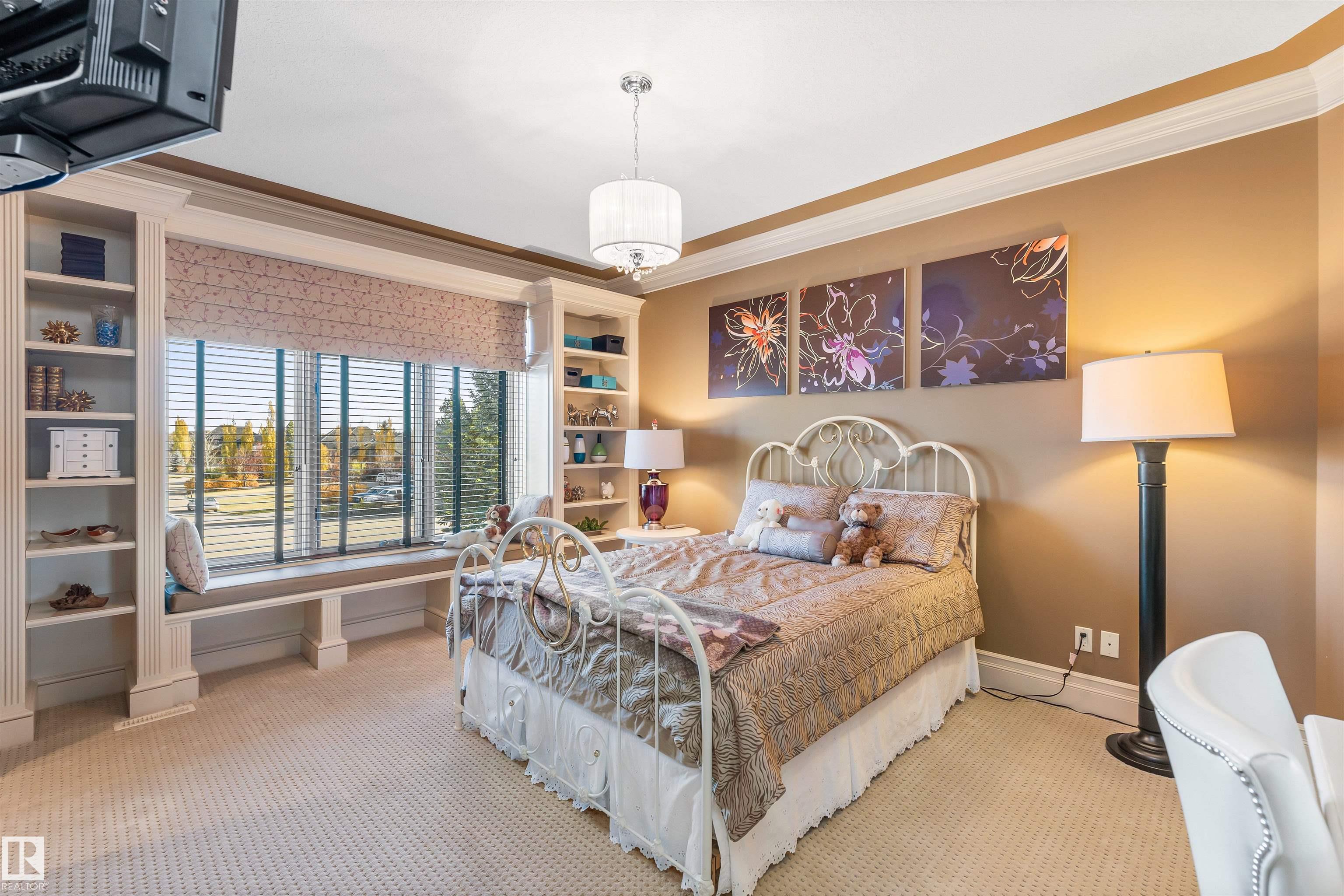 Luxury in prestigious Riverstone Pointe! This 6173 sqft 2 storey awaits a new owner. The living room is stunning w/ a 2 storey stone gas f/p, coffered ceiling, HARDWOOD flooring & windows overlooking the yard. The kitchen has cabinetry w/ crown molding, under cabinet lighting, granite counters, tile backsplash & an eating bar island. The dining room is spacious- perfect for hosting. The office has large windows & a 2 sided f/p leading into the LIBRARY. Completing the main floor is a sun room, 2pce bath & 3pce bath. The 2nd floor has a family room w/ built in shelving, 4 bedrooms (2 w/ their own ensuite), a 6pce jack & jill bathroom & a laundry room. The basement feat. a spacious rec room w/ gas f/p & built ins on either side, wet bar w/ eating bar island & WINE ROOM. The theatre room is just off the wet bar. A gym, 5th bedroom & 3pce bath complete the basement. Enjoy summer in the beautiful yard w/ a deck, hot tub, stone patio, SWIMMING POOL & firepit. A HEATED attached 10 CAR GARAGE completes this home!
