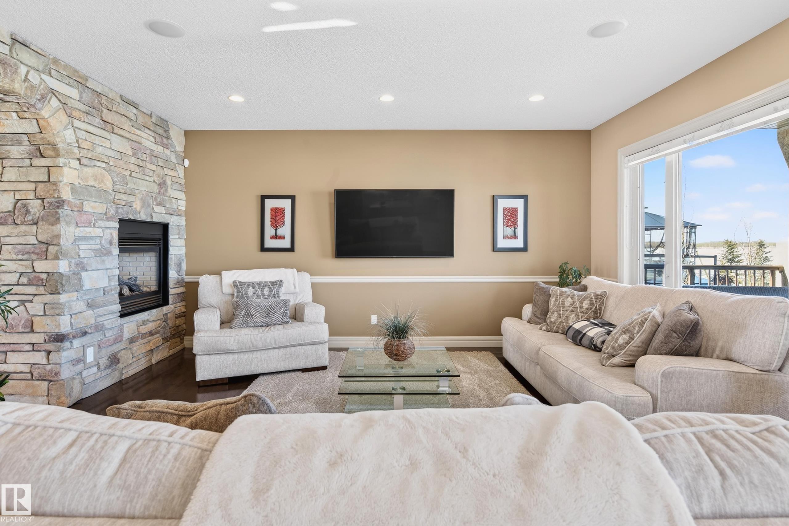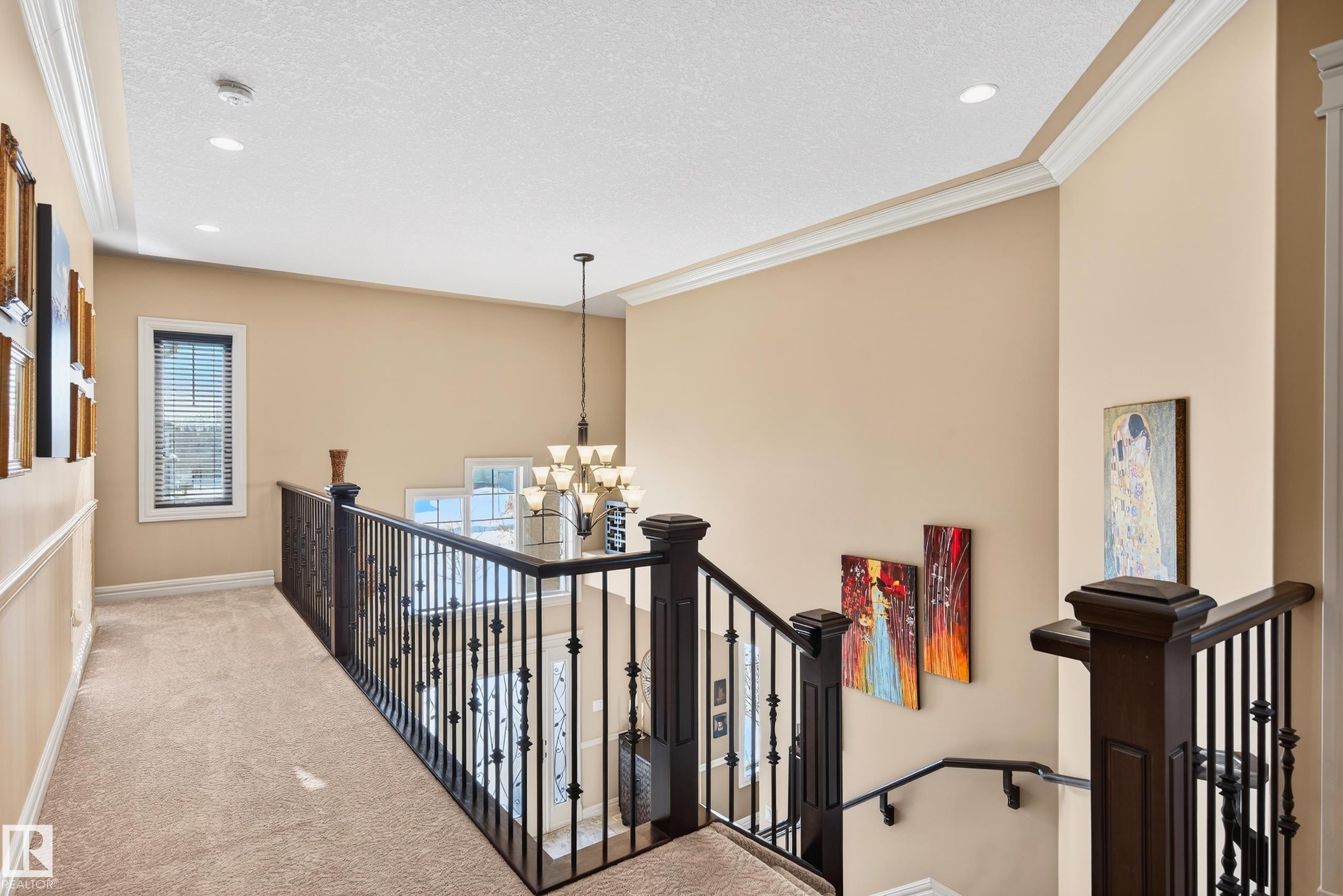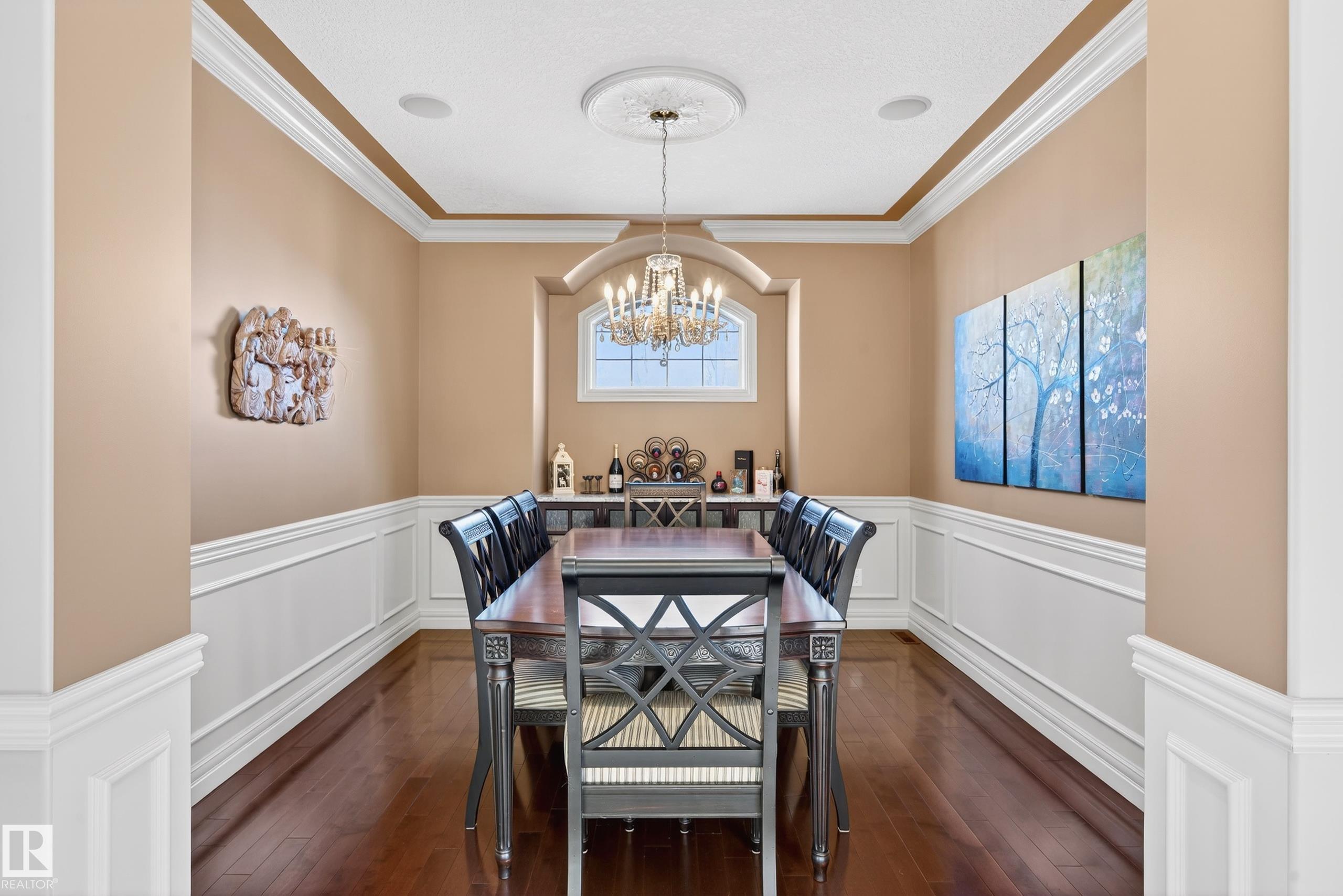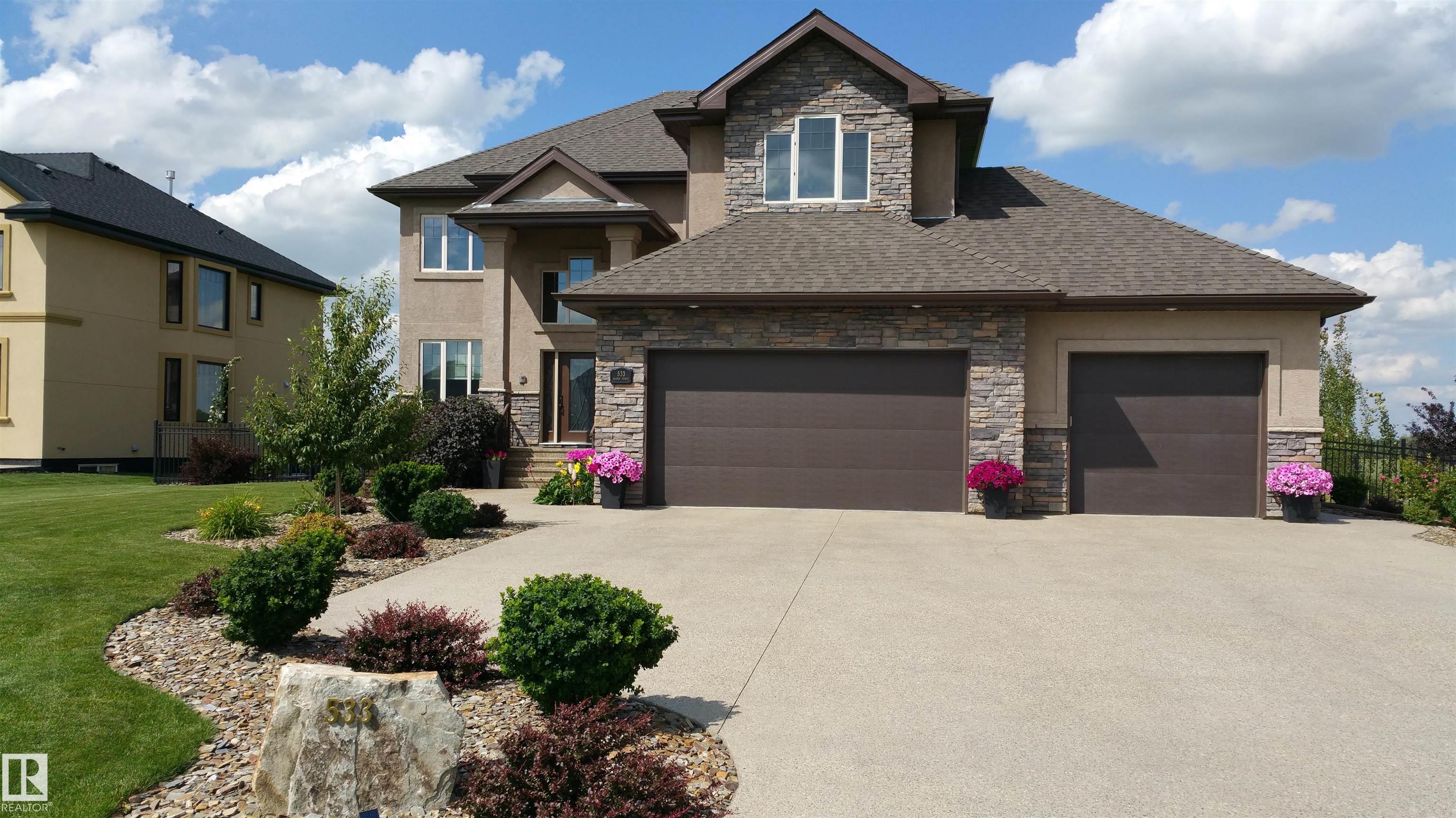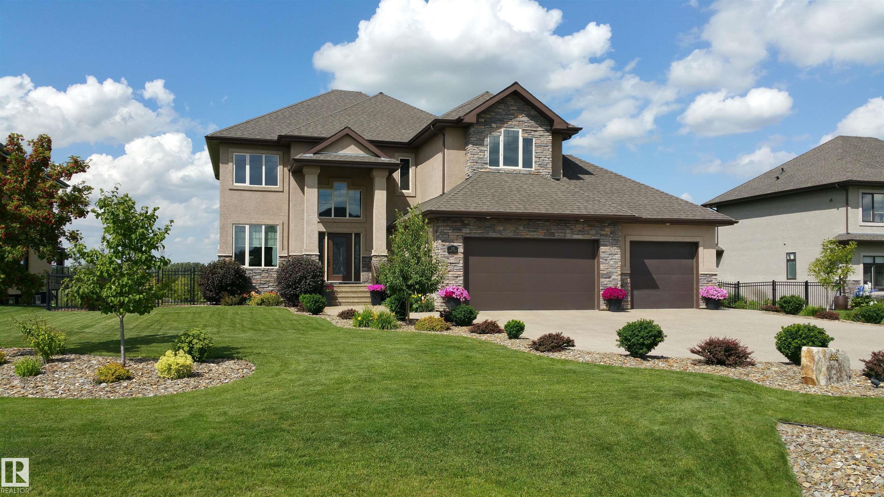 Situated on a half-acre lot in desirable Upper Manor Estates, this stunning fully finished 2-storey home offers over 3,000 sq ft of beautifully designed living space where every detail has been thoughtfully considered. With 5 bedrooms and 4 bathrooms. Step into a bright and welcoming entryway with an office space just off to the side. The spacious kitchen is filled with natural light and showcases stunning appliances, a large centre island, ample cabinetry, and a cozy breakfast nook. The gorgeous living room features a striking brick arch feature wall and a dual-sided fireplace shared with the office, creating warmth throughout the main living space. Main floor laundry adds everyday functionality. Upstairs you'll find four generous bedrooms, including an extra-large primary suite complete with a private sitting nook and a luxurious ensuite retreat. The fully finished basement has a massive rec room, wet bar, an additional bedroom, and a full bathroom. Large, fully fenced yard and triple attached garage.
