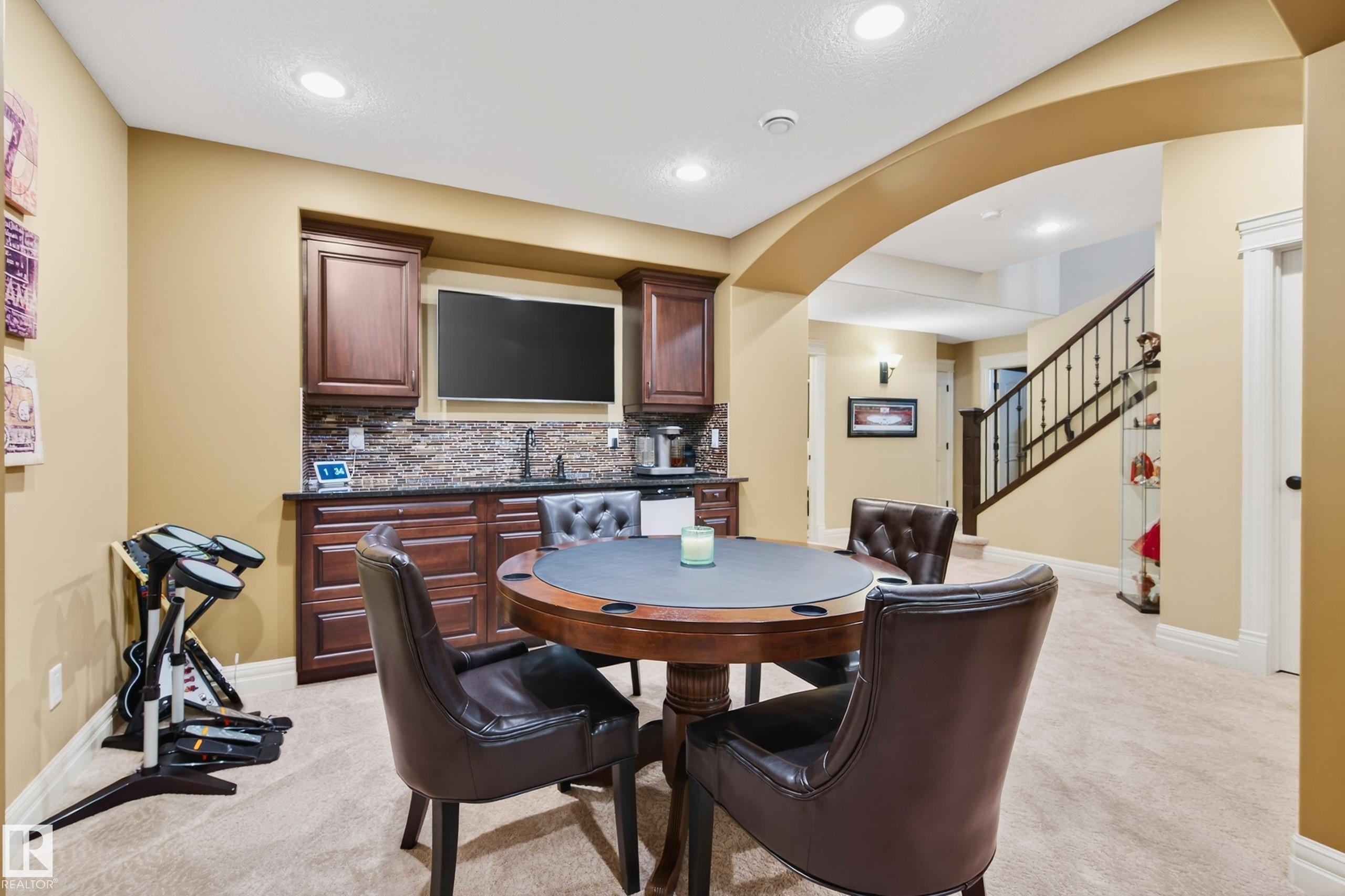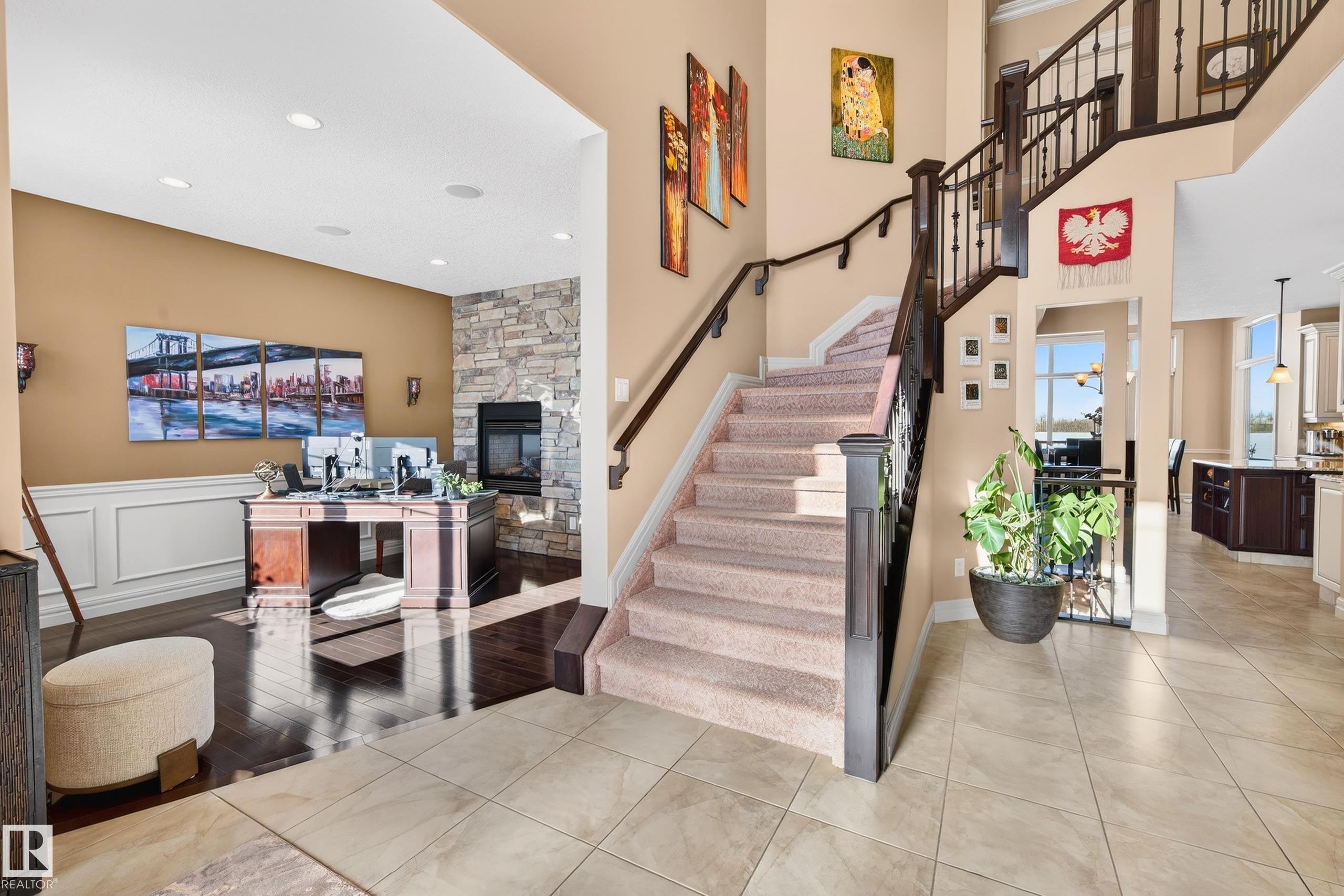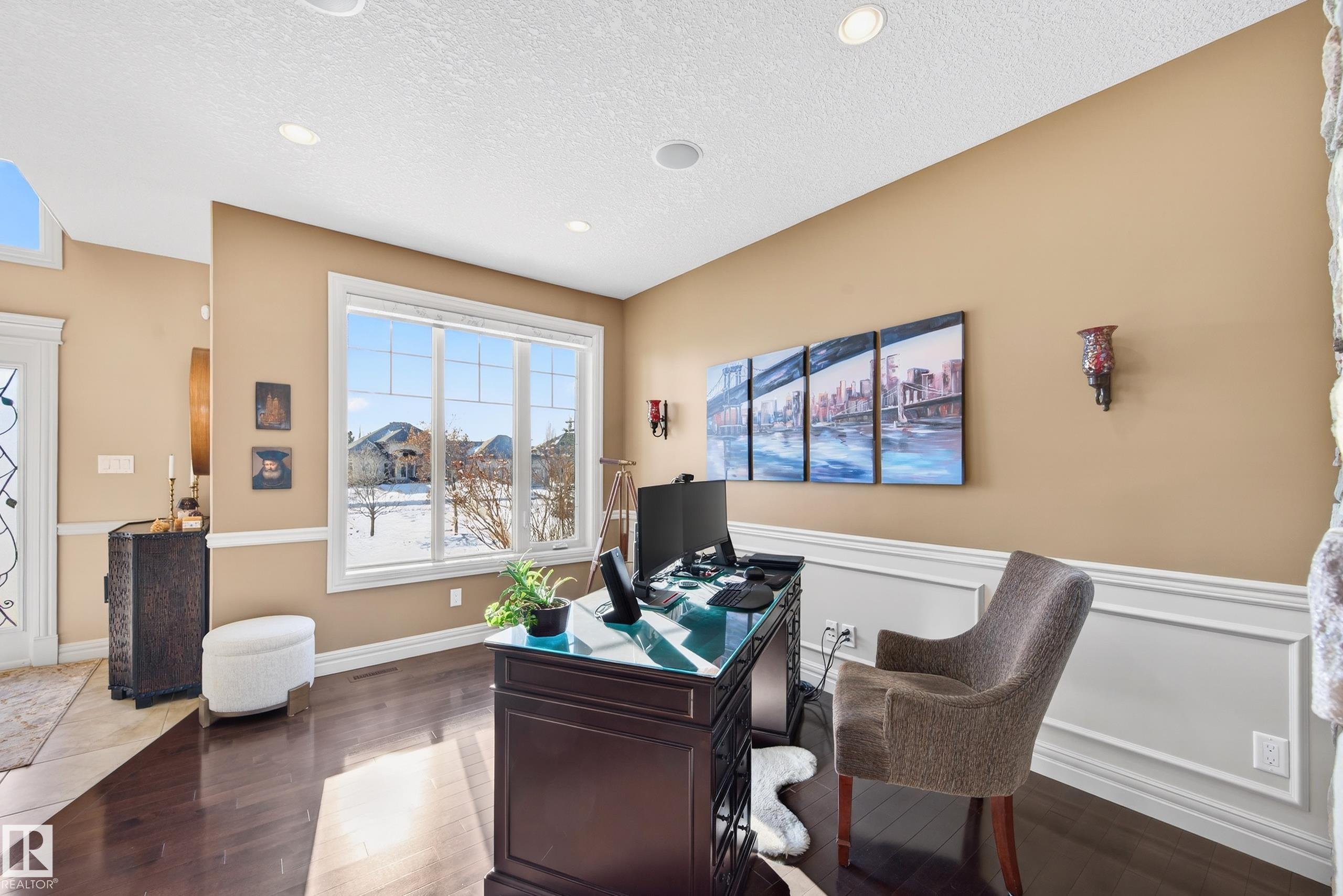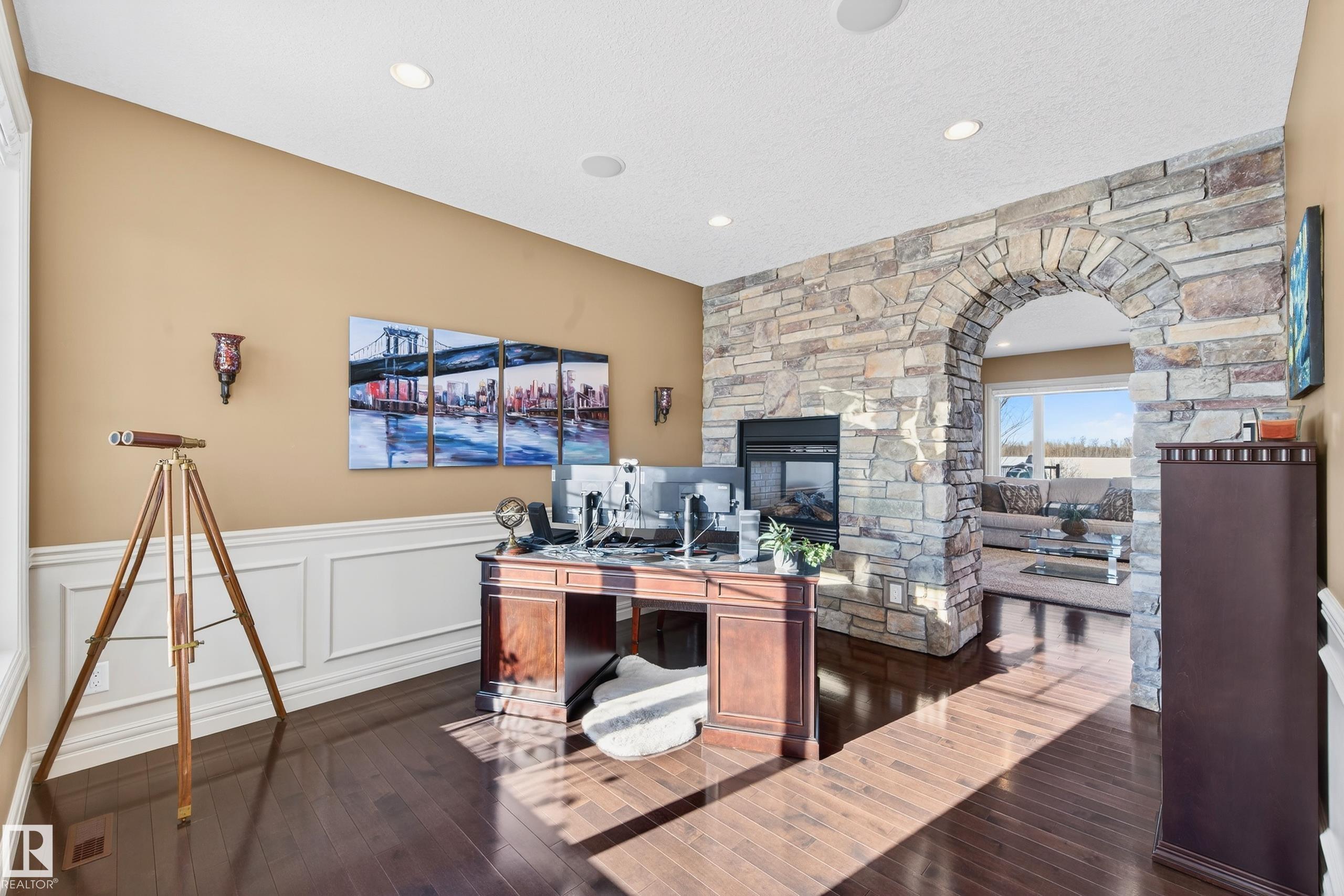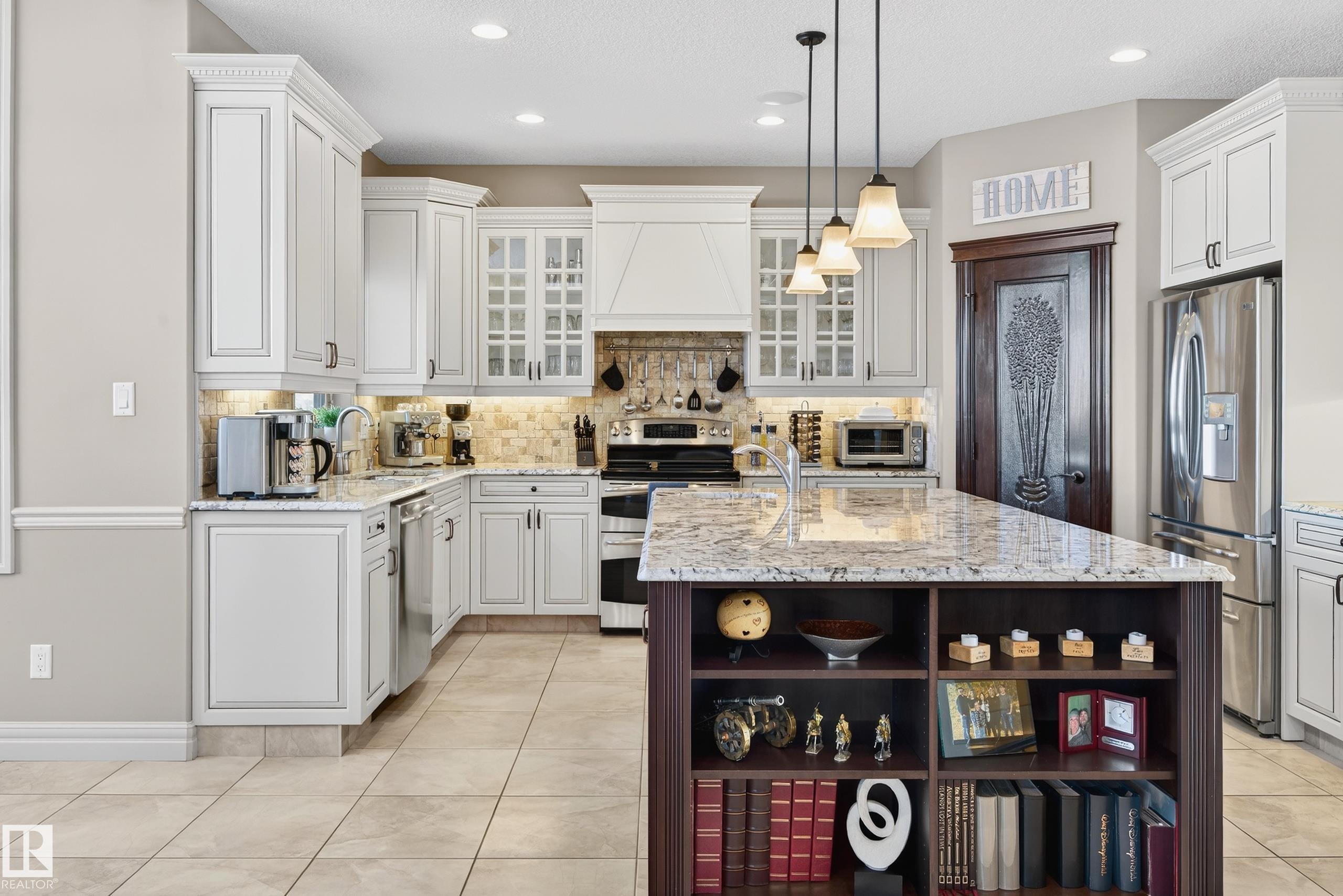 Situated on a half-acre lot in desirable Upper Manor Estates, this stunning fully finished 2-storey home offers over 3,000 sq ft of beautifully designed living space where every detail has been thoughtfully considered. With 5 bedrooms and 4 bathrooms. Step into a bright and welcoming entryway with an office space just off to the side. The spacious kitchen is filled with natural light and showcases stunning appliances, a large centre island, ample cabinetry, and a cozy breakfast nook. The gorgeous living room features a striking brick arch feature wall and a dual-sided fireplace shared with the office, creating warmth throughout the main living space. Main floor laundry adds everyday functionality. Upstairs you'll find four generous bedrooms, including an extra-large primary suite complete with a private sitting nook and a luxurious ensuite retreat. The fully finished basement has a massive rec room, wet bar, an additional bedroom, and a full bathroom. Large, fully fenced yard and triple attached garage.