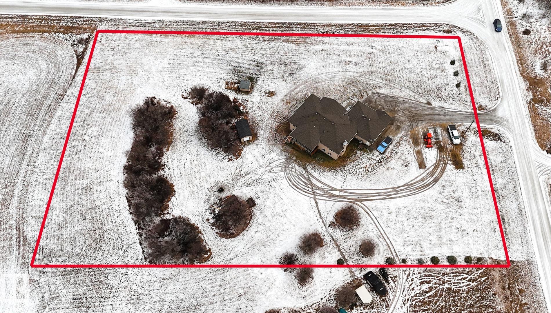 WALKOUT bungalow with attached triple garage (32Wx28L, heated, 220V, water, EV charger) on 2.17 acres (additional 2.42 acres available) in Lamorra Landing Estates, 20 minutes south of Stony Plain near the North Saskatchewan River. This beautiful 1,822 sq ft (plus full basement) home features hardwood flooring, 11' ceiling and a great open concept floor plan. On the main level: living room with south-facing window, large dining area with deck access, gourmet kitchen with two-tier eat-up island, main floor laundry, 2.5 bathrooms and 3 generous-sized bedrooms including the owner's suite with walk-in closet and 4-piece ensuite. Bright walkout basement with 2 additional bedrooms, 4-piece bathroom, storage rooms and a spacious family/rec room with huge wet bar. Outside: covered patio with hot tub, covered deck, front porch, 3 storage sheds, wood shed, fire pit. 25 mins to Spruce Grove or Devon, 30 mins to Edmonton. Attached Raw land lot for sale: MLS E4467606, Package Pricing Available.