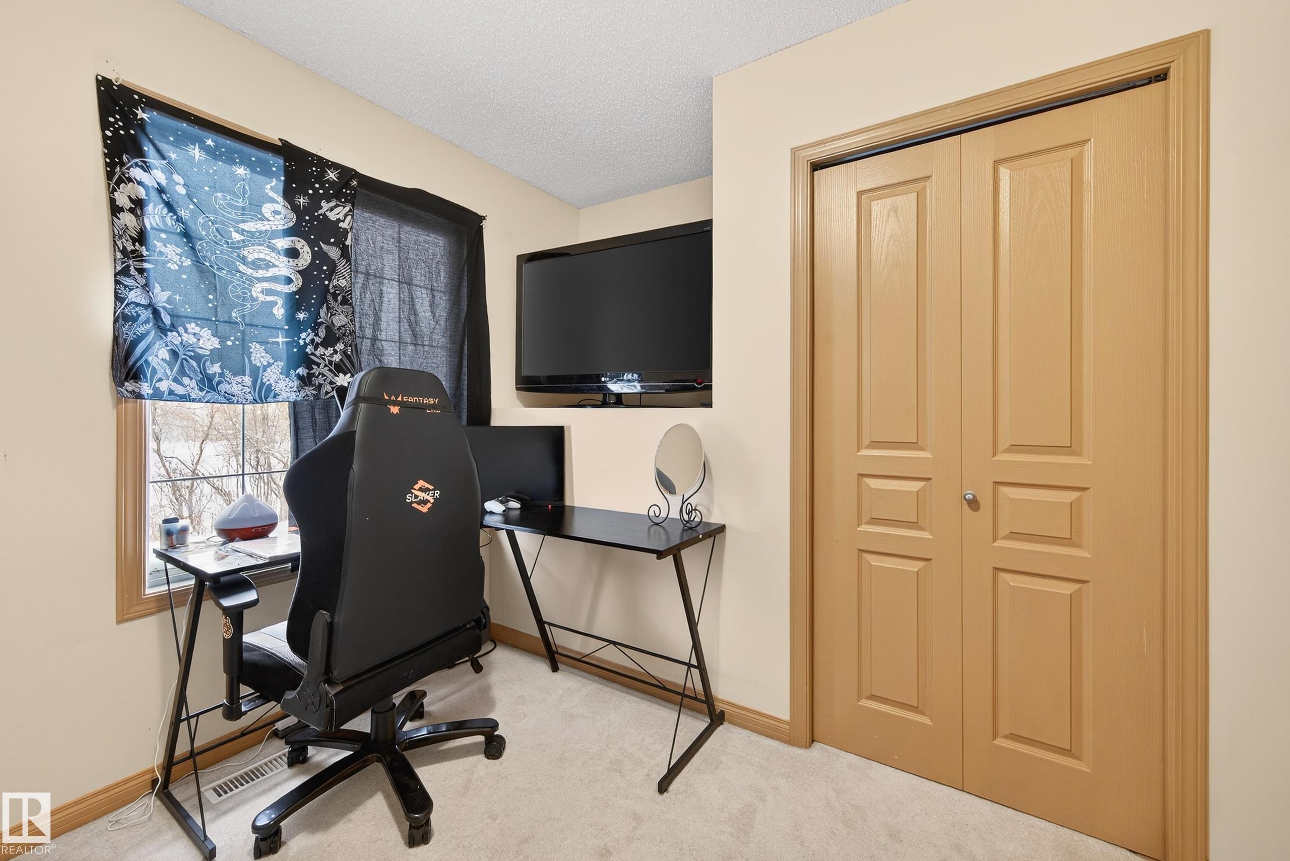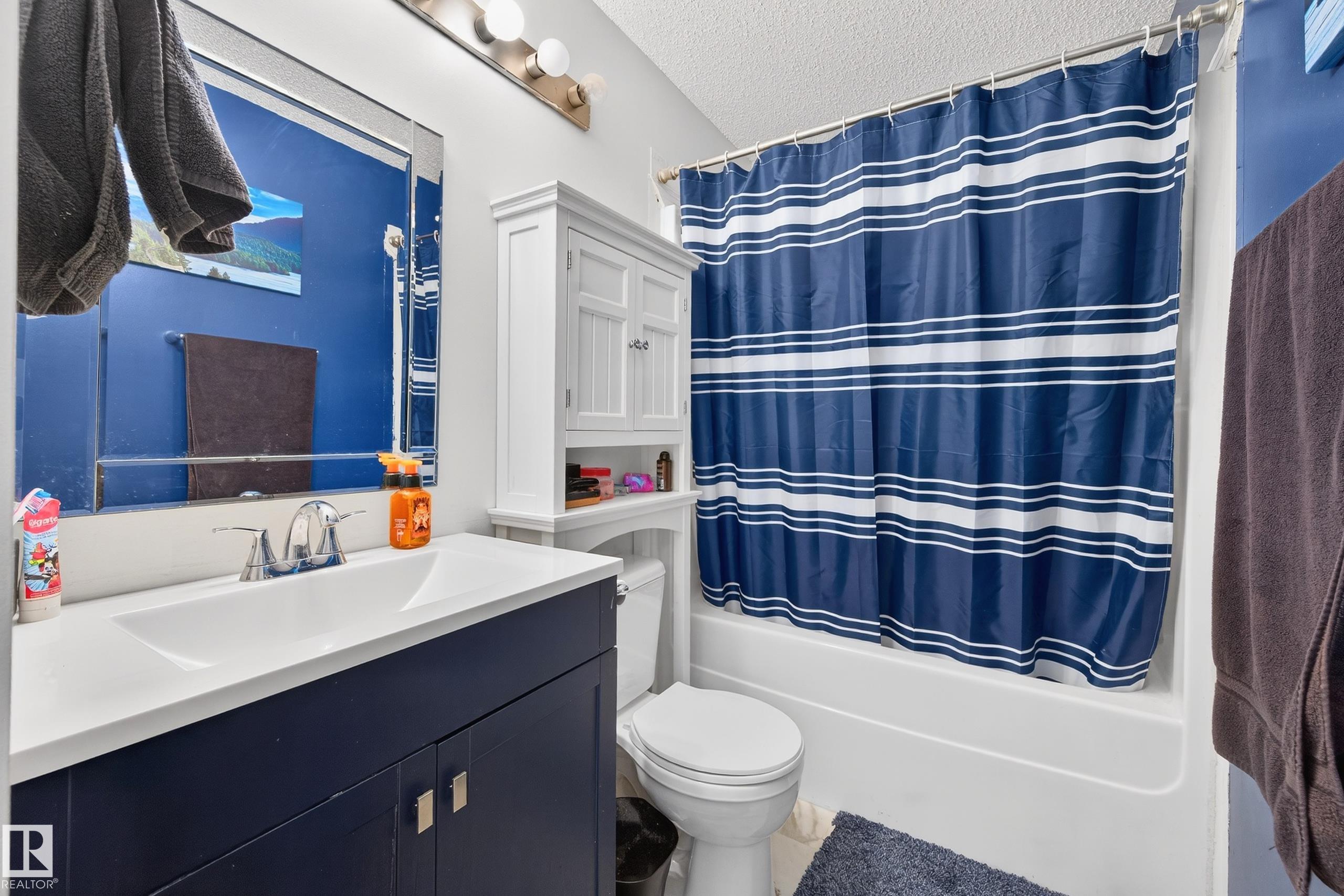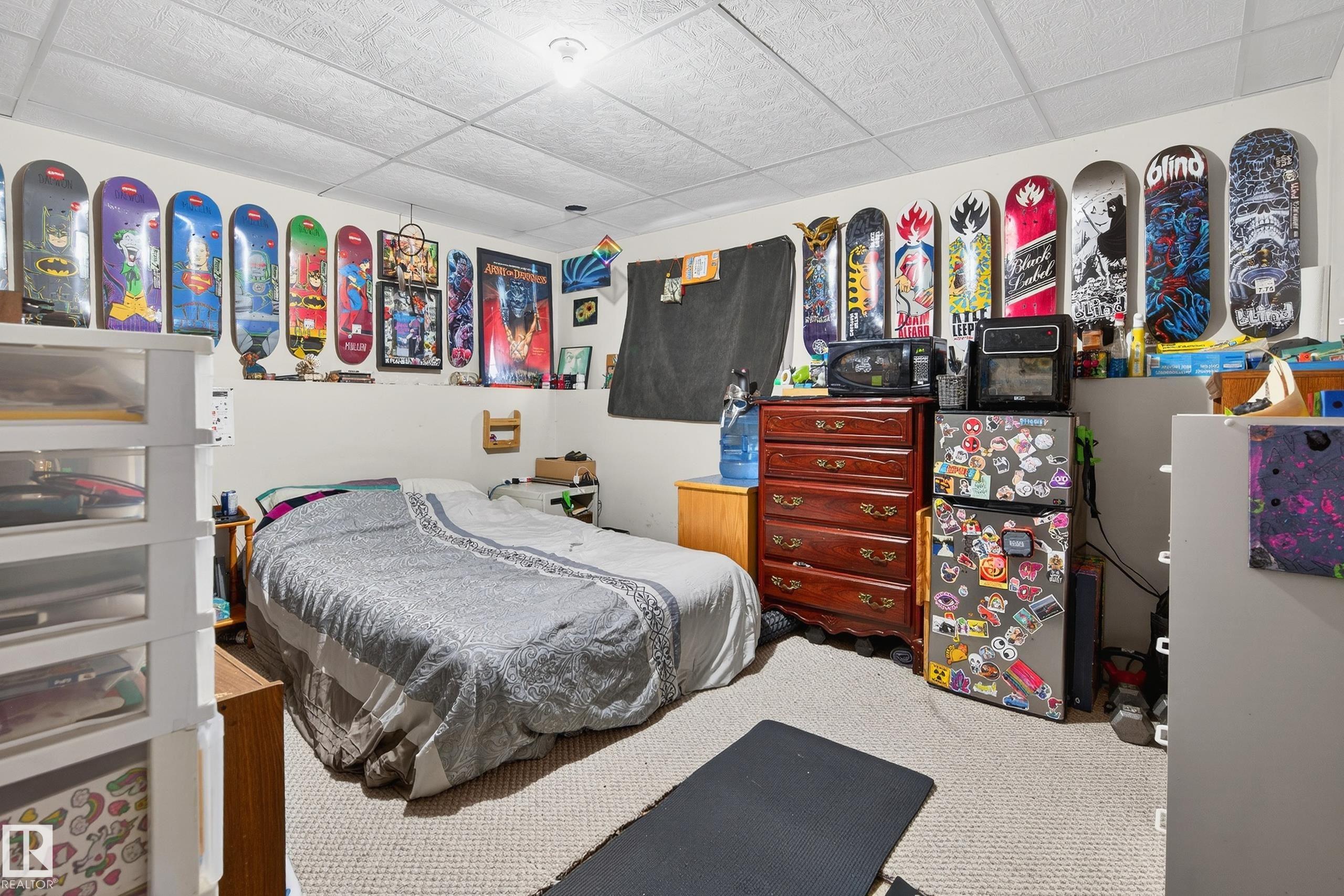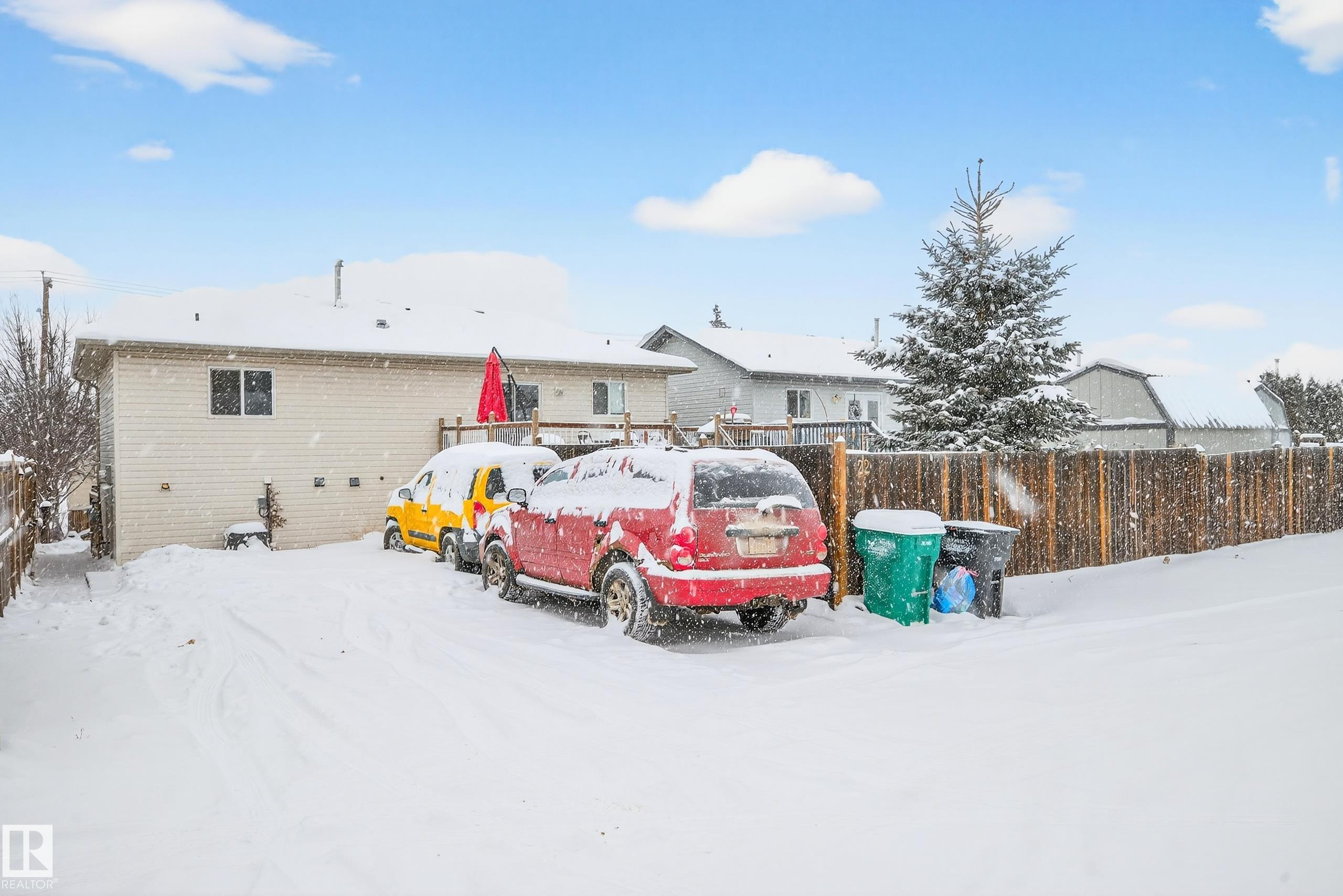 Welcome to this four-bedroom family home in a quiet, private setting backing onto Archie Jenkins Sports Field. The bi-level home features an open floor plan with a partially developed basement. The main floor features a spacious eat-in kitchen with a center island, ample cabinetry, and stainless-steel appliances. Patio doors off the kitchen lead to a large 20 x 15 deck with ample storage below. The bright living room overlooks the fully fenced backyard. Three bedrooms and a four-piece bathroom complete the main level. The lower level is partially developed with oversized windows, a fourth bedroom, a modern three-piece bathroom, a computer nook, and a large family room. Enjoy central AC and a designated alleyway parking pad. Conveniently located just a short 20-minute drive to CFB Edmonton.