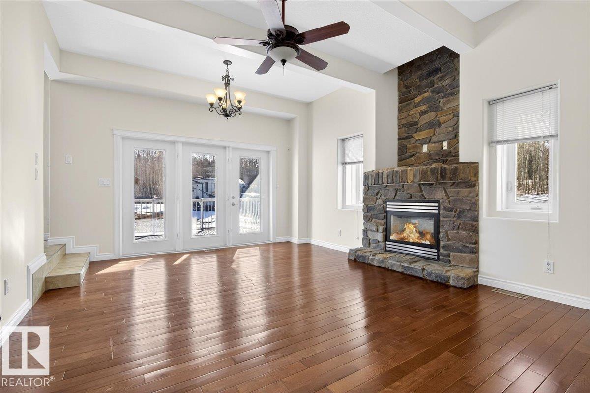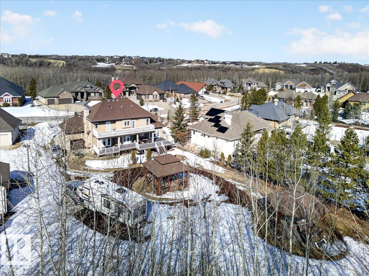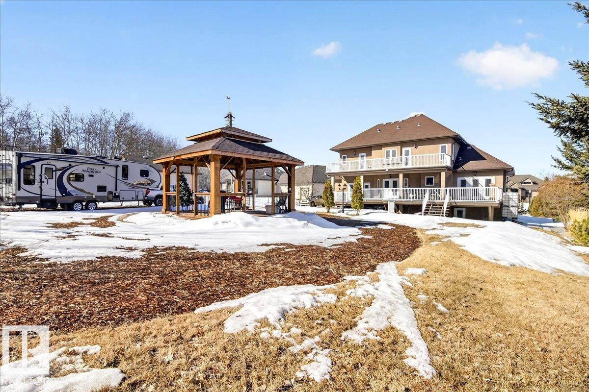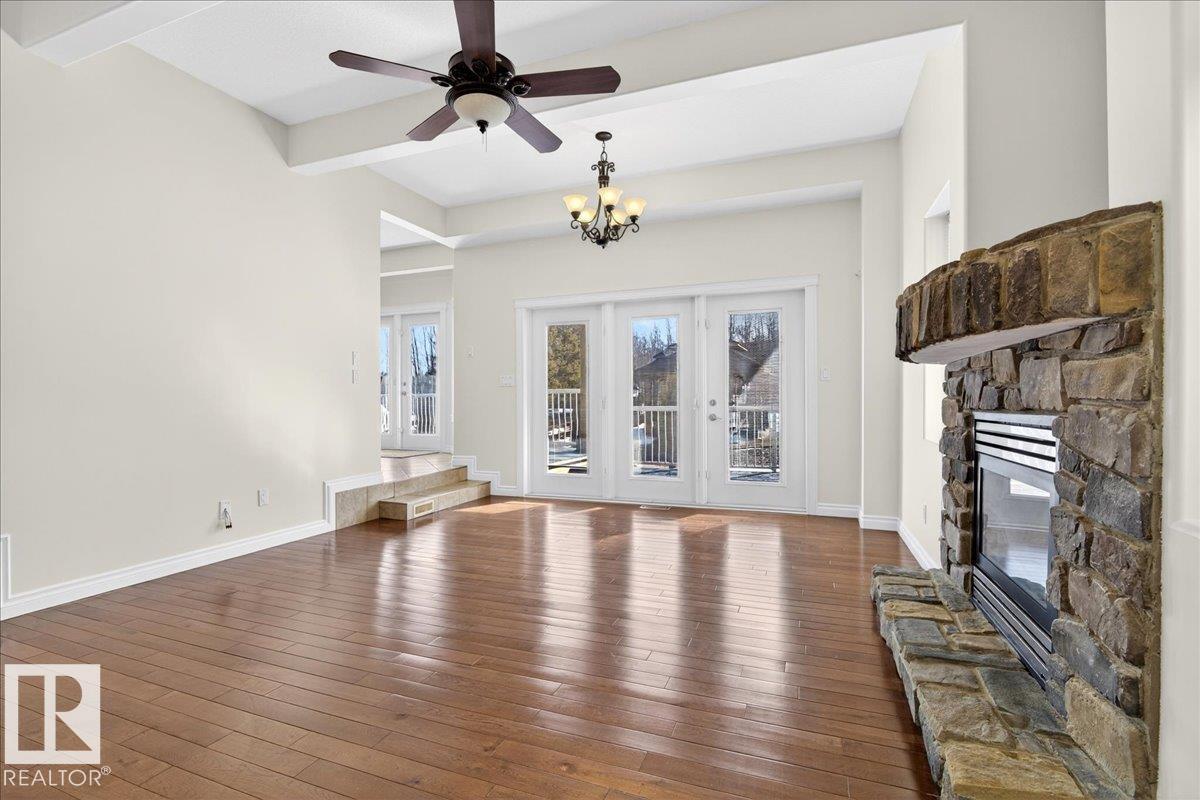Rare opportunity in Crossing at the River's Edge! This original-owner, meticulously maintained 2-storey offers nearly 4,000 sq ft of developed living space, just minutes to Edmonton and St. Albert with city water. Designed for growing and multi-generational families, the home features 4 bedrooms upstairs, a main floor den, formal dining room, and a bright open-concept kitchen and family room with gas fireplace and large windows throughout. The fully finished walkout basement includes a separate entrance, forced walkout, second kitchen, 2 bedrooms, full bath with stacked laundry ideal for extended family or suite potential. Enjoy the large wraparound deck, perfect for entertaining, plus a triple attached heated garage with rear yard access. Exceptional space, flexibility, and pride of ownership throughout room to grow!