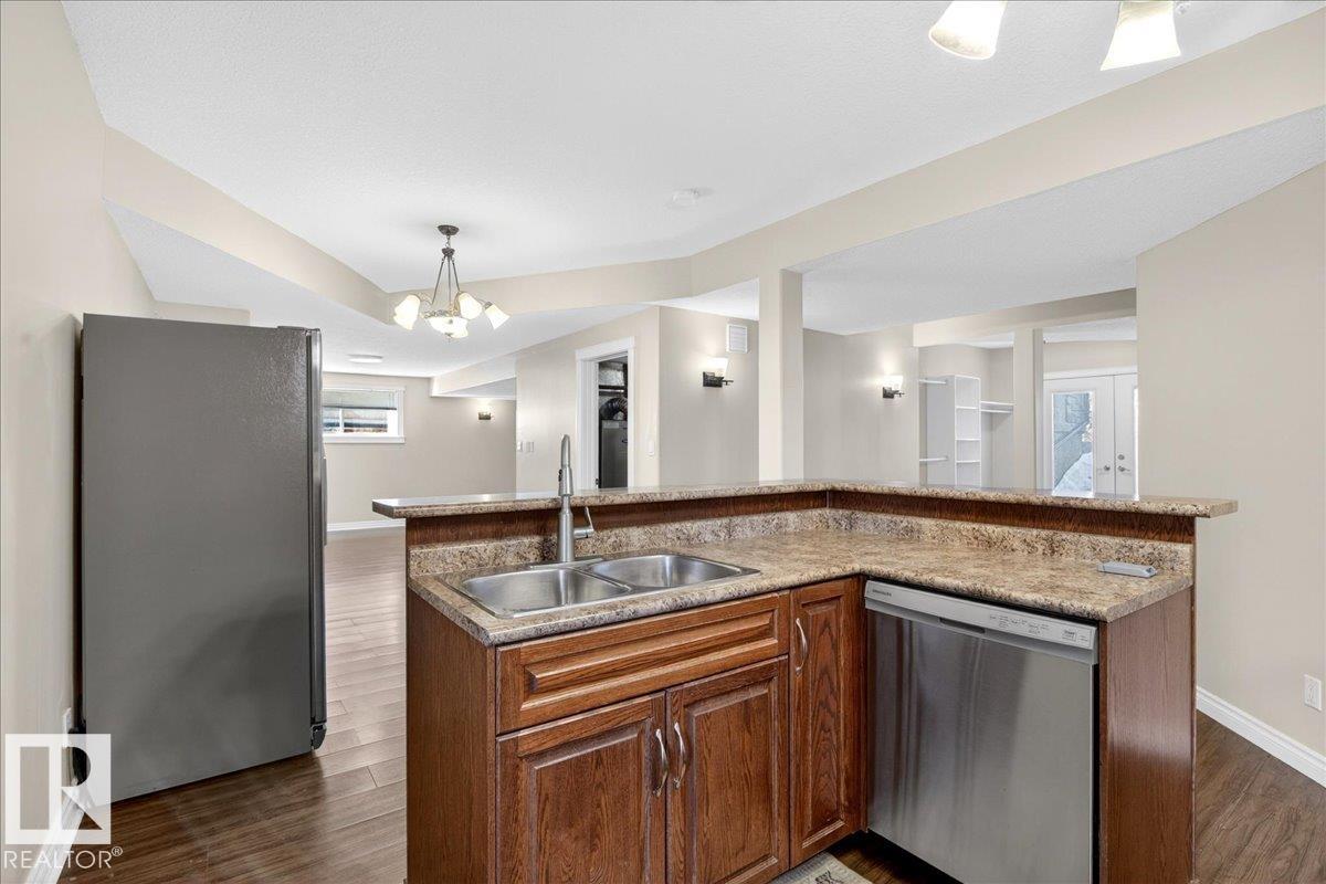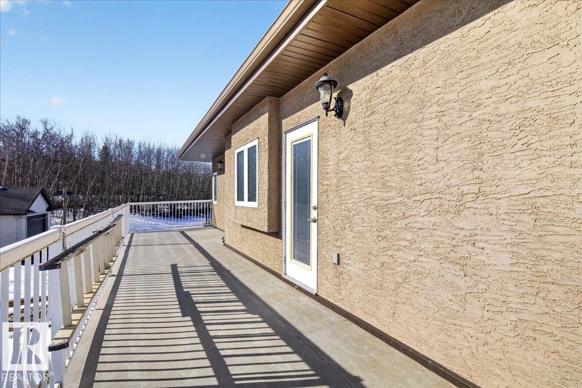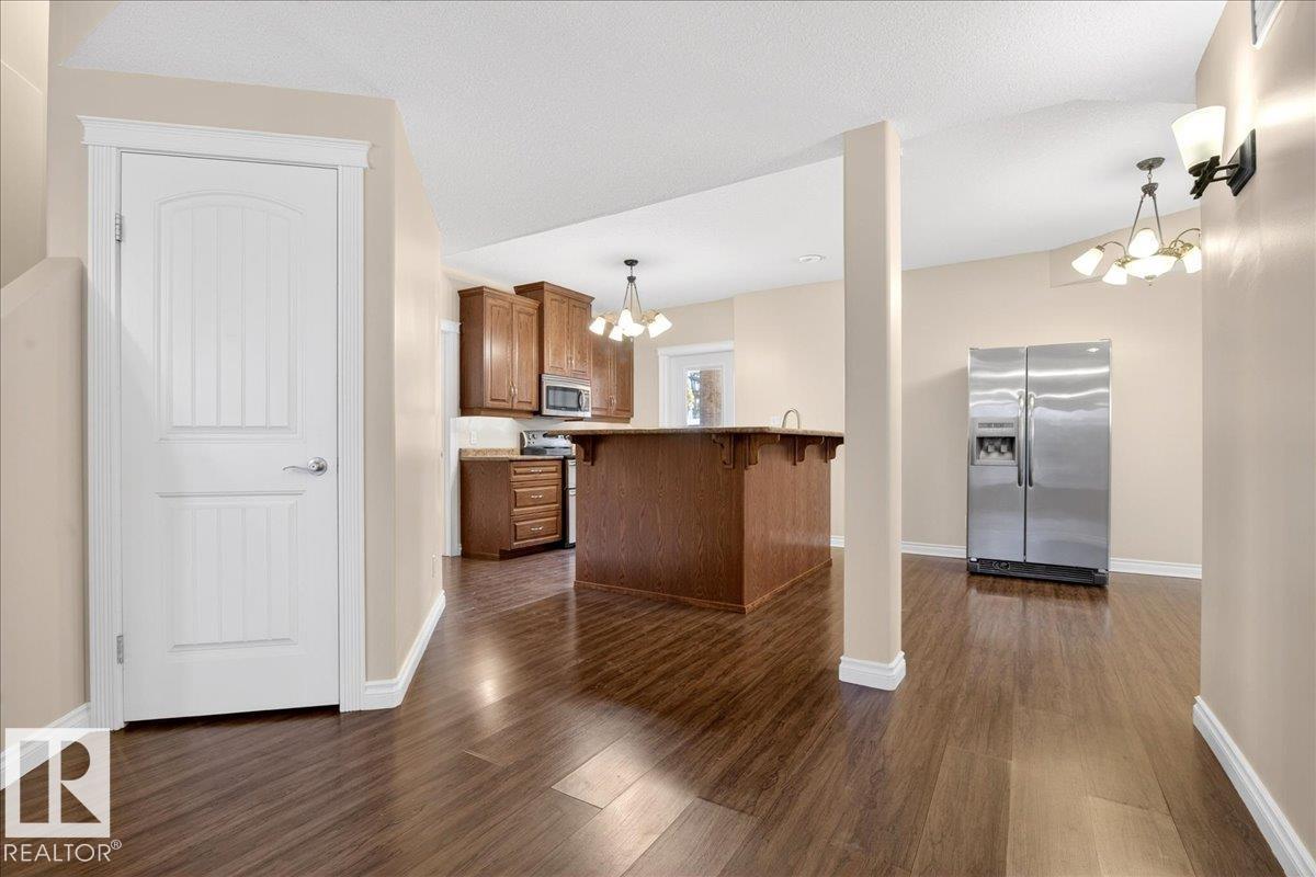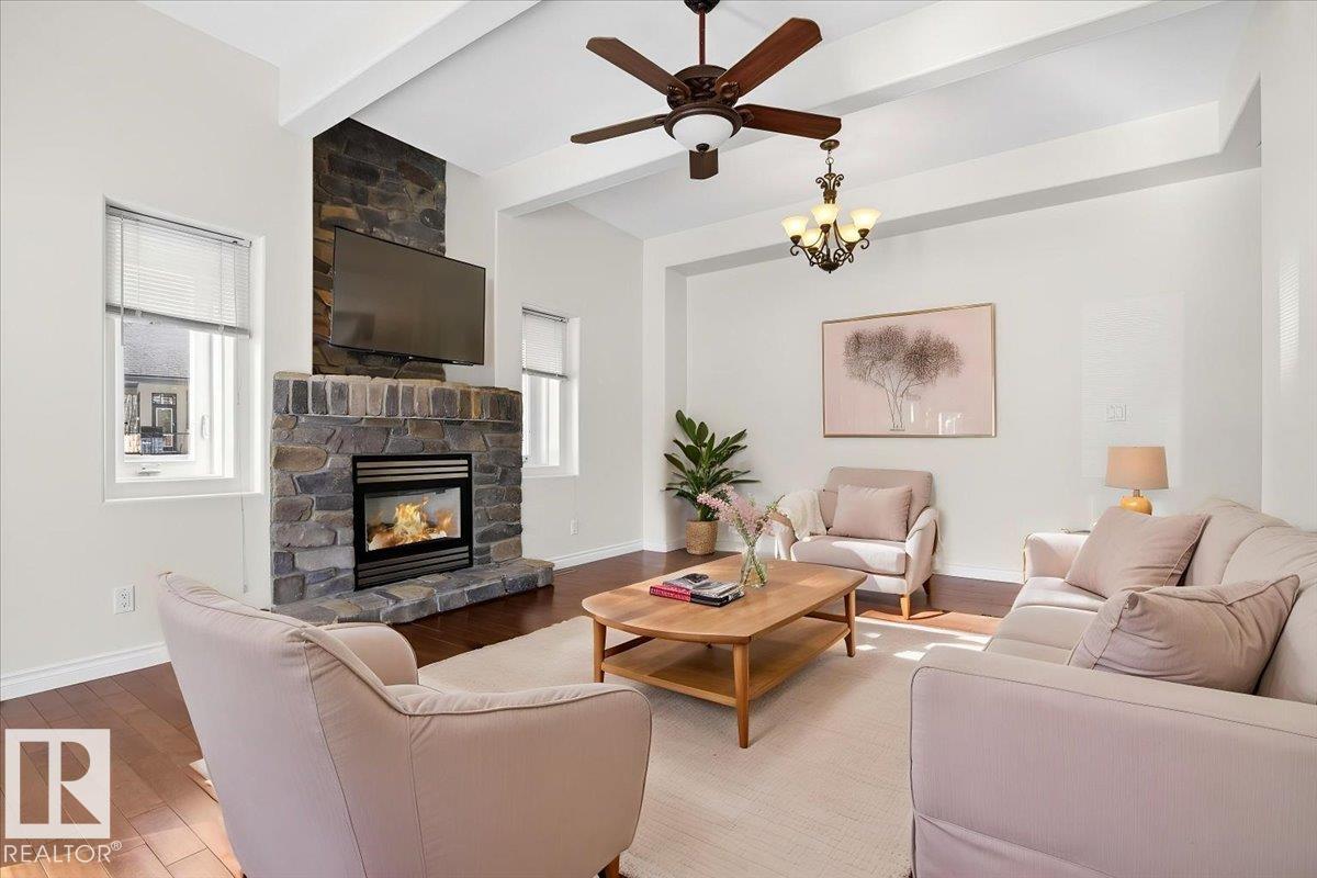 Rare opportunity in Crossing at the River's Edge! This original-owner, meticulously maintained 2-storey offers nearly 4,000 sq ft of developed living space, just minutes to Edmonton and St. Albert with city water. Designed for growing and multi-generational families, the home features 4 bedrooms upstairs, a main floor den, formal dining room, and a bright open-concept kitchen and family room with gas fireplace and large windows throughout. The fully finished walkout basement includes a separate entrance, forced walkout, second kitchen, 2 bedrooms, full bath with stacked laundry ideal for extended family or suite potential. Enjoy the large wraparound deck, perfect for entertaining, plus a triple attached heated garage with rear yard access. Exceptional space, flexibility, and pride of ownership throughout room to grow!