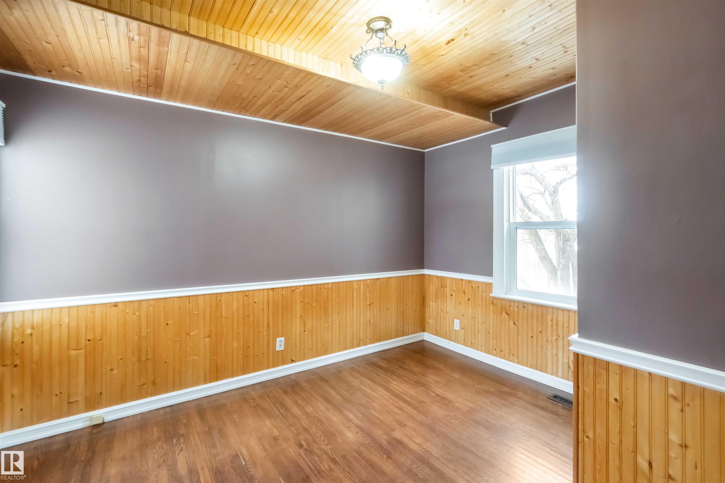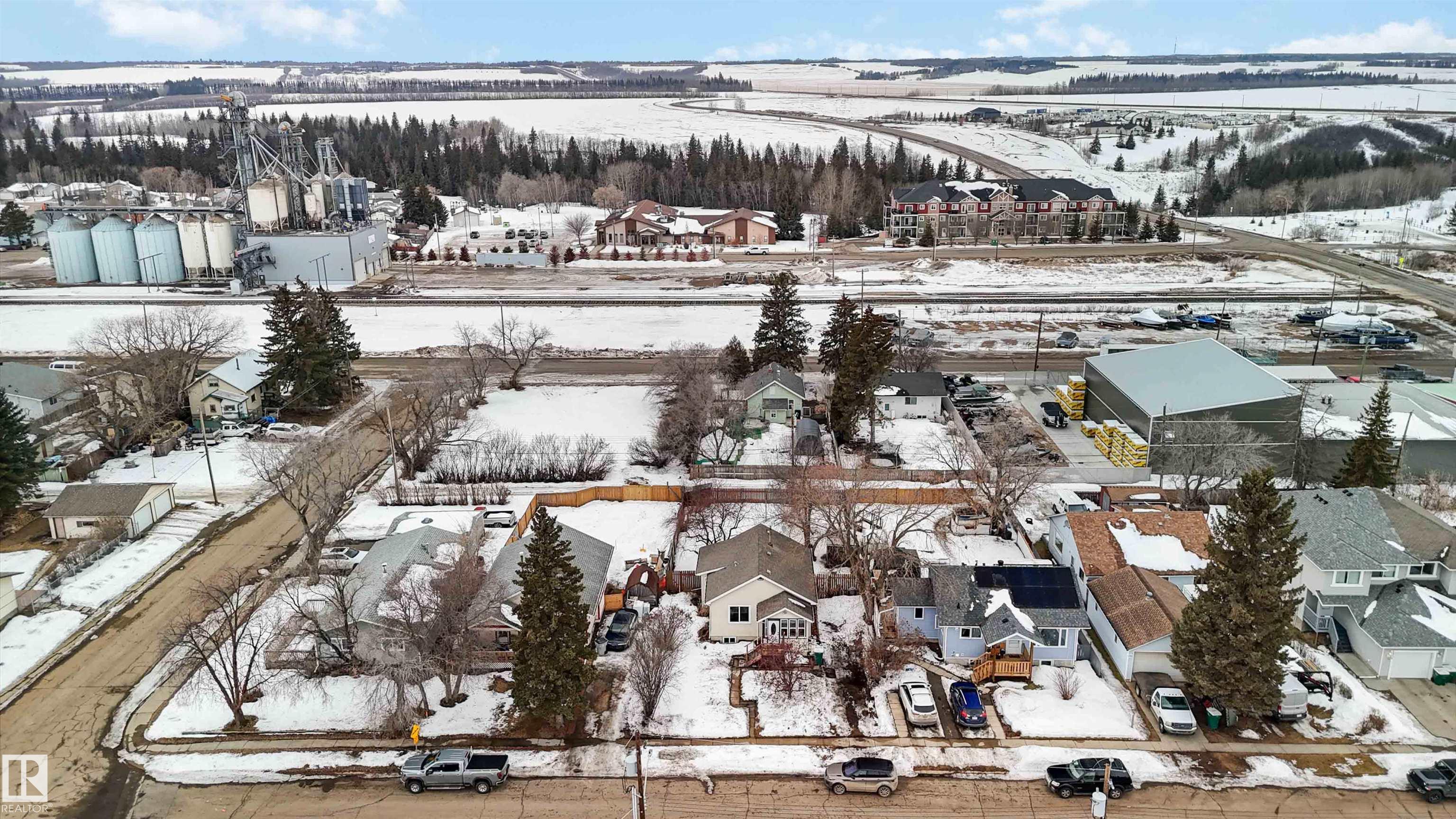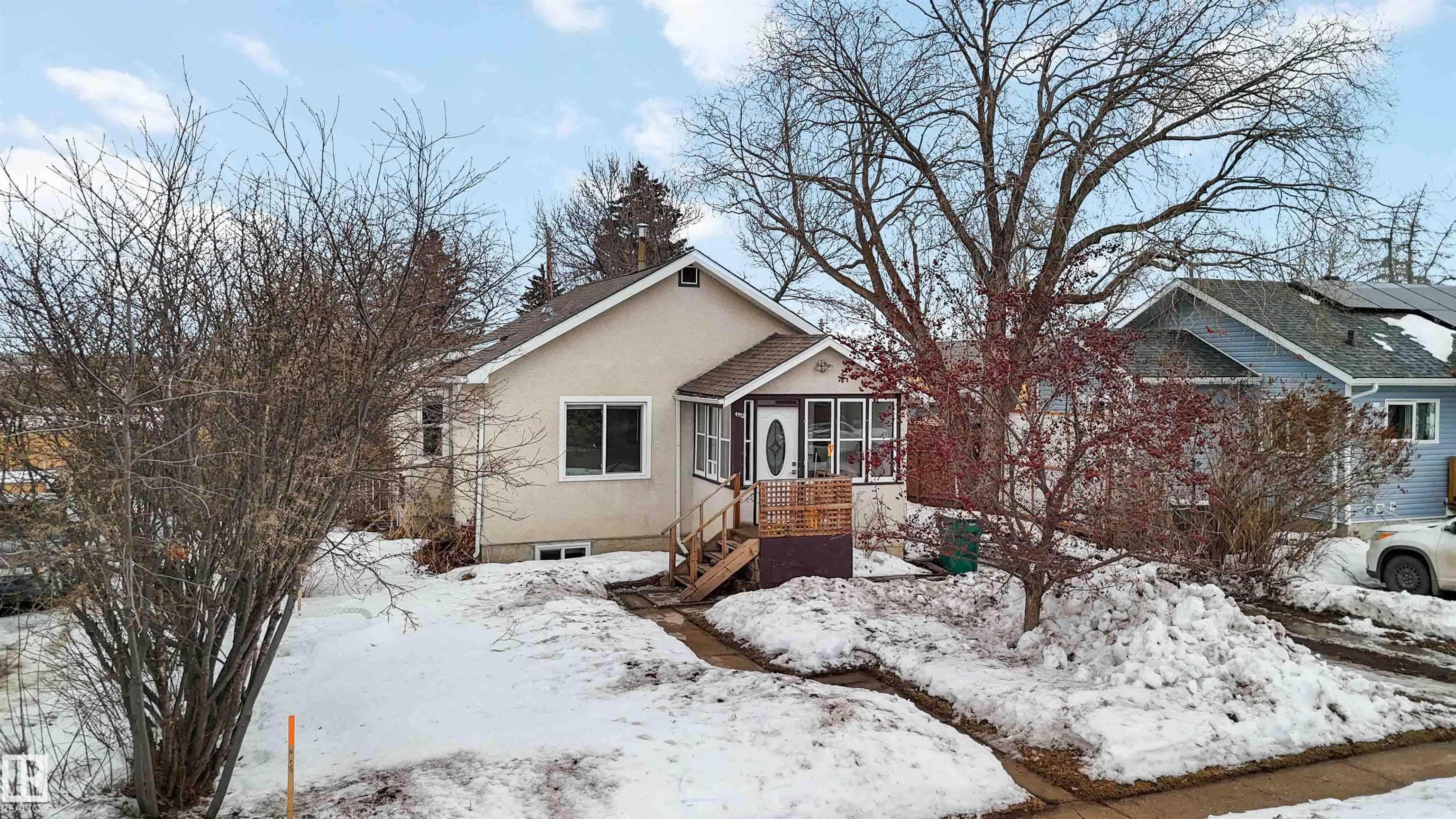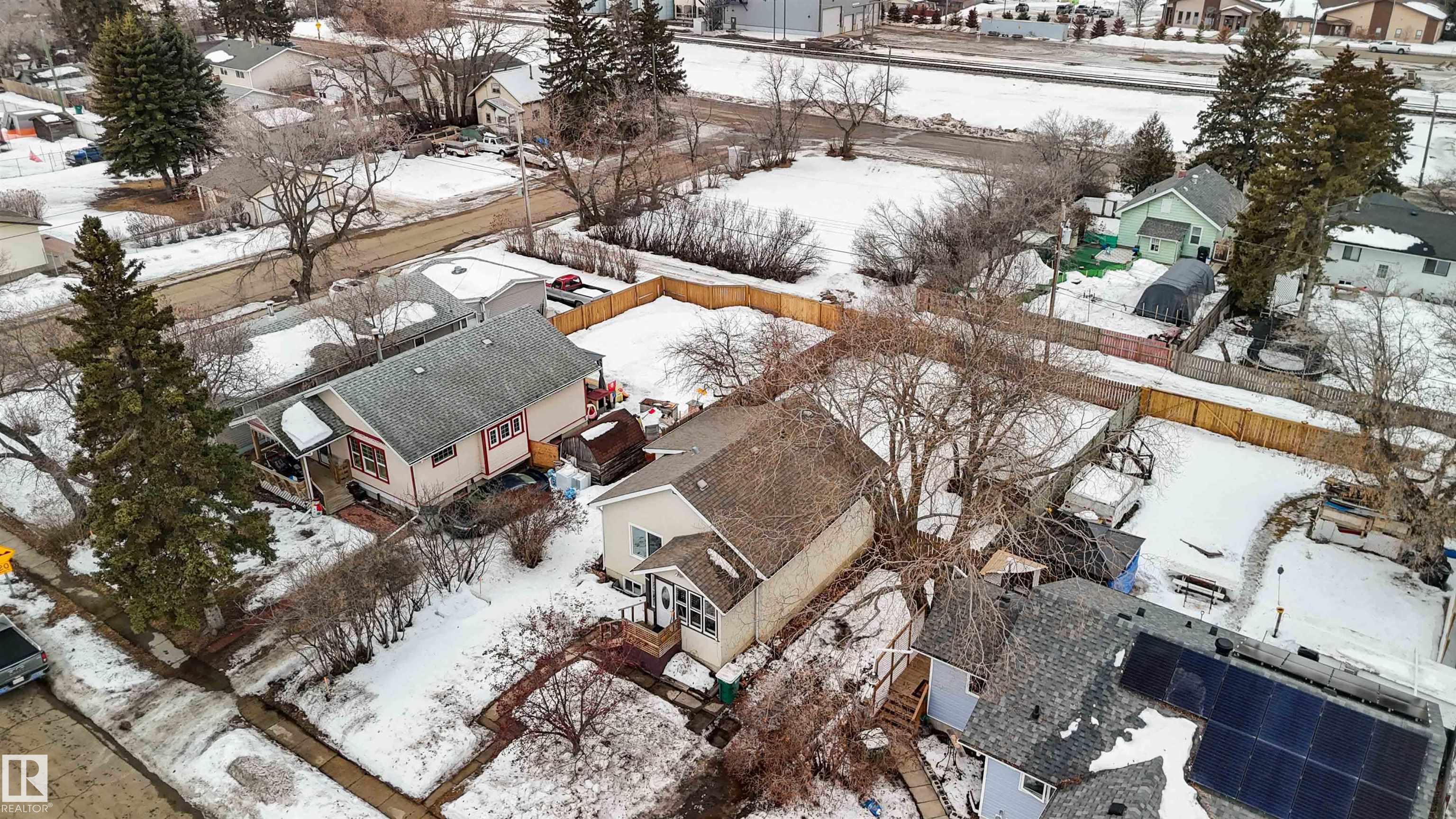 Start your journey & invest in this cute bungalow in the Town ofGibbons. Freshly painted throughout & newer vinyl windows & hardwood floors plus electrical was upgraded in 2025. Sitting on a 50'x150' lot there is ample room for a large garage in the back yard or room for RV storage. Front entrance is through an enclosed front porch - great for boot/shoe storage. Primary bedroom on the main level, den, 4 pc bathroom, galley kitchen with access to a back enclosed porch looking over the yard. The basement is finished with an additional bedroom, flex room, laundry/utility area & family room. Front driveway leading to the fenced back yard.