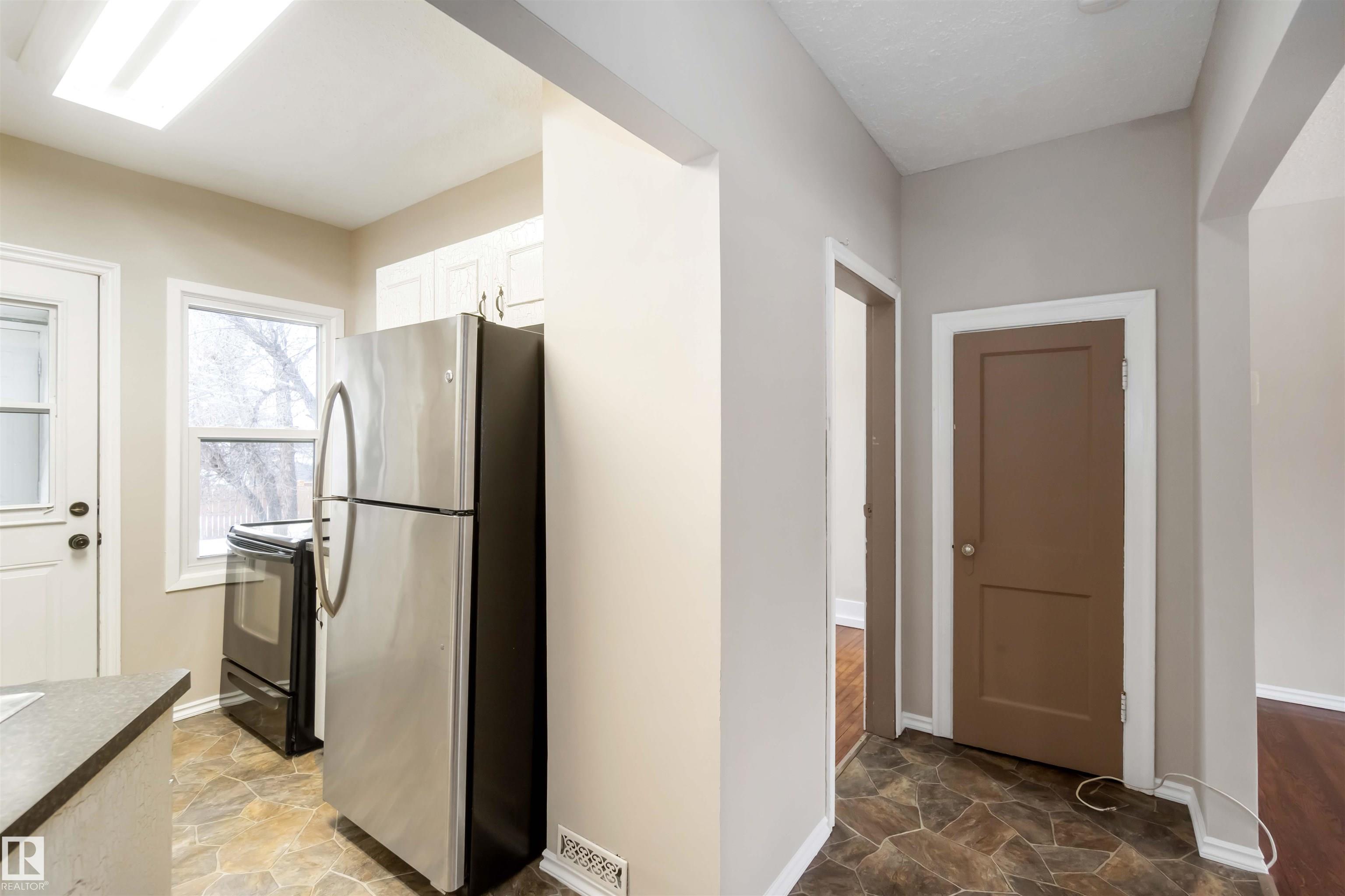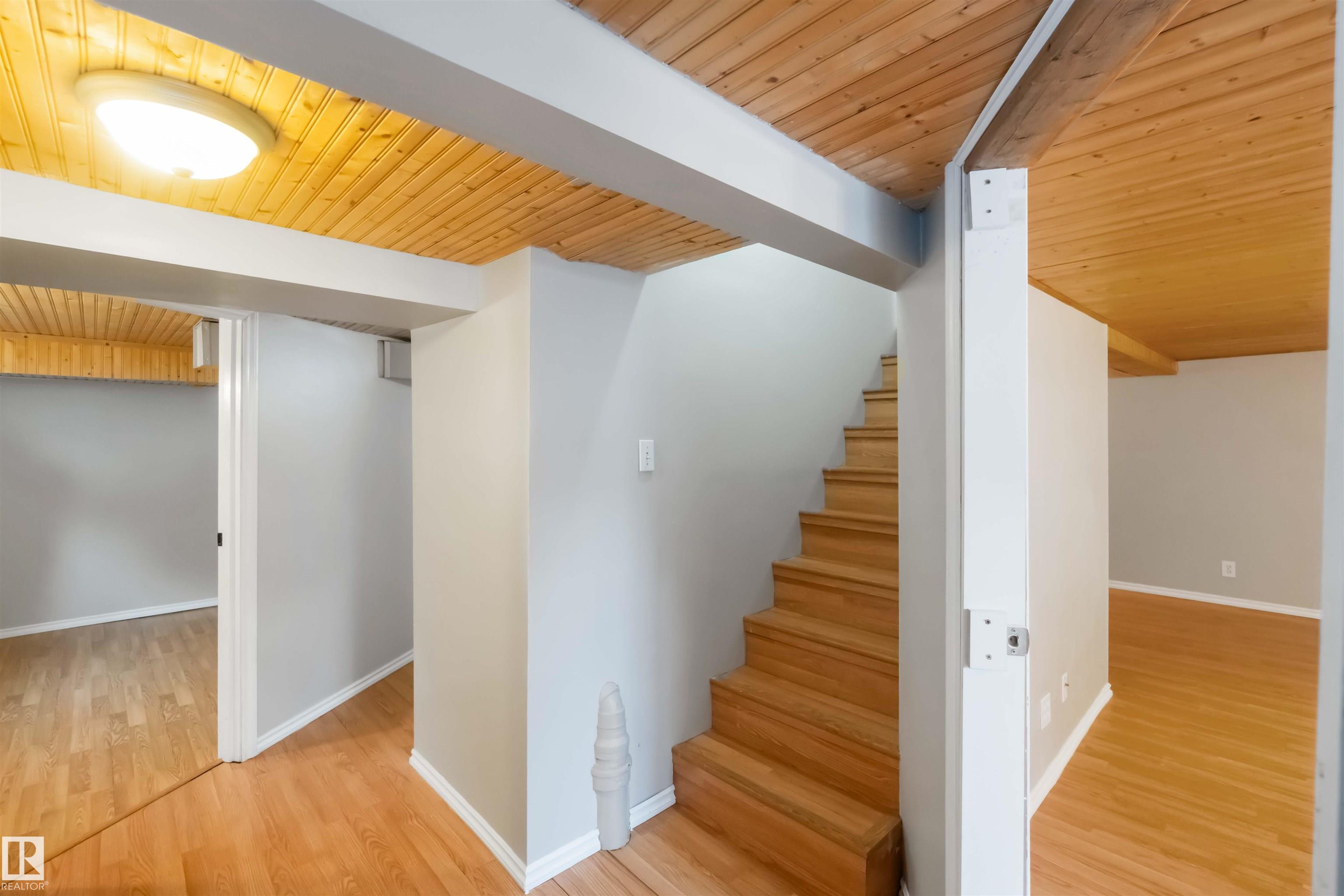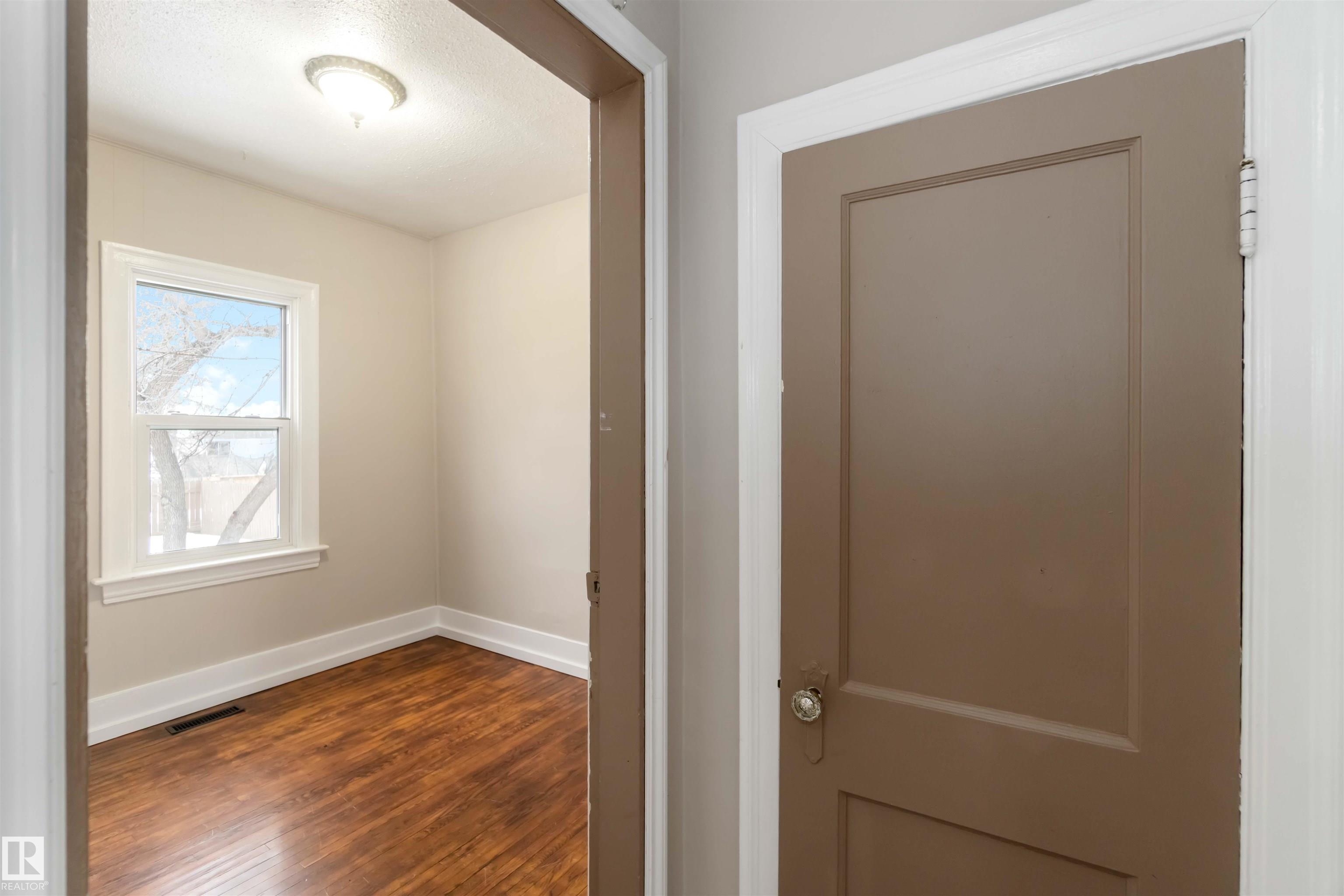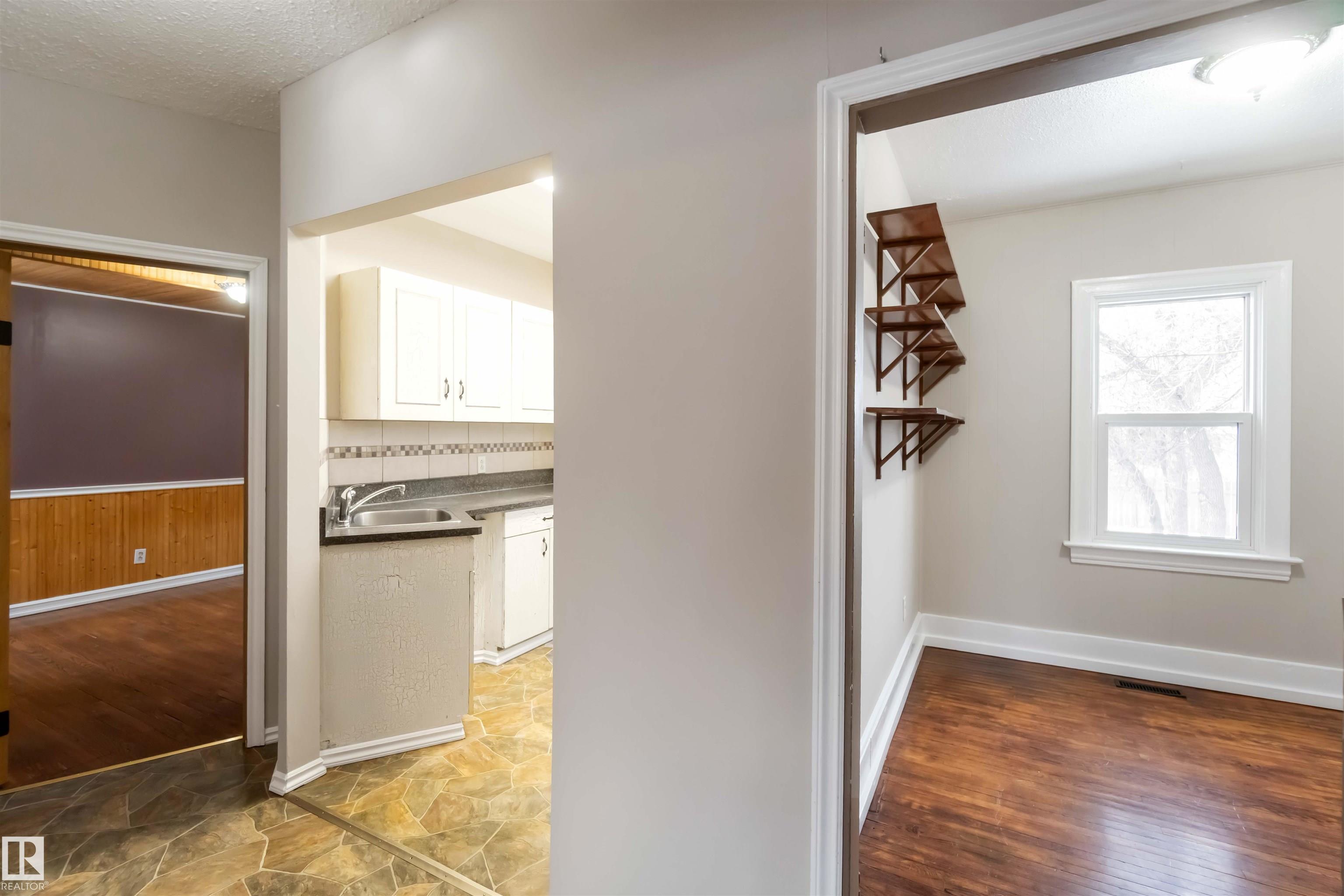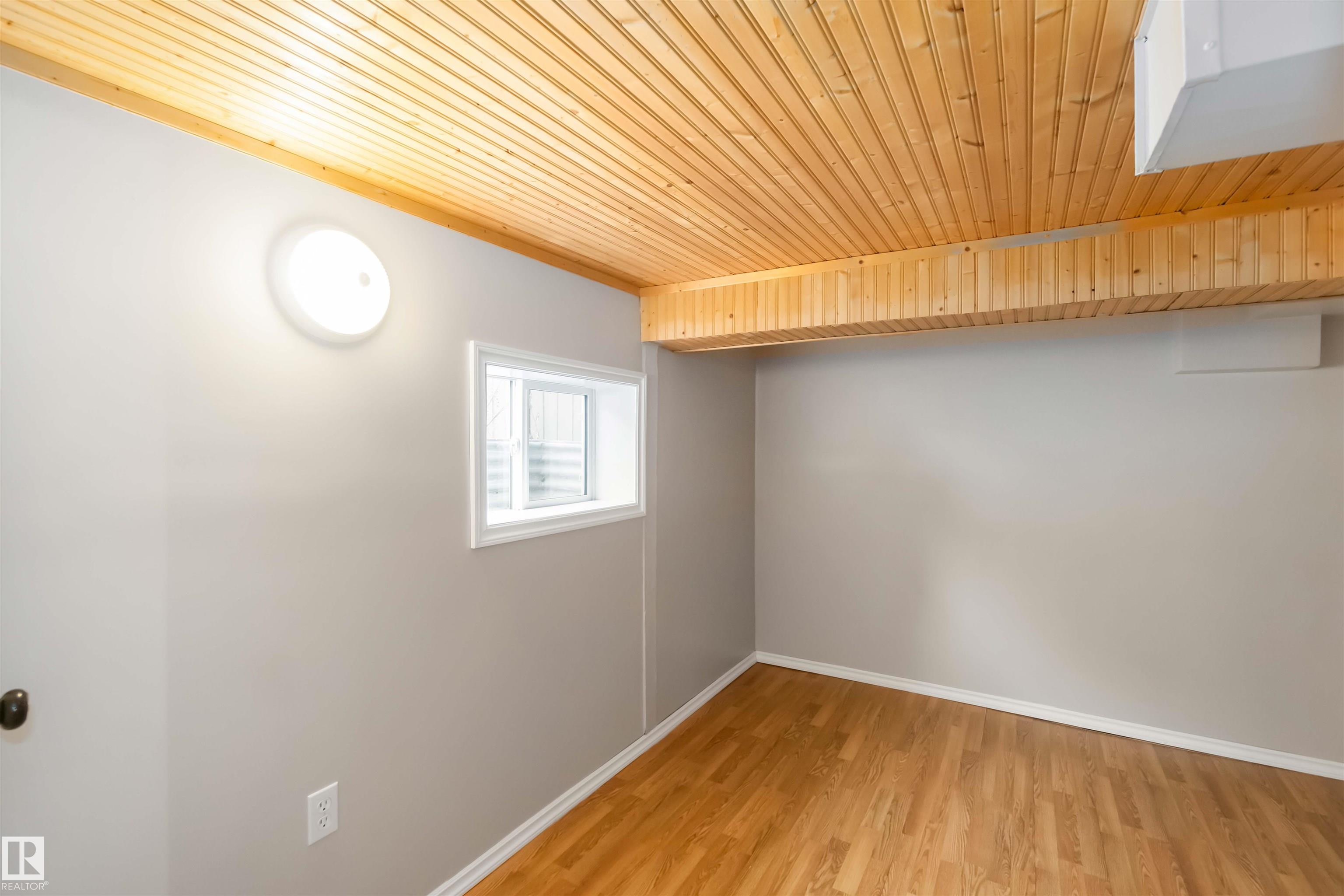 Start your journey & invest in this cute bungalow in the Town ofGibbons. Freshly painted throughout & newer vinyl windows & hardwood floors plus electrical was upgraded in 2025. Sitting on a 50'x150' lot there is ample room for a large garage in the back yard or room for RV storage. Front entrance is through an enclosed front porch - great for boot/shoe storage. Primary bedroom on the main level, den, 4 pc bathroom, galley kitchen with access to a back enclosed porch looking over the yard. The basement is finished with an additional bedroom, flex room, laundry/utility area & family room. Front driveway leading to the fenced back yard.
