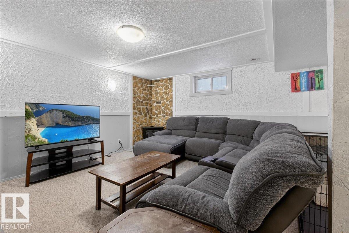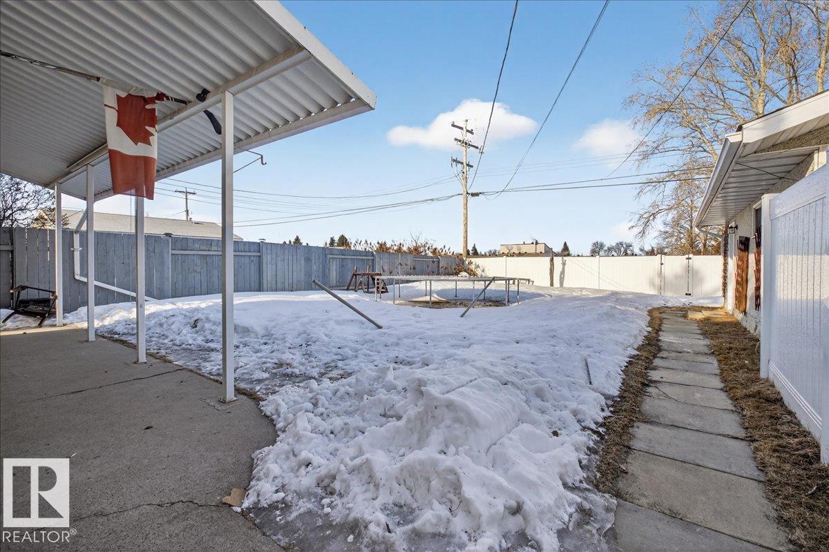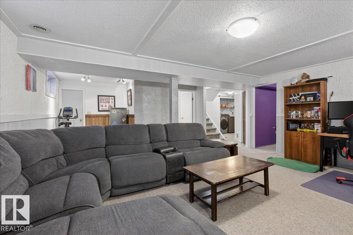 Move-in ready 5-bedroom bungalow in Gibbons, backing onto the green space of the Gibbons Museum grounds. Main floor features new flooring, trim, paint, quartz kitchen counters, and updated bathroom. Primary bedroom with 2-piece ensuite. Basement includes cozy electric fireplace, 3-piece bath, and versatile den for play, office, or storage. Outside, enjoy a mostly vinyl-fenced yard, oversized double garage, and covered back deck--perfect for relaxing while kids play. Walking distance to school, spray park, and Brumfit Park. A fantastic family home in a great location!