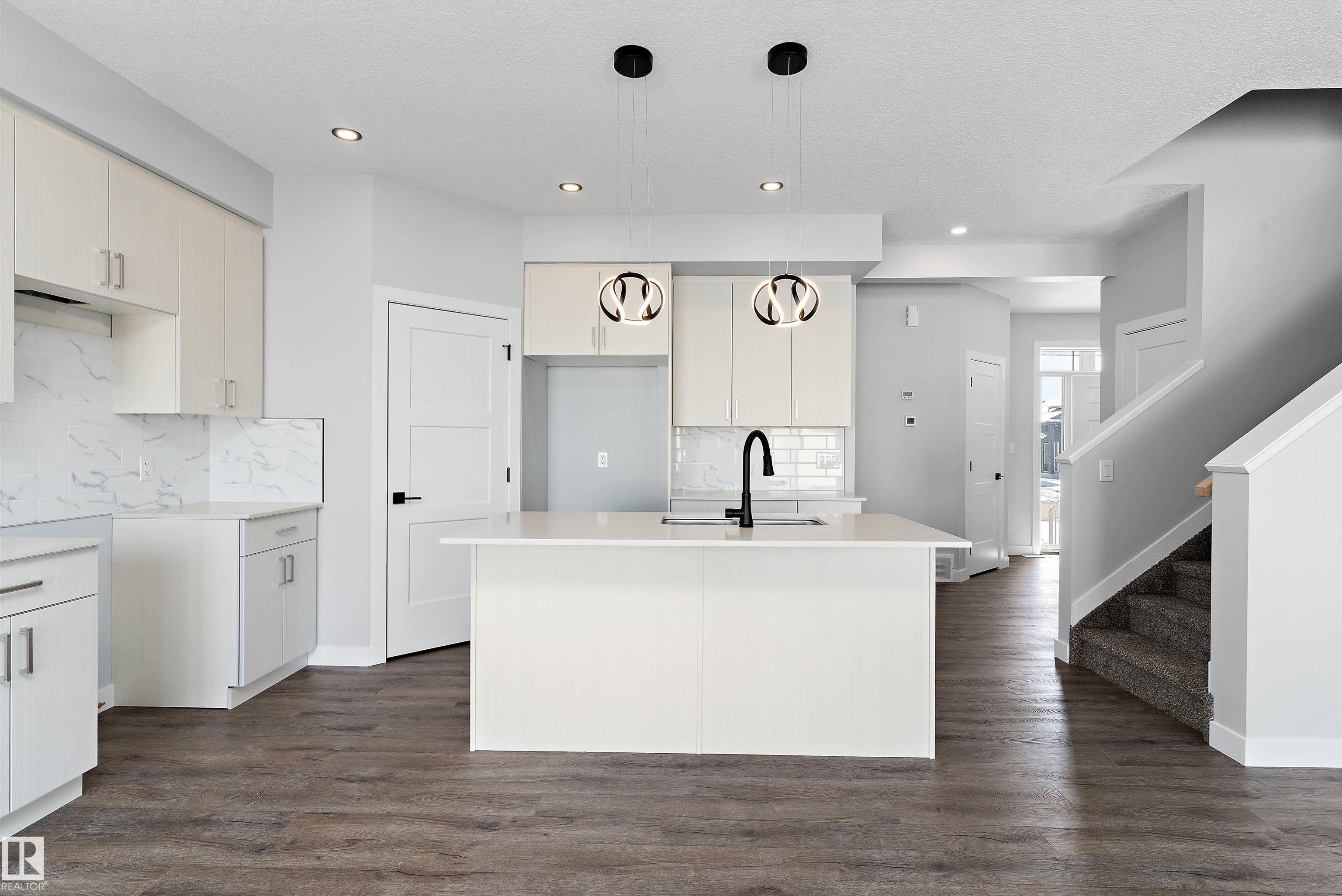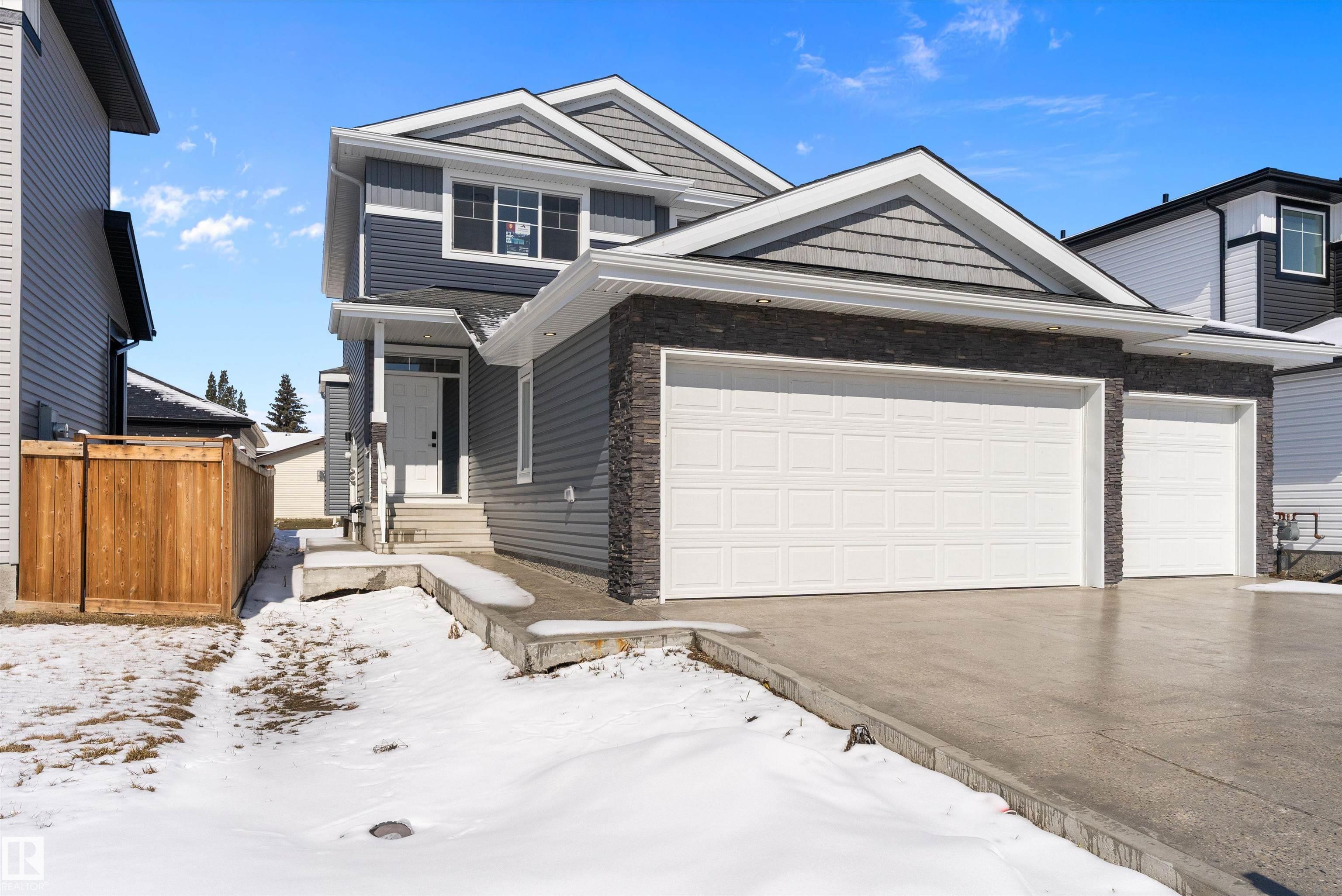 Step into a place that instantly feels like home--this beautifully designed 1,762 sq. ft. two-storey offers comfort, style, and a rare triple attached garage. A welcoming foyer greets you with a built-in bench and front closet, leading into a thoughtfully laid-out main floor featuring a convenient powder room, functional mudroom with custom cubbies, and a walk-through pantry to the heart of the home. The kitchen shines with ample counter space, granite-style subway backsplash, and a large island overlooking the open living room with a cozy gas fireplace and bright dining area. Upstairs, enjoy three spacious bedrooms, a full main bath, and a serene primary retreat with a 5-piece ensuite and walk-in closet, plus upper-floor laundry for added ease. Set on a large lot and close to schools, shopping, and everyday amenities--this move-in-ready home is ready to welcome you.