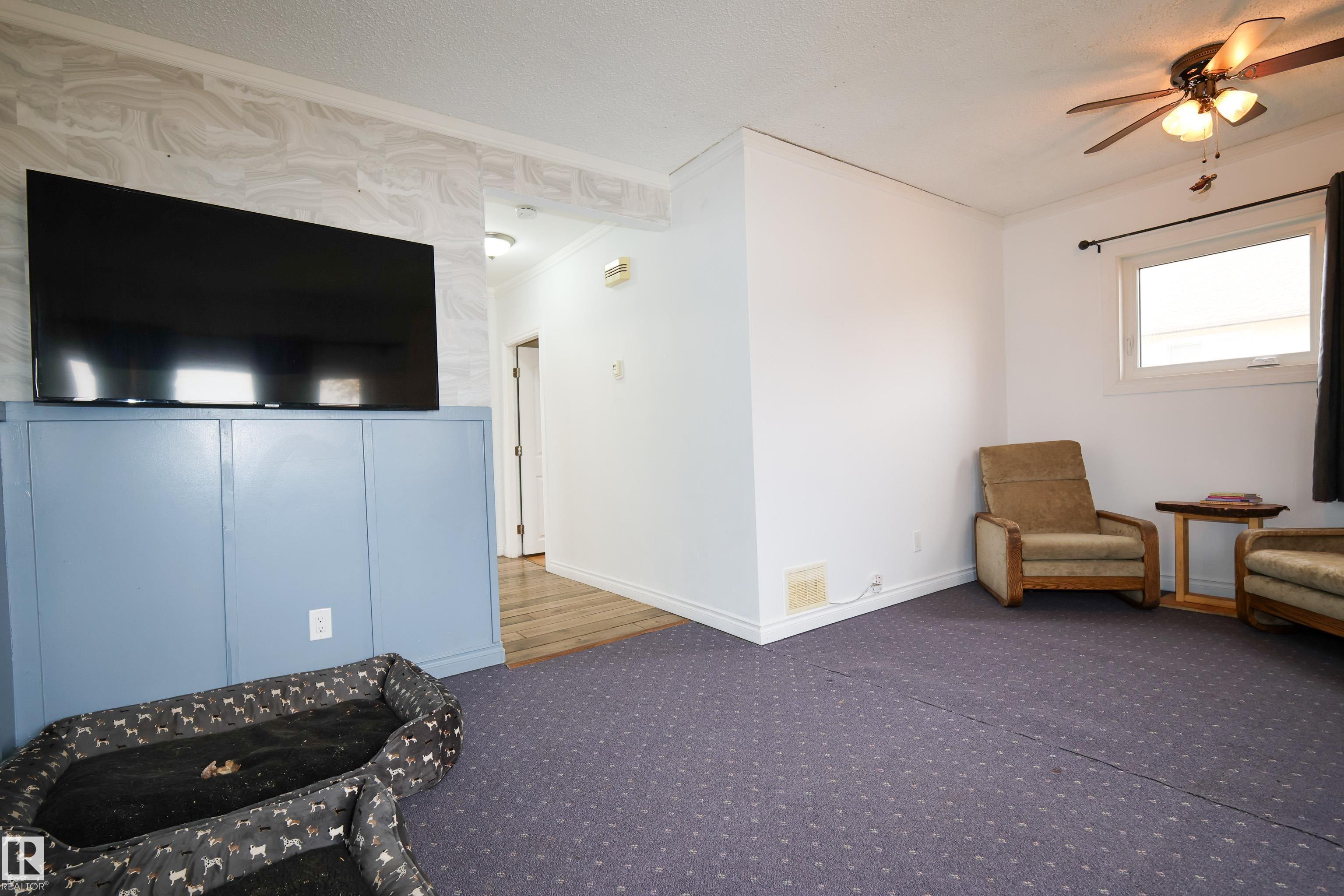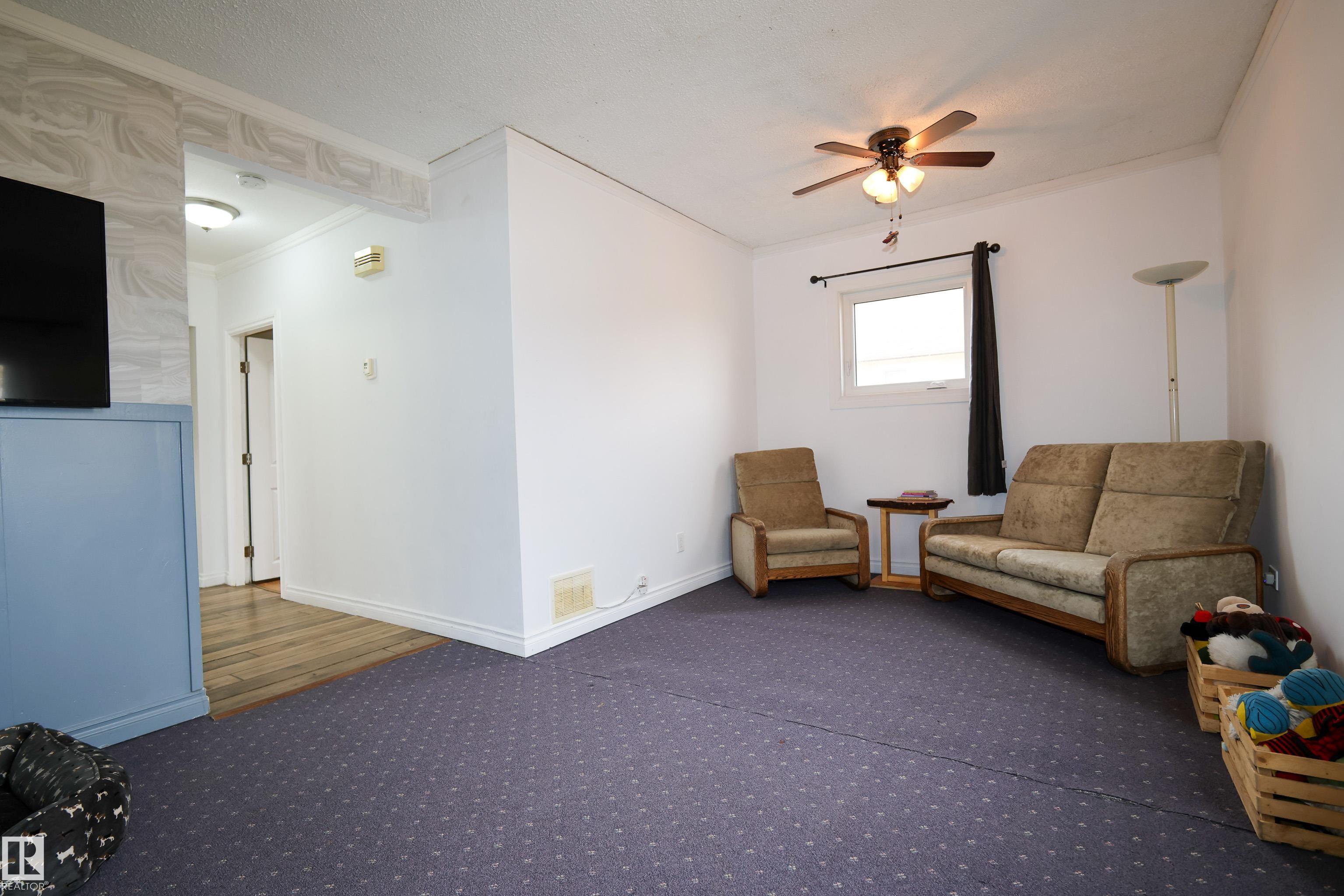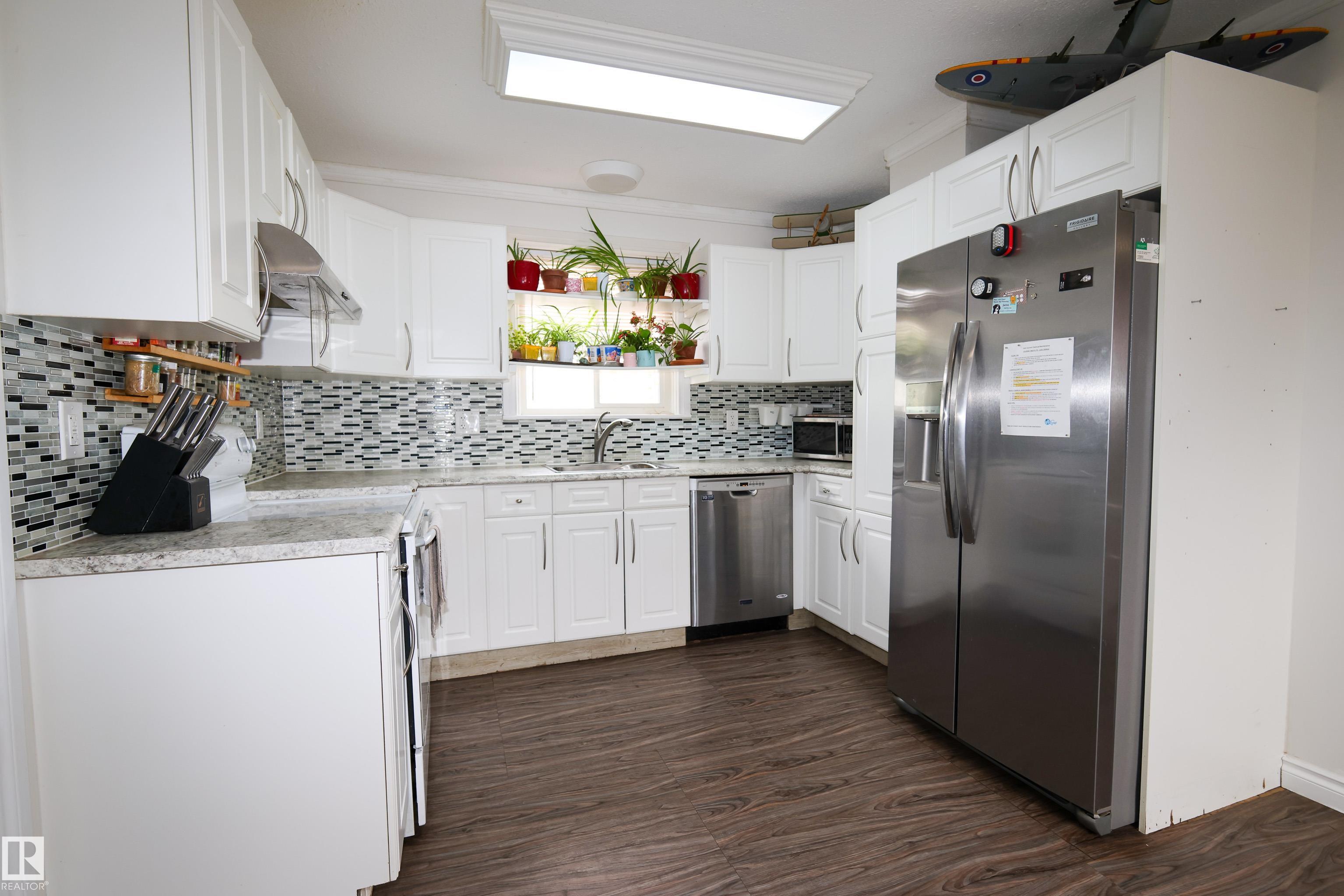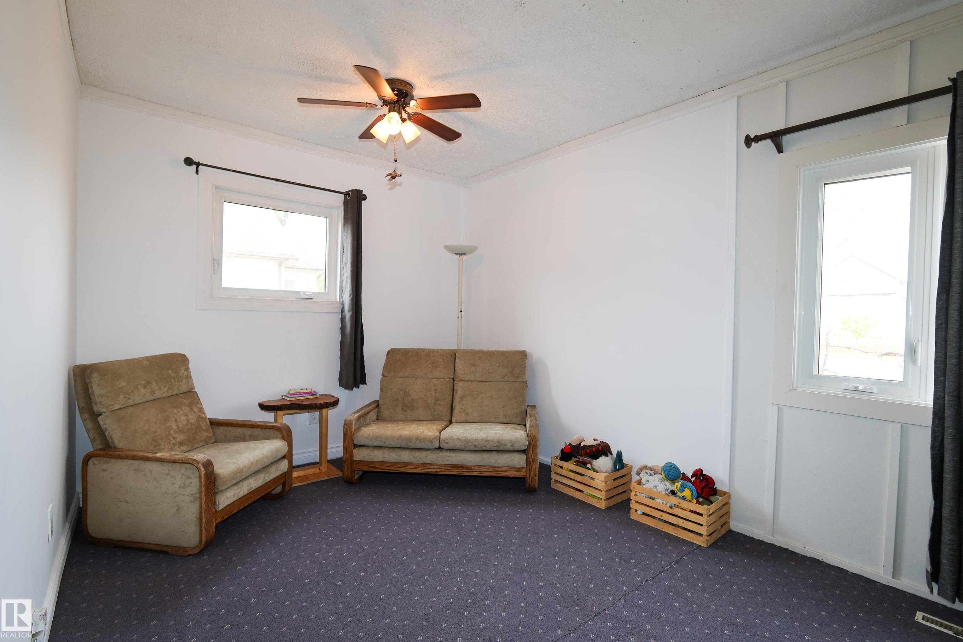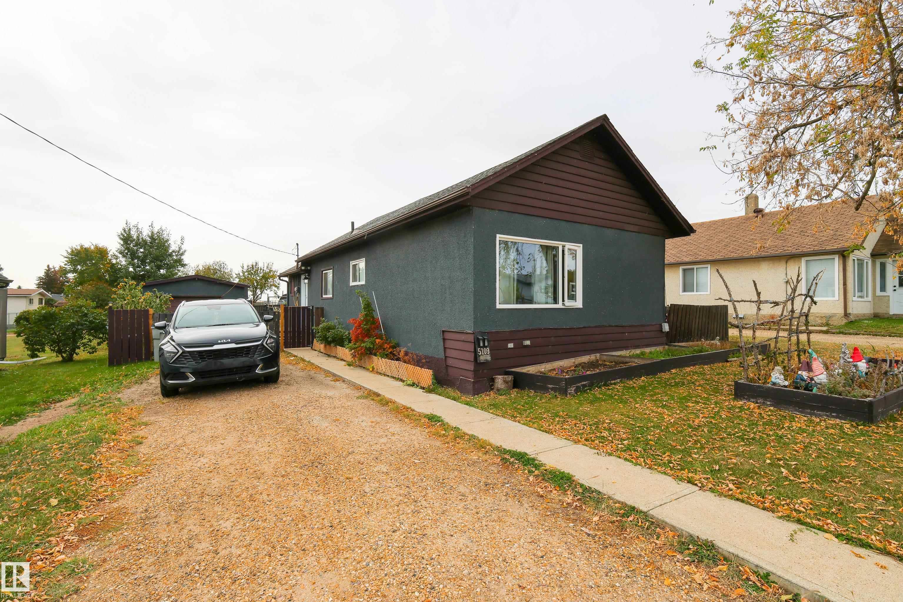 Welcome to this bright and cozy 2-bedroom home perfectly situated on the main street in the charming town of Legal! Offering 843 sq ft of beautifully updated living space, this home has undergone a complete interior transformation.Step inside to find newer plumbing and electrical, fresh flooring in the kitchen, porch, bathroom, and primary bedroom, plus a new kitchen featuring modern cupboards, countertops, and stylish finishes. The tall ceilings with crown molding, large white trim, and updated bathroom with a new vanity and tub surround give this home a warm, character-filled feel. New windows and front door round off the upgrades in this home. A small entry boot room provides space for shoes and coats--or could double as a cozy office nook. Downstairs, the compact basement offers laundry new furnace and extra storage space.Set on a large backyard lot, this home is the perfect mix of charm, comfort, and value--an ideal starter home or investment opportunity in a friendly small-town setting!