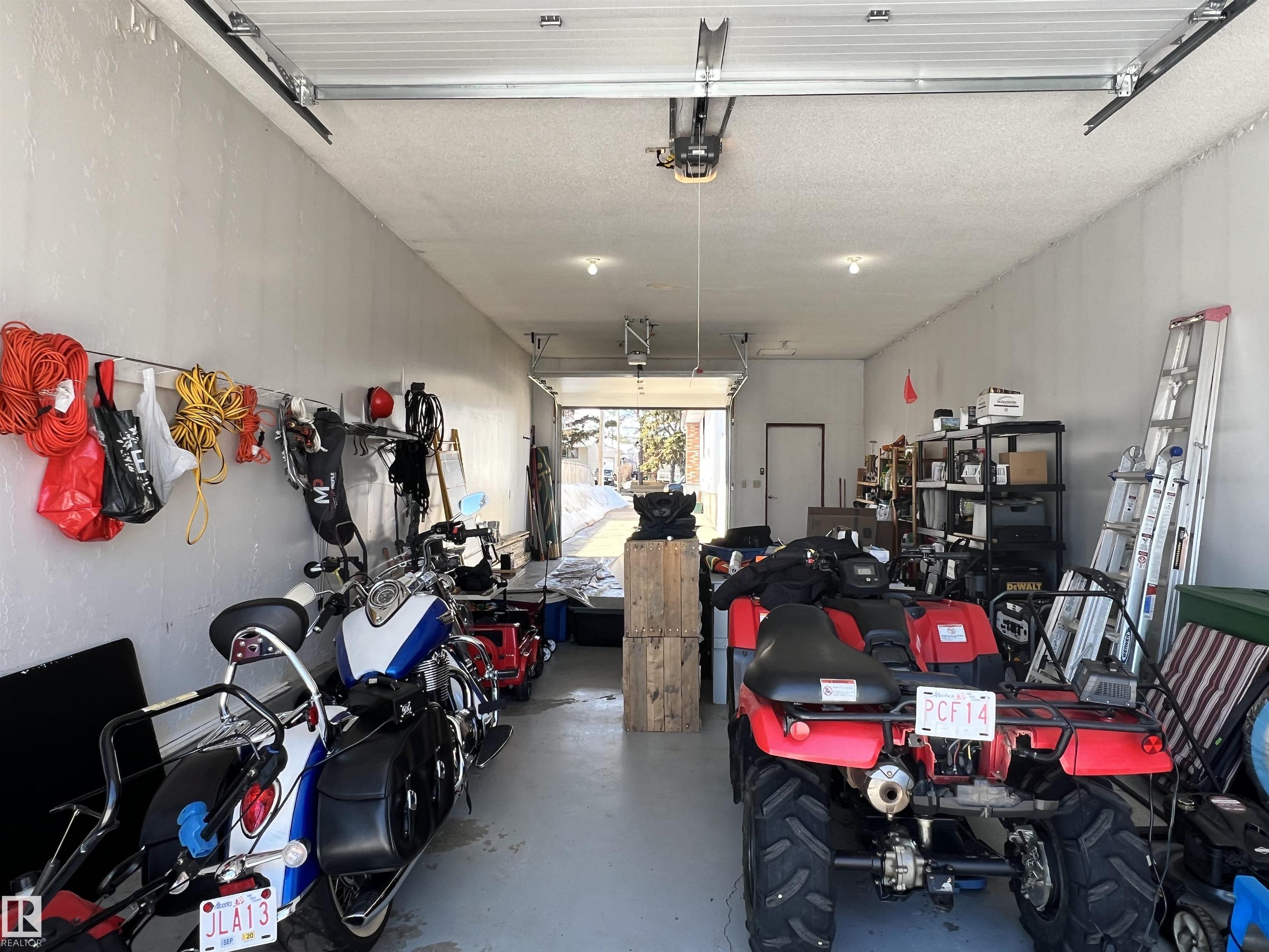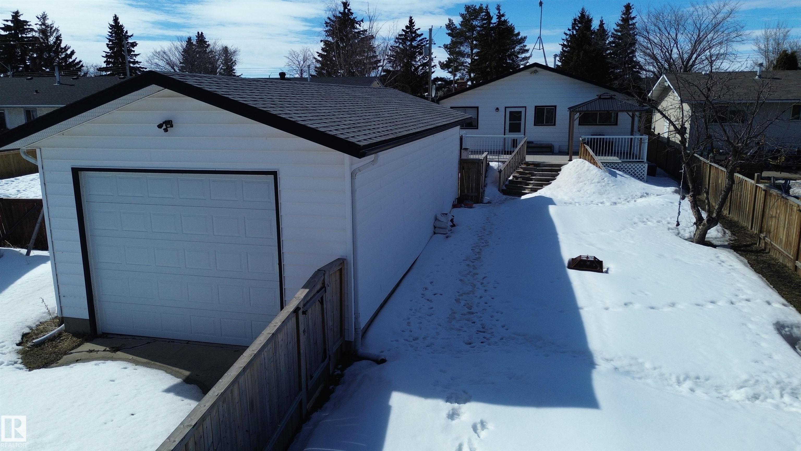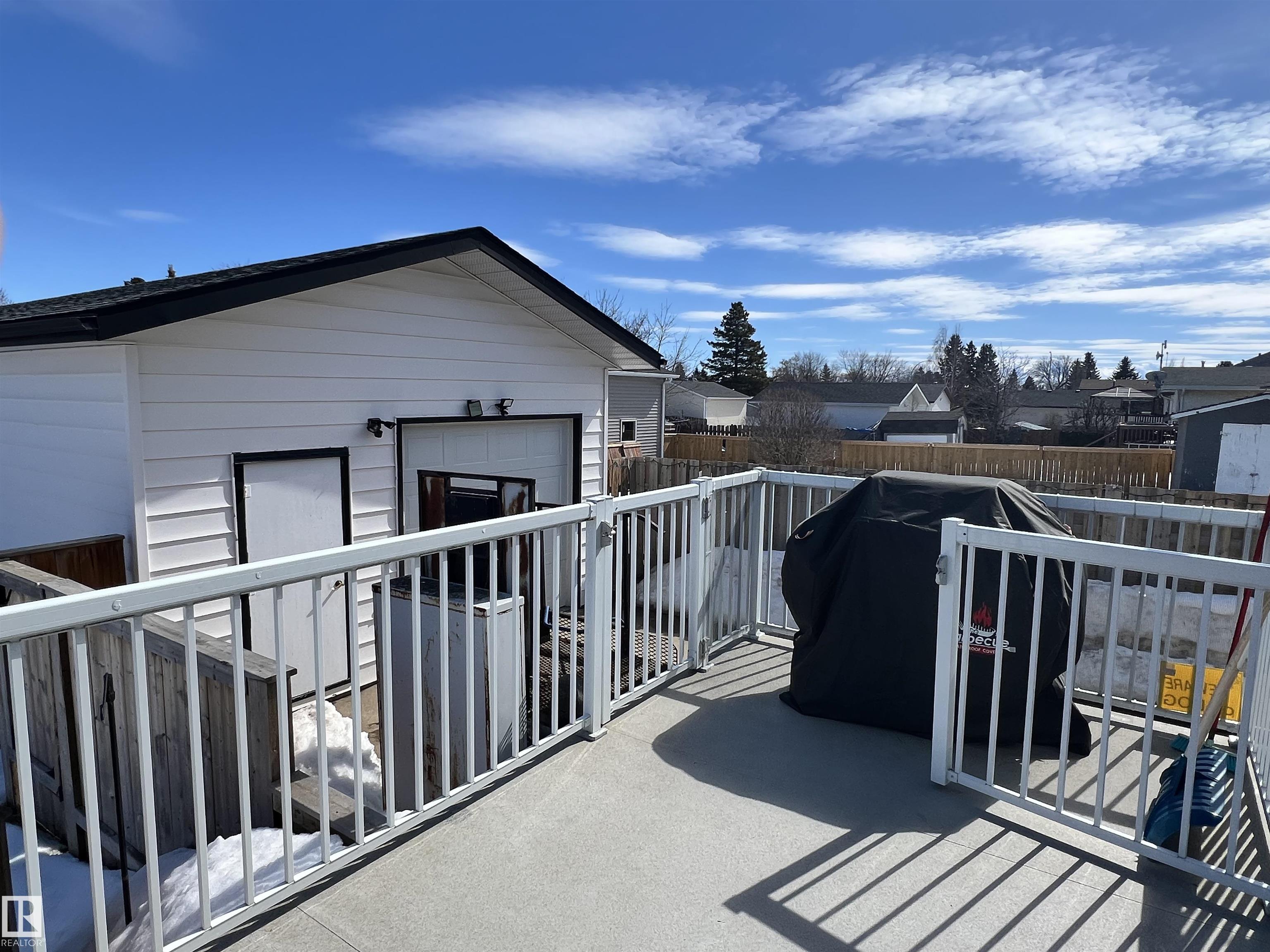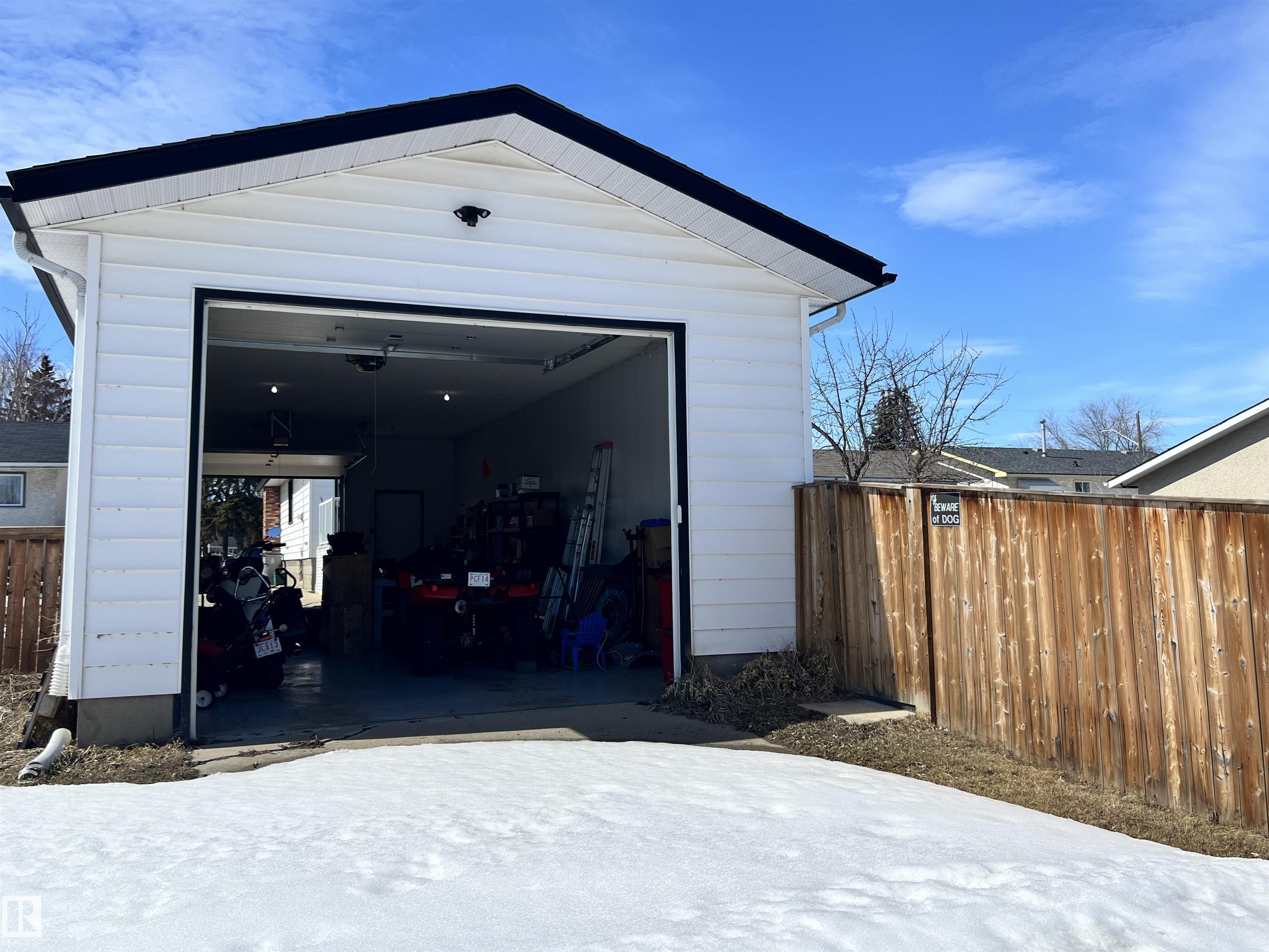 Running out of room? This is the place! This property packs a lot in over 1200 sq ft of main floor space - a large open concept kitchen, dining, and living room with HARDWOOD throughout, primary bedroom with a three piece ENSUITE, and two additional bedrooms with a four piece bathroom, with MAIN FLOOR LAUNDRY and tons of storage space. Downstairs are two additional bedrooms, a three piece bathroom, and a large family room and wet bar space with a beautiful large BRICK FIREPLACE - perfect for entertaining or cozy movie nights. Outside is a large backyard, nice long driveway and DRIVE THROUGH GARAGE deep enough to fit two vehicles inside with a TEN FOOT GARAGE DOOR at the back for larger vehicles or an RV - with both front and back lane access. Well-kept with newer deck, hot water tank, and shingles - and also including NEW AIR CONDITIONING. Easy commute to CFB Edmonton and St. Albert, come see what this property has to offer!