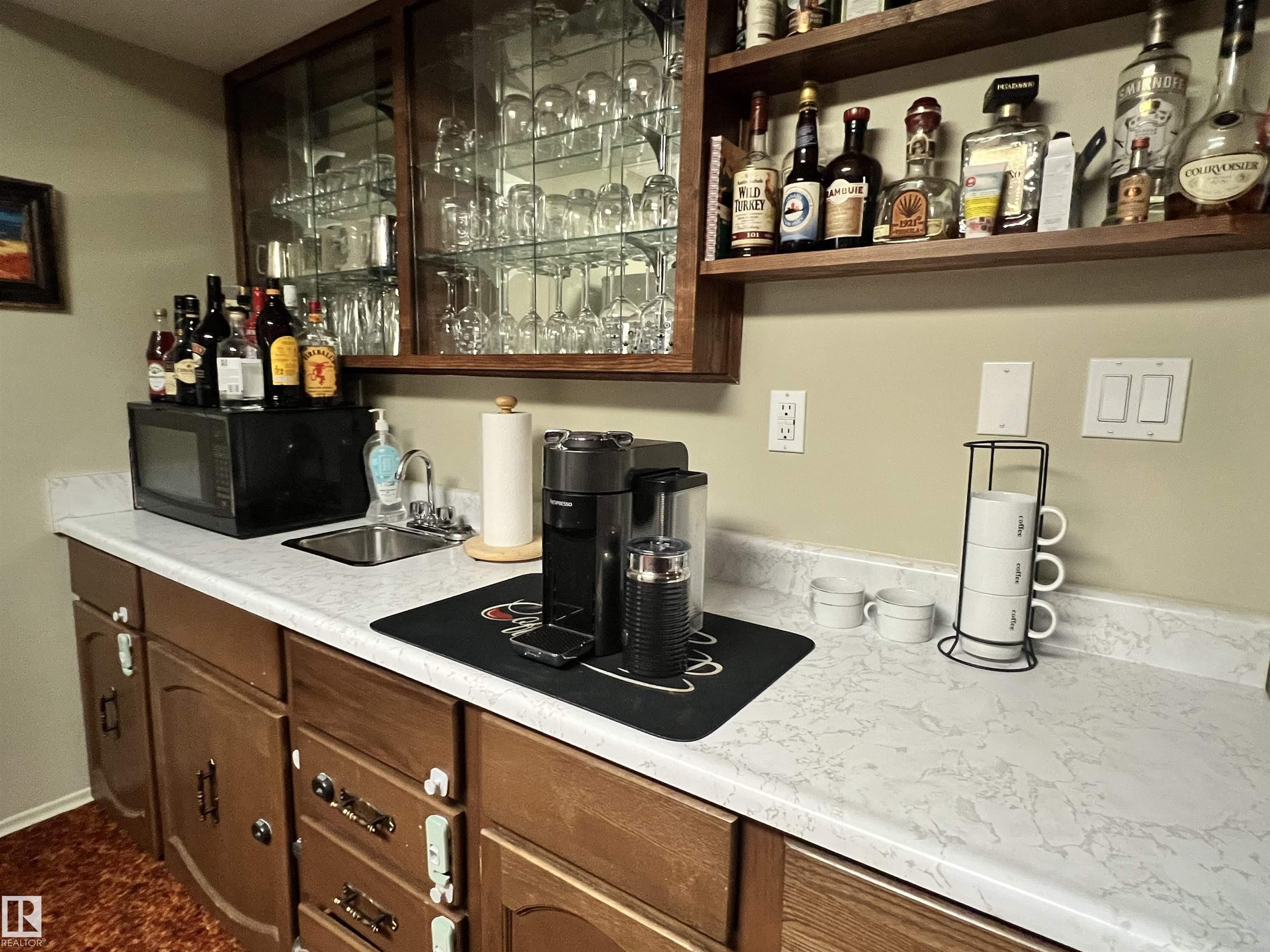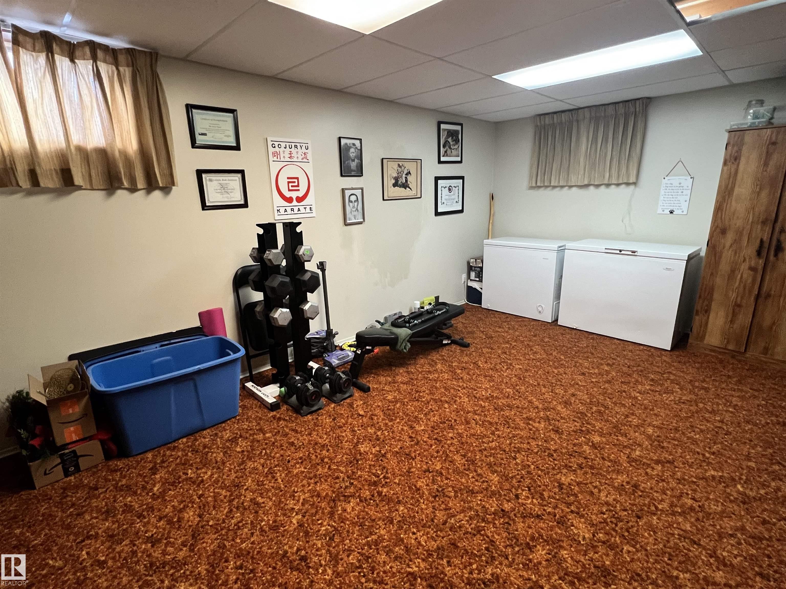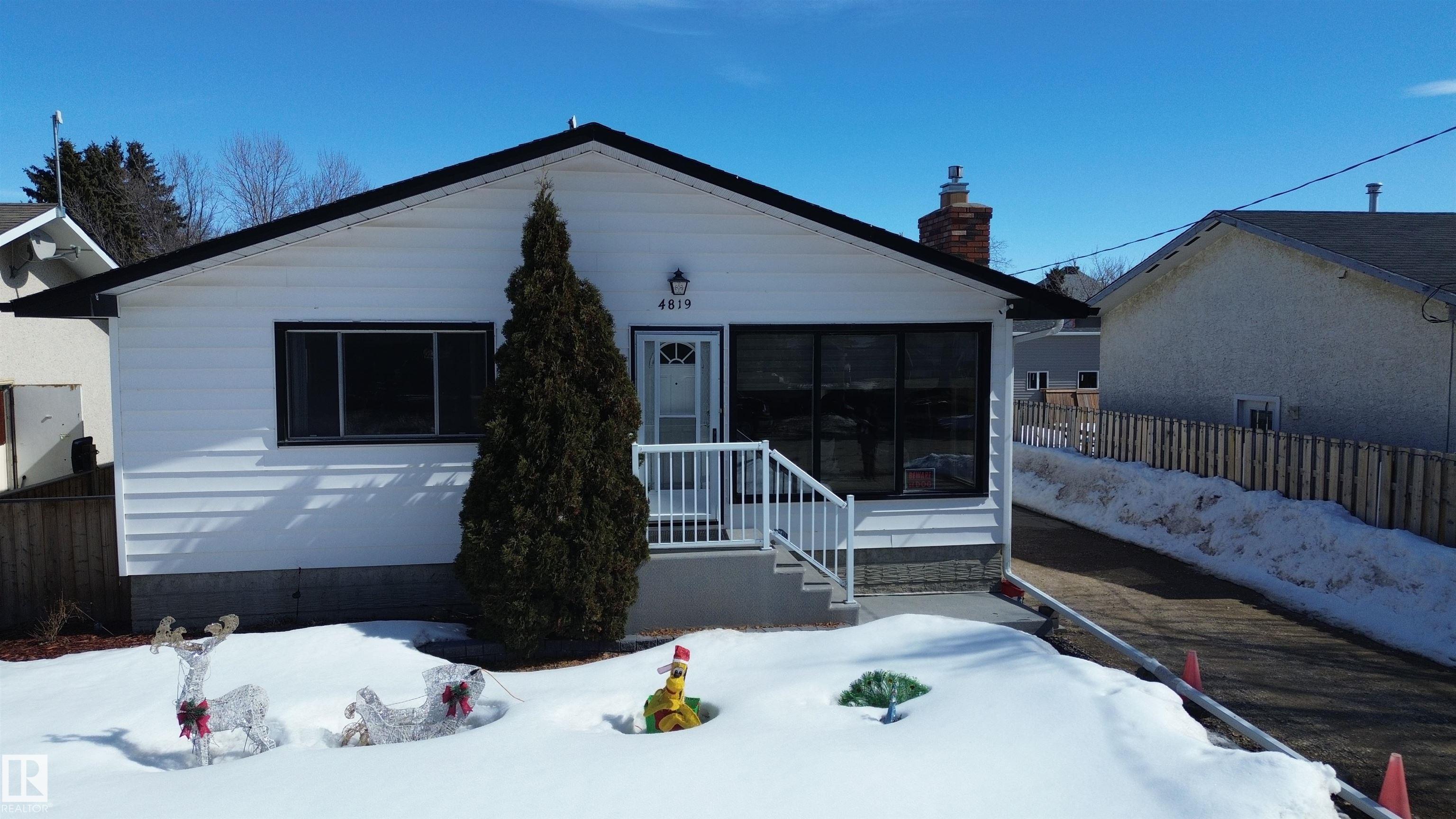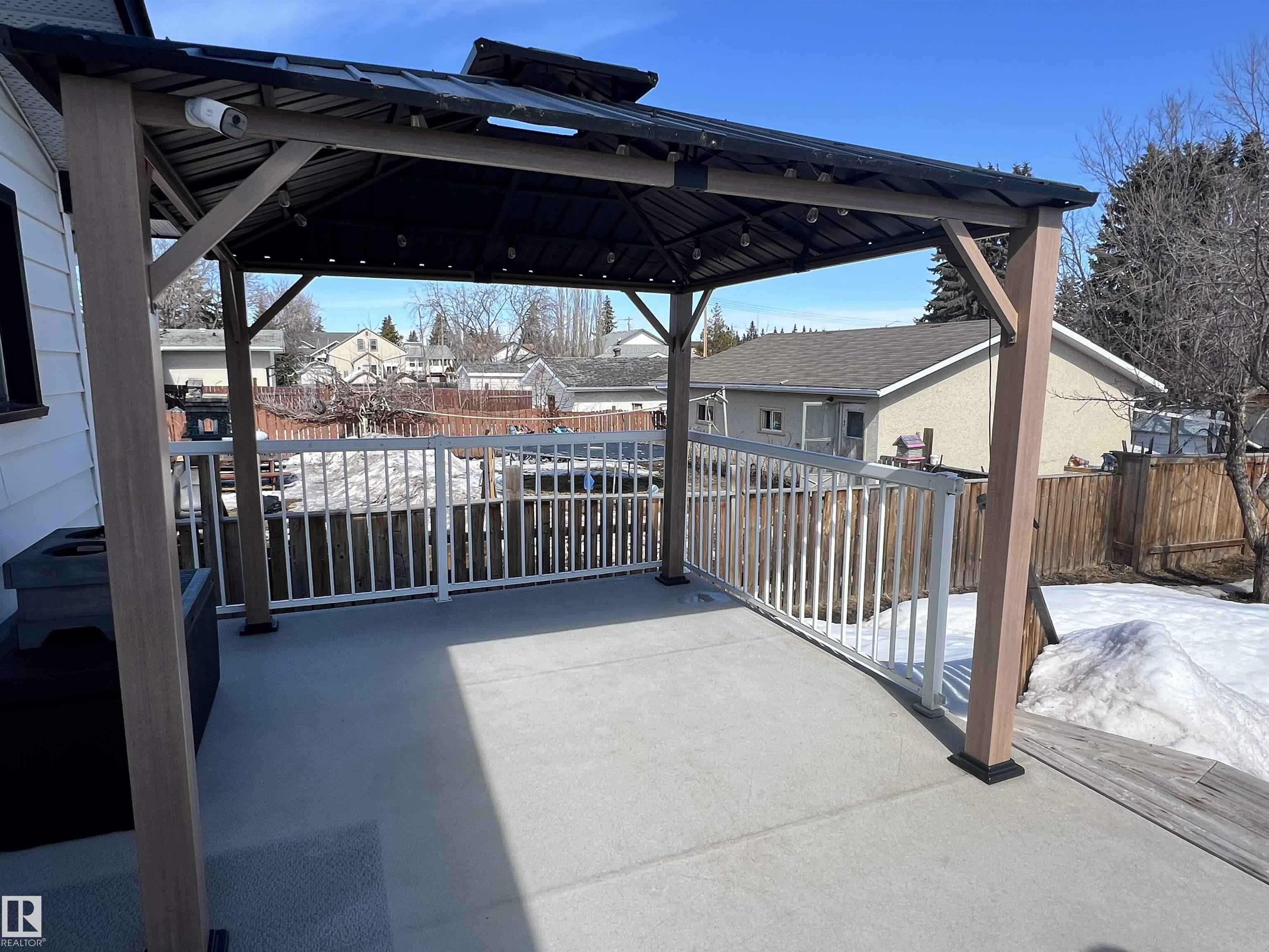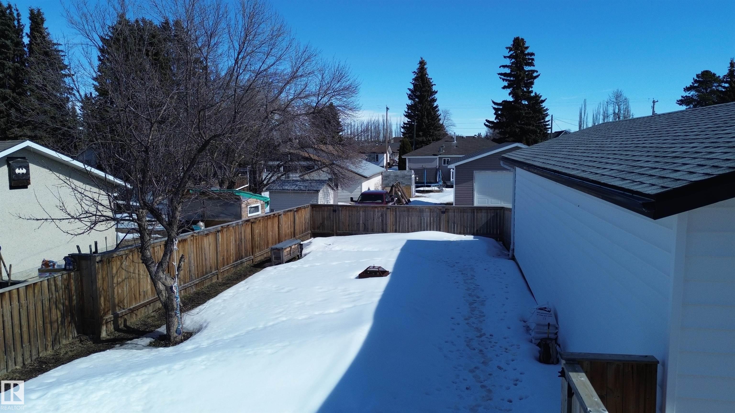 Running out of room? This is the place! This property packs a lot in over 1200 sq ft of main floor space - a large open concept kitchen, dining, and living room with HARDWOOD throughout, primary bedroom with a three piece ENSUITE, and two additional bedrooms with a four piece bathroom, with MAIN FLOOR LAUNDRY and tons of storage space. Downstairs are two additional bedrooms, a three piece bathroom, and a large family room and wet bar space with a beautiful large BRICK FIREPLACE - perfect for entertaining or cozy movie nights. Outside is a large backyard, nice long driveway and DRIVE THROUGH GARAGE deep enough to fit two vehicles inside with a TEN FOOT GARAGE DOOR at the back for larger vehicles or an RV - with both front and back lane access. Well-kept with newer deck, hot water tank, and shingles - and also including NEW AIR CONDITIONING. Easy commute to CFB Edmonton and St. Albert, come see what this property has to offer!