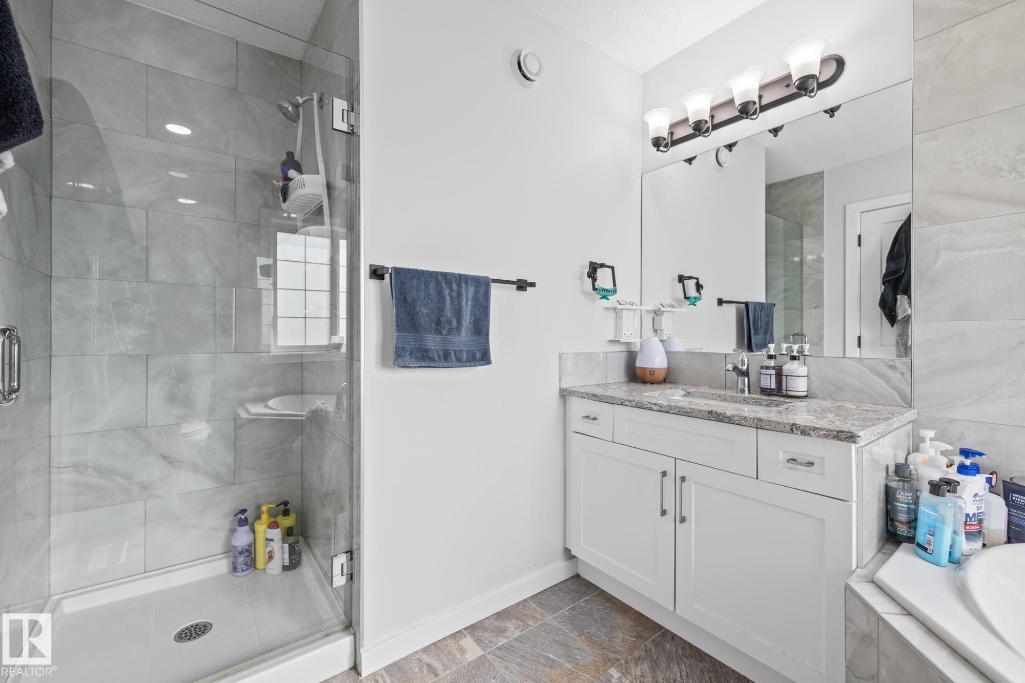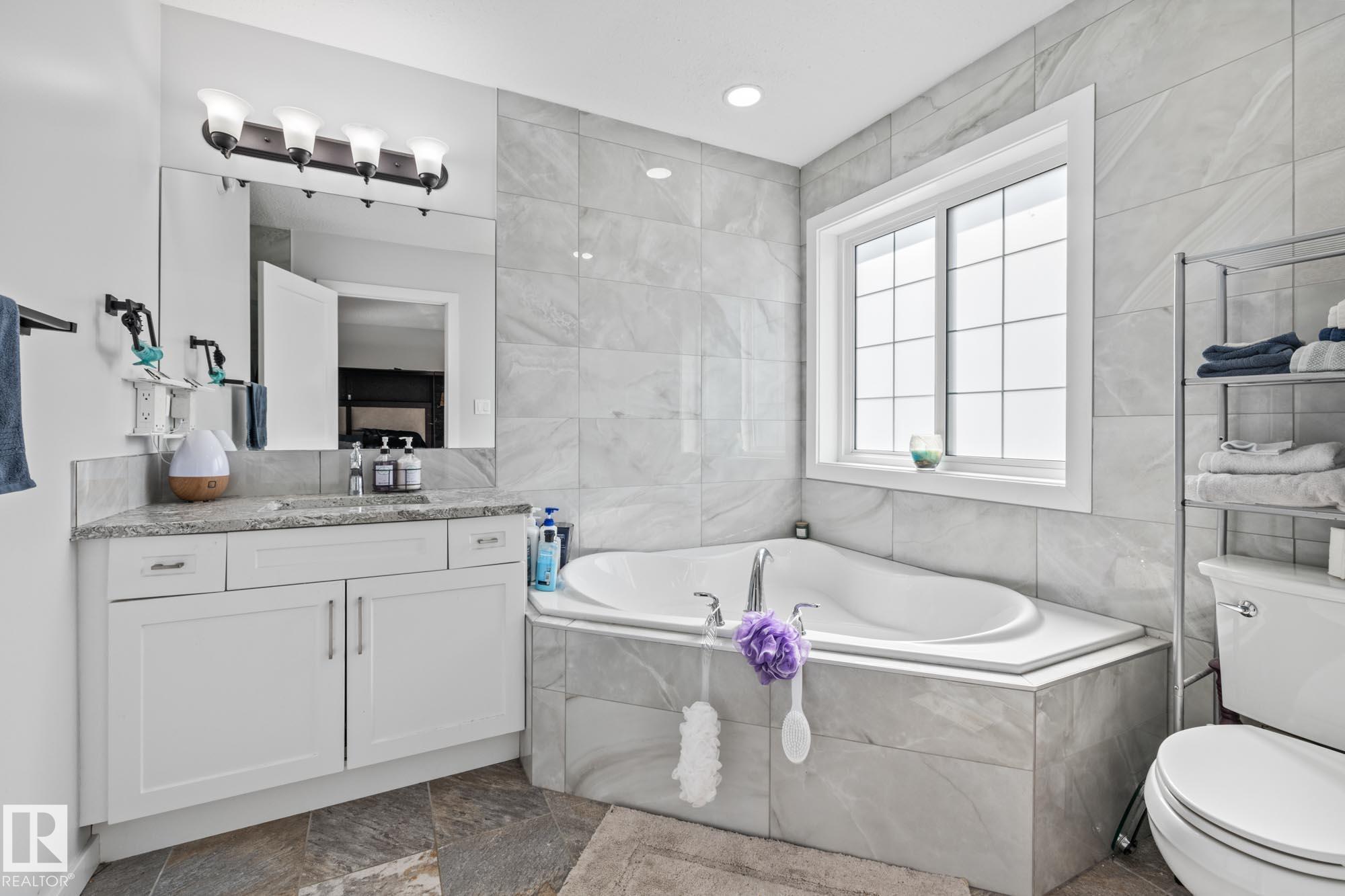 Welcome home to this 5 bedroom, 3 bathroom, Bi-Level located in the family-friendly community of South Glens in Morinville. This property features an attached double garage and a well-planned layout with space for everyone. The main floor greets you with vaulted ceilings and an open concept design, making the kitchen the heart of the home. The kitchen offers a corner pantry, center island with extra storage, stainless steel appliances, and a convenient eating bar, all open to the dining and living areas for easy family gatherings. Upstairs, the primary bedroom includes a walk-in closet and 4 piece ensuite. The fully finished basement adds two bedrooms, a large family room, and a third bathroom, providing even more living space. The backyard is private yet spacious, creating the perfect setting for family time.