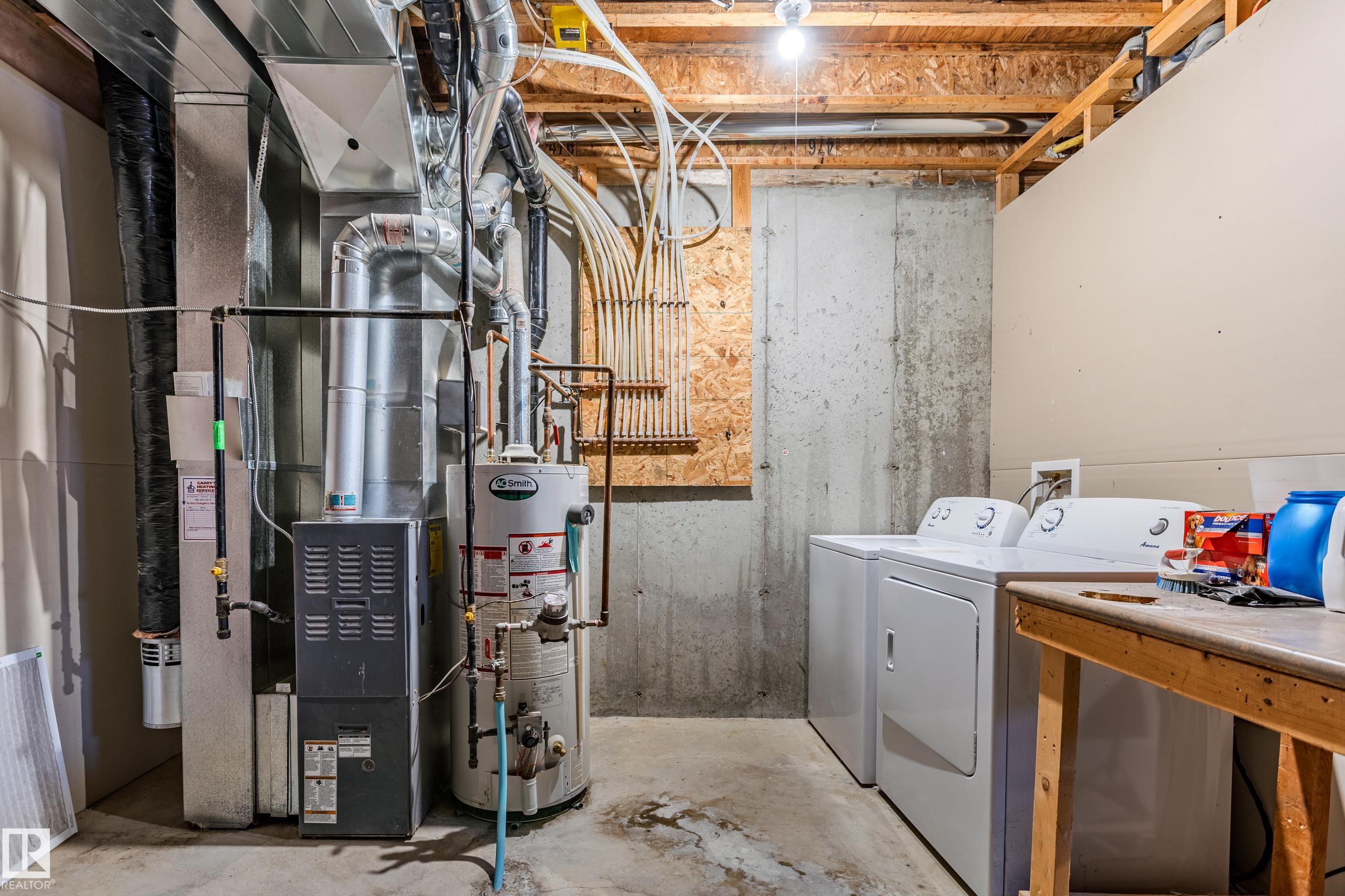 Great townhouse located Morinville, walking distance to downtown!! Nice sized entryway leading to the spacious kitchen with DARK MAPLE CABINETS, upgraded STAINLESS STEEL (fridge has ice/water) appliances and an eating bar. The kitchen overlooks the living room with gas fireplace and patio door to your private south facing deck backing green space. Head upstairs to your master suite with vaulted ceiling, extra large closet and 3pc en-suite!!! Add on 2 good sized junior bedrooms to complete the upper level. This well taken care of condo has tile floors and laminate on the main floor and carpet on the upper floor. Your basement is unspoiled and ready for your ideas!!!