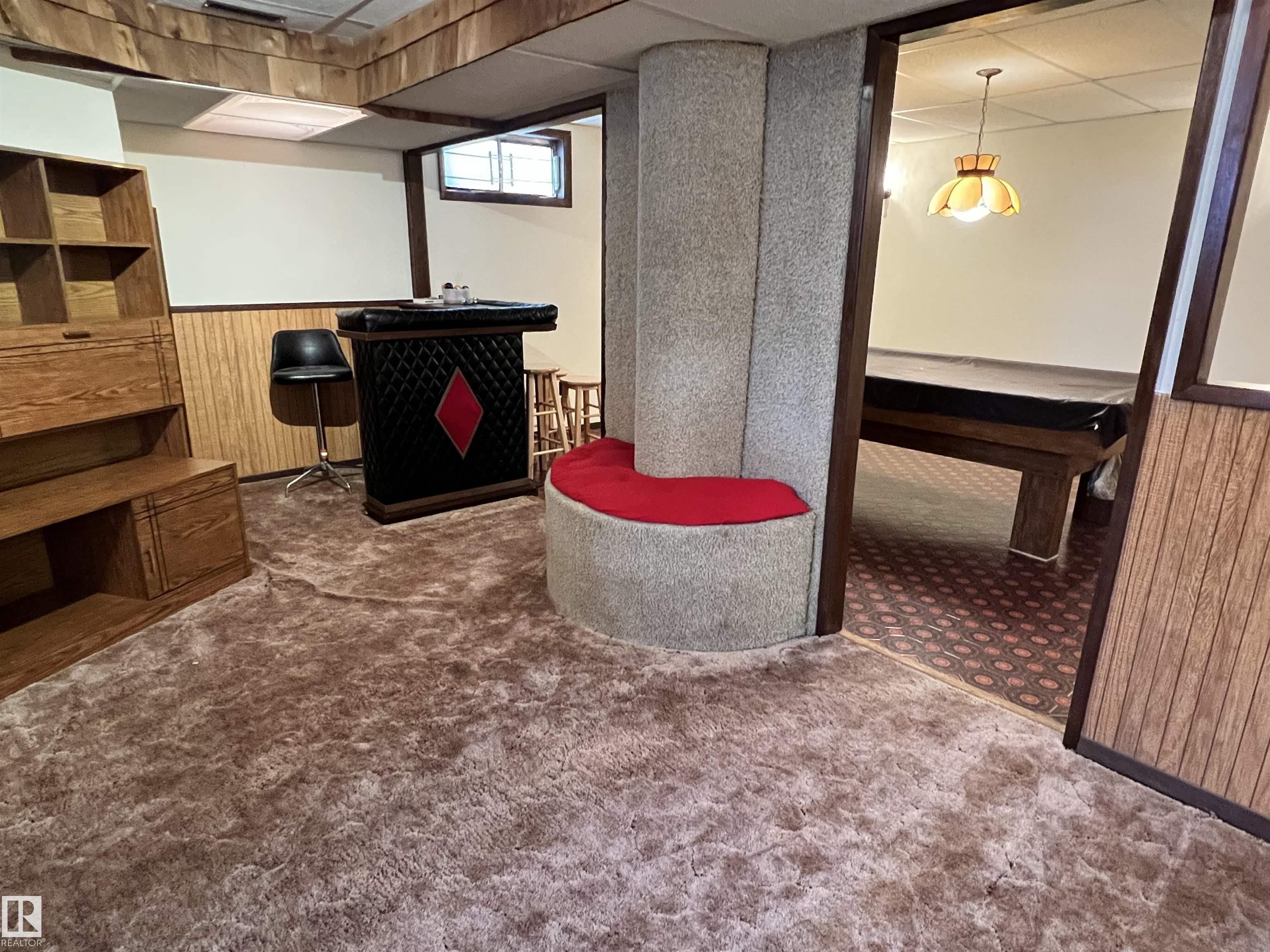 ORIGINAL OWNER three bedroom two bathroom BUNGALOW showing true pride of ownership! On the main floor is an open living and dining room adjoining a large kitchen with an additional breakfast nook space. The primary bedroom has a two piece ensuite as well as a WALK IN CLOSET. Completing the main floor is a four piece bathroom and two additional bedrooms. Downstairs you have a party area with a built in bar and a gaming room great for pool or an entertainment set up. A large workshop with adjoining storage room offers plenty of space to work on projects, with a small bedroom down the hall and a laundry room. Outside is an OVERSIZED DOUBLE DETACHED GARAGE, large yard, and an additional parking pad on the east side of the house. Numerous updates throughout the years include flooring throughout the main floor, furnace, hot water tank and garage opener. You don't see one like this every day - move in ready and full of charm!