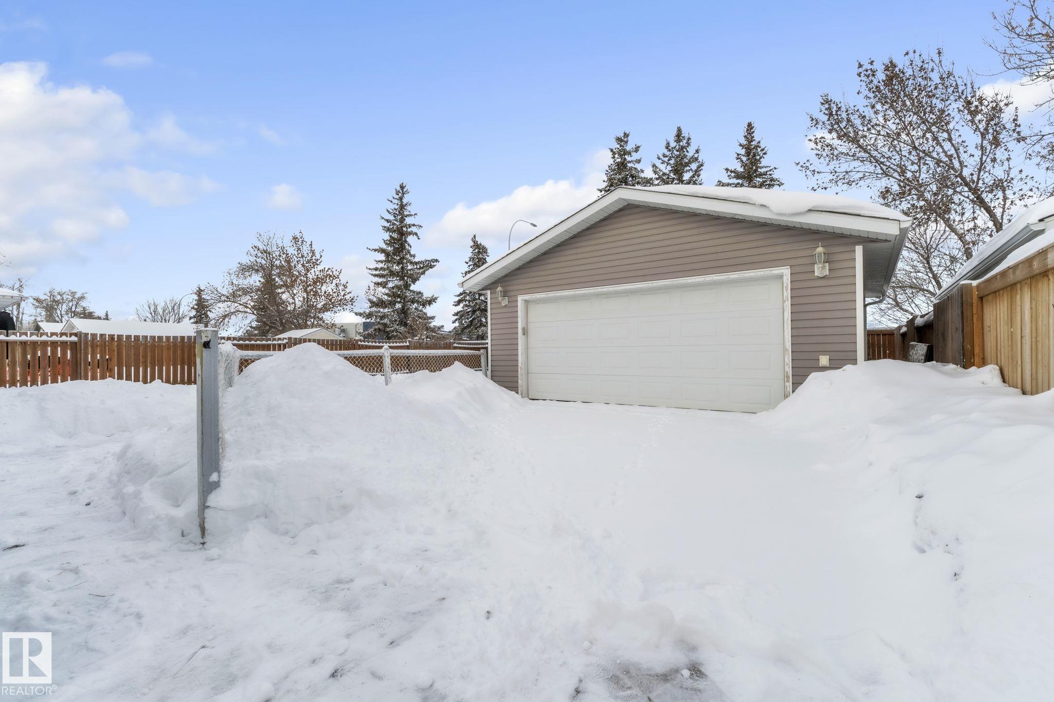 Nice bungalow, nearly 1200 sq/ft! GREAT curb appeal w/ a recent grey painted STUCCO exterior, 3 year old shingles & NEWER vinyl windows done 2 yrs ago. Park in the NEWER, DOUBLE, INSULATED, drywalled, detached garage; it has a sizeable STORAGE SHED attached to it & is accessed from the garage. FAMILY FRIENDLY w/ 3 ample bedrooms on the main floor w/ an UPDATED 4 piece bath & a MODERN 2 piece ENSUITE. Cook in the U-SHAPED kitchen, over looking the rear yard, w/ WHITE appliances opening onto the big, BRIGHT, dining & living rooms, perfect for entertaining guests! In the basement you will find a large FAMILY ROOM w/ a BRICK fireplace & 2 Piece Bath. Enjoy your GENEROUS laundry room/mechanical room, H2O tank is 3 yrs old. 2 MORE BEDROOMS are great for extra family. The yard is FULLY FENCED & features a long driveway for EXTRA PARKING. Close to all amenities including schools & shopping, see it you'll LOVE this place!