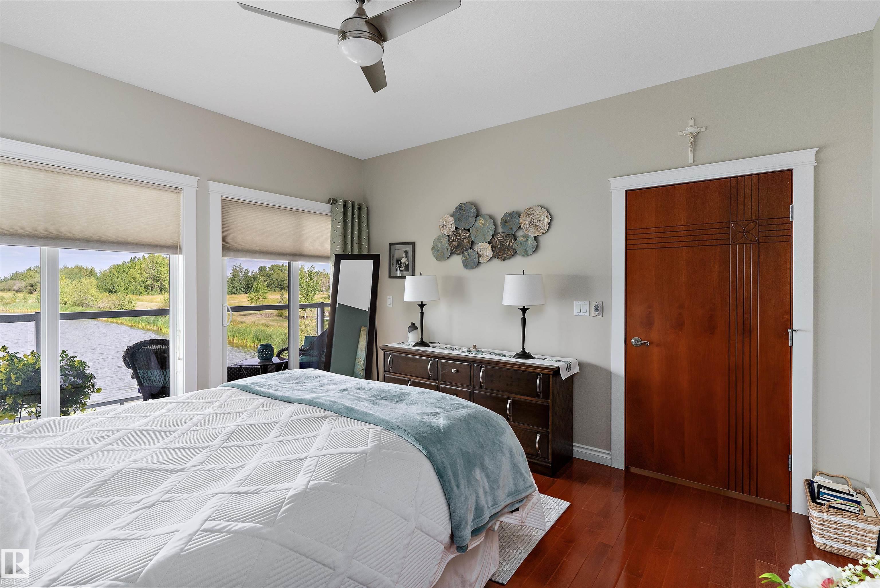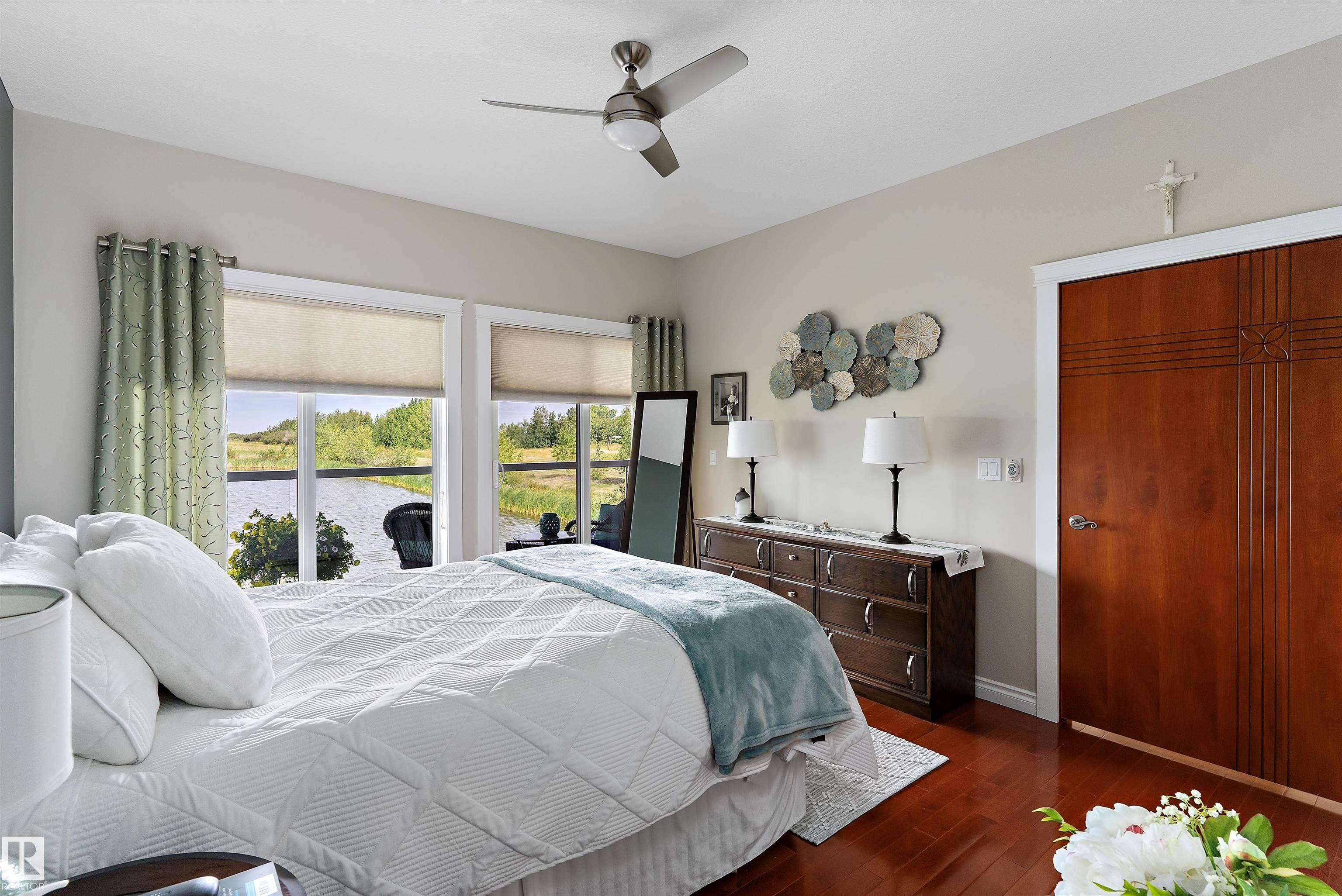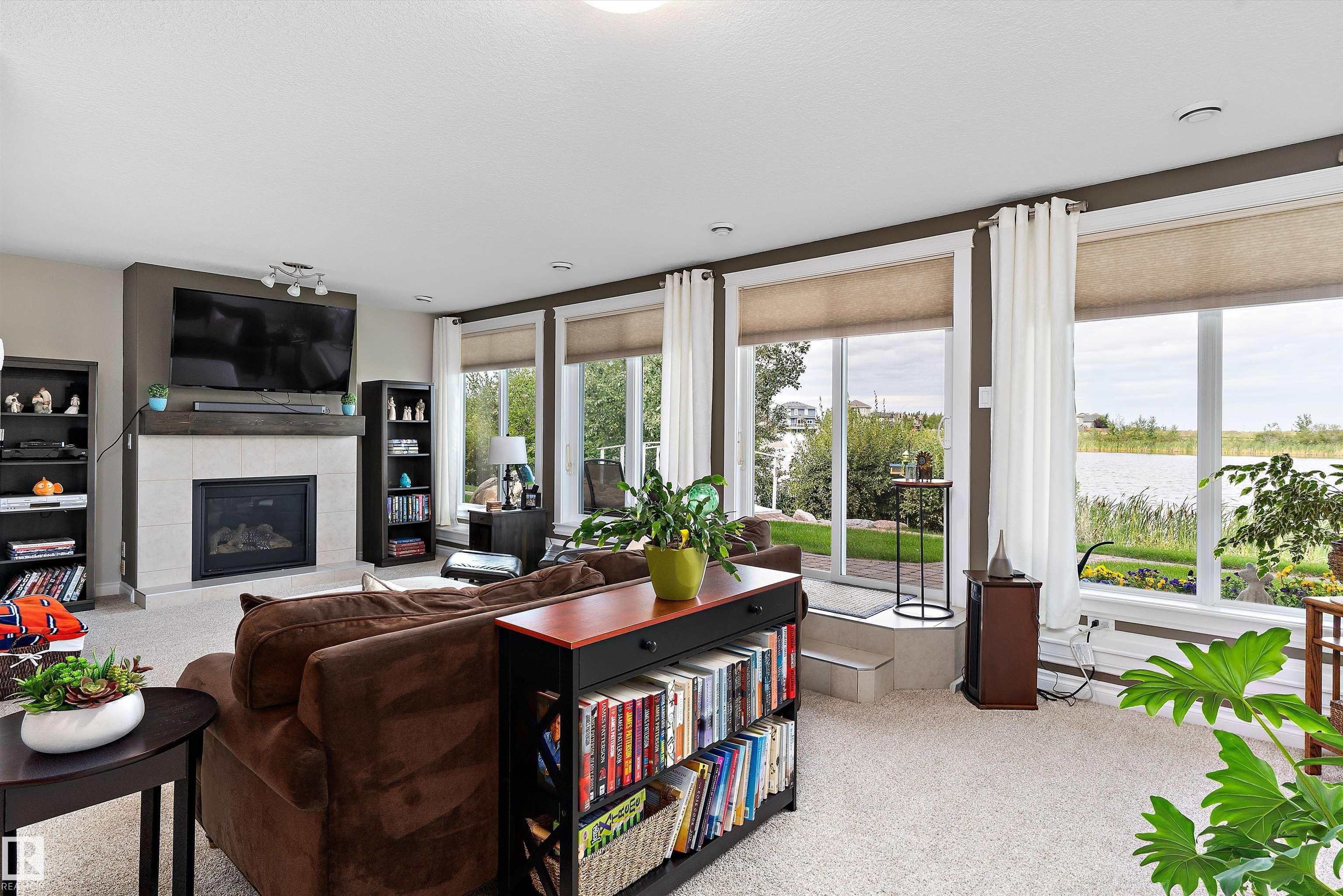 45+ ADULT CONDO BACKING ONTO LAKE! This Walk-Out Bungalow has been meticulously cared for & pride of ownership is evident. Features include an open concept design boasting a dream kitchen with gorgeous granite countertops, top of the line cabinets, living room/dining room with Large windows offering a lovely view of the lake. 2 bedrooms on main floor with walk-in closet, 3pc ensuite & patio doors leading to the back deck in the master bedroom. Main floor has new vinyl plank flooring done in 2025 plus freshly painted as well. The walk-out basement hosts an inviting family room with gas fire place & sliding doors out to the covered patio where you can enjoy your peaceful evenings plus a large 3rd bedroom & 4pc bath. Additional features include; skylight, custom wood doors, Beautiful Closet organizers in all closets and heated ceramic tile flooring in the bathrooms . All of this plus a Heated Double Attached Garage.