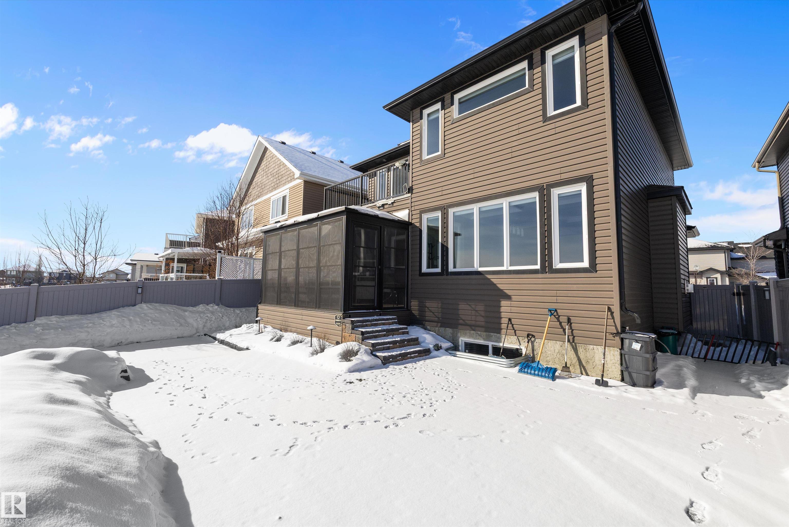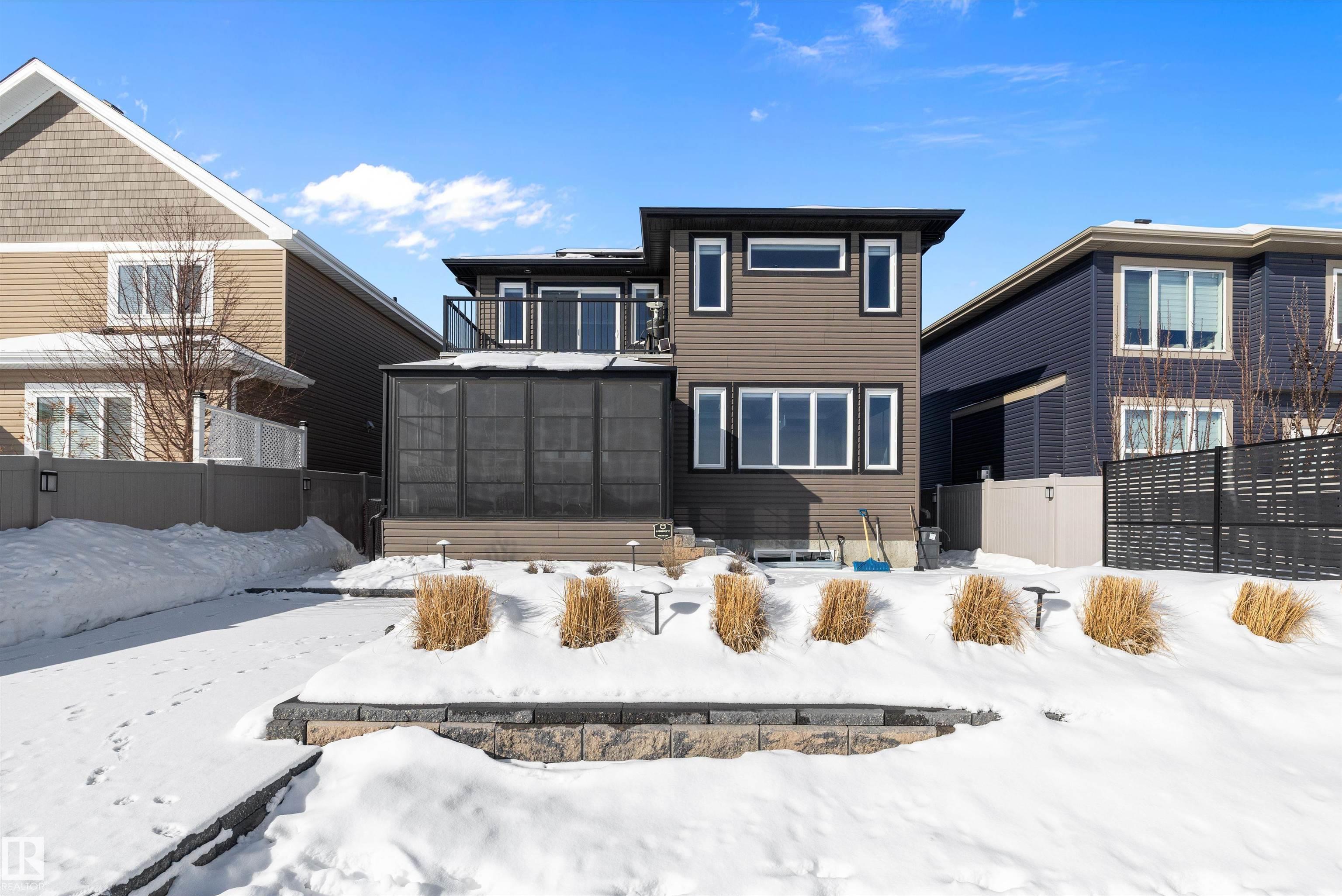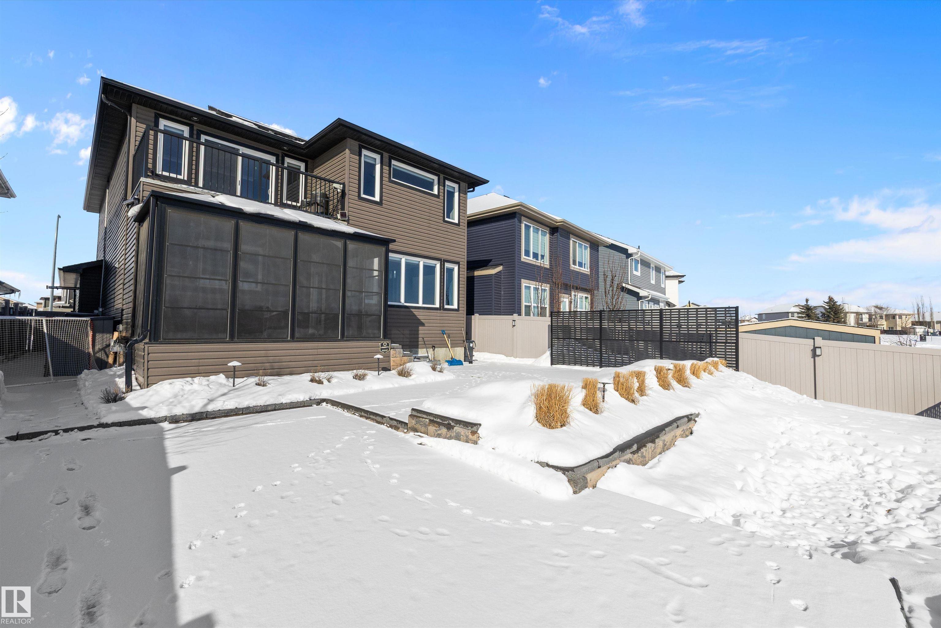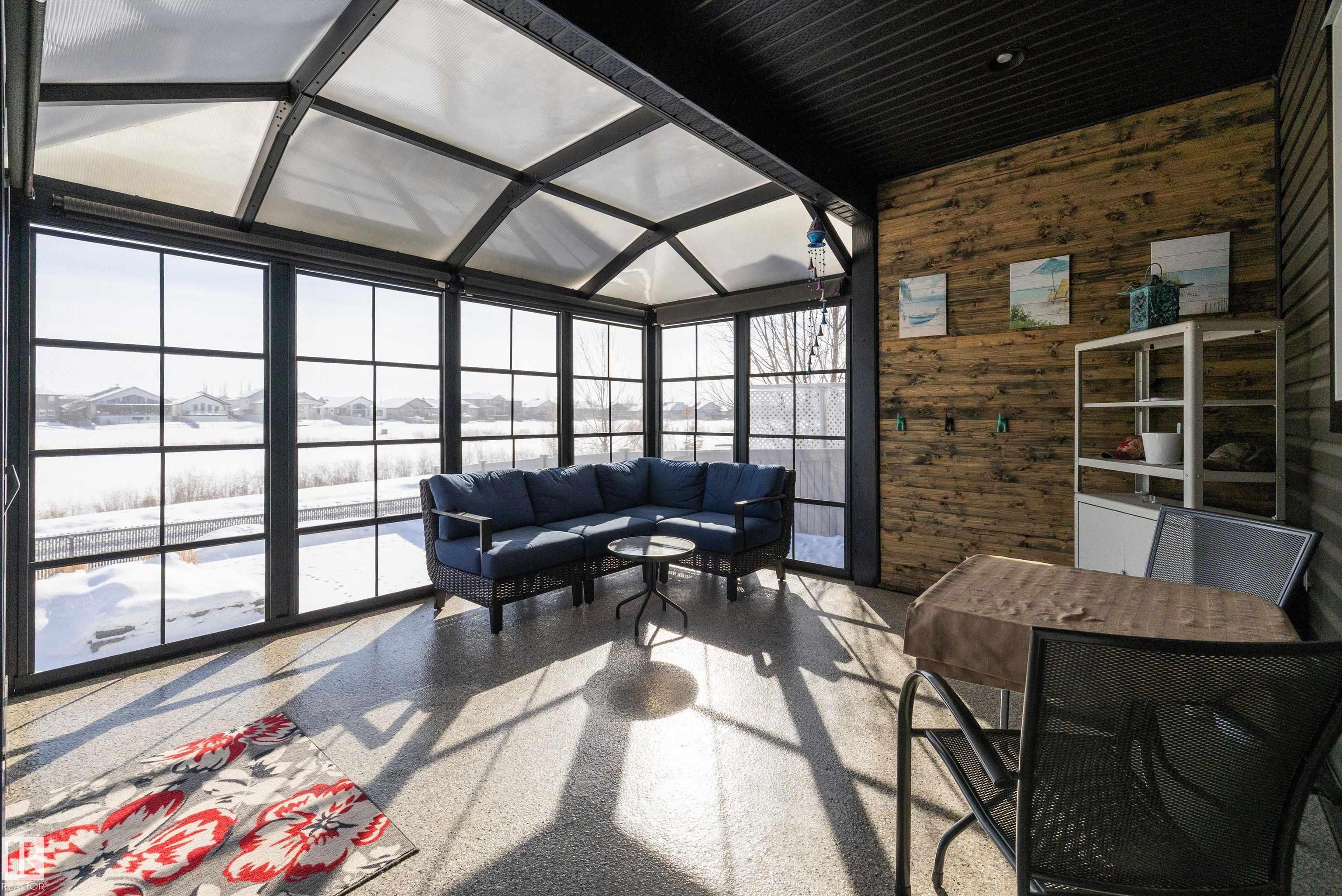 LAKEFRONT LUXURY | FULLY FINISHED | 4 BEDROOMS UP!!! Stunning lake-backing home by Atlas Premium Homes, known for exceptional quality and craftsmanship. Featuring 9' ceilings and a bright open-concept main floor with coffered ceilings, custom gas fireplace, luxury granite, and a massive walkthrough butlers pantry--all w/breathtaking lake views. Upstairs offers a spacious bonus room w/balcony overlooking the lake, a beautiful primary suite, 3 additional bedrooms, dual-sink main bath, and a large laundry room. The fully finished 9' basement adds extra living space. Upgrades include A/C, 20 solar panels(transferrable warranty), Enclosed 3-Season Sunroom overlooking lake w/epoxy floor, engineered hardwood upstairs(2022), fresh paint (2023), newer appliances, irrigation system, vinyl fencing, and professional stone landscaping w/turf so no mowing grass. Heated, finished garage with epoxy floors, TV setup, and 220V power. Quiet location steps to parks and trails--this meticulously maintained home shows 10/10.