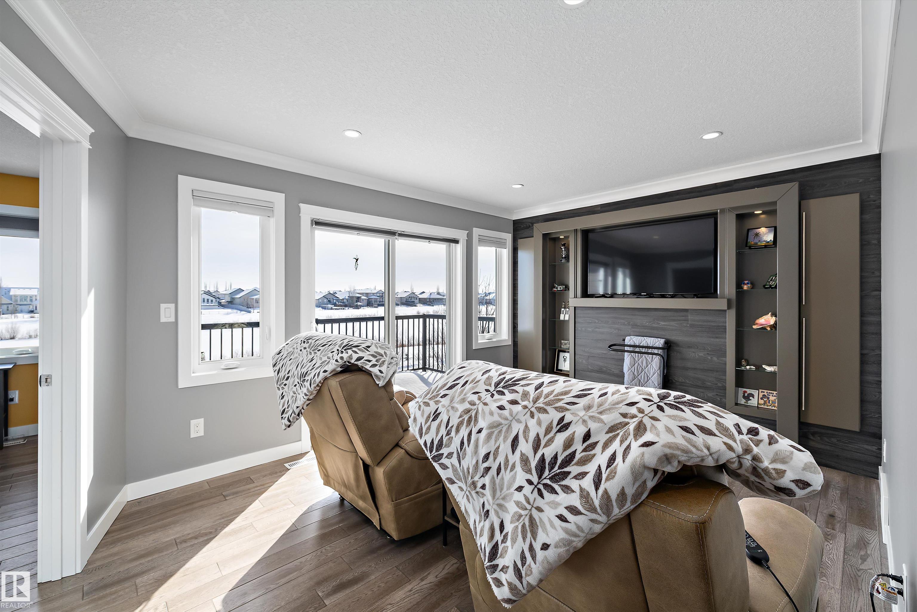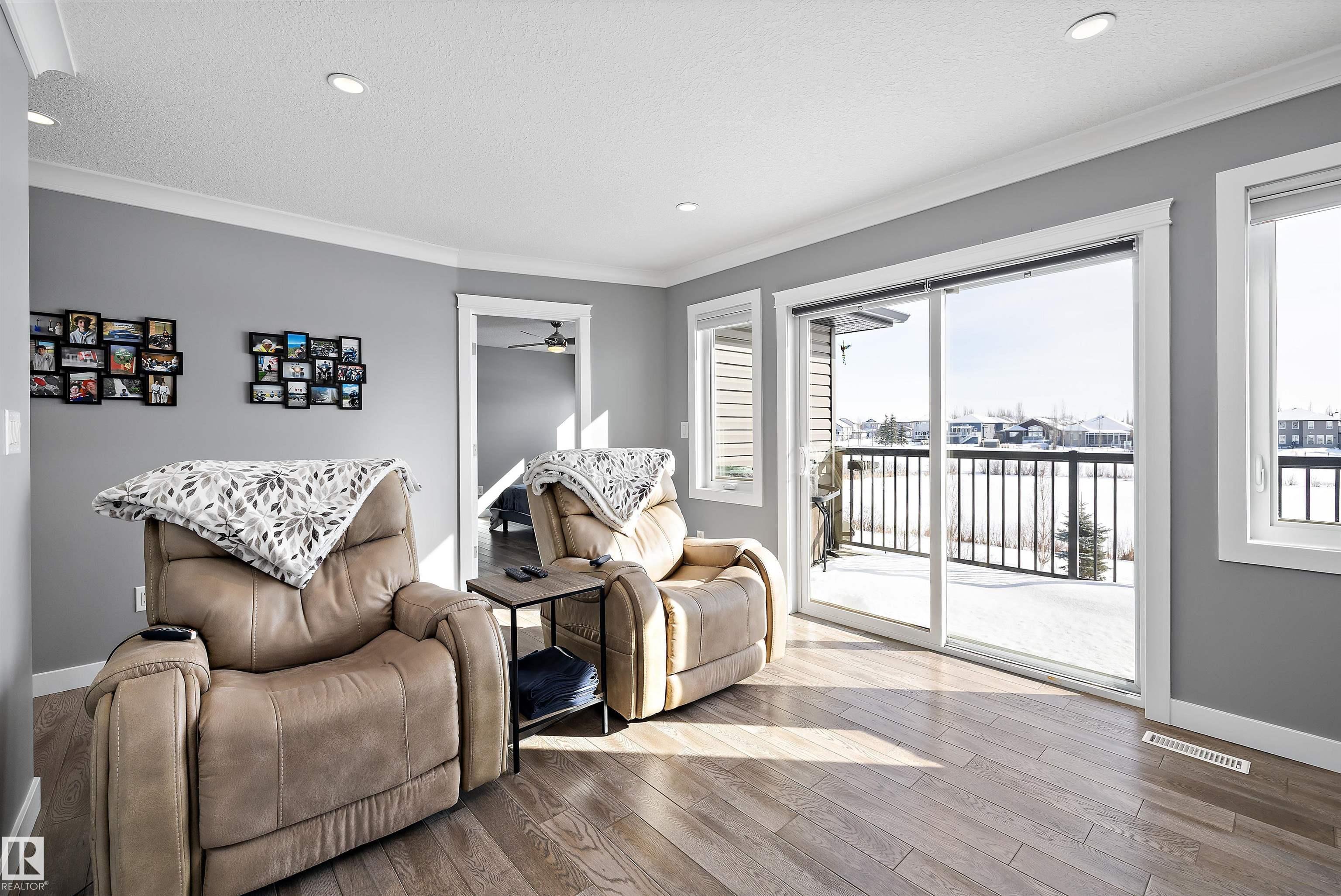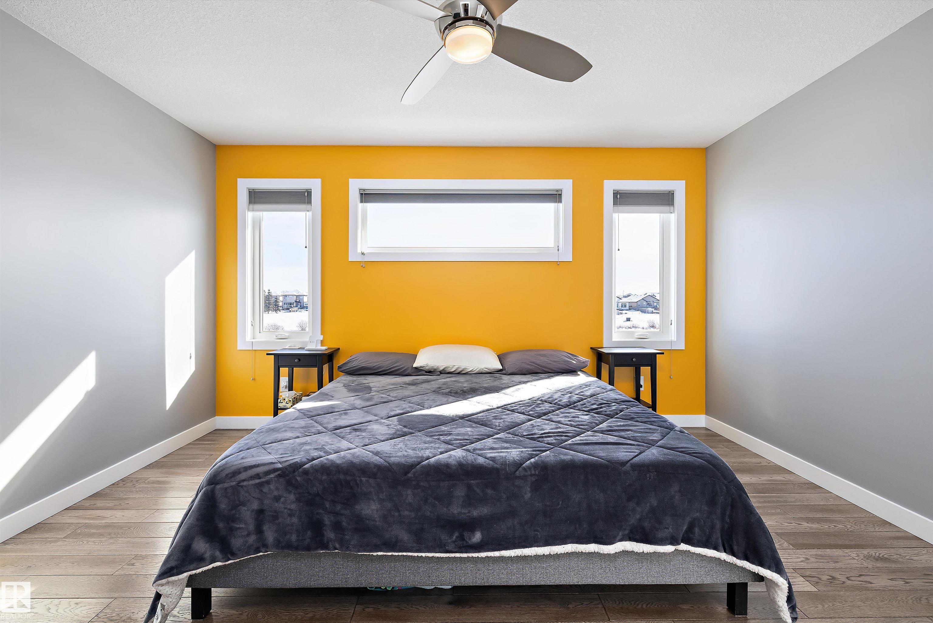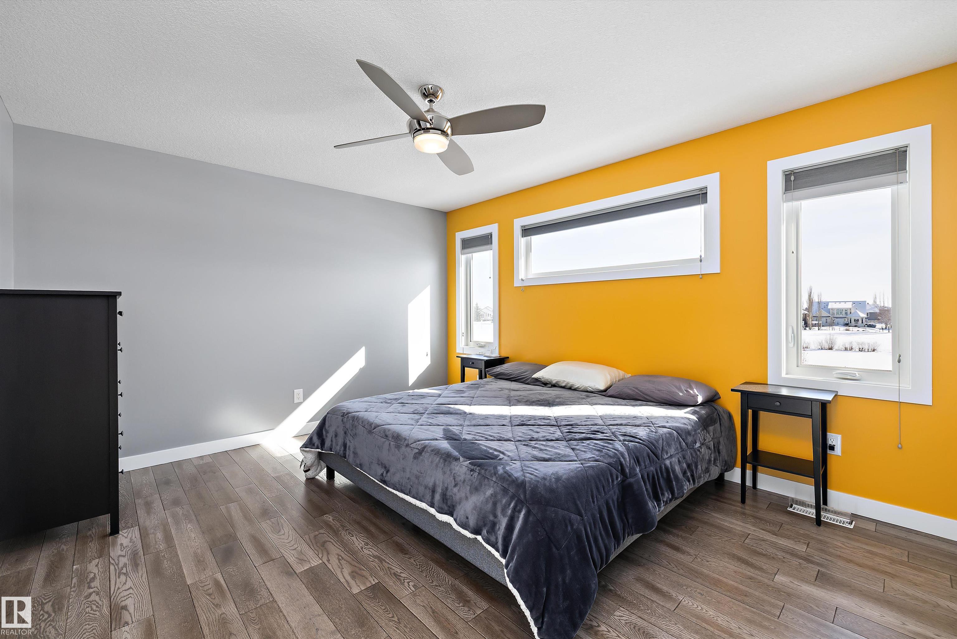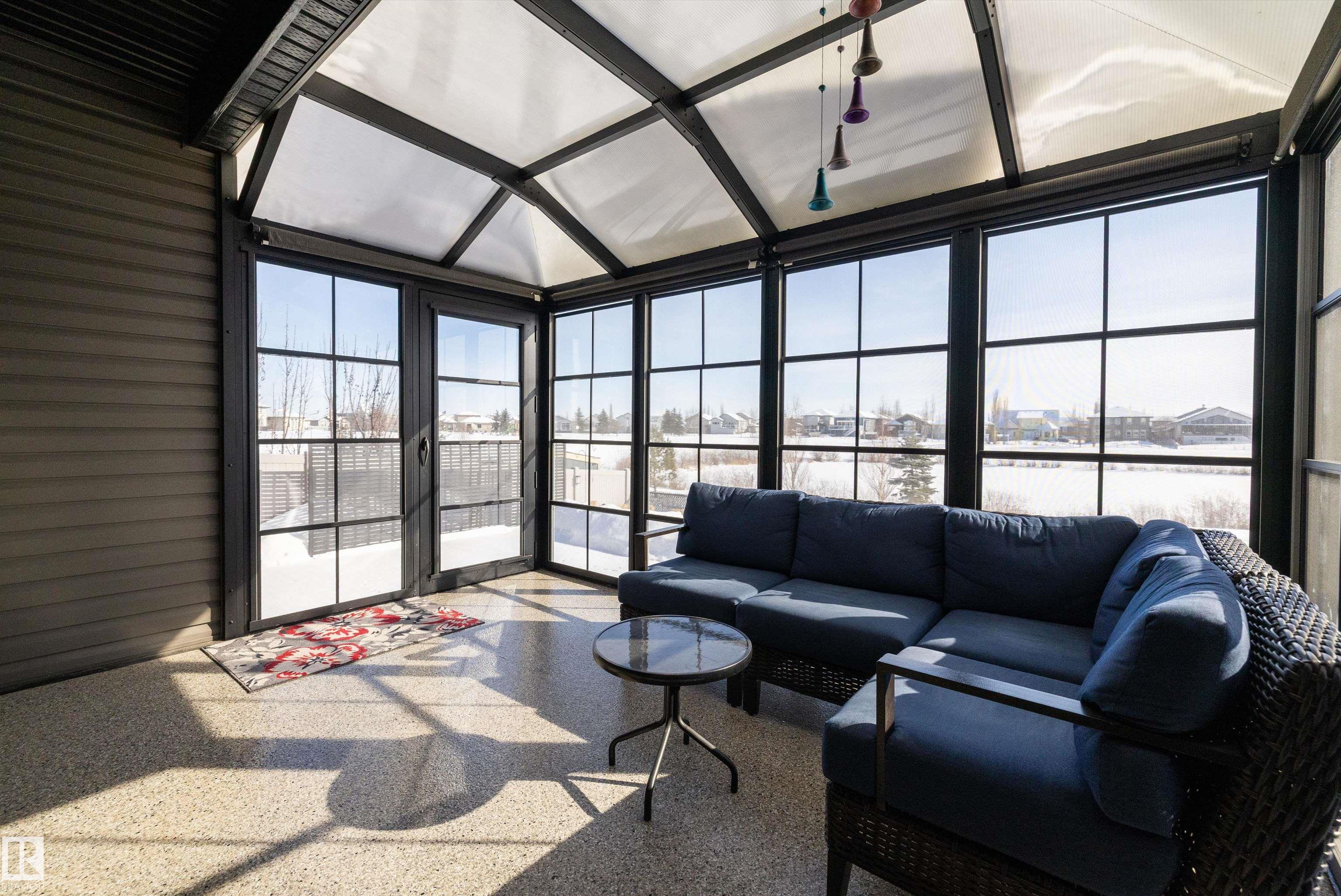 LAKEFRONT LUXURY | FULLY FINISHED | 4 BEDROOMS UP!!! Stunning lake-backing home by Atlas Premium Homes, known for exceptional quality and craftsmanship. Featuring 9' ceilings and a bright open-concept main floor with coffered ceilings, custom gas fireplace, luxury granite, and a massive walkthrough butlers pantry--all w/breathtaking lake views. Upstairs offers a spacious bonus room w/balcony overlooking the lake, a beautiful primary suite, 3 additional bedrooms, dual-sink main bath, and a large laundry room. The fully finished 9' basement adds extra living space. Upgrades include A/C, 20 solar panels(transferrable warranty), Enclosed 3-Season Sunroom overlooking lake w/epoxy floor, engineered hardwood upstairs(2022), fresh paint (2023), newer appliances, irrigation system, vinyl fencing, and professional stone landscaping w/turf so no mowing grass. Heated, finished garage with epoxy floors, TV setup, and 220V power. Quiet location steps to parks and trails--this meticulously maintained home shows 10/10.