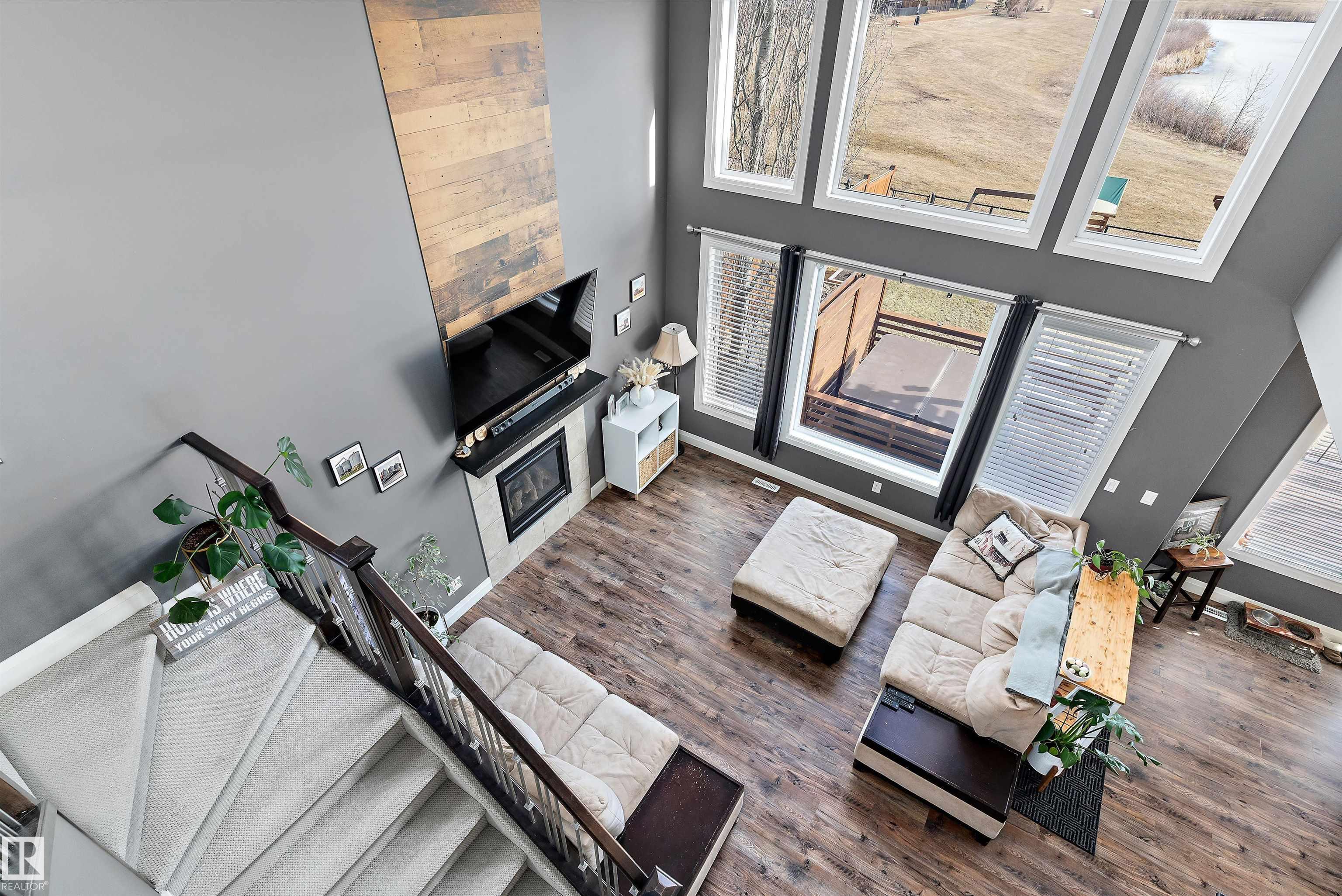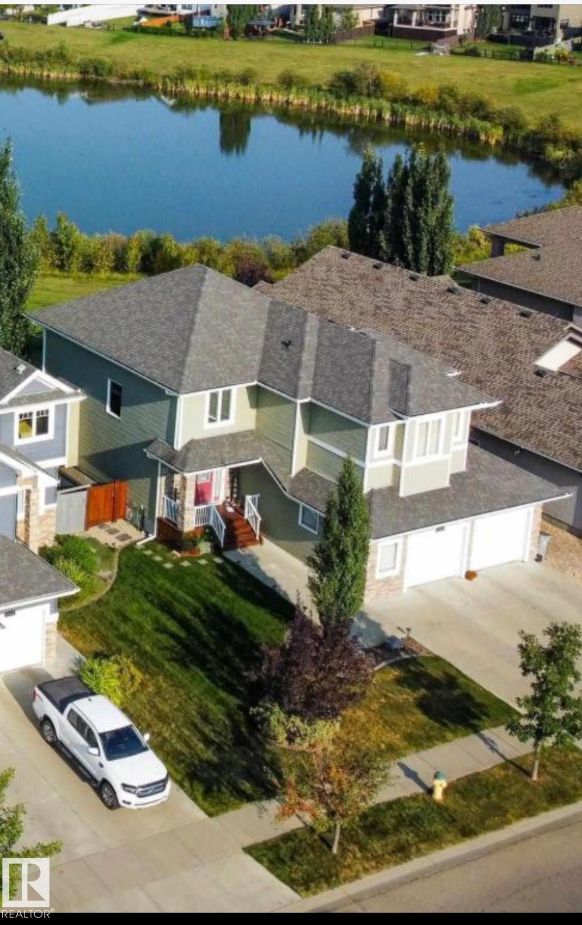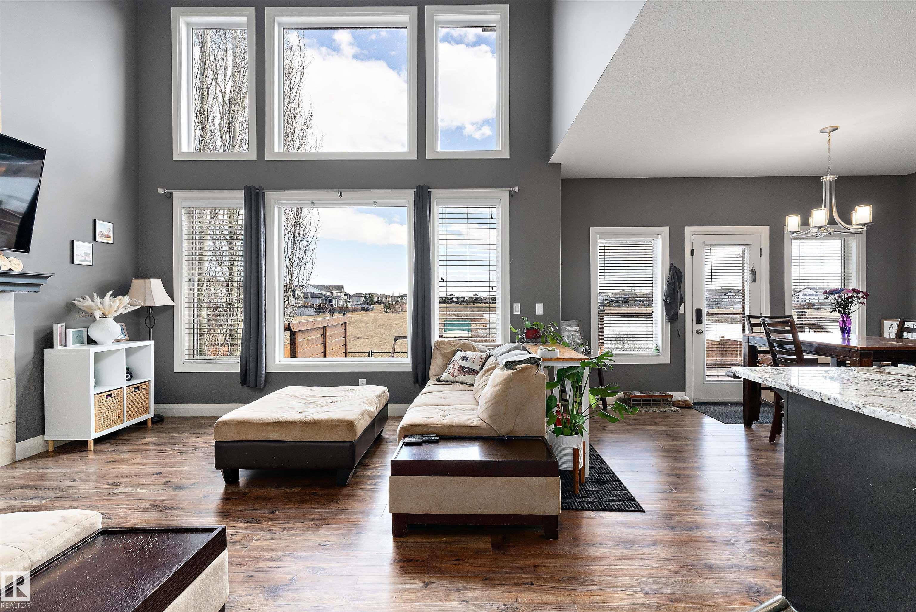 Step into a home that truly delivers on lifestyle--backing onto a pond & park where the kids can skate, play hockey, or toboggan from backyard. Stunning family home is filled w/standout features, soaring ceilings & a dramatic wall of windows that flood the living space w/natural light & showcase serene views. The living room is anchored by a gas fireplace that extends to the vaulted ceiling, creating a cozy yet impressive focal point. The kitchen is designed for both function & style, featuring extra-tall cabinetry that reaches the 9' ceiling, all appliances included, newer dishwasher & a walk-through pantry. The main floor also offers a welcoming foyer & laundry(newer washer/Dryer) for everyday ease. Upstairs, you'll find a beautiful loft overlooking the living room, along w/spacious primary suite complete with a walk-in closet, ensuite, dual sinks & large shower. 2 beds & full bath complete the upper level. Basement has a large family room & 4th Bed. Other upgrades include Newer furnace and Central A/C.