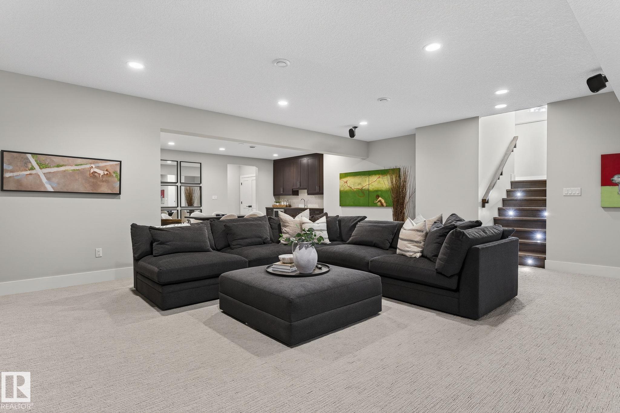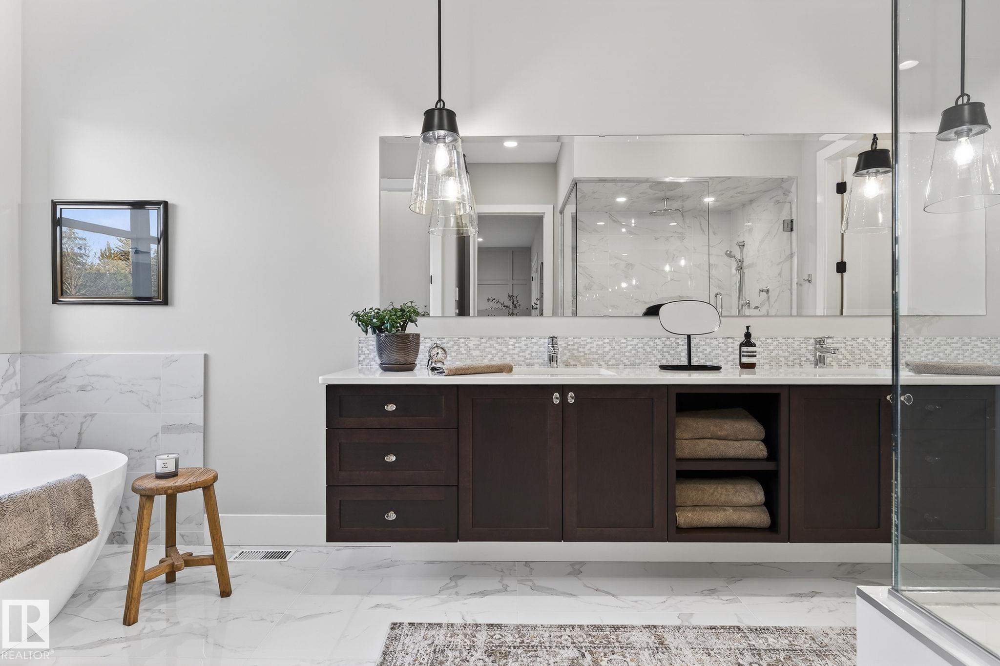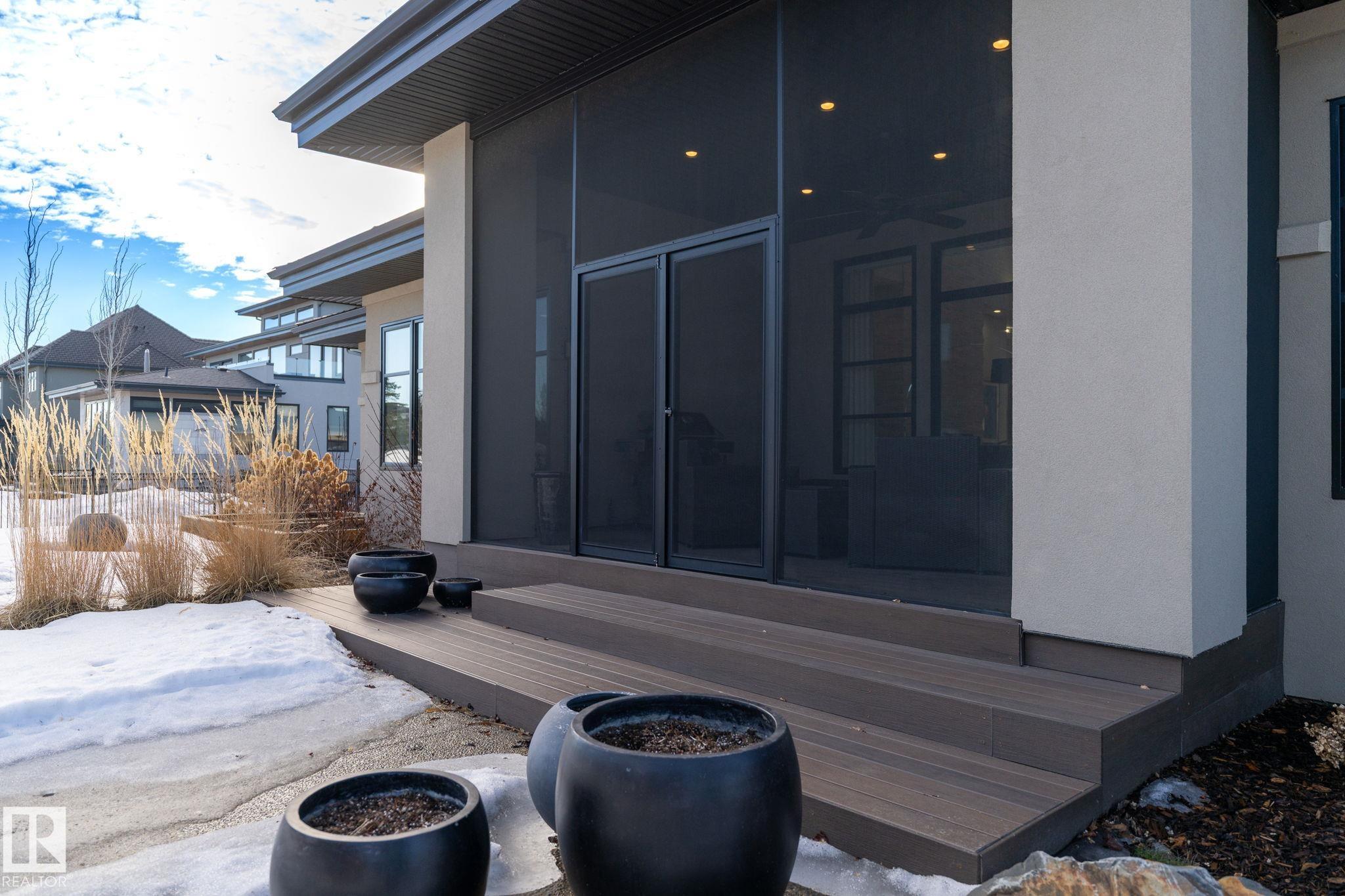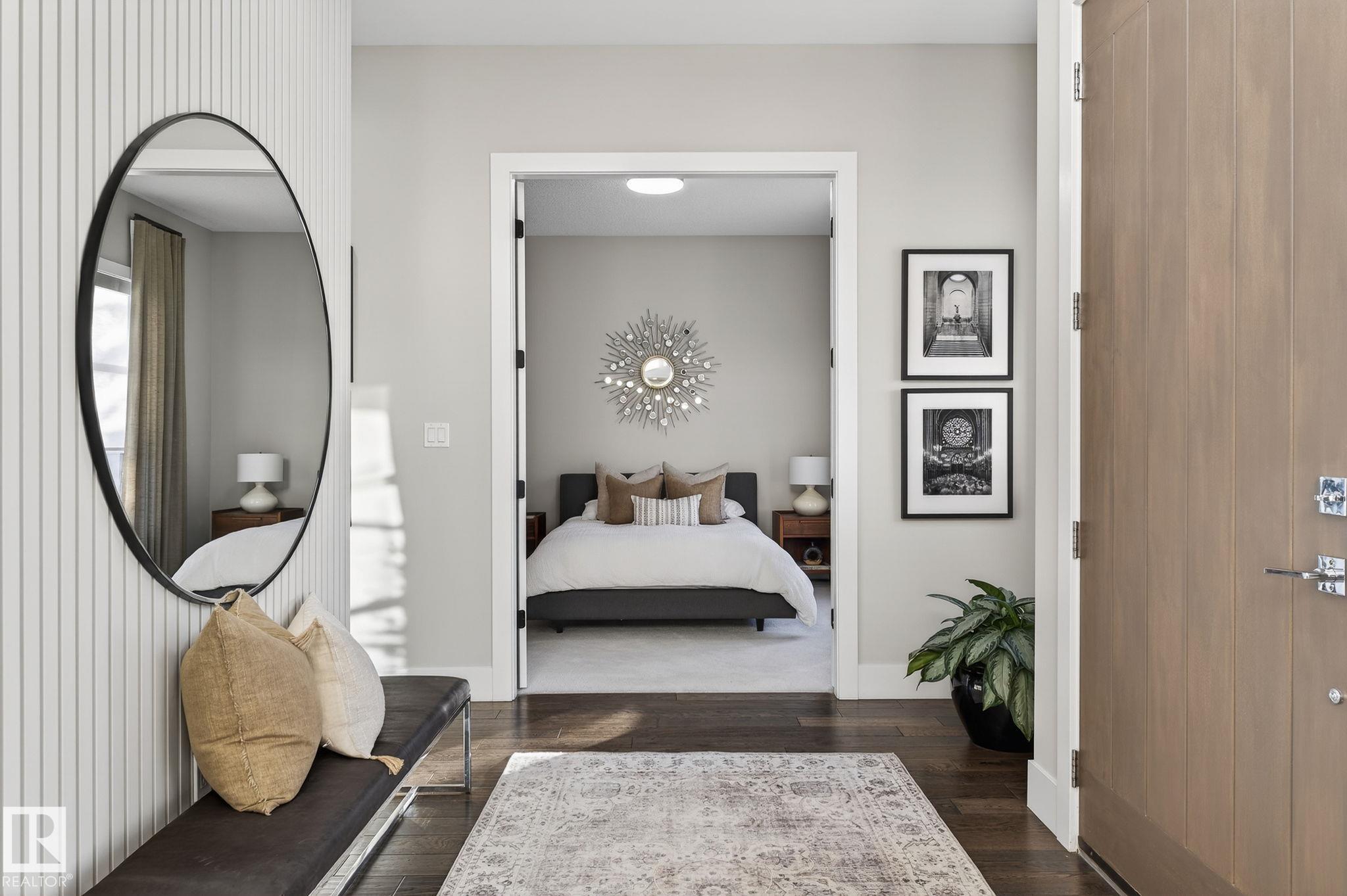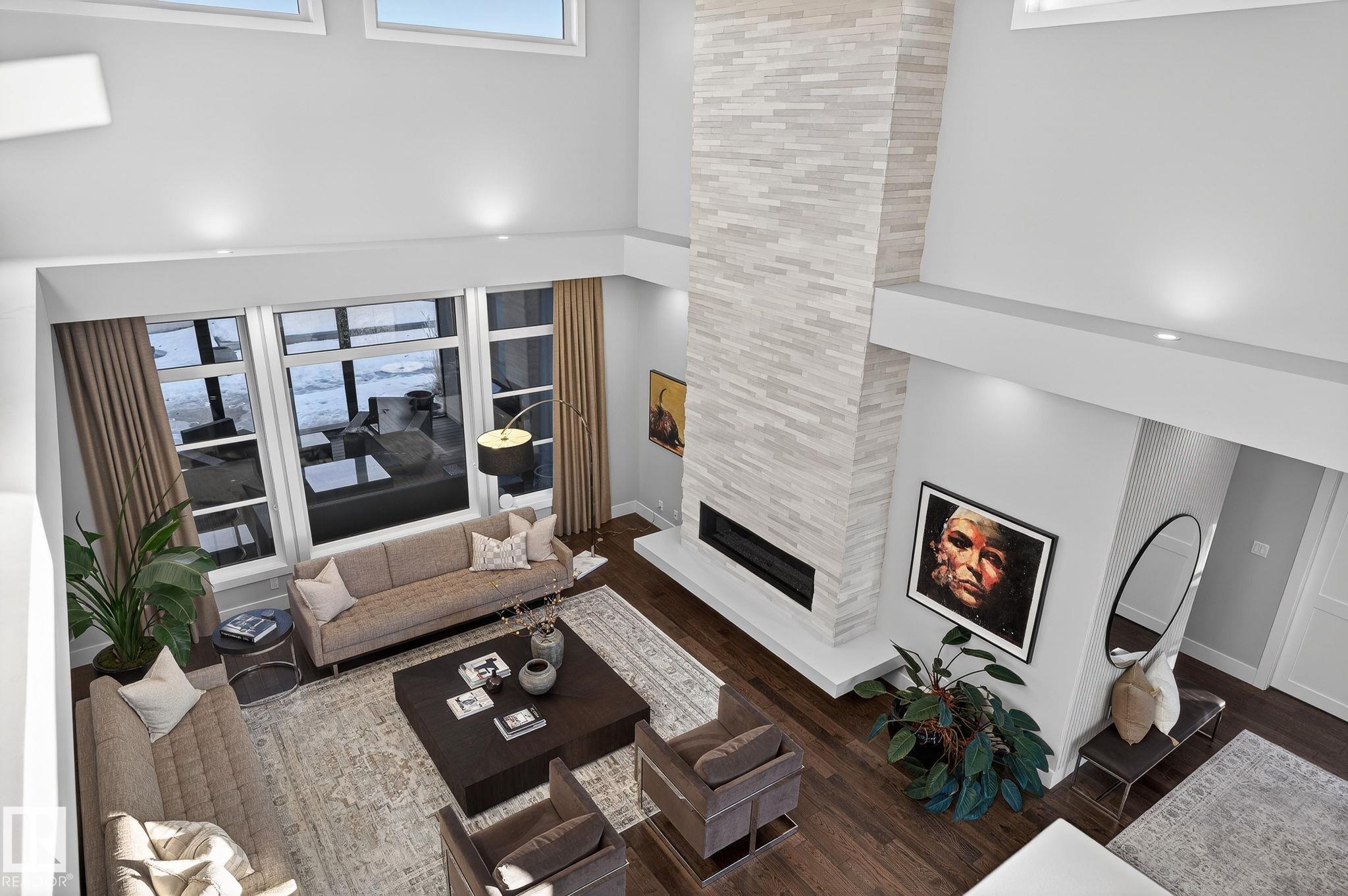 Nestled on a private, sprawling property in Rural Sturgeon County, this luxurious executive bungalow offers over 5,400 sq ft of thoughtfully designed living space, combining elegance with functionality. The open-concept main floor features soaring ceilings, a sun-filled great room with floor-to-ceiling windows, and a striking fireplace. The chef-inspired kitchen boasts quartz counters, professional-grade appliances, custom cabinetry, and a walk-through pantry. The primary retreat includes a spa-like ensuite with a soaker tub, dual vanities, a walk-in shower, and a custom closet. A second bedroom with ensuite, mudroom, and laundry complete the main level. The lower level features two bedrooms, a Jack-and-Jill bath, expansive family room with wet bar, gym, and storage. Outdoors, landscaped grounds, tiered patios, and a triple garage with workshop offer the perfect blend of luxury, privacy, and country living minutes from St. Albert and Edmonton.