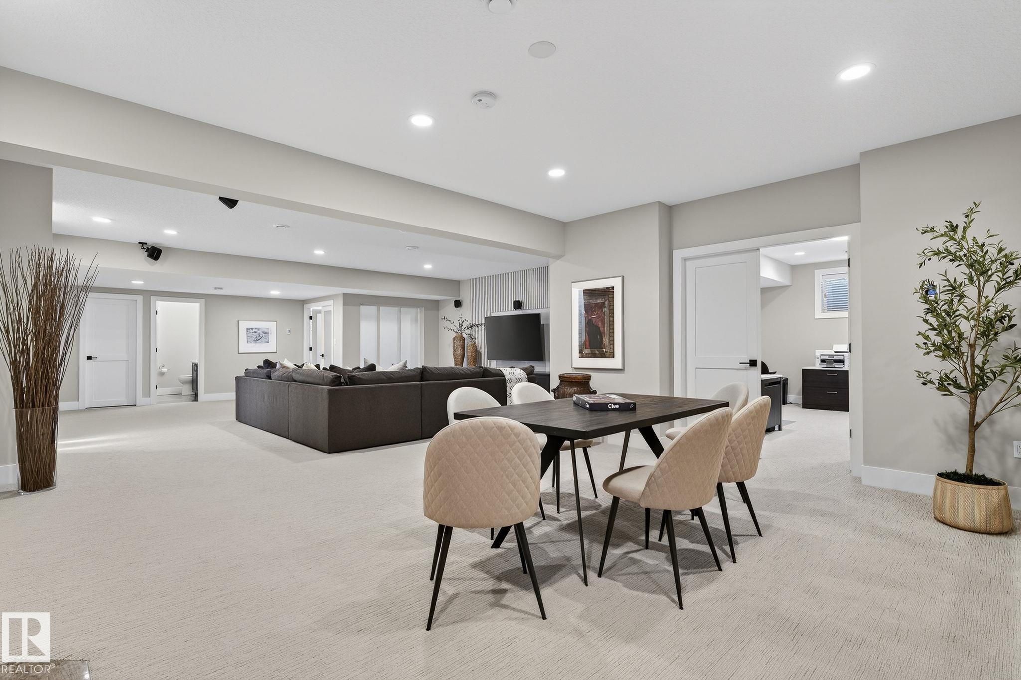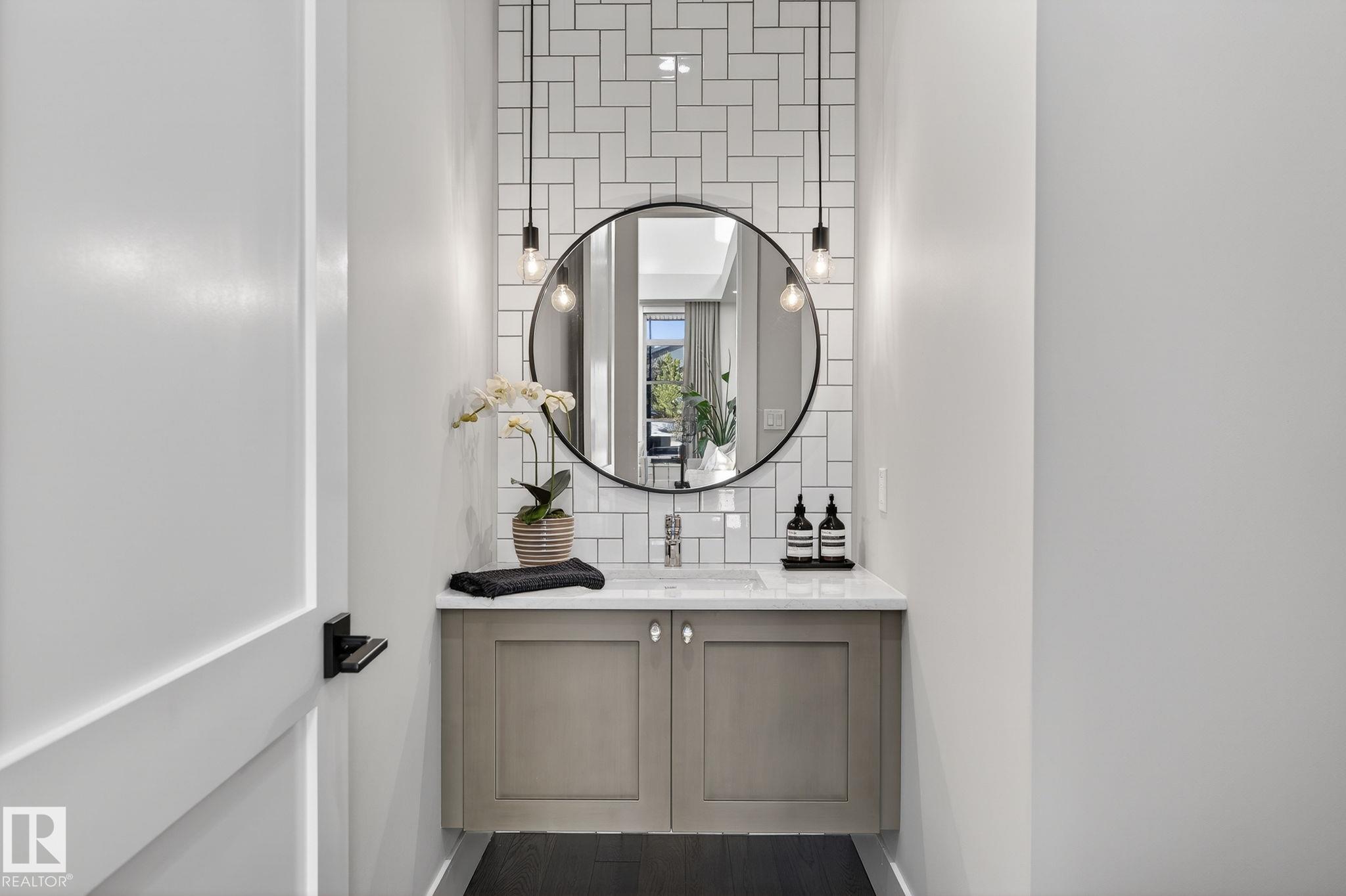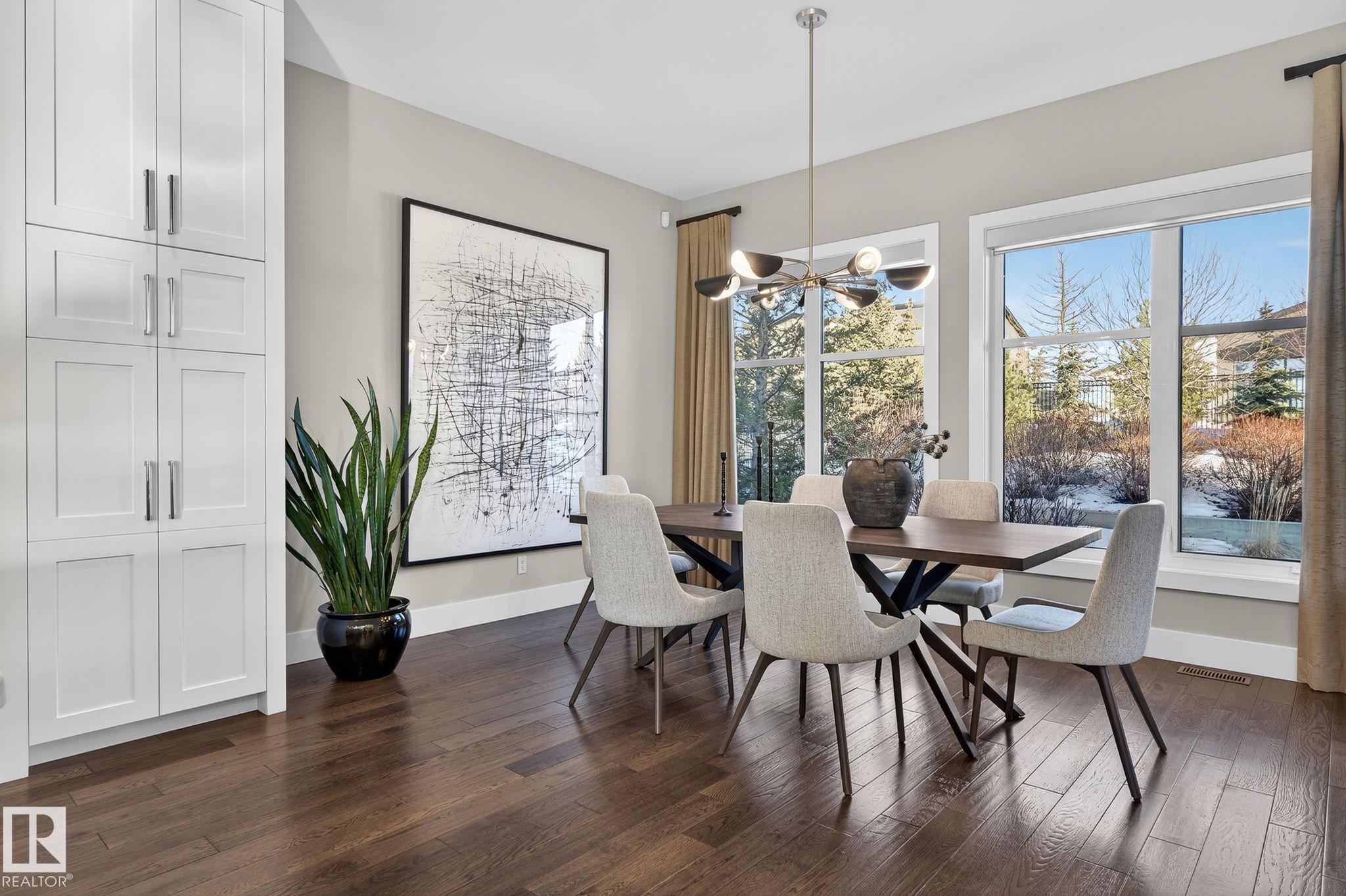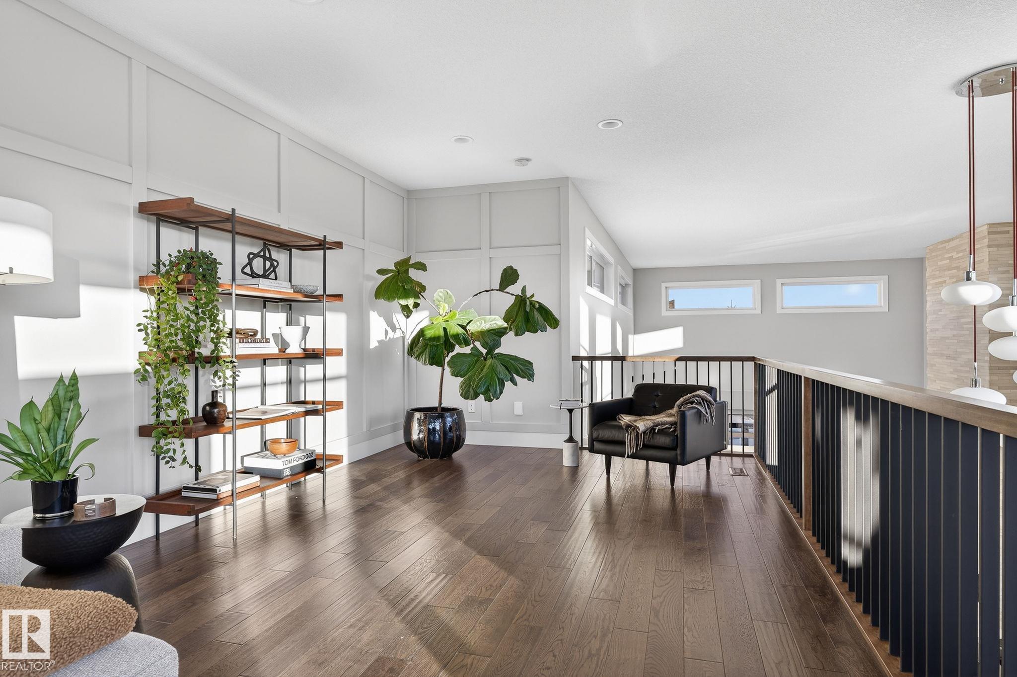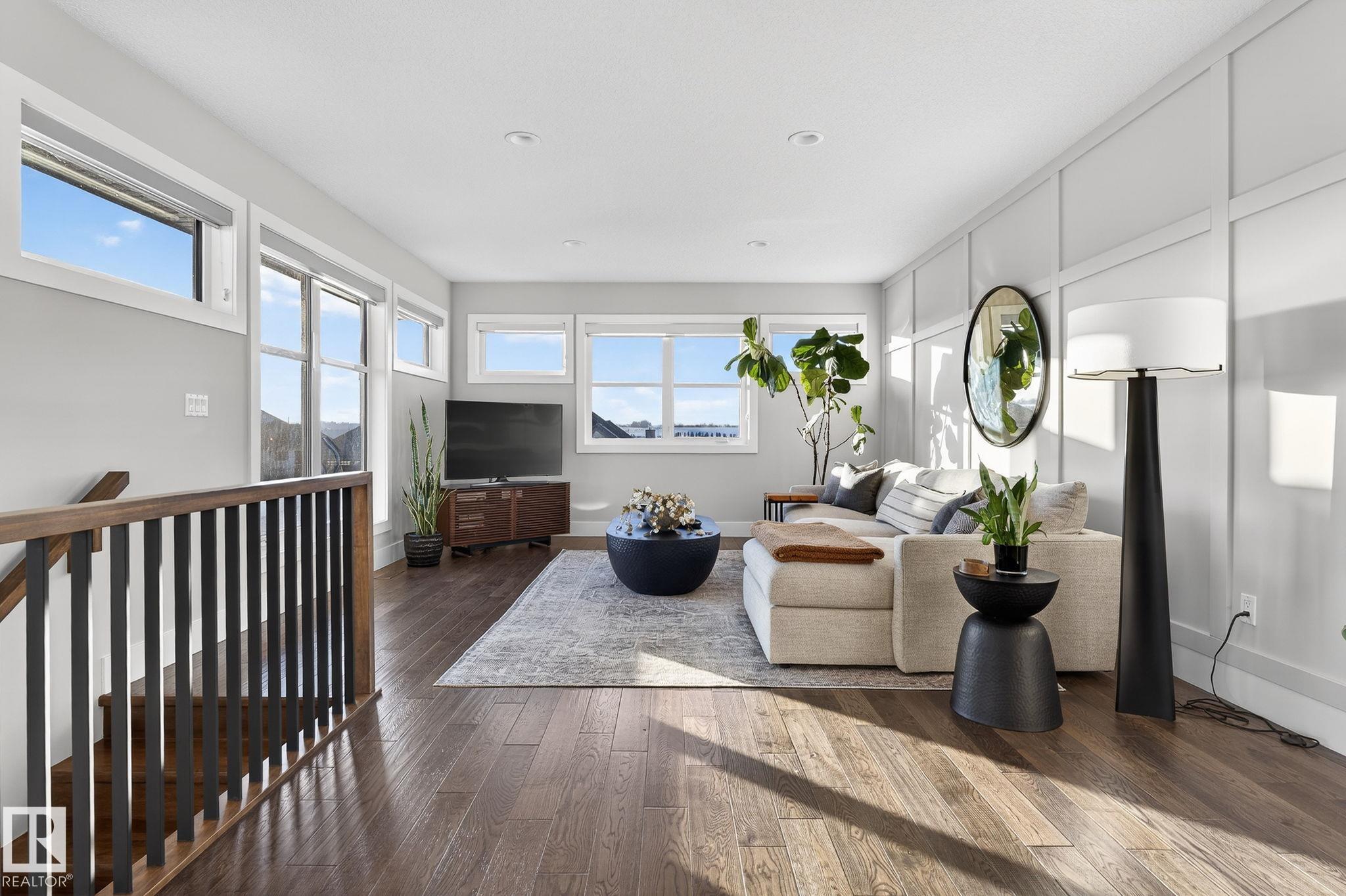 Nestled on a private, sprawling property in Rural Sturgeon County, this luxurious executive bungalow offers over 5,400 sq ft of thoughtfully designed living space, combining elegance with functionality. The open-concept main floor features soaring ceilings, a sun-filled great room with floor-to-ceiling windows, and a striking fireplace. The chef-inspired kitchen boasts quartz counters, professional-grade appliances, custom cabinetry, and a walk-through pantry. The primary retreat includes a spa-like ensuite with a soaker tub, dual vanities, a walk-in shower, and a custom closet. A second bedroom with ensuite, mudroom, and laundry complete the main level. The lower level features two bedrooms, a Jack-and-Jill bath, expansive family room with wet bar, gym, and storage. Outdoors, landscaped grounds, tiered patios, and a triple garage with workshop offer the perfect blend of luxury, privacy, and country living minutes from St. Albert and Edmonton.